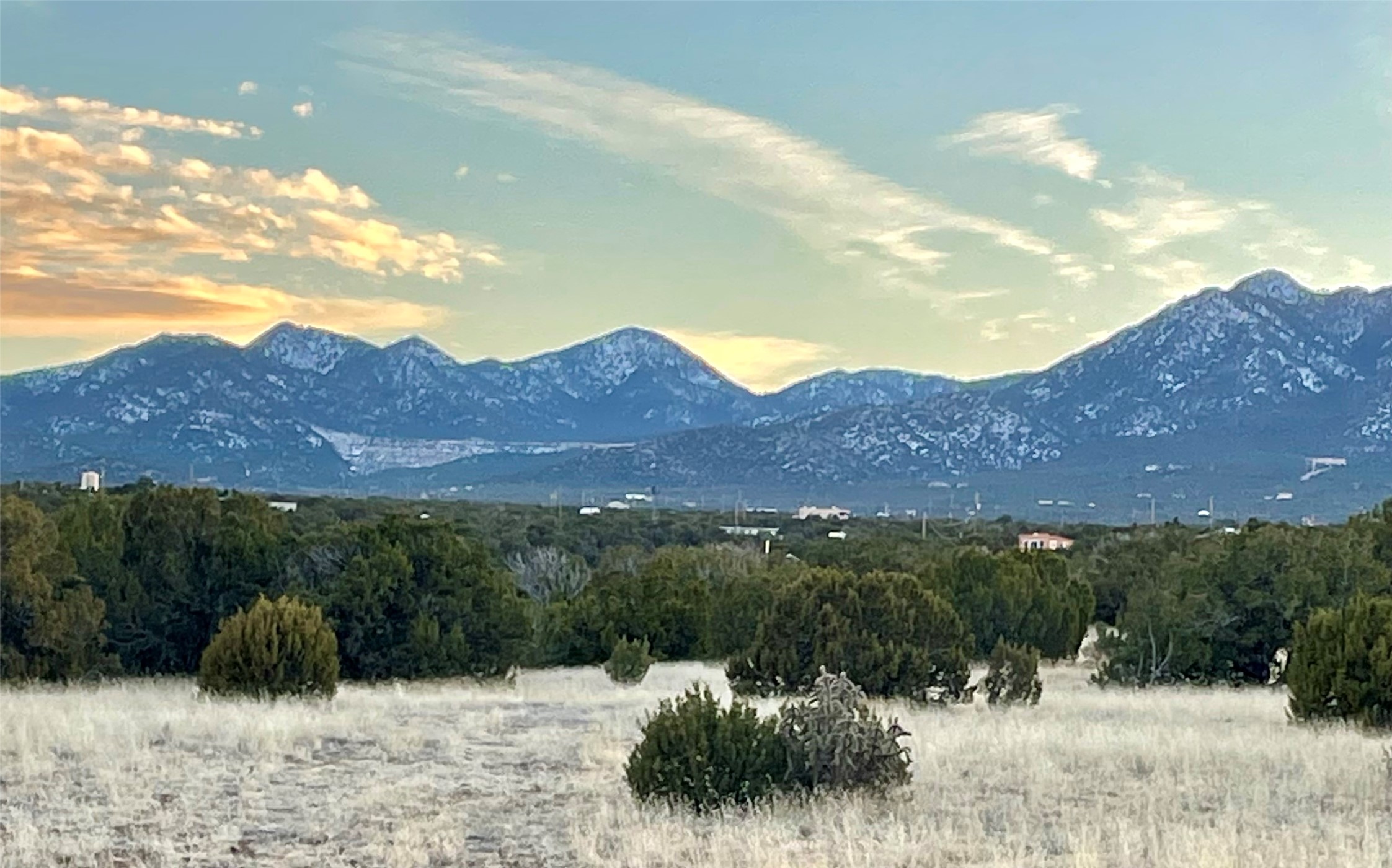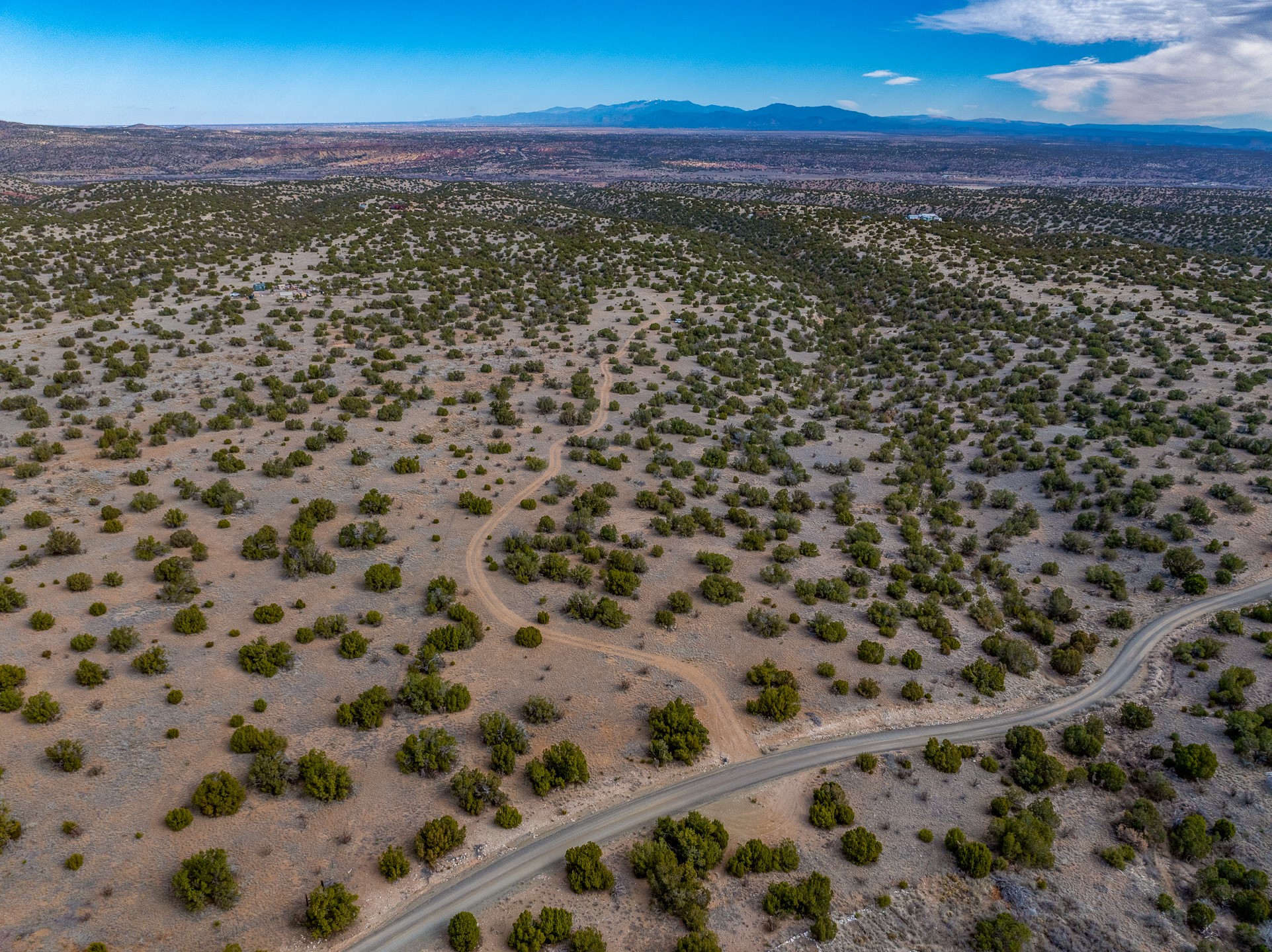 On an elevated ridge above the Galisteo valley, twenty miles from Santa Fe, this forty acre parcel offers mountain views in all directions. In a gated neighborhood with underground power, well-maintained gravel roads, and no HOA, the lot has a roughed in driveway, multiple flat building spots, and a drilled and cased well. Dramatic arroyos provide places to explore, and the neighborhood is welcoming to equestrians. Quiet, private, with spectacular sunsets and vibrant night skies, this lovely lot is ready for your high-desert home.