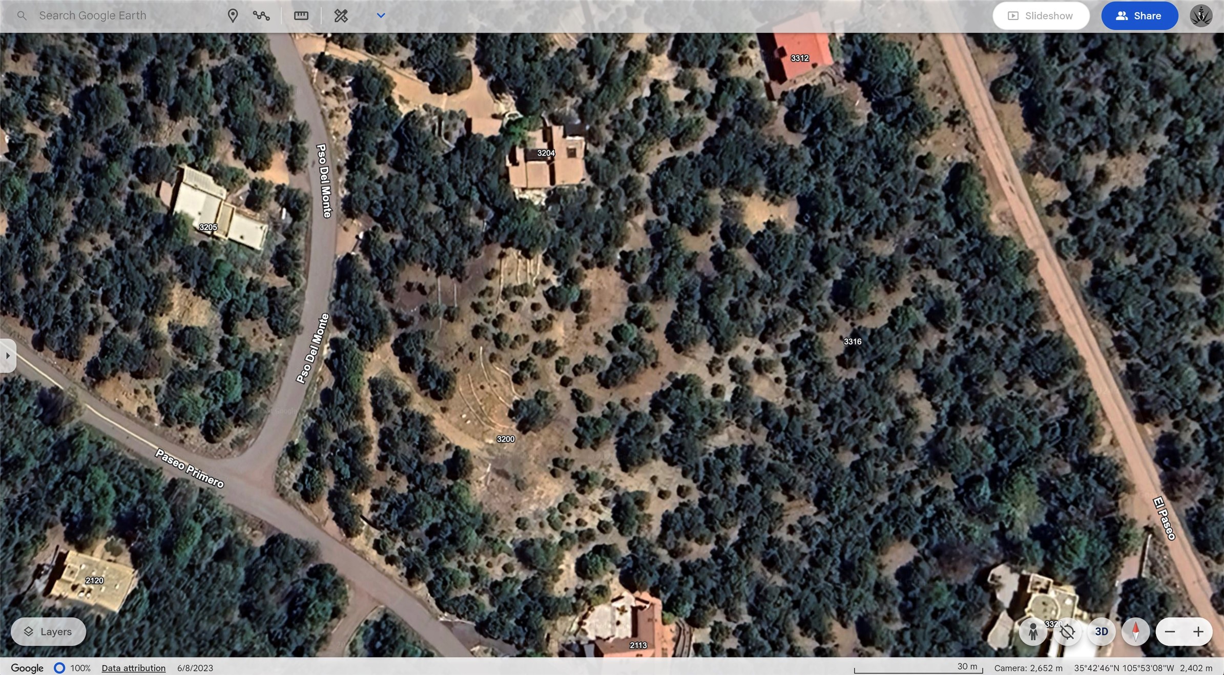 These two, separately-deeded lots offer fine mountain views and many improvements in an HOA-free neighborhood that exudes quality and pride-of-ownership. 3200 Paseo del Monte is a former home site with water and electricity on site and a custom, electric gate at the road. The upper lot, 3316 El Paseo, has spectacular, long-range vistas of several mountain ranges. Build your home on the upper lot and a guest casita on the lower lot. Make the lower lot your homesite and leave the upper lot as a natural buffer. Or develop both. There are many ways to harvest the magic of this remarkable opportunity minutes from Santa Fe's historic downtown