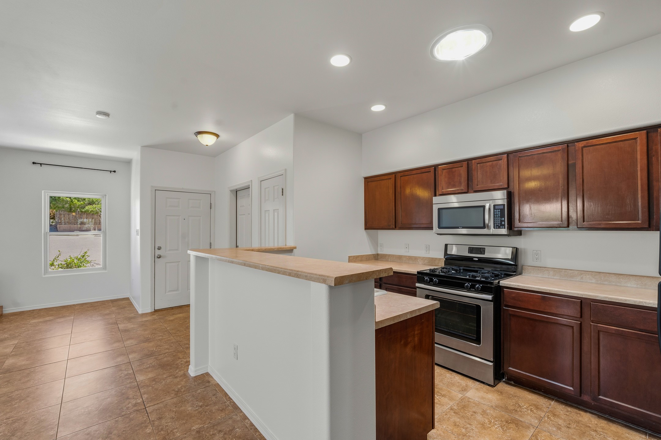 Experience the magic of Santa Fe living in this meticulously maintained, solar-powered home in the desirable Wood Gormley school district. Relax on your private rooftop deck, taking in breathtaking mountain views and iconic New Mexico sunsets. The fully fenced backyard, complete with circulating pond, provides an oasis for relaxation. Inside, enjoy a bright, open-concept design featuring 9-foot ceilings, fresh paint, new flooring, and a brand-new furnace for in-floor radiant heating. This award-winning, energy-efficient home combines premium efficiency with comfort, all on a quiet cul-de-sac perfectly positioned for easy access to downtown, shopping, and I-25.