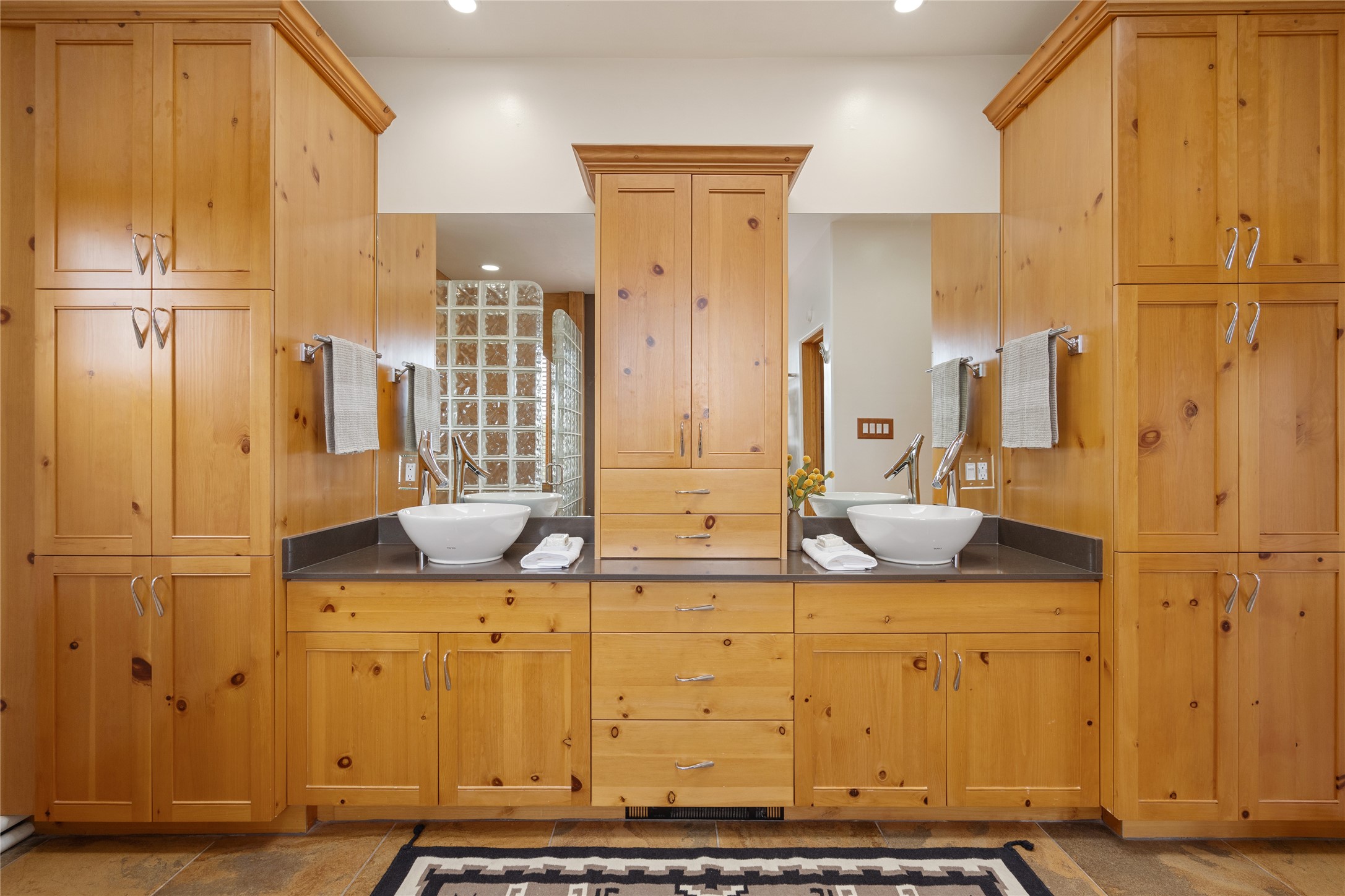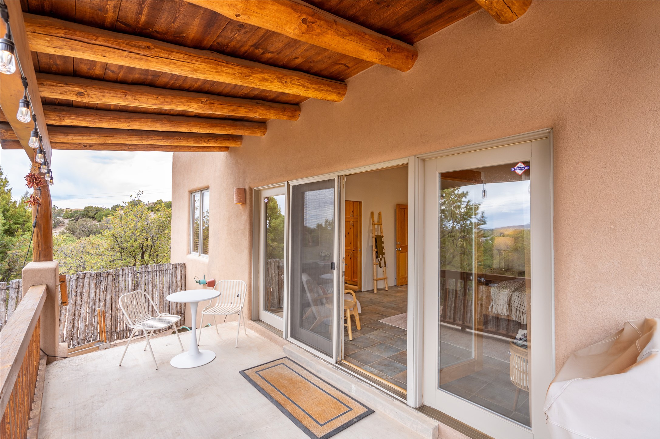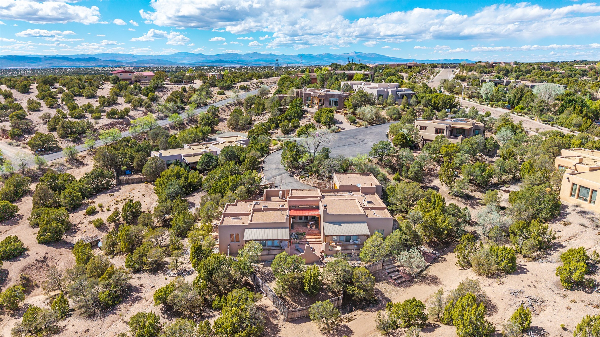 This exceptional custom Pueblo-style residence is positioned to capture sweeping mountain views and city lights across the horizon. Set within the desirable Las Lomas neighborhood, the property is minutes from the historic downtown Plaza and convenient to the Santa Fe River Trail. 1702 Watchpoint is a classic Santa Fe offering that authentically blends New Mexico architecture with modern comfort across 2,745 square feet of thoughtfully designed living space. Hand-carved entry doors open to immediate, expansive views off the patio, a first impression that sets the tone throughout. The living room anchors the main level with a classic kiva fireplace and hand-troweled plaster walls, also, directly off the living room is a flex-space suitable for a home office or studio. The multi-level layout flows naturally from formal dining with recessed lighting to an updated chef's kitchen featuring Silestone quartz countertops, stainless appliances, and a handsome tile backsplash. Many rooms connect to the outdoors, making indoor-outdoor living effortless whether for a quiet morning or a gathering on one of the home's covered portales.The primary suite is a private retreat, complete with a kiva fireplace, walk-in closet, outdoor portal, and spa-inspired bath with deep soaking tub, oversized pebble shower, and dual sinks. Two additional guest rooms share a generous full bath.An oversized two-car garage provides direct kitchen access and a dedicated laundry area. The home has been meticulously maintained and thoughtfully improved -- a full list of upgrades is available upon request. 1702 Watchpoint is a rare opportunity to own one of Las Lomas' finest homes, where authentic Santa Fe character, breathtaking views, and careful stewardship come together in one distinguished property.
