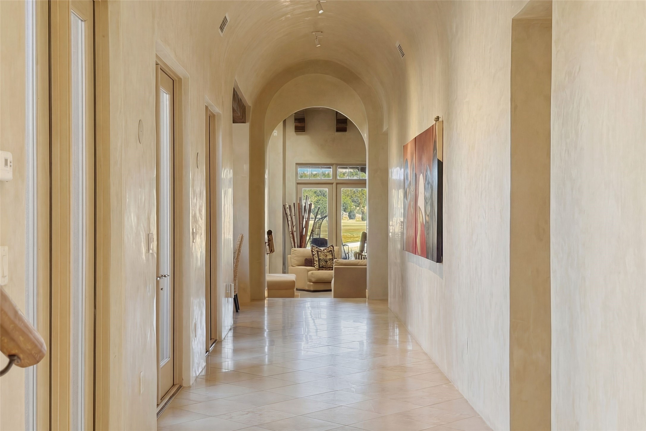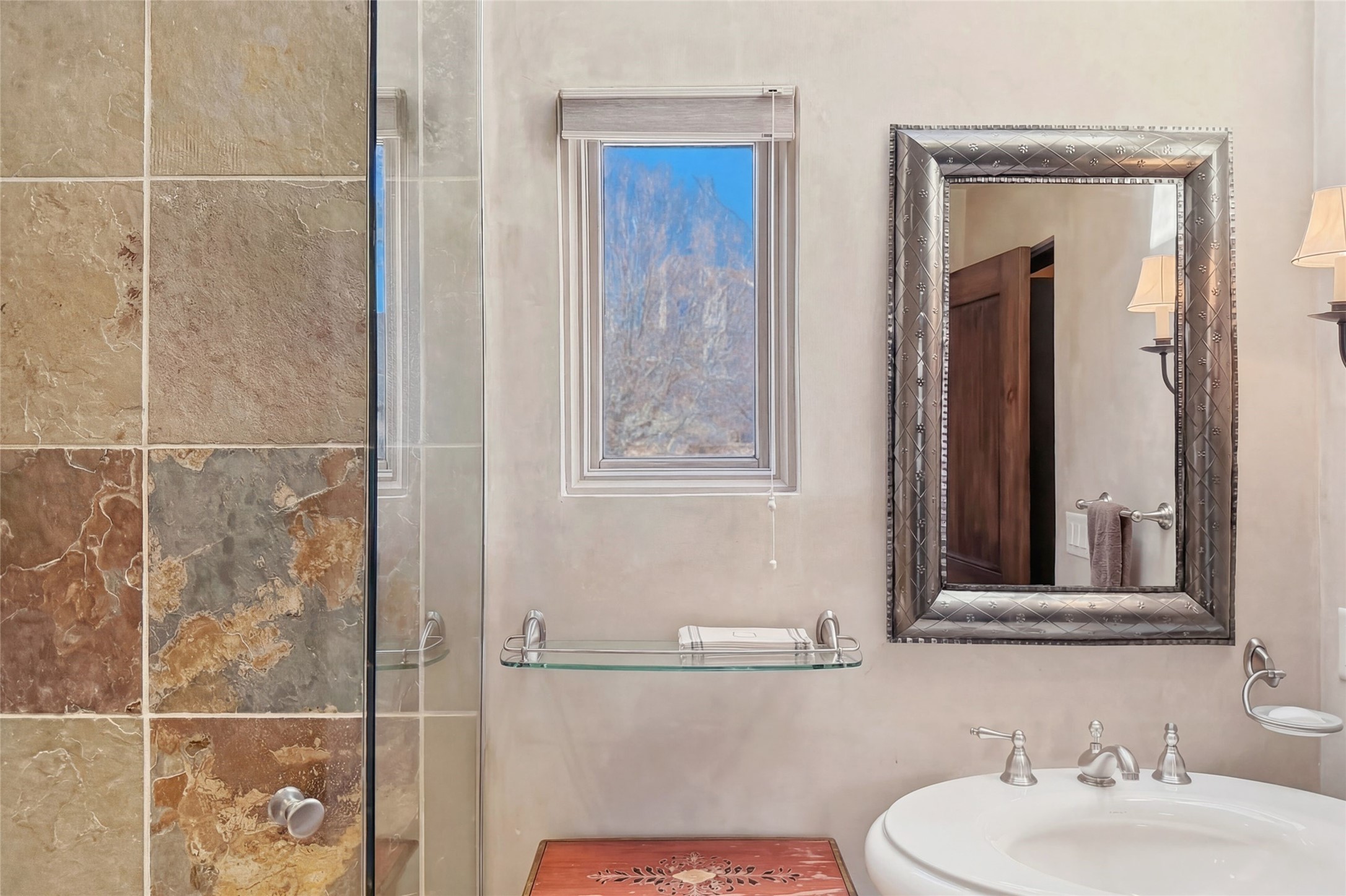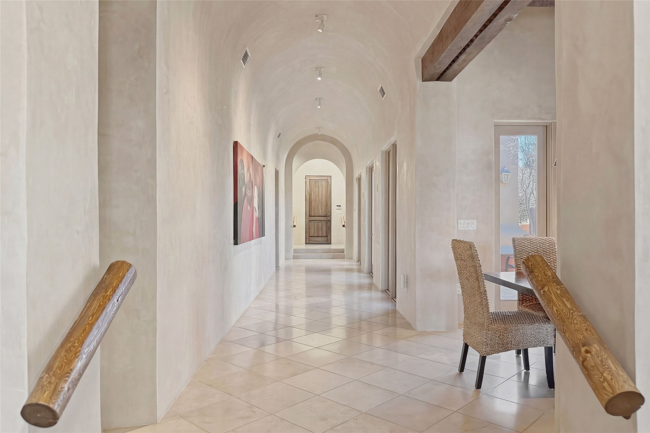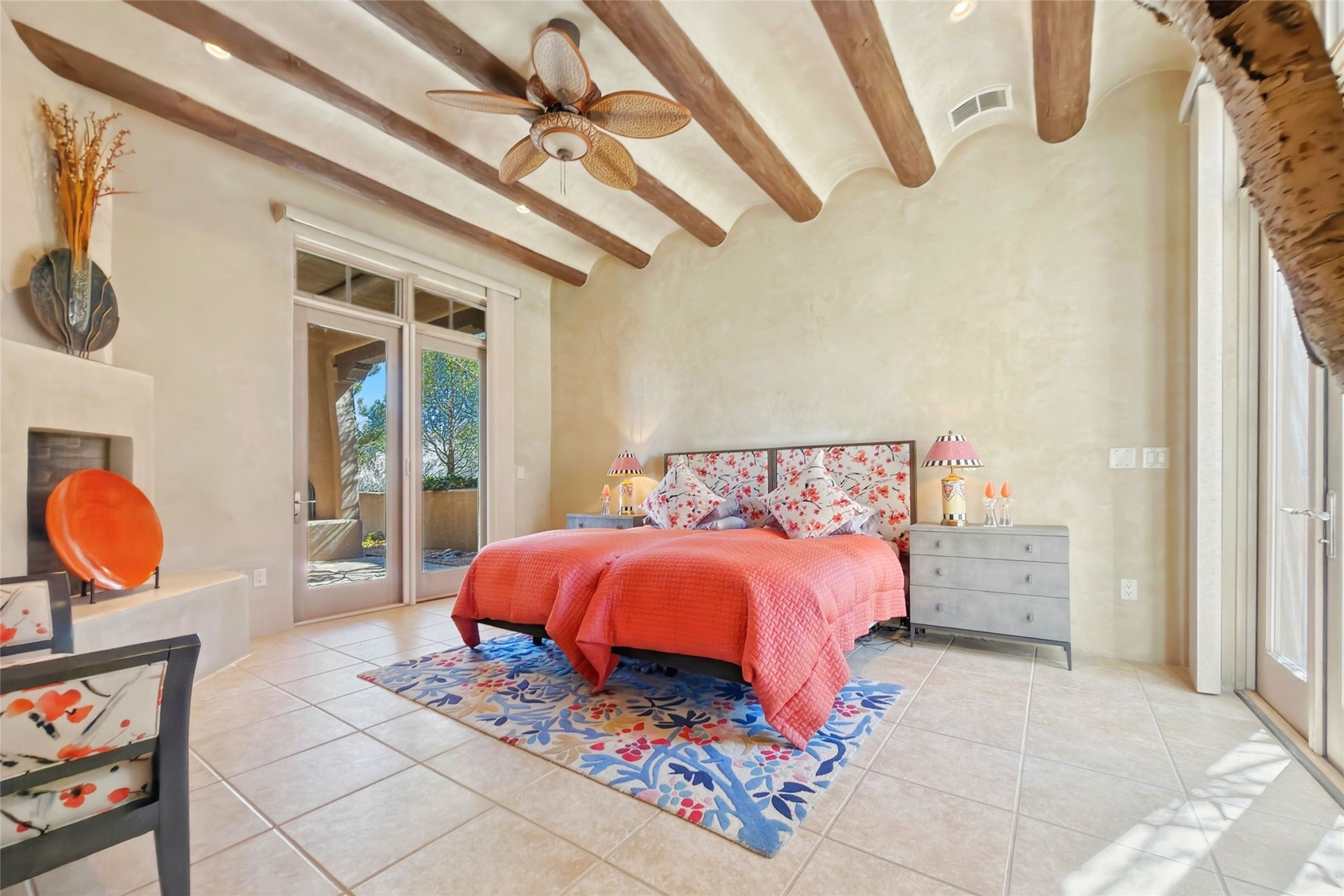 Expansive golf course views set the stage for this light-filled Las Campanas jewel. Setbehind a gated entrance with 24-hr security, the home welcomes you with a beautifullycrafted brick driveway that opens into a private, inviting courtyard. Offering 3 spaciousbedrooms and 3.5 baths, this thoughtfully designed home balances comfort, eleganceand privacy. Inside, travertine tile flows throughout complemented by brilliant diamondplaster walls, striking beams and graceful arched hallways that add architectural depthand character. The living room is a true showpiece, anchored by a grand wood-burningfireplace and framed by expansive patio doors that flood the space with natural lightwhile seamlessly blending indoor and outdoor living. 14 ft. ceilings and 16 skylightsthroughout the home further enhance its bright and airy ambiance. Designed foreveryday living and entertaining, the kitchen features granite countertops, luxurycabinetry, Wolf oven/stove, Sub-Zero refrigerator, a large island with seating and built-inwine storage. Adjacent is a formal dining area with outside access, dramatic lighting anda decorative fireplace. Each bedroom serves as a private retreat featuring its ownfireplace and direct patio access, creating a seamless connection to the outdoors. Theprimary suite is especially indulgent, offering a spa-like bathroom with a fireplace,oversized soaking tub and separate shower. Outdoor living is equally impressive withmultiple areas to enjoy Santa Fe's stunning climate. With eight fireplaces, timelessarchitectural details and a layout that offers both openness and separation, thisremarkable home delivers refined living in one of Santa Fe's most sought-aftercommunities.