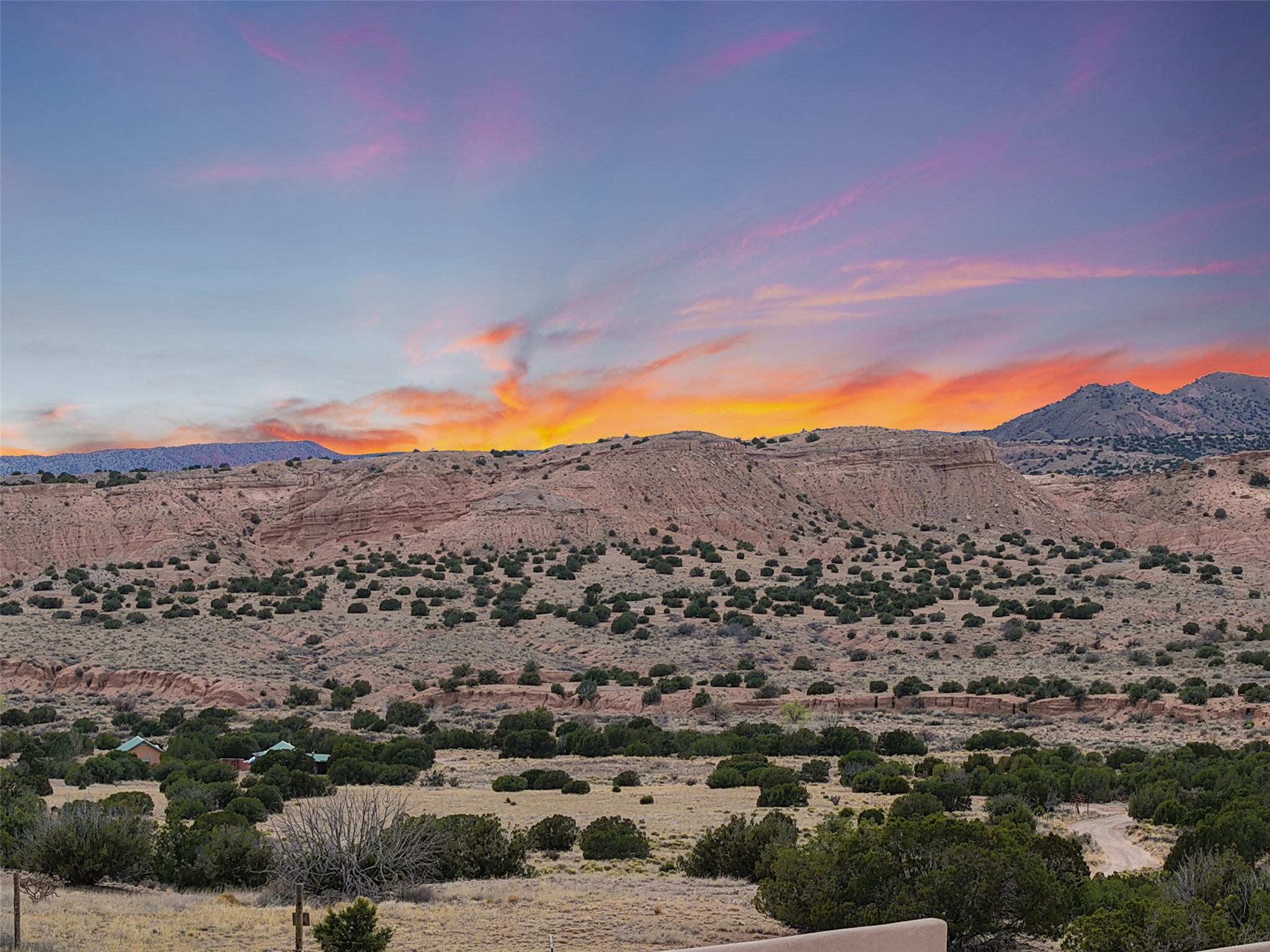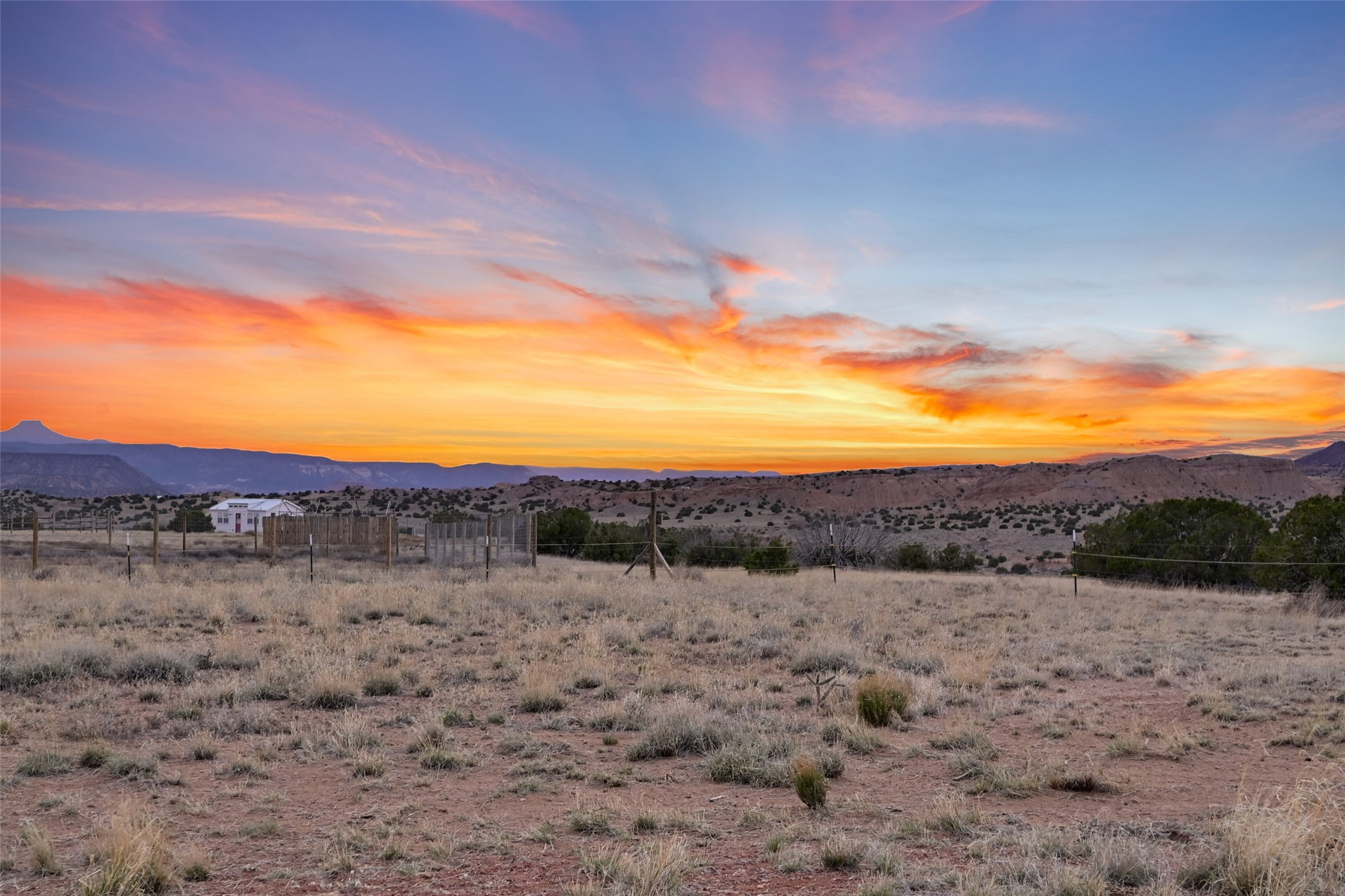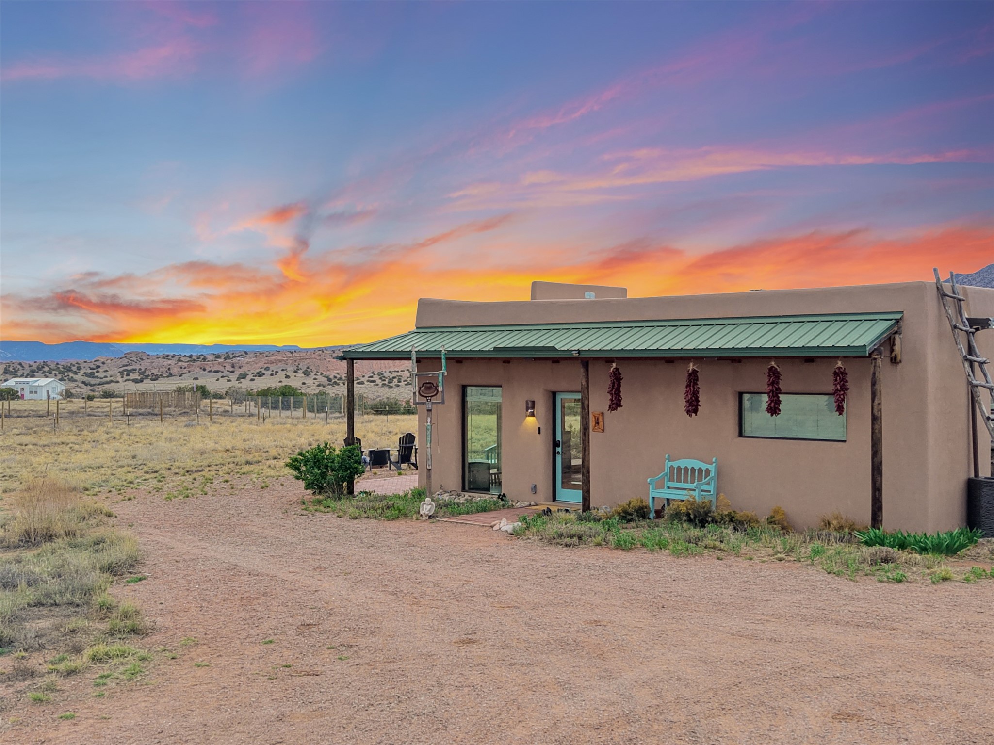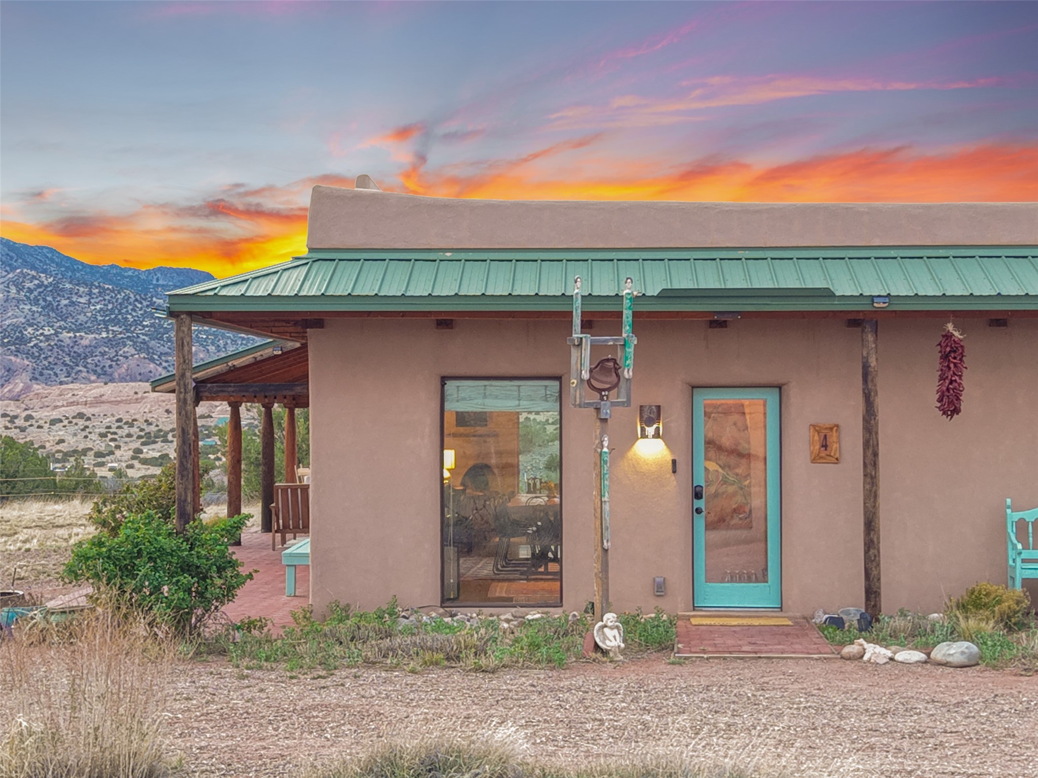 Imagine waking to endless skies, where soft morning light stretches across the high desert and the only sounds are the breeze and distant birds. This is a place of deep solitude and quiet inspiration, a landscape that invites reflection, creativity, and possibility. Days unfold slowly under vast blue skies with drifting white clouds, and evenings settle into unforgettable sunsets, with the silhouette of Pedernal Mountain glowing in the distance. At night, the stars take over, offering a front-row seat to the cosmos. This is more than a home, it's an experience of living fully immersed in the spirit of Abiqui, a place long cherished by artists like Georgia O'Keeffe. Set on 2.23 acres, this well-maintained 2-bedroom, 2-bath residence offers both comfort and character. The home is thoughtfully appointed with stone countertops, stainless steel appliances, and an induction cooktop, blending modern convenience with a timeless Southwestern feel. Large picture windows expertly frame picturesque vistas from room to room. A covered portal extends the living space outdoors, perfect for entertaining or simply taking in the expansive views, while a cantina on the rear portal creates a natural gathering space for evenings under the open sky. Designed with creativity in mind, the property includes a converted barn now serving as an artist studio, an inspiring space to work and create surrounded by natural beauty. The studio is equipped with an unfinished bath and kitchenette, with all materials included to complete the vision. Additional features include covered parking, a versatile barn with a loft, roll-up door, and concrete floor, as well as additional hay storage. The property also includes a trailer that can convey with the sale, along with materials needed to finish it into guest accommodations or additional living space, offering excellent flexibility and potential. Located near Abiquiu Lake, Ghost Ranch, Plaza Blanca, and Poshuouinge Ruins, the property offers access to some of the Southwest's most iconic landscapes, along with local shops and dining in the Abiqui area. Whether you're seeking a creative sanctuary, a peaceful escape, or a place to live in harmony with the land, 4 Fair Hope Drive offers an extraordinary opportunity to step into a lifestyle defined by beauty, space, and inspiration.
