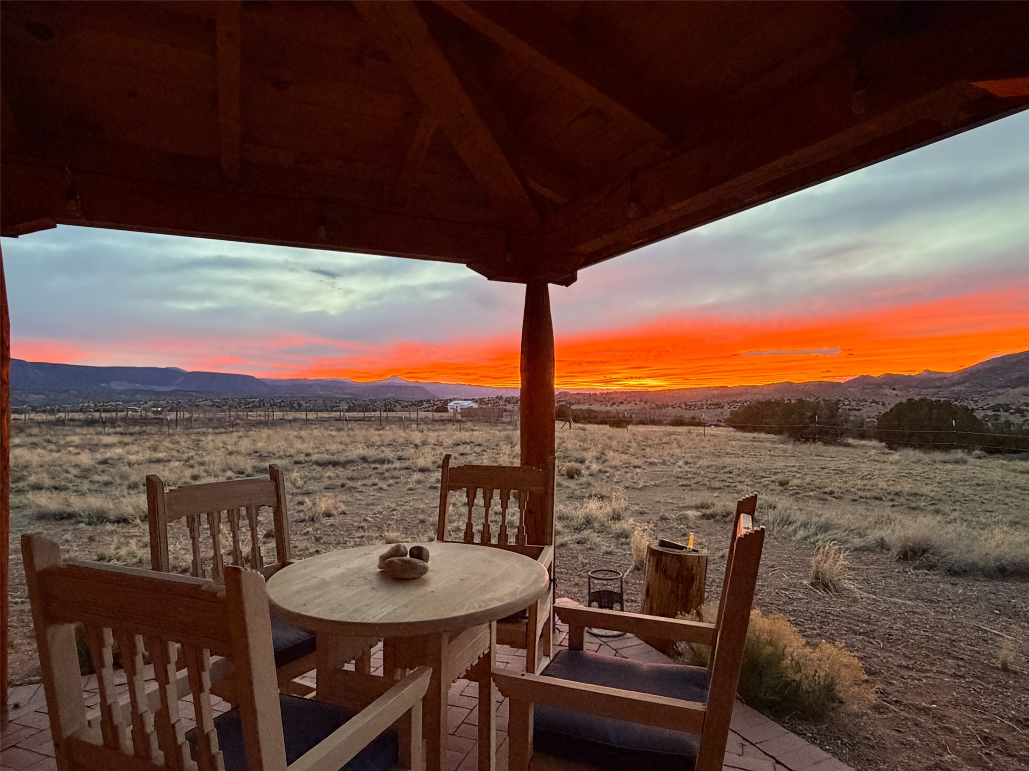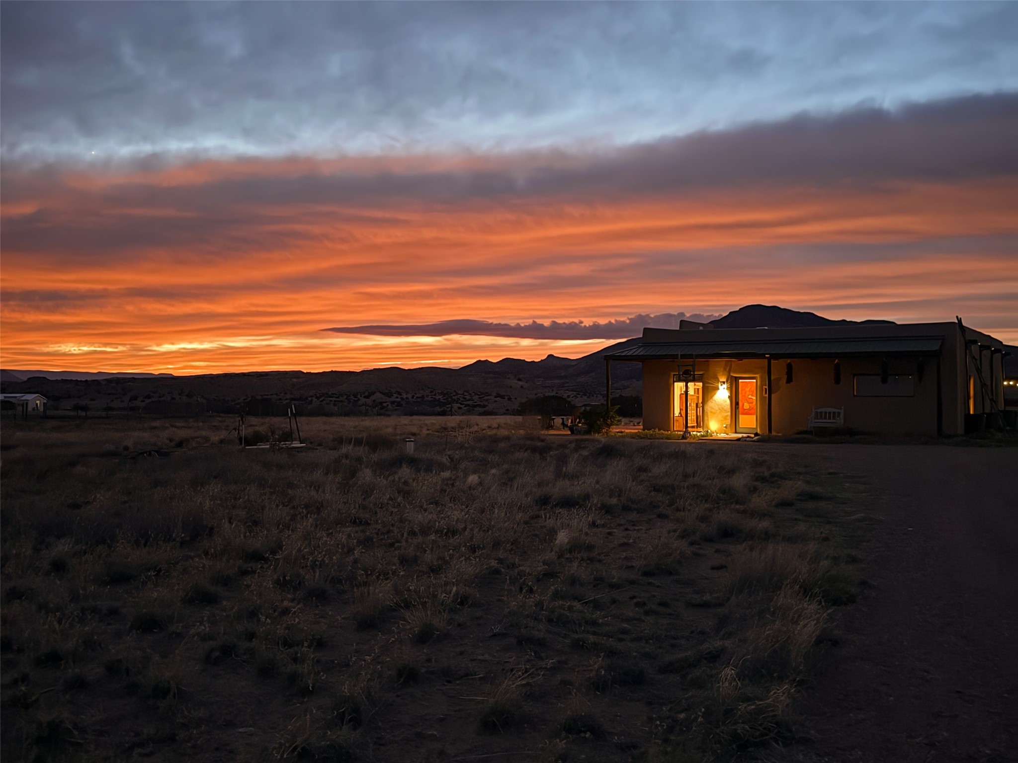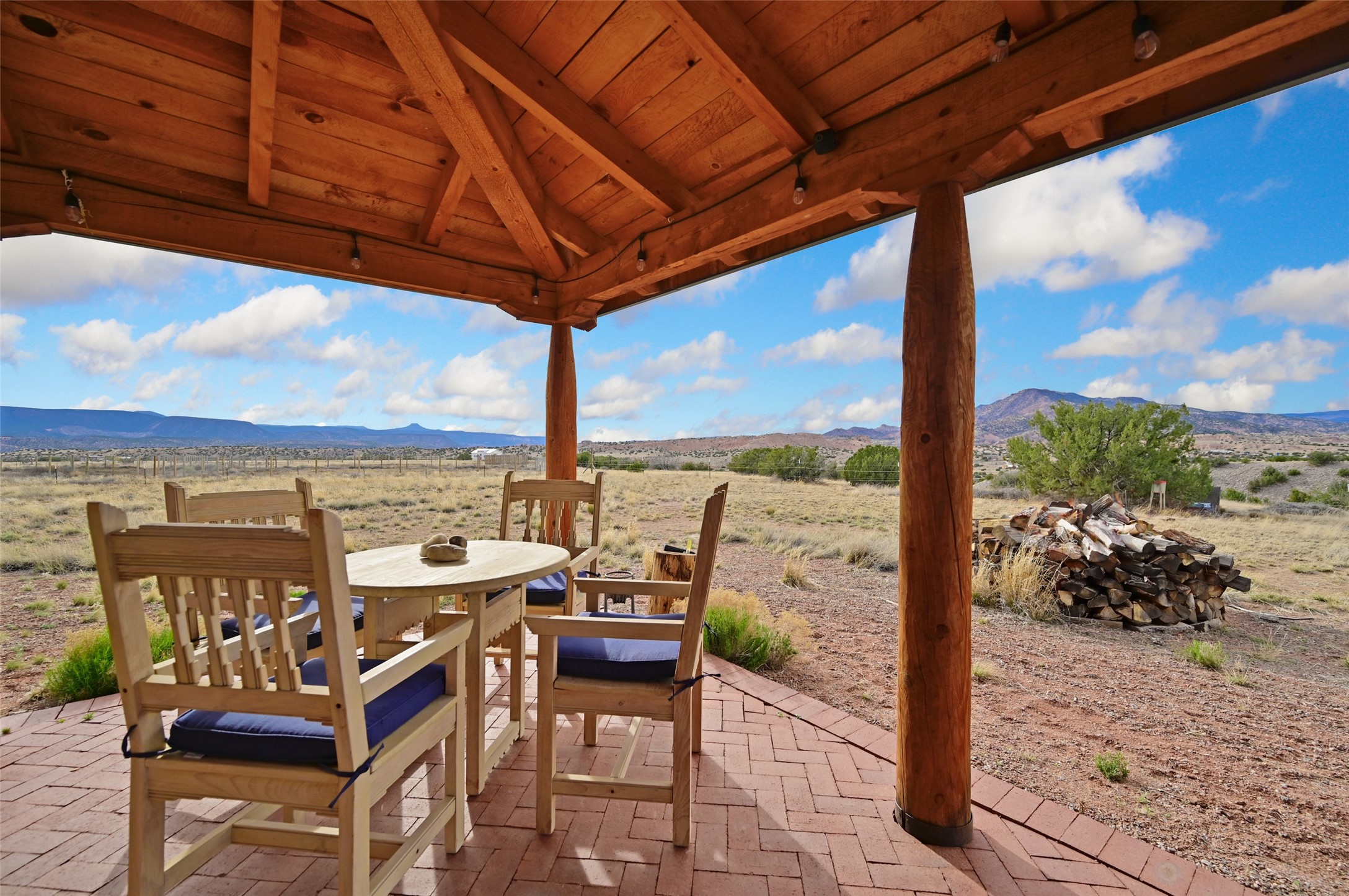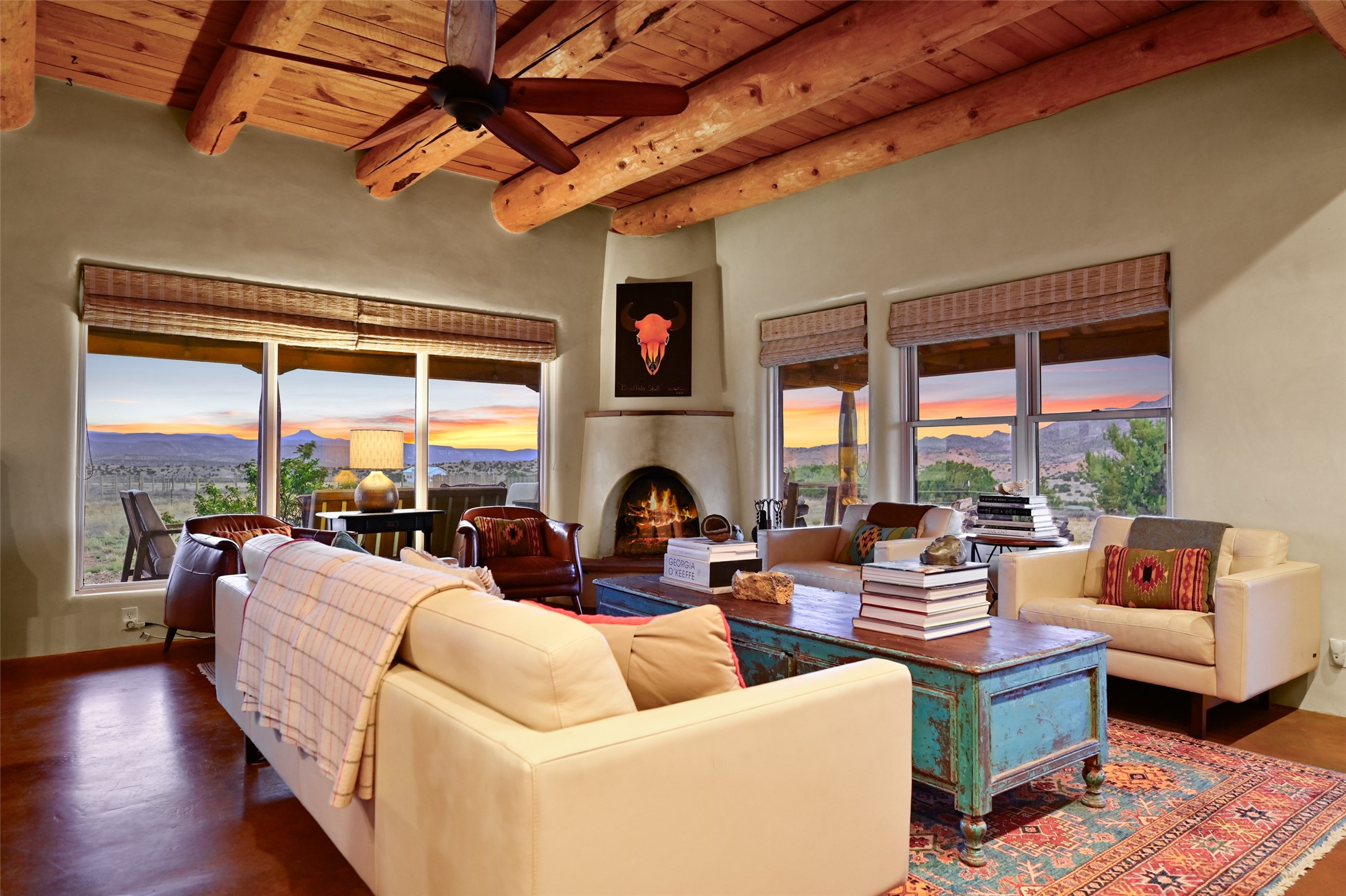 Imagine waking to endless skies, where soft morning light stretches across the high desert and the only sounds are the breeze and distant birds. This is a place of deep solitude and quiet inspiration, a landscape that invites reflection, creativity, and possibility. Days unfold slowly under vast blue skies with drifting white clouds, and evenings settle into unforgettable sunsets, with the silhouette of Pedernal Mountain glowing in the distance. At night, the stars take over, offering a front-row seat to the cosmos. This is more than a home, it's an experience of living fully immersed in the spirit of Abiqui, a place long cherished by artists like Georgia O'Keeffe. Set on 2.23 acres, this well-maintained 2-bedroom, 2-bath residence offers both comfort and character. The home is thoughtfully appointed with stone countertops, stainless steel appliances, and an induction cooktop, blending modern convenience with a timeless Southwestern feel. Large picture windows expertly frame picturesque vistas from room to room. A covered portal extends the living space outdoors, perfect for entertaining or simply taking in the expansive views, while a cantina on the rear portal creates a natural gathering space for evenings under the open sky. Designed with creativity in mind, the property includes a converted barn now serving as an artist studio, an inspiring space to work and create surrounded by natural beauty. The studio is equipped with an unfinished bath and kitchenette, with all materials included to complete the vision. Additional features include covered parking, a versatile barn with a loft, roll-up door, and concrete floor, as well as additional hay storage. The property also includes a trailer that can convey with the sale, along with materials needed to finish it into guest accommodations or additional living space, offering excellent flexibility and potential. Located near Abiquiu Lake, Ghost Ranch, Plaza Blanca, and Poshuouinge Ruins, the property offers access to some of the Southwest's most iconic landscapes, along with local shops and dining in the Abiqui area. Whether you're seeking a creative sanctuary, a peaceful escape, or a place to live in harmony with the land, 4 Fair Hope Drive offers an extraordinary opportunity to step into a lifestyle defined by beauty, space, and inspiration.