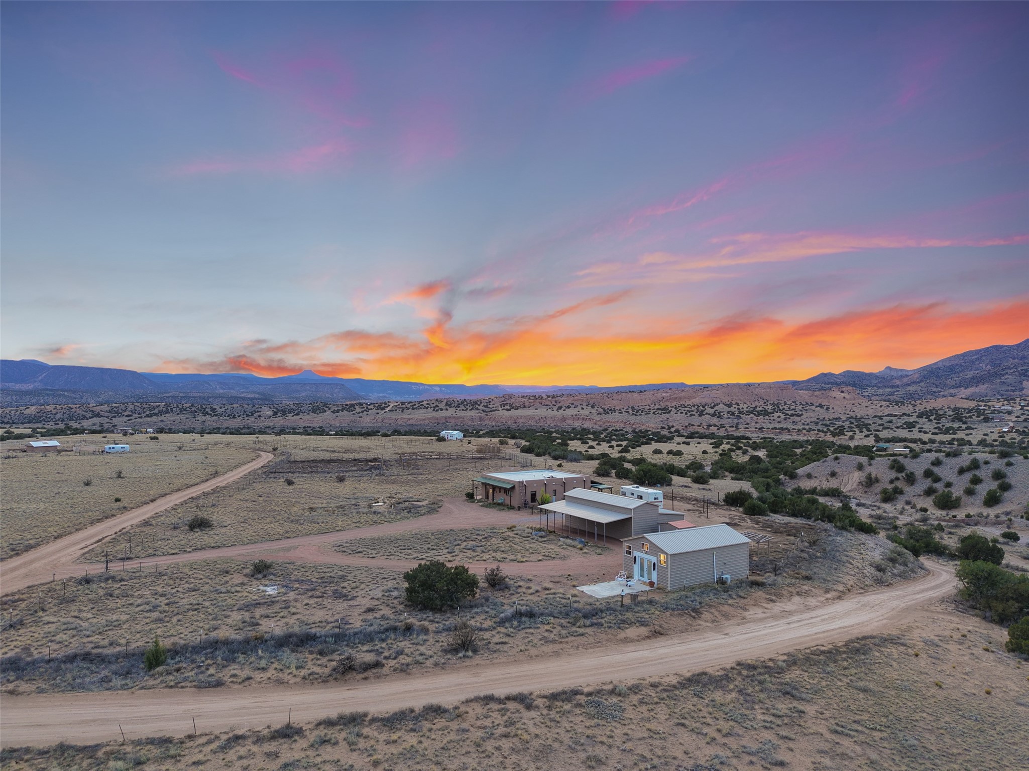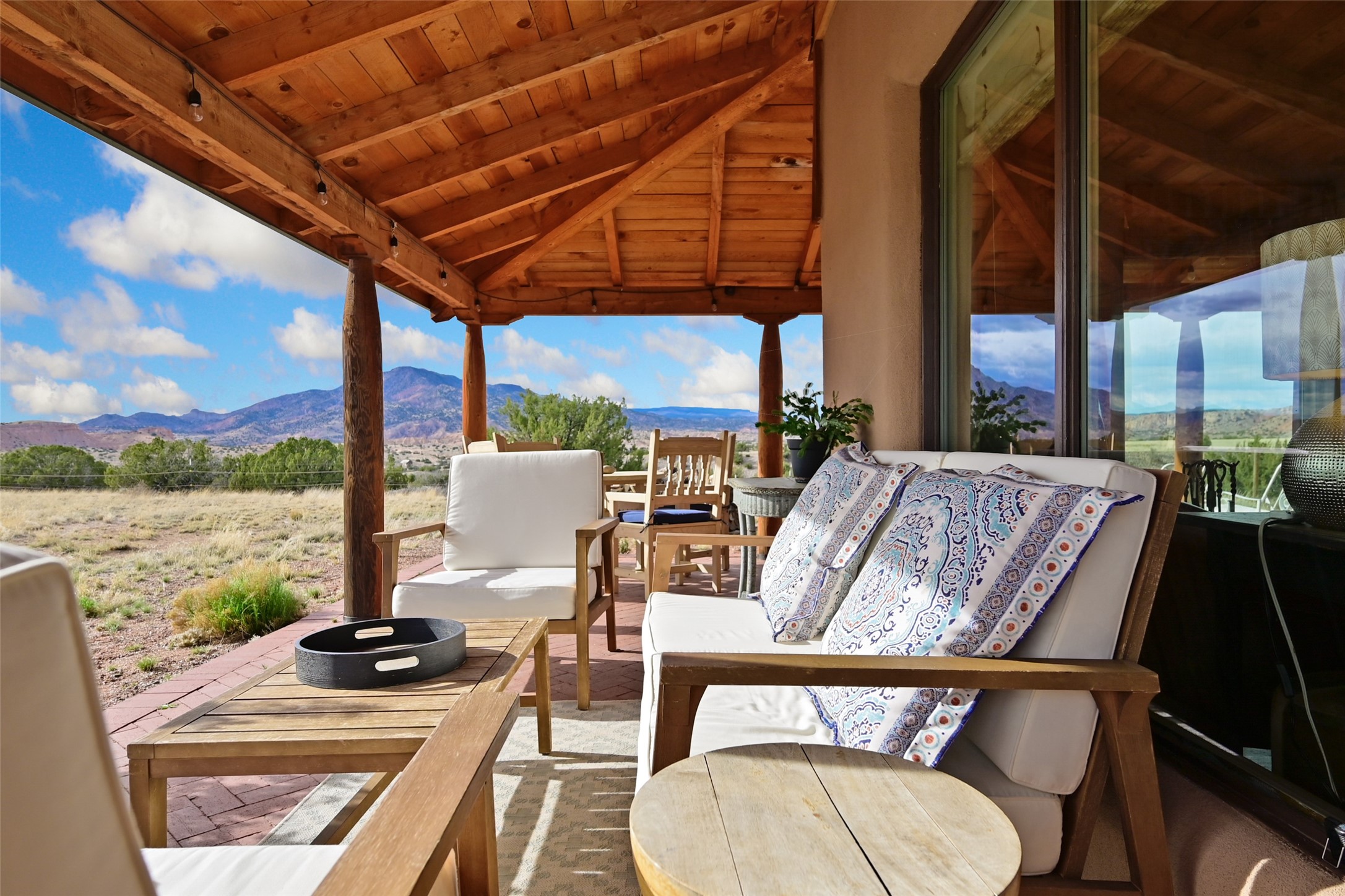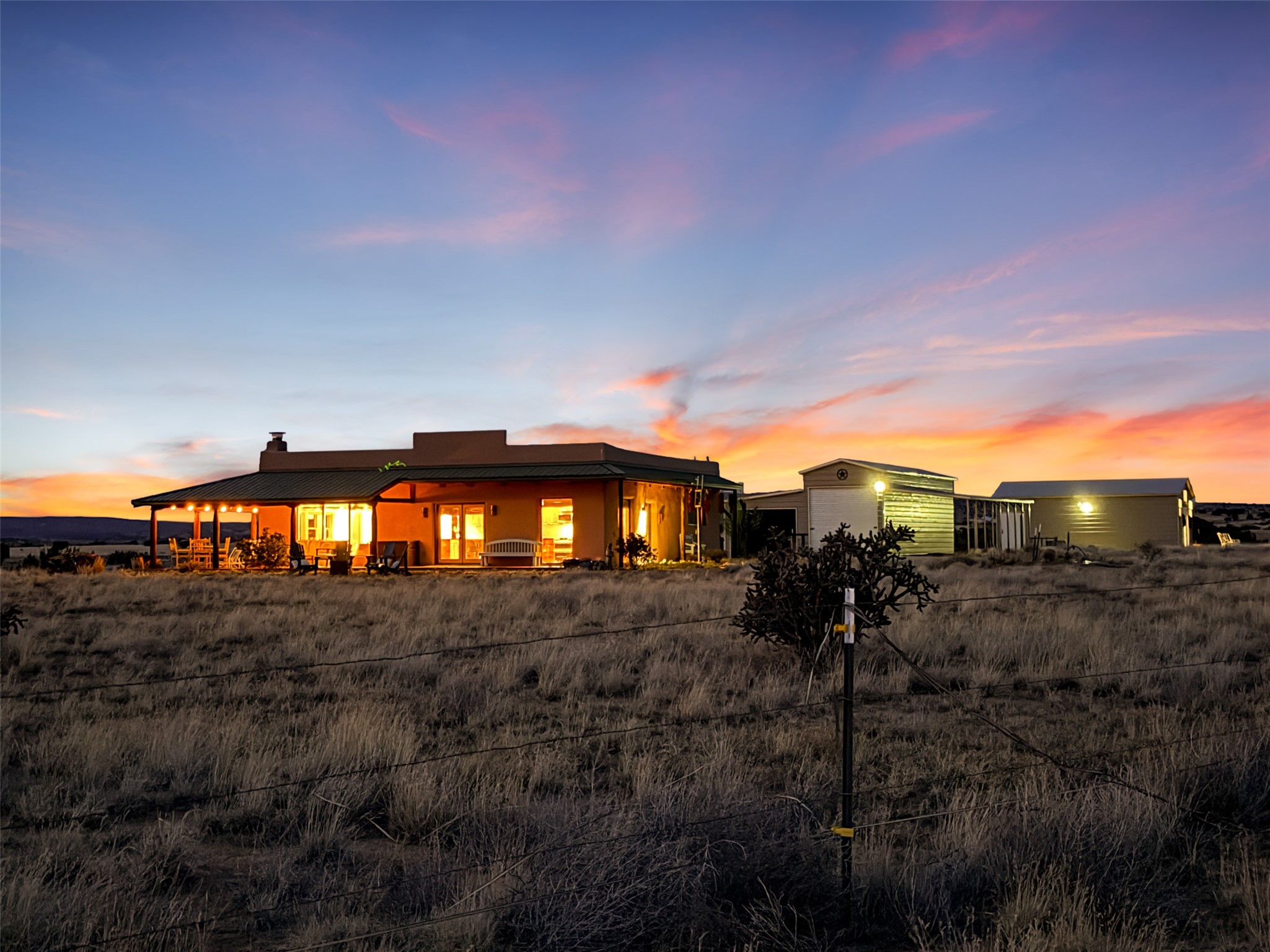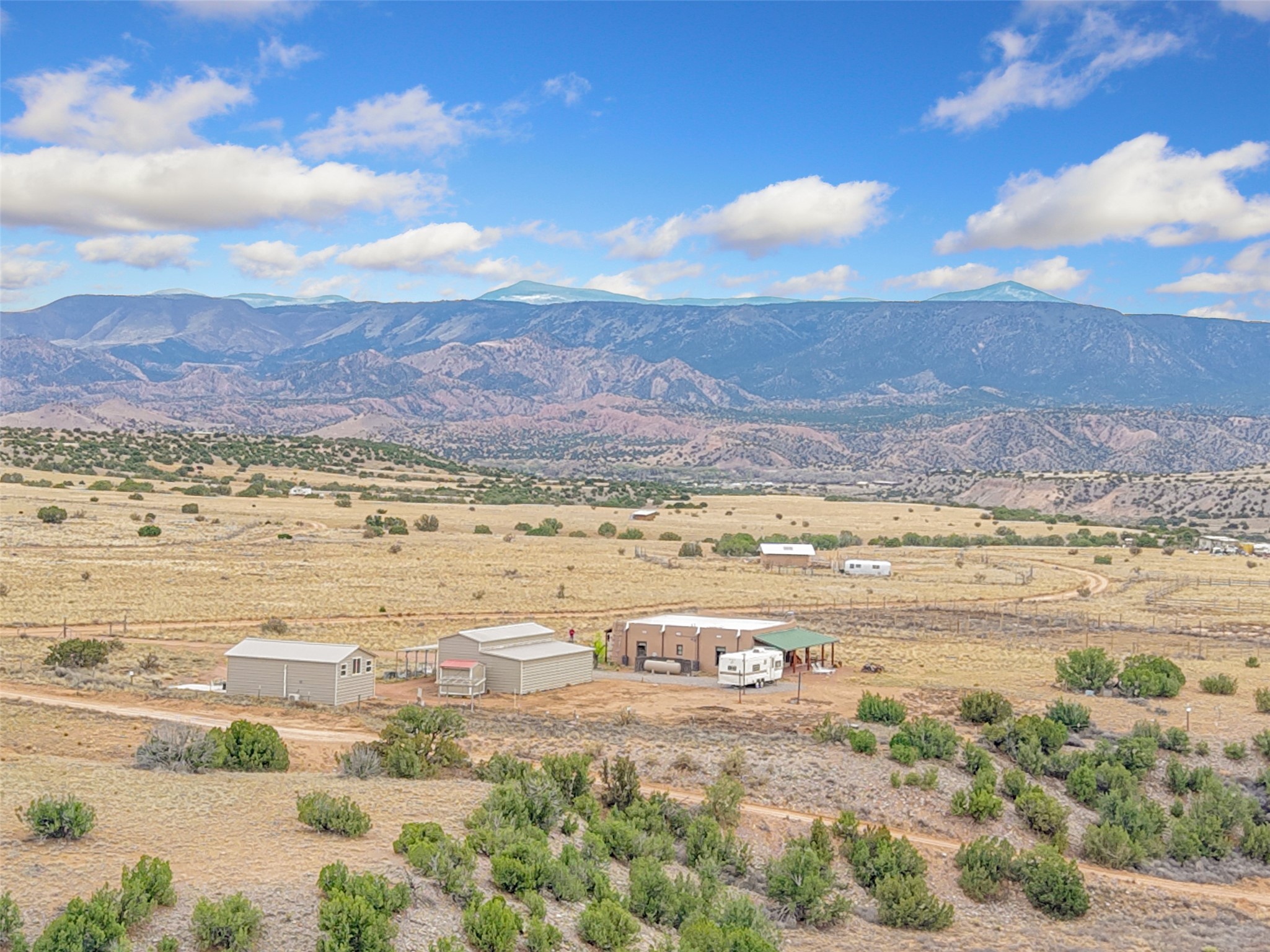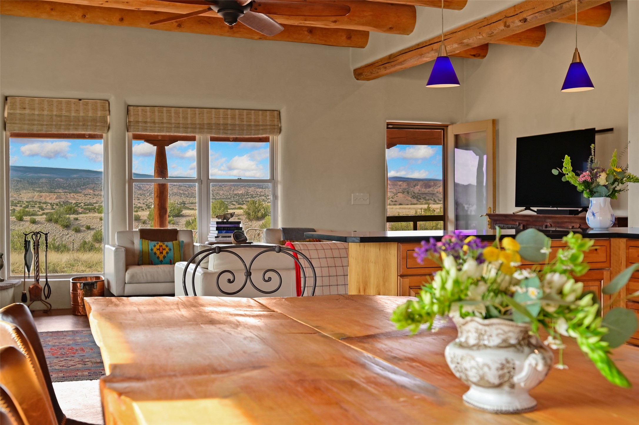 Imagine waking to endless skies, where soft morning light stretches across the high desert and the only sounds are the breeze and distant birds. This is a place of deep solitude and quiet inspiration, a landscape that invites reflection, creativity, and possibility. Days unfold slowly under vast blue skies with drifting white clouds, and evenings settle into unforgettable sunsets, with the silhouette of Pedernal Mountain glowing in the distance. At night, the stars take over, offering a front-row seat to the cosmos. This is more than a home, it's an experience of living fully immersed in the spirit of Abiqui, a place long cherished by artists like Georgia O'Keeffe. Set on 2.23 acres, this well-maintained 2-bedroom, 2-bath residence offers both comfort and character. The home is thoughtfully appointed with stone countertops, stainless steel appliances, and an induction cooktop, blending modern convenience with a timeless Southwestern feel. Large picture windows expertly frame picturesque vistas from room to room. A covered portal extends the living space outdoors, perfect for entertaining or simply taking in the expansive views, while a cantina on the rear portal creates a natural gathering space for evenings under the open sky. Designed with creativity in mind, the property includes a converted barn now serving as an artist studio, an inspiring space to work and create surrounded by natural beauty. The studio is equipped with an unfinished bath and kitchenette, with all materials included to complete the vision. Additional features include covered parking, a versatile barn with a loft, roll-up door, and concrete floor, as well as additional hay storage. The property also includes a trailer that can convey with the sale, along with materials needed to finish it into guest accommodations or additional living space, offering excellent flexibility and potential. Located near Abiquiu Lake, Ghost Ranch, Plaza Blanca, and Poshuouinge Ruins, the property offers access to some of the Southwest's most iconic landscapes, along with local shops and dining in the Abiqui area. Whether you're seeking a creative sanctuary, a peaceful escape, or a place to live in harmony with the land, 4 Fair Hope Drive offers an extraordinary opportunity to step into a lifestyle defined by beauty, space, and inspiration.