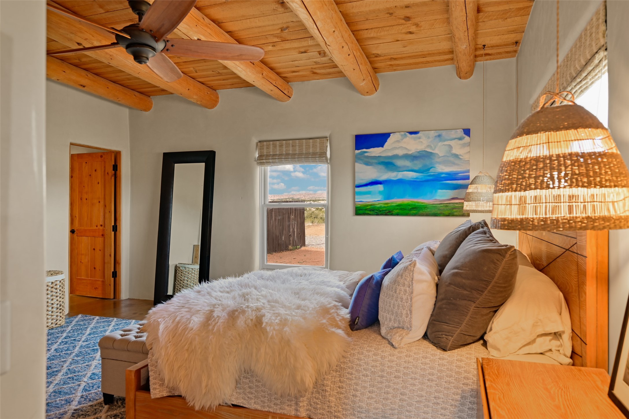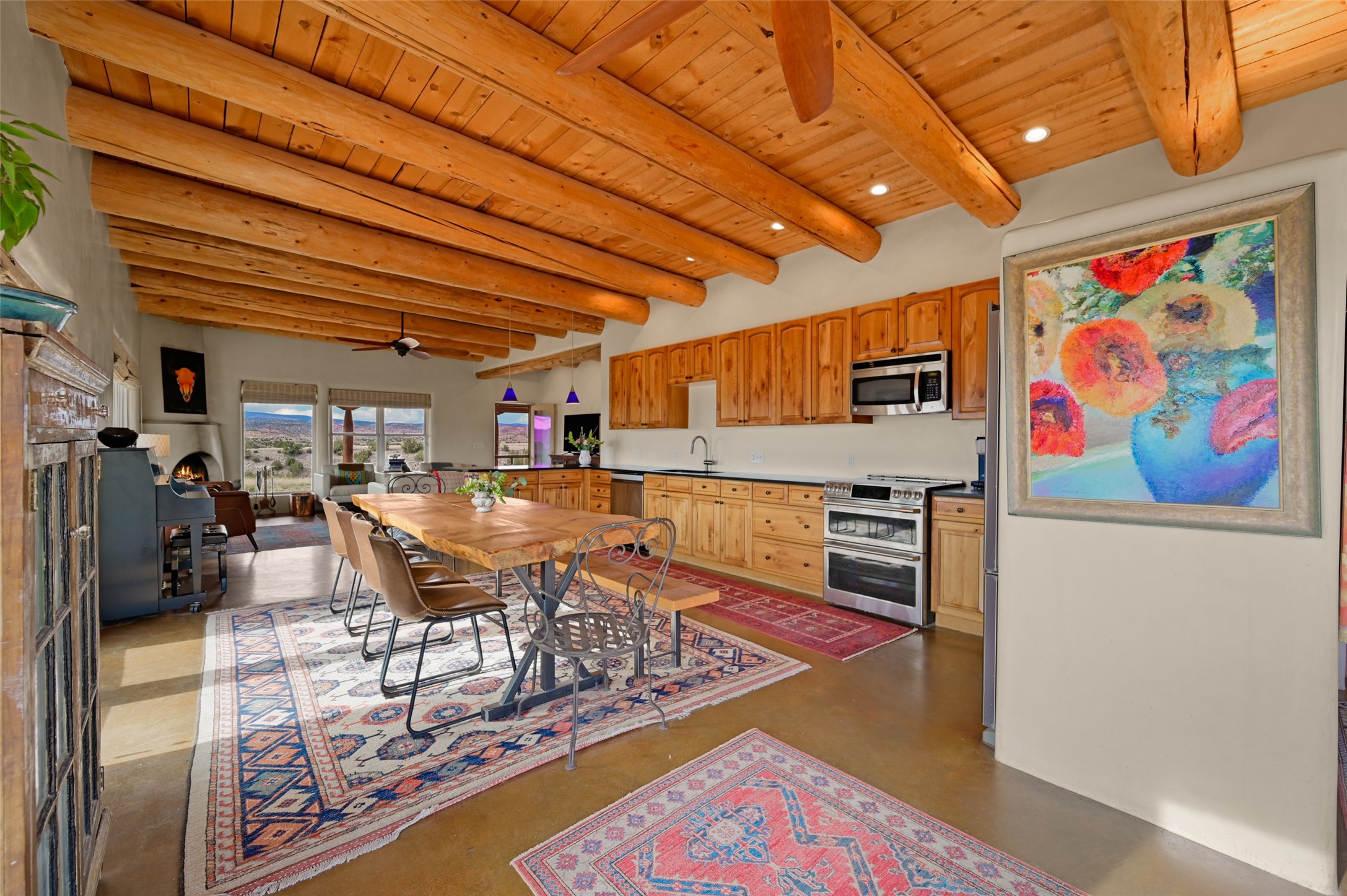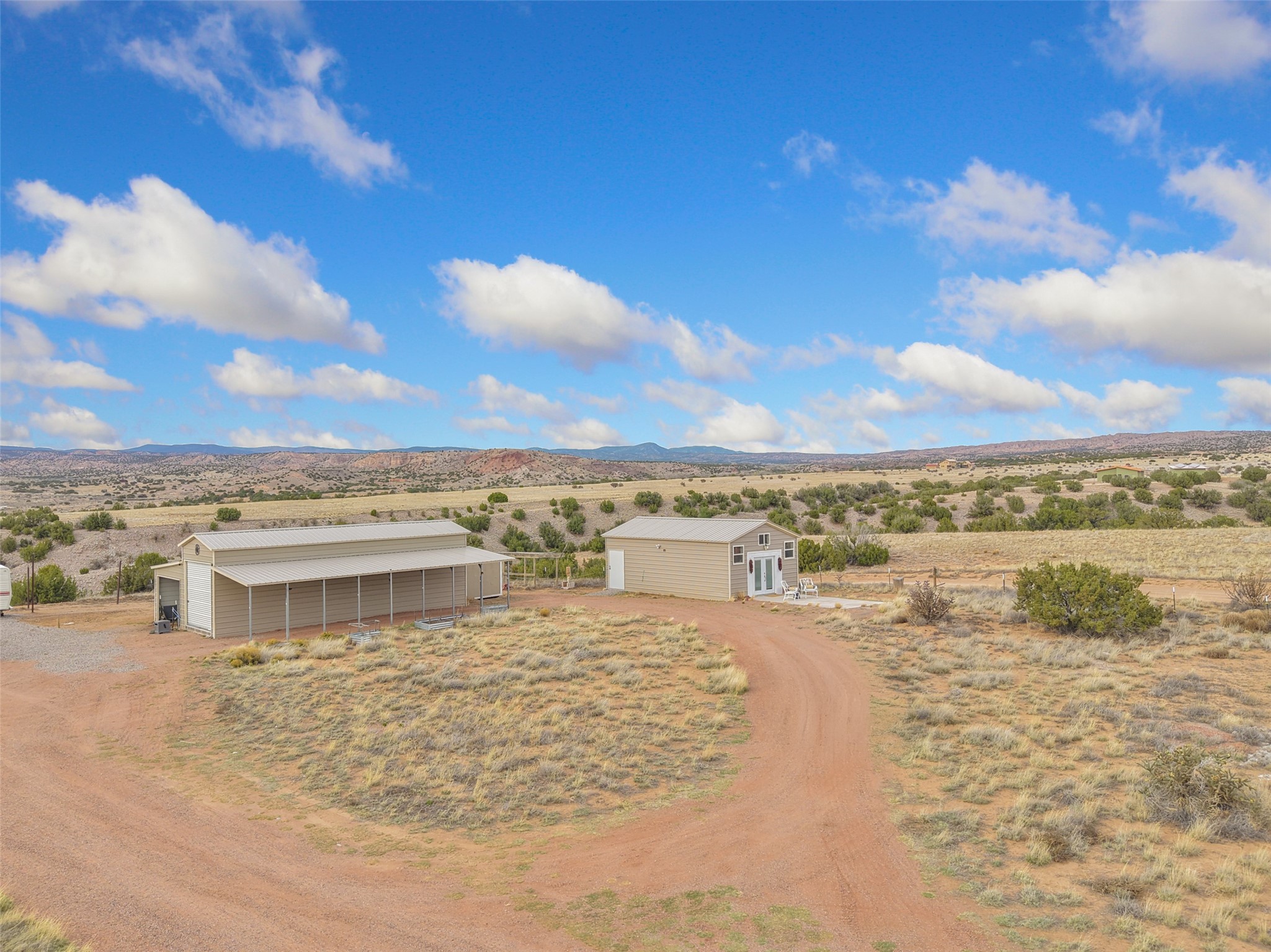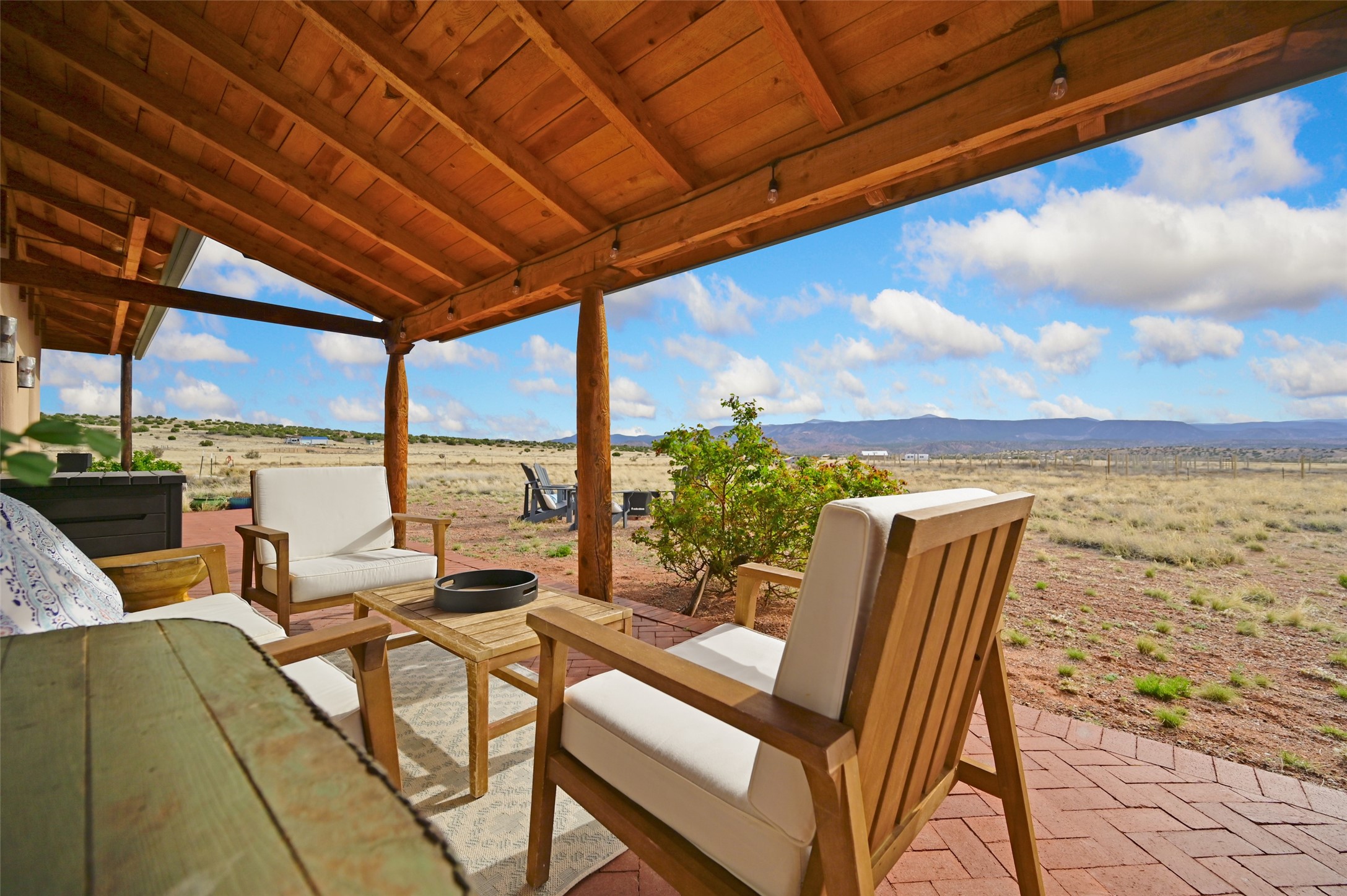 Imagine waking to endless skies, where soft morning light stretches across the high desert and the only sounds are the breeze and distant birds. This is a place of deep solitude and quiet inspiration, a landscape that invites reflection, creativity, and possibility. Days unfold slowly under vast blue skies with drifting white clouds, and evenings settle into unforgettable sunsets, with the silhouette of Pedernal Mountain glowing in the distance. At night, the stars take over, offering a front-row seat to the cosmos. This is more than a home, it's an experience of living fully immersed in the spirit of Abiqui, a place long cherished by artists like Georgia O'Keeffe. Set on 2.23 acres, this well-maintained 2-bedroom, 2-bath residence offers both comfort and character. The home is thoughtfully appointed with stone countertops, stainless steel appliances, and an induction cooktop, blending modern convenience with a timeless Southwestern feel. Large picture windows expertly frame picturesque vistas from room to room. A covered portal extends the living space outdoors, perfect for entertaining or simply taking in the expansive views, while a cantina on the rear portal creates a natural gathering space for evenings under the open sky. Designed with creativity in mind, the property includes a converted barn now serving as an artist studio, an inspiring space to work and create surrounded by natural beauty. The studio is equipped with an unfinished bath and kitchenette, with all materials included to complete the vision. Additional features include covered parking, a versatile barn with a loft, roll-up door, and concrete floor, as well as additional hay storage. The property also includes a trailer that can convey with the sale, along with materials needed to finish it into guest accommodations or additional living space, offering excellent flexibility and potential. Located near Abiquiu Lake, Ghost Ranch, Plaza Blanca, and Poshuouinge Ruins, the property offers access to some of the Southwest's most iconic landscapes, along with local shops and dining in the Abiqui area. Whether you're seeking a creative sanctuary, a peaceful escape, or a place to live in harmony with the land, 4 Fair Hope Drive offers an extraordinary opportunity to step into a lifestyle defined by beauty, space, and inspiration.