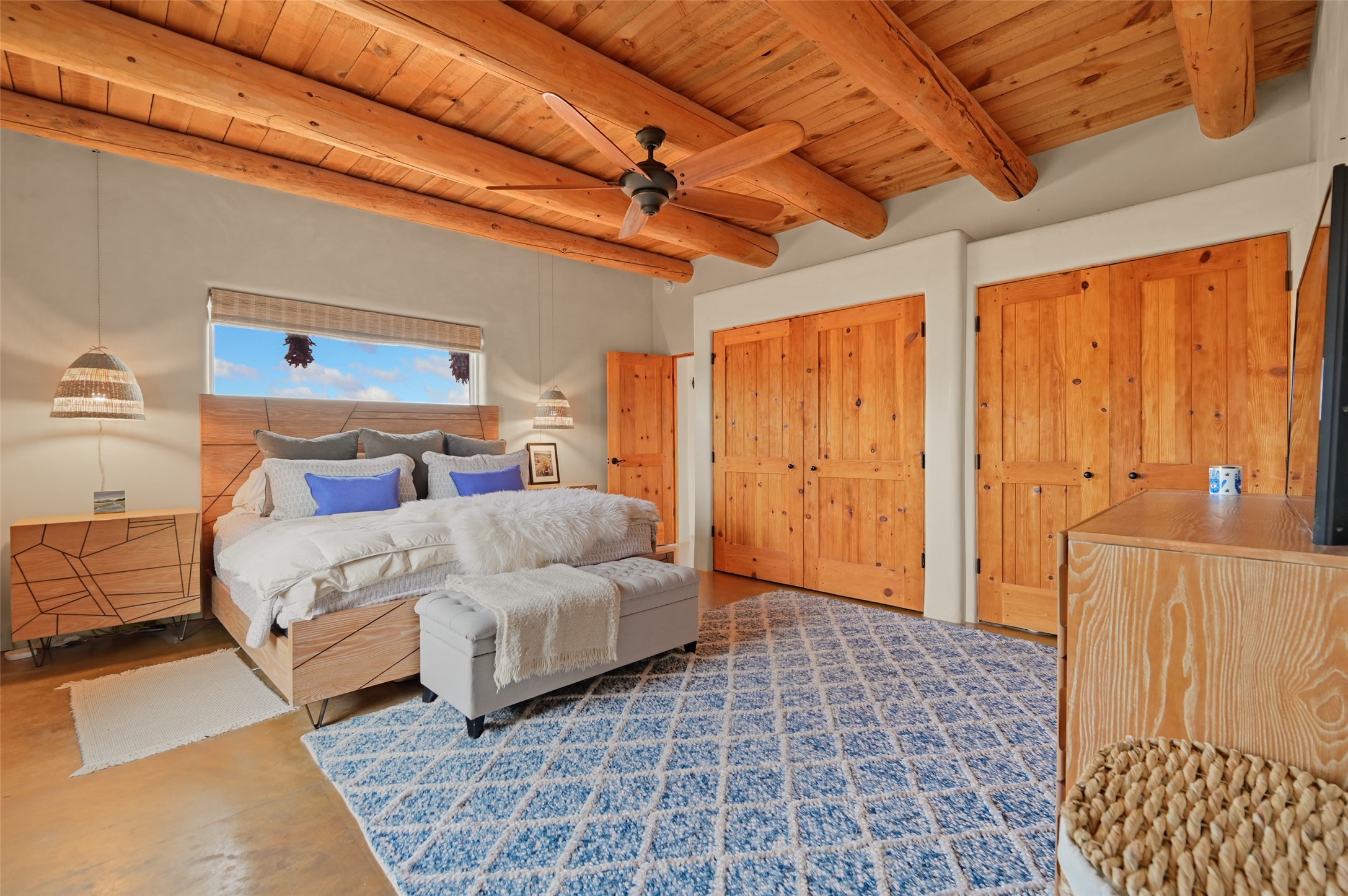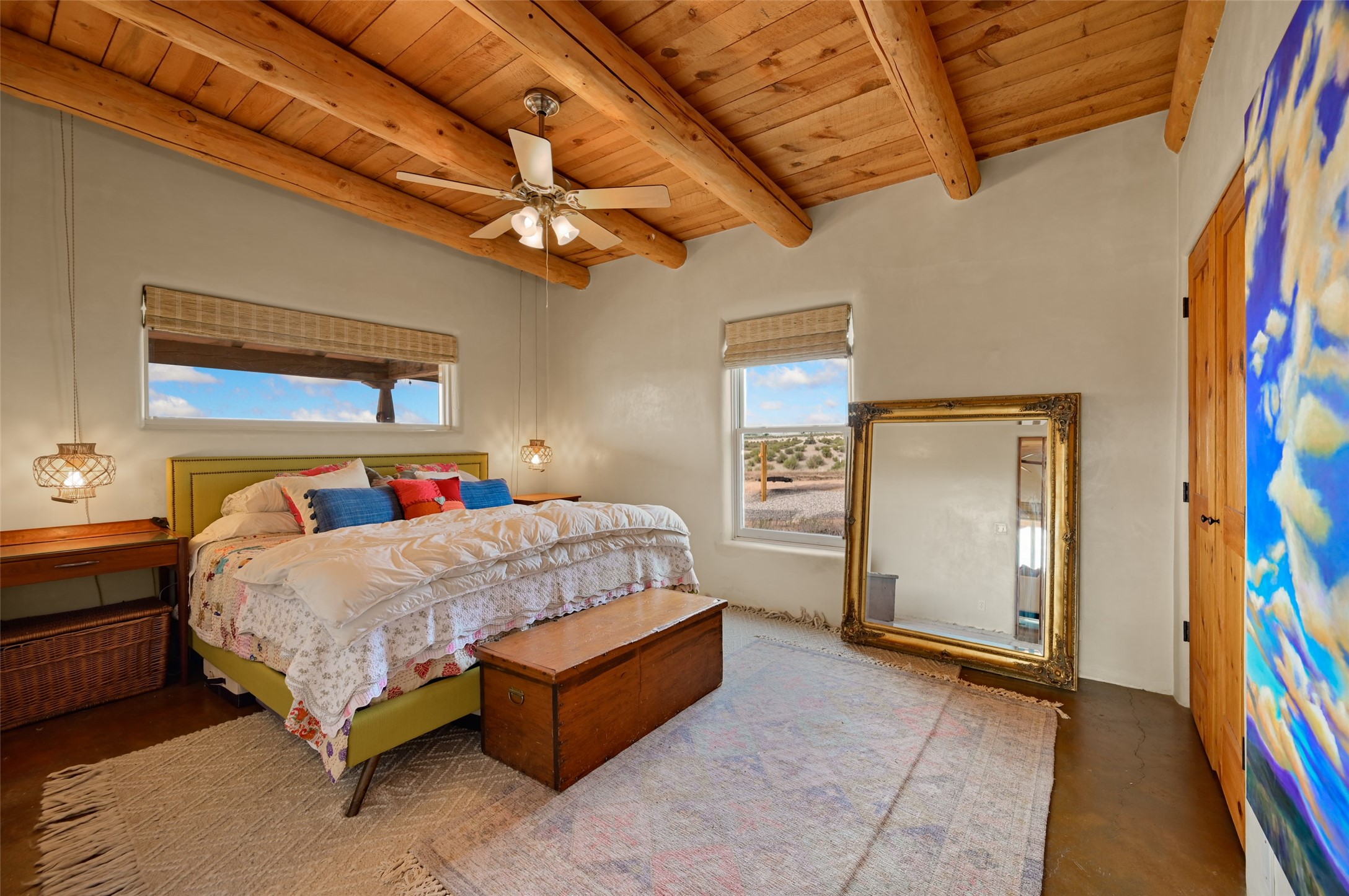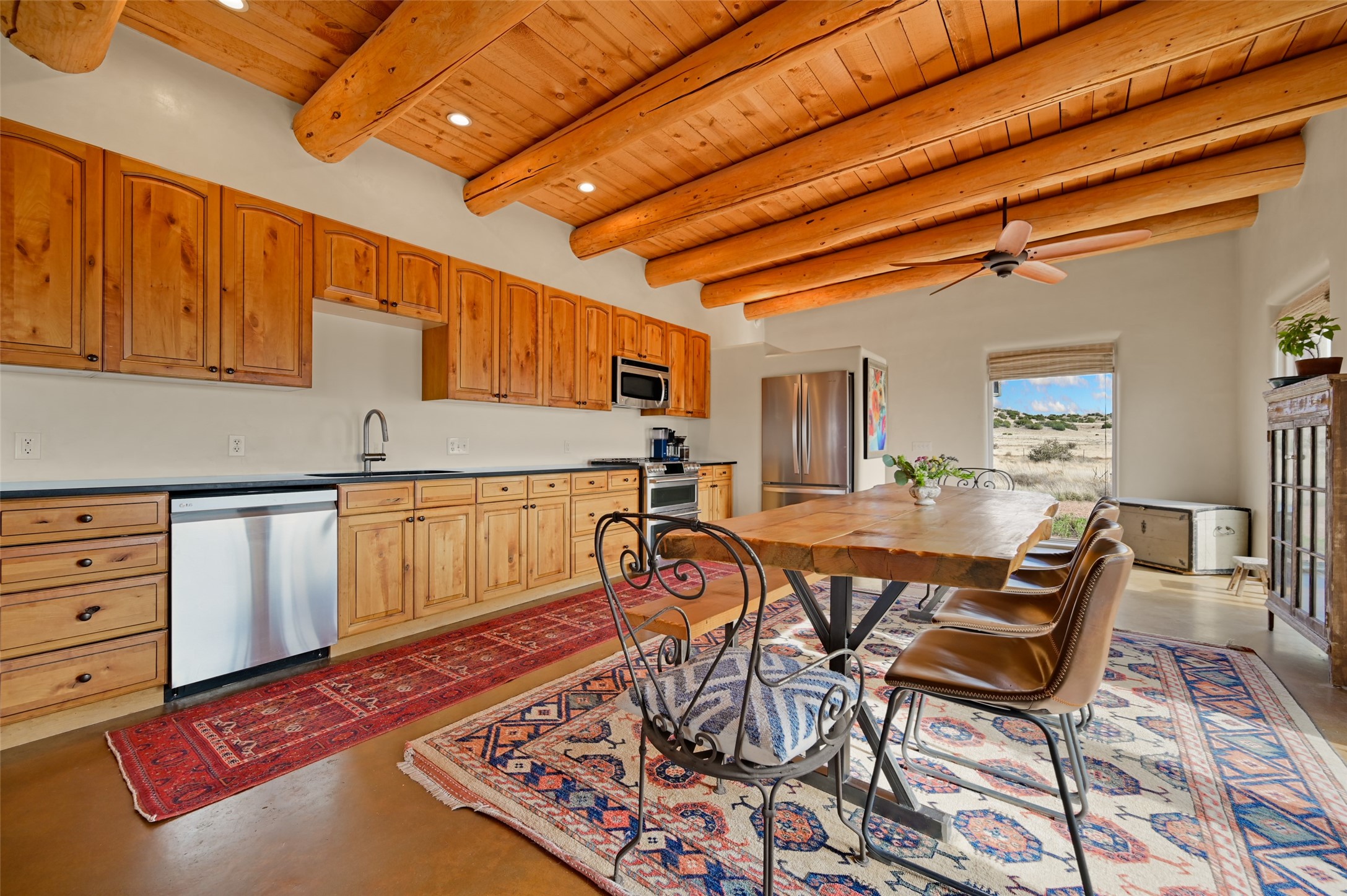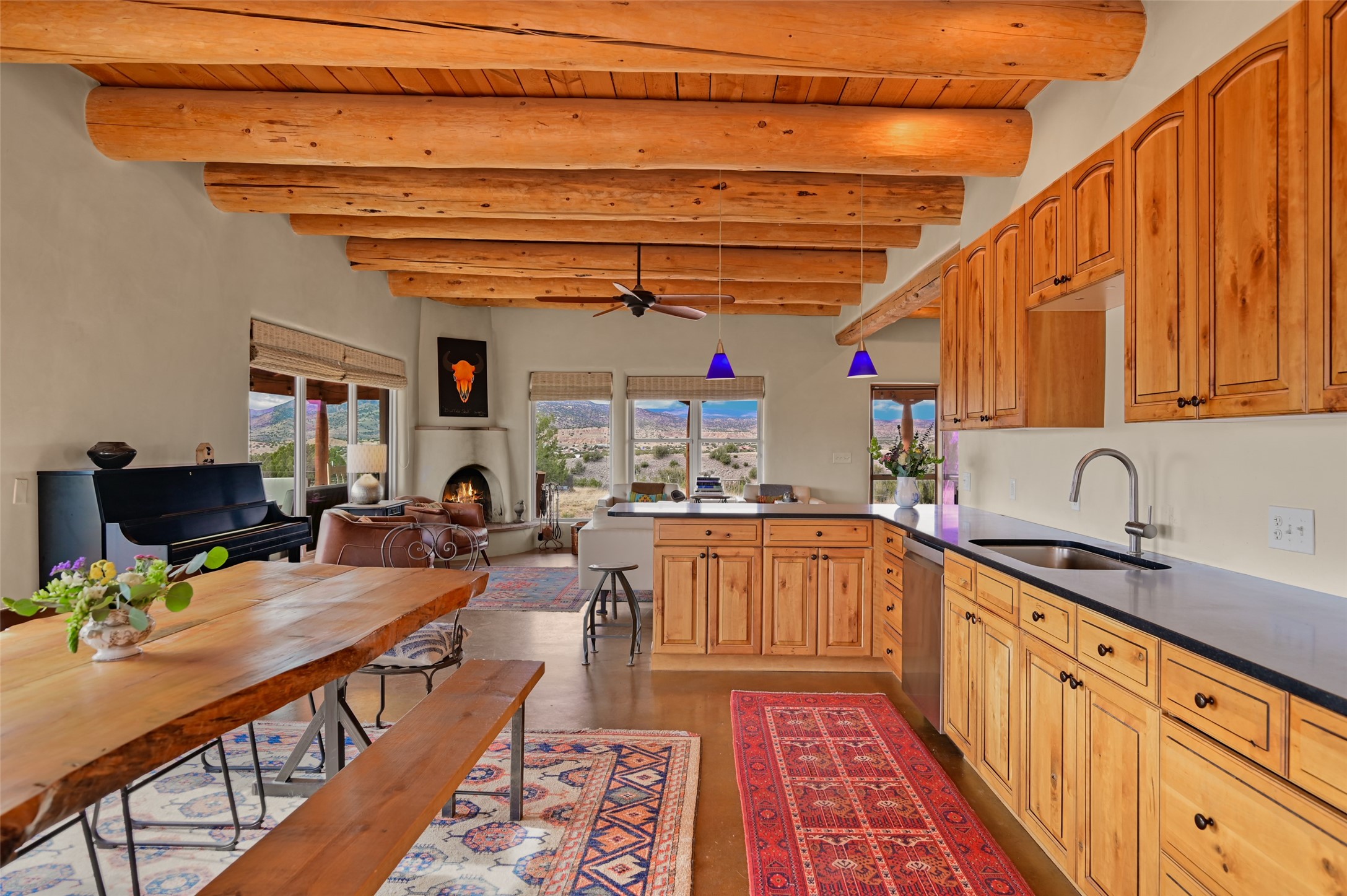 Imagine waking to endless skies, where soft morning light stretches across the high desert and the only sounds are the breeze and distant birds. This is a place of deep solitude and quiet inspiration, a landscape that invites reflection, creativity, and possibility. Days unfold slowly under vast blue skies with drifting white clouds, and evenings settle into unforgettable sunsets, with the silhouette of Pedernal Mountain glowing in the distance. At night, the stars take over, offering a front-row seat to the cosmos. This is more than a home, it's an experience of living fully immersed in the spirit of Abiqui, a place long cherished by artists like Georgia O'Keeffe. Set on 2.23 acres, this well-maintained 2-bedroom, 2-bath residence offers both comfort and character. The home is thoughtfully appointed with stone countertops, stainless steel appliances, and an induction cooktop, blending modern convenience with a timeless Southwestern feel. Large picture windows expertly frame picturesque vistas from room to room. A covered portal extends the living space outdoors, perfect for entertaining or simply taking in the expansive views, while a cantina on the rear portal creates a natural gathering space for evenings under the open sky. Designed with creativity in mind, the property includes a converted barn now serving as an artist studio, an inspiring space to work and create surrounded by natural beauty. The studio is equipped with an unfinished bath and kitchenette, with all materials included to complete the vision. Additional features include covered parking, a versatile barn with a loft, roll-up door, and concrete floor, as well as additional hay storage. The property also includes a trailer that can convey with the sale, along with materials needed to finish it into guest accommodations or additional living space, offering excellent flexibility and potential. Located near Abiquiu Lake, Ghost Ranch, Plaza Blanca, and Poshuouinge Ruins, the property offers access to some of the Southwest's most iconic landscapes, along with local shops and dining in the Abiqui area. Whether you're seeking a creative sanctuary, a peaceful escape, or a place to live in harmony with the land, 4 Fair Hope Drive offers an extraordinary opportunity to step into a lifestyle defined by beauty, space, and inspiration.