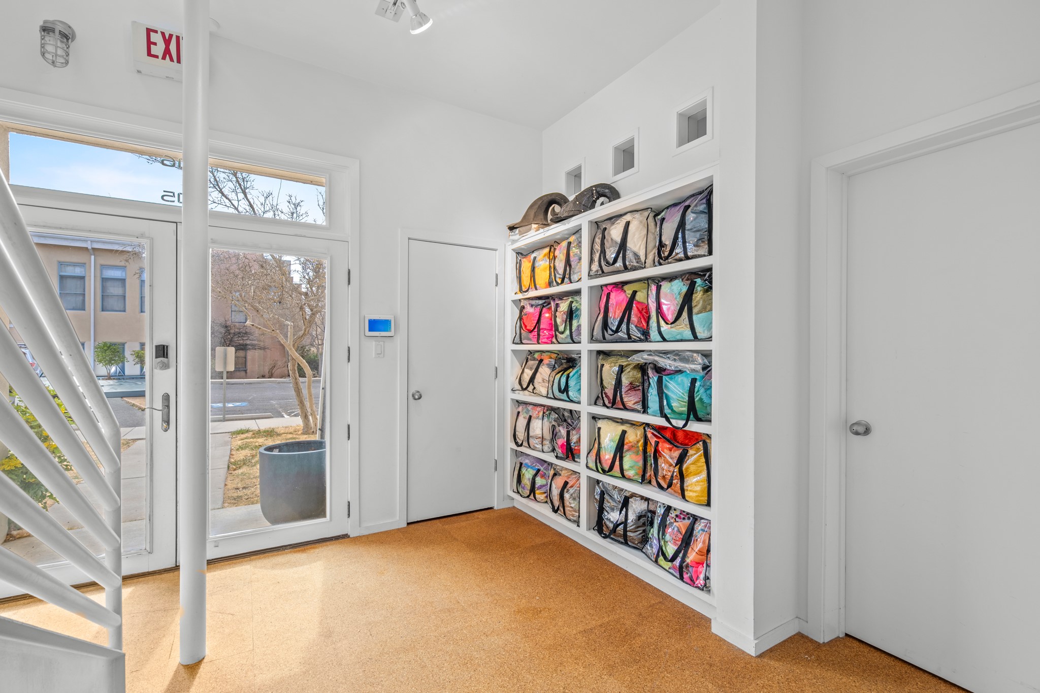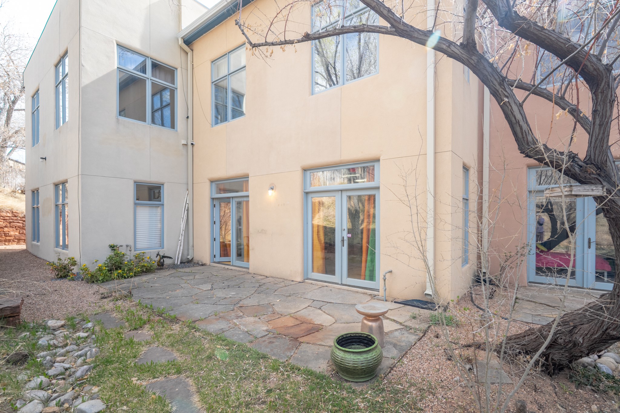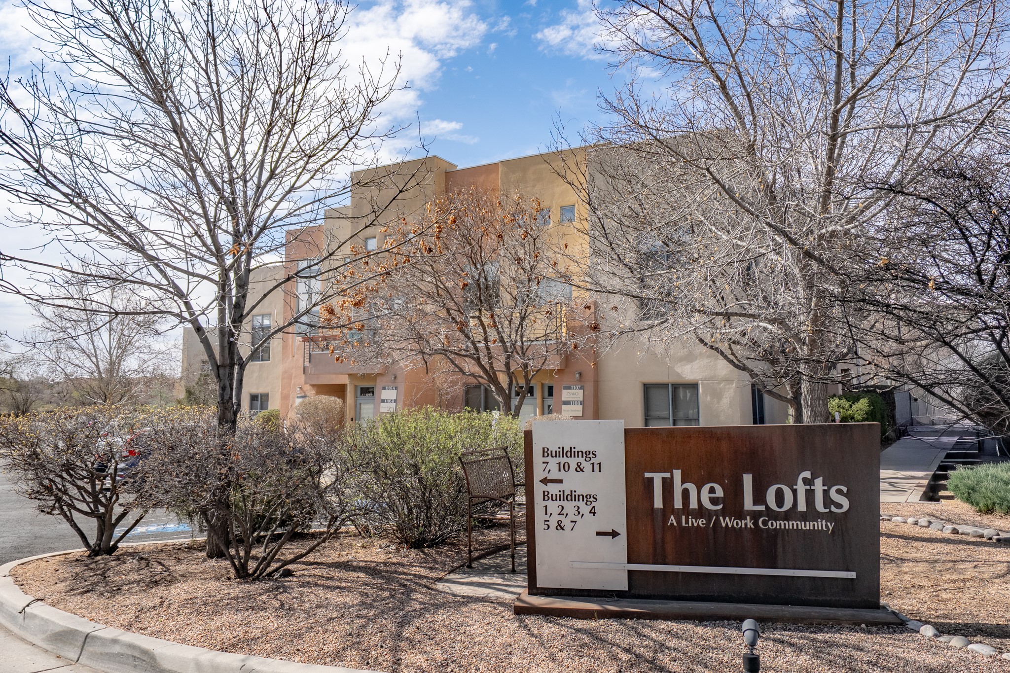 Could this be the most fabulous live / work studio in all of Santa Fe!! 2 commercially zoned live-work loft units in one.Upstairs: Completely remodeled 2 years ago. Open concept, high ceilings, very bright with skylights throughout. A 12.5x12.5 Primary Bedroom with an attached laundry space with stacked high end washer / dryer combo. The Kitchen is a high end $50K Douglas Maahs design featuring custom fixtures, custom bar / glass and lighting throughout. Many unique features were added at the time of installation. The primary bathroom is custom designed with zen copper and brass piping with wood effect tile, oversized tub and a built in bidet toilet creating a spa like feel. In the hallway there is a custom wooden work station and two stand alone closets. The open living room and dining area face a private wooded area creating a tranquil and peaceful environment.Downstairs: There is a huge 27x24 industrial space with mirrors lining one wall, cork flooring and 2 sets of french doors leading out to a tiled patio space. This room has a sink area and additional closets for storage. There are endless possibilities for this space: yoga studio, dance studio, art studio, gathering space etc. A full bath and a second 12x12 flex room for either an office, storage or a second downstairs bedroom.There are many built in custom shelve systems and plenty of storage.2550 square feet in total with the top floor and bottom floor in equal size but in different configurations. These 2 floors can be separated into 2 unique spaces or kept as one large unit. There are many businesses and private living spaces in The Lofts Complex, commercially zoned, ample parking with handicapped parking right in front ... did I mention the large dog park just a few feet away? ... Will you be the next owners to move in and make your work / live dreams come true?