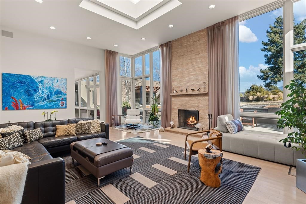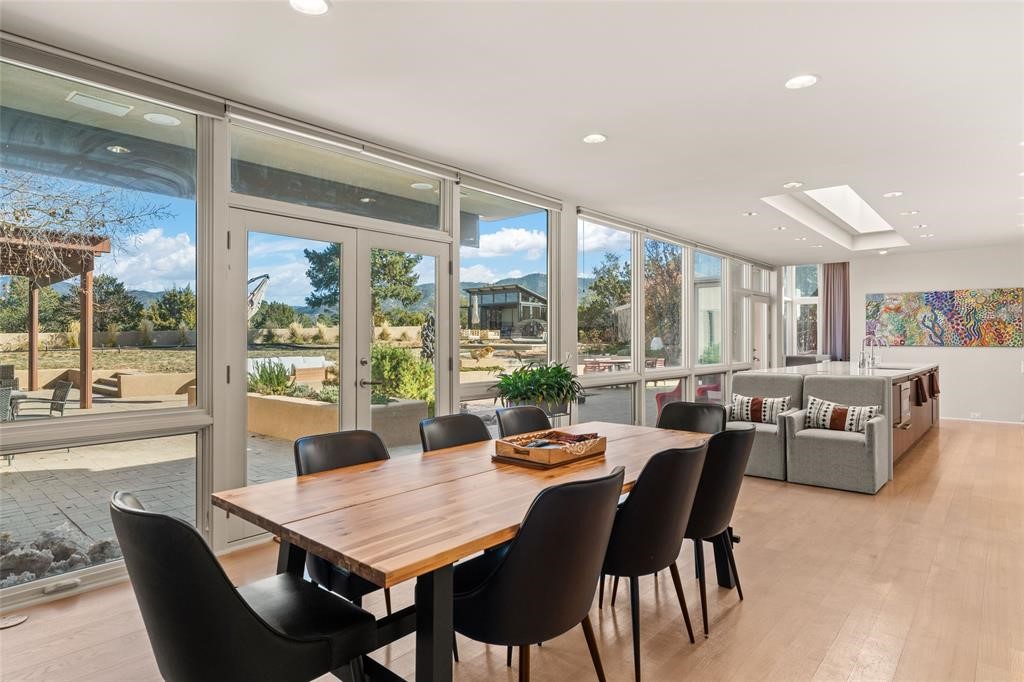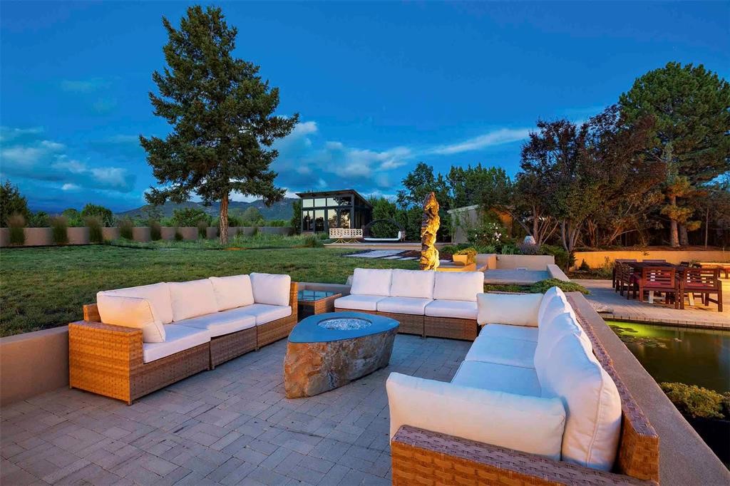 This extraordinary property is designed for a rare buyer--one who will recognize and embrace its exceptional versatility. Whether you envision a multigenerational compound, a live/work sanctuary for an artist or creative professional, or a patron-of-the-arts retreat, this home offers the space, infrastructure, and inspiration to make that vision a reality. Few properties in Santa Fe can accommodate the full spectrum of how exceptional people choose to live and create. Sited to capture breathtaking panoramic mountain views, this unique contemporary masterpiece is a triumph of design, light, and luxury. From the moment you enter, a spectacular living room unfolds--floor-to-ceiling windows and large skylight frame the surrounding landscape, flooding the space with natural light and anchoring the room around a stunning centerpiece fireplace. The chef's kitchen is perfectly designed for both everyday living and exceptional entertaining. Sleek modern cabinetry, high-end appliances, and a generous eat-in island, are all enhanced by walls of glass and complemented by an informal dining area. There are two primary suites. One offers a serene retreat with incredible views, and a brand-new spa-inspired bathroom. Adjacent, a thoughtfully designed library creates an intimate escape, accompanied by a flexible room ideal for a bedroom or workout space and an additional bath--forming a secluded suite perfect for daily comfort. A guest bedroom and bath complete the south wing of the house. The north wing is nothing short of extraordinary. A rare second primary suite and media/family room with dramatic ceiling heights, expansive display walls, and glass walls showcase uninterrupted views of the Sangre de Cristo Mountains. A versatile studio--currently used for ceramics-- and a game room offer endless possibilities as a home office, art or photo studio, or creative space. Attached guest quarters and studio apartment ensures privacy and comfort for extended family, collaborators, or visiting clients. Outside, a true backyard oasis awaits: sparkling plunge pool/spa, tranquil koi pond, large pool cabana, and fire pit--perfect for evenings under the stars or unforgettable gatherings. Located on Old Santa Fe Trail, with immediate access to the culture and dining of downtown Santa Fe and unobstructed Sangre de Cristo views that cannot be compromised, this is one of the most extraordinary offerings in the Santa Fe market.