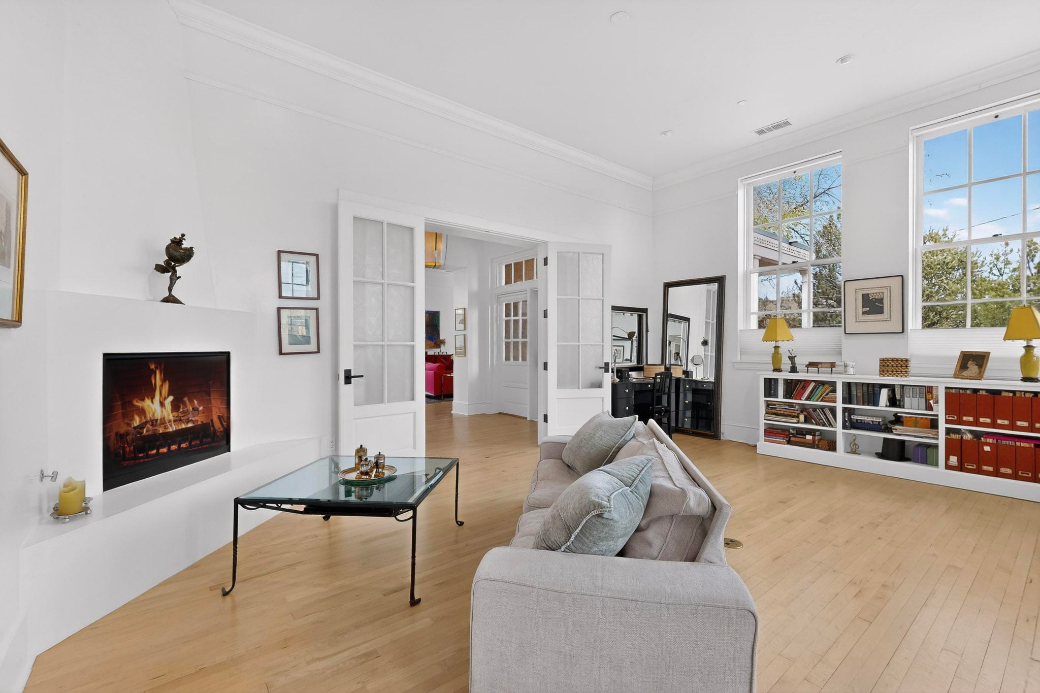 Own a rare piece of Santa Fe history. Situated on a desirable corner lot in one of Santa Fe's most sought-after neighborhoods, this exceptional condominium is part of the historic Manderfield enclave--originally designed in 1927 as a school by renowned architect John Gaw Meem. Thoughtfully reimagined by acclaimed architect Eric Enfield in collaboration with Prull Custom Homes, the property earned the prestigious 2018 Historic Preservation Award. This stunning 2,328-square-foot residence features two ensuite bedrooms and two-and-a-half baths, with soaring ceilings and abundant natural light throughout. The expansive galley kitchen is appointed with top-of-the-line appliances and custom cabinetry, seamlessly opening to a refined great room with hand-plastered walls, rich wood flooring, and a cozy gas fireplace. The oversized owner's suite offers a true retreat, complete with high ceilings, a gas fireplace, and large windows framing views of the Santa Fe foothills. Step outside to the largest courtyard in this luxury compound--an entertainer's dream. A territorial-style portal and beautifully landscaped wraparound outdoor space create the perfect setting for both intimate gatherings and relaxed evenings. Additional highlights include a coveted two-car garage and covered carport--an exceptional amenity in this area. Just moments away, enjoy a stroll down historic Canyon Road to world-class art galleries, or dine at the iconic Geronimo restaurant. This is Santa Fe living at its finest, where history, design, and location come together effortlessly.