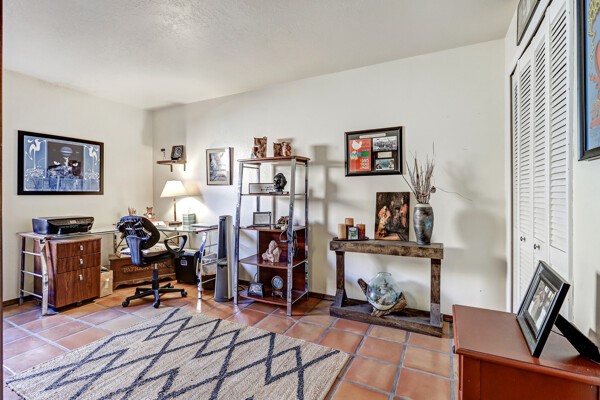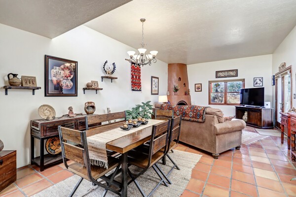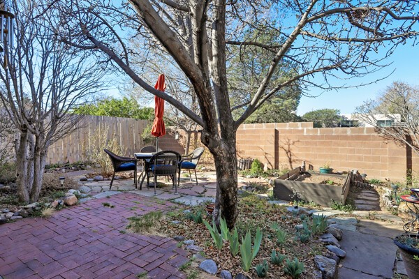 Truly charming townhouse walking to the Rodeo grounds, Genoveva Chavez Community Center and close to many shopping locations. This home boasts an open living/dining area with tons of natural light. Passive solar design, saltillo floors throughout and wood burning kiva fireplace complete the coziness. Landscaped fenced backyard and front courtyard are not on drip irrigation. When the temps get warm, the a/c will keep you cool!