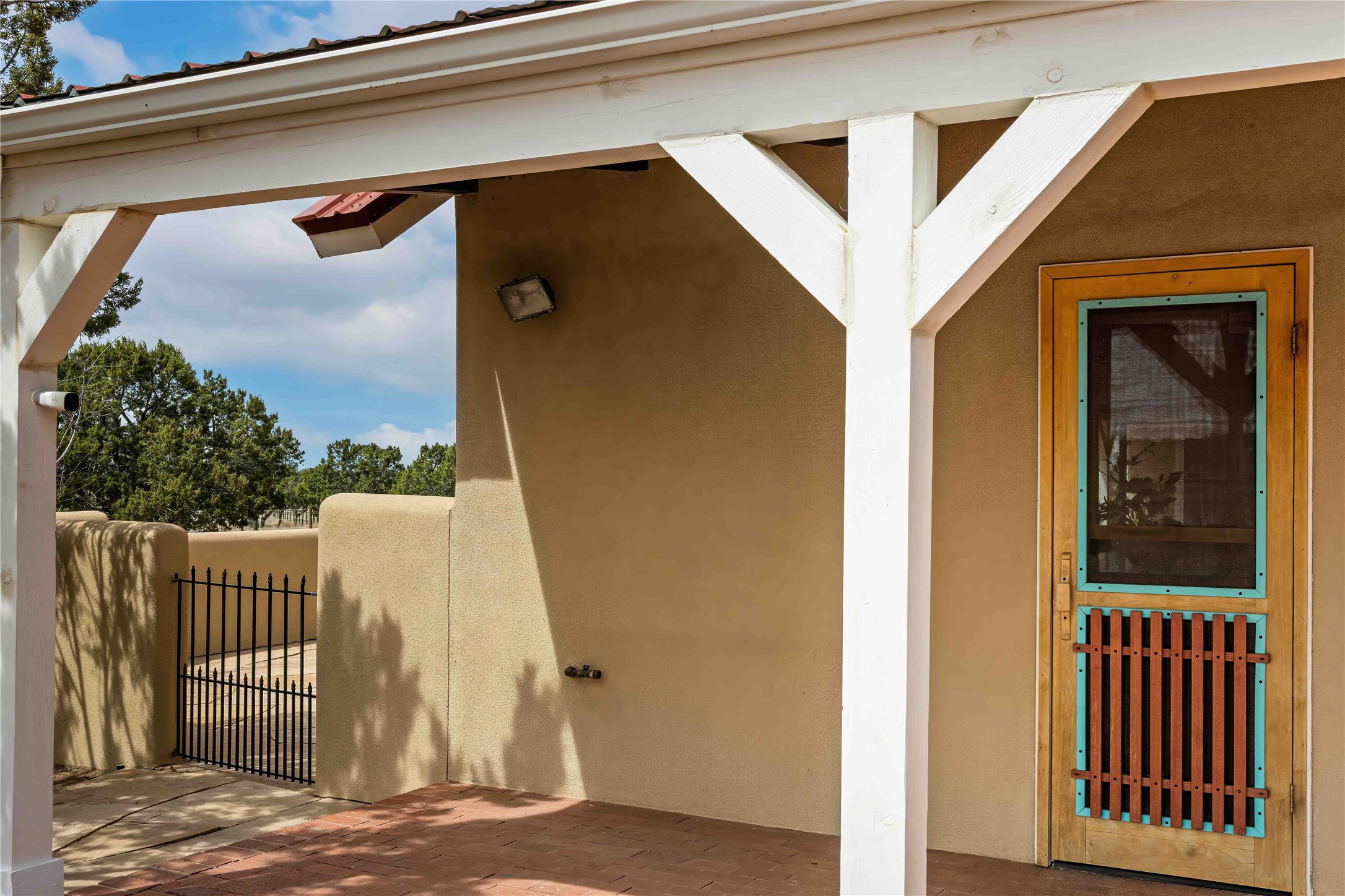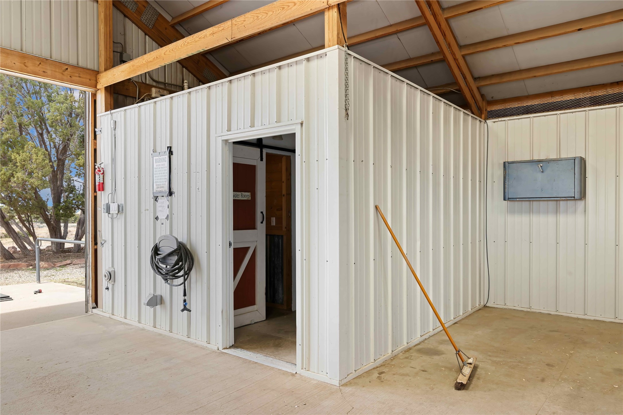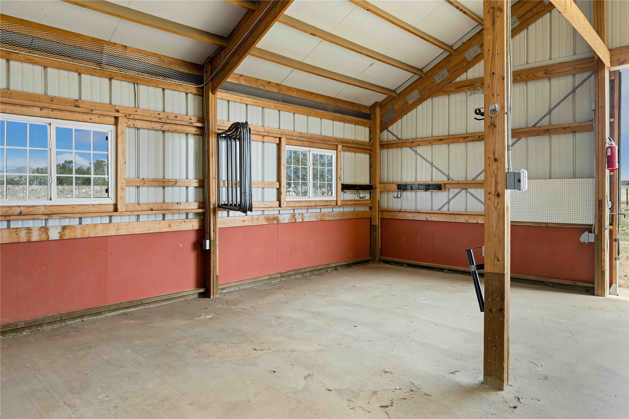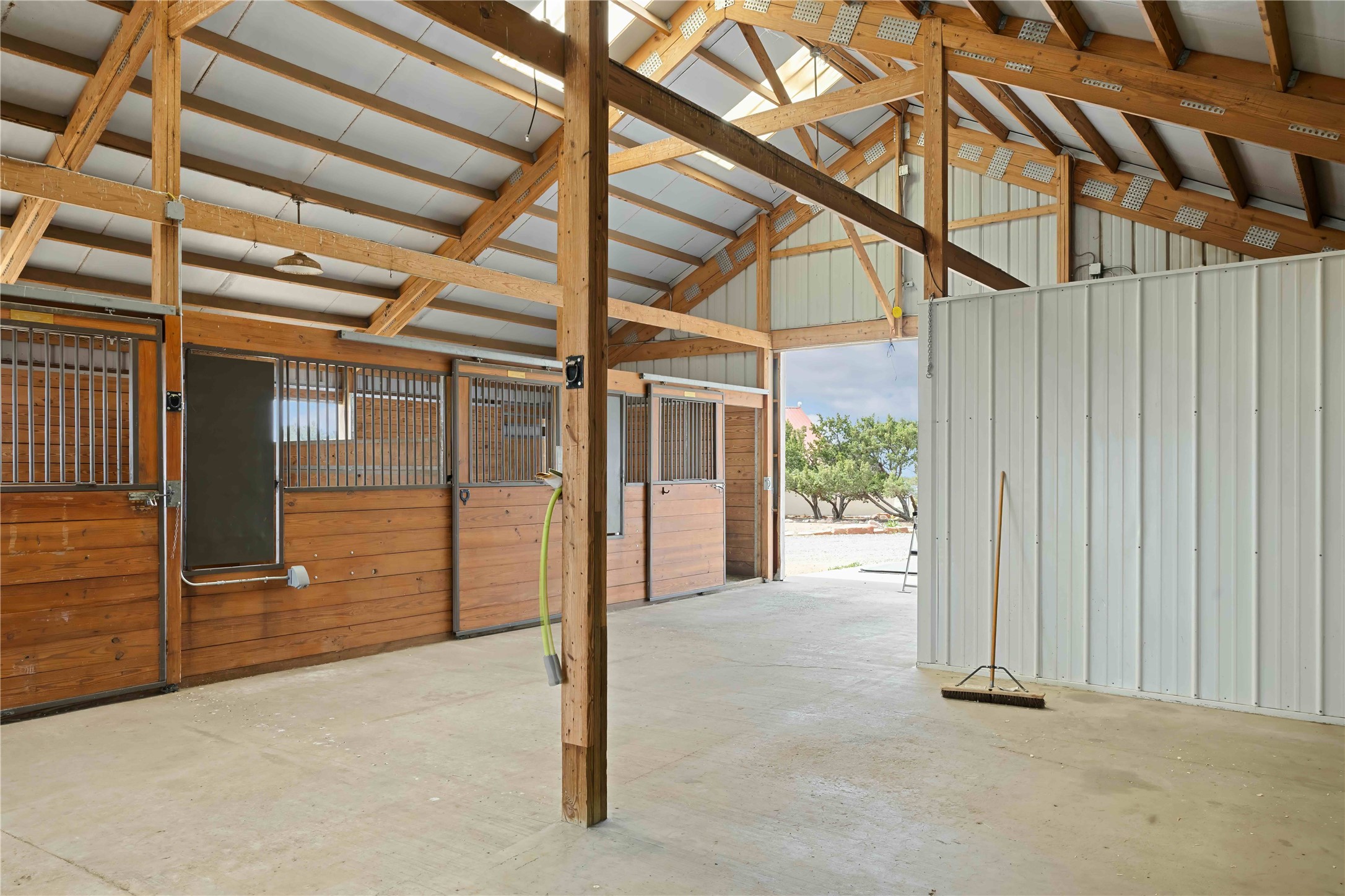 Exceptional turn-key equestrian property located in the desirable horse community, Los Caballos; 133 Jacinto is a 1,945 sq ft Northern New Mexico-style residence showcasing soaring pitched, beamed wood ceilings, sun-drenched windows, new luxury vinyl floors, and a classic brick fireplace with floor-to-ceiling glazing and sliding doors opening to a portal great for entertaining. The completely remodeled kitchen has a connected dining area making it a suitable space for everyone to gather. Both front and back patios have mountain views. The primary suite includes a large closet space, dressing area, and renovated bathroom. A second bedroom, beautiful guest bath and a flexible den/office complete the layout.The centerpiece is a 5-stall Morton barn (currently 3 oversized box stalls) with runs, attached turnouts, a tack room with 1/2 bath, hot/cold water throughout, Nelson automatic waterers, and generous grooming and storage space. A separate 2-stall barn adds its own tack room/ hay shed, and overhang. Three front paddocks with shade structures offer additional flexibility. Two arenas set this property apart: a 100200 ft main arena -- extended, laser leveled, drained, and finished with a 3" base and 2" sand layer and a 90150 ft front arena with specialized ReitenRight performance footing. A riding trail encircles the property, with access to additional trails throughout the community. Solar panels and a 10,000 gallon rainwater catchment system with drip irrigation enhance the property's sustainability and keep utility costs impressively low.Make an appointment to see this spectacular property today.