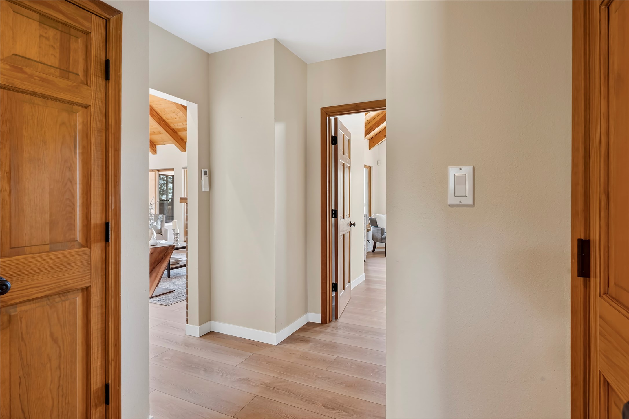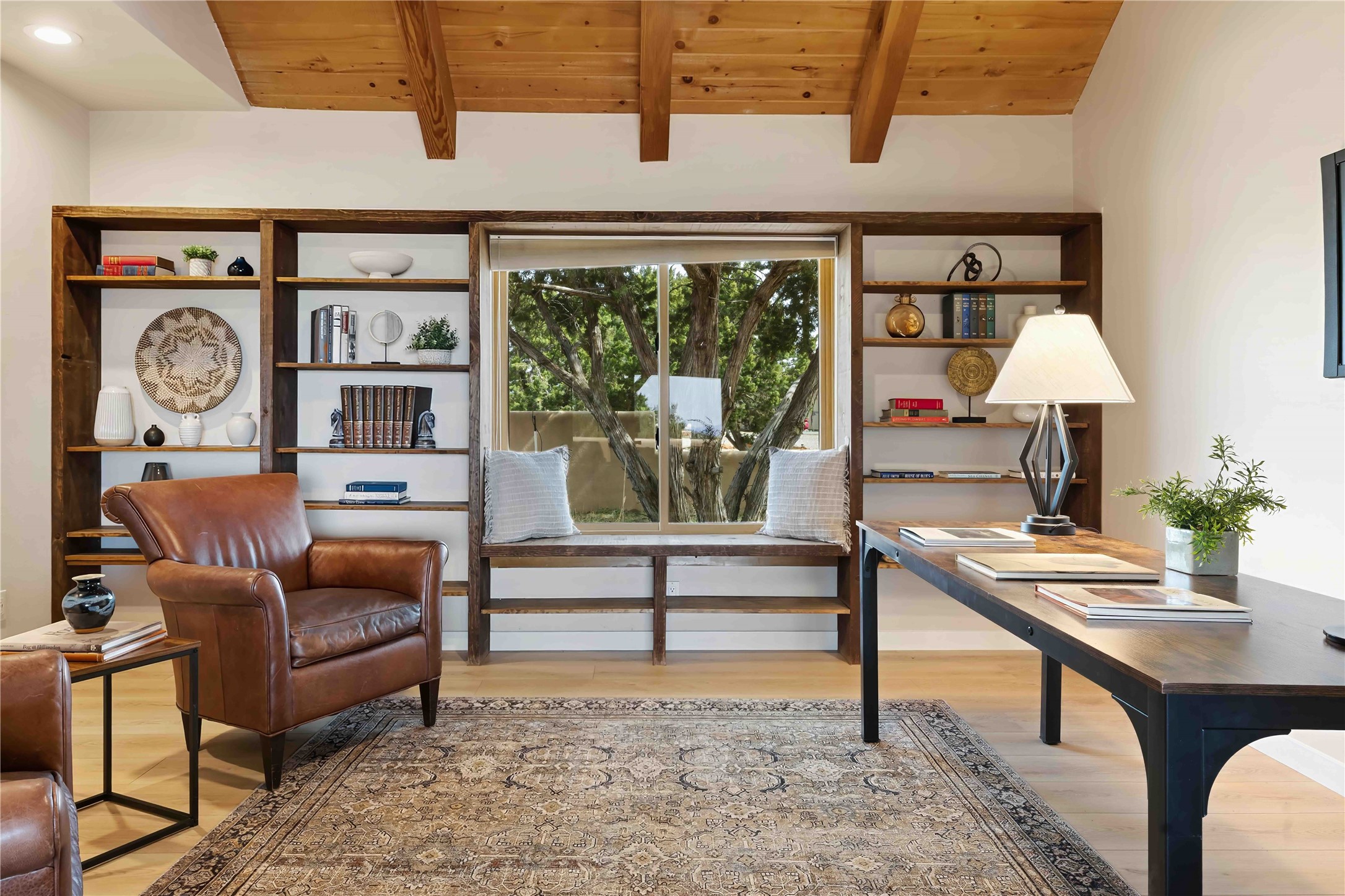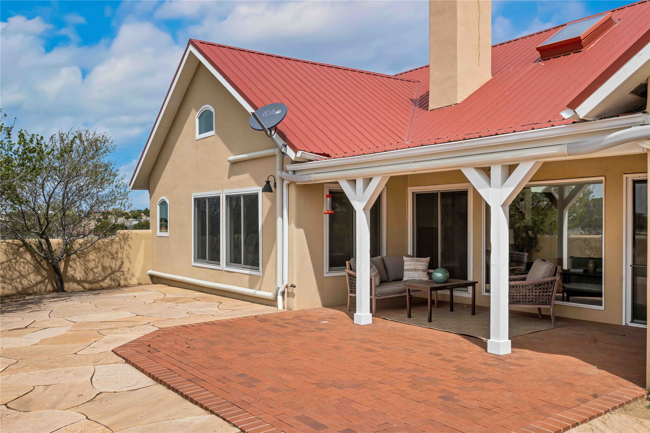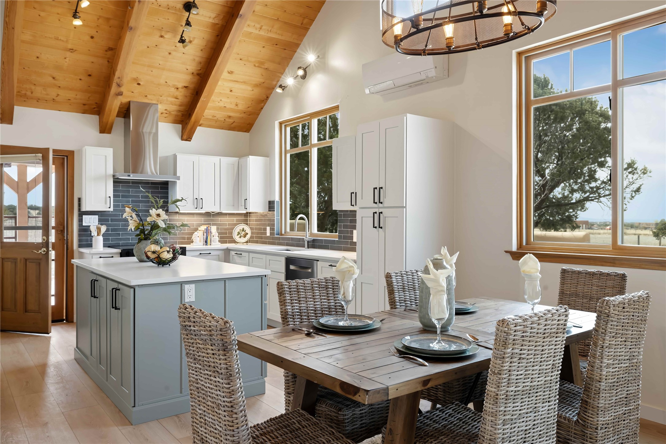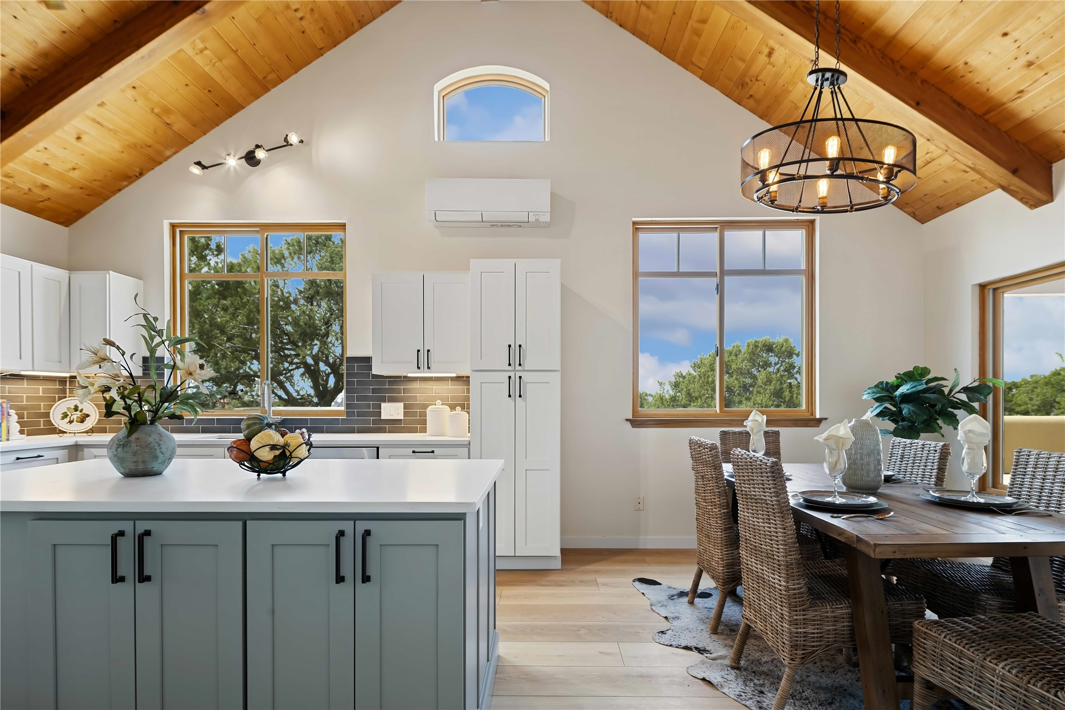 Exceptional turn-key equestrian property located in the desirable horse community, Los Caballos; 133 Jacinto is a 1,945 sq ft Northern New Mexico-style residence showcasing soaring pitched, beamed wood ceilings, sun-drenched windows, new luxury vinyl floors, and a classic brick fireplace with floor-to-ceiling glazing and sliding doors opening to a portal great for entertaining. The completely remodeled kitchen has a connected dining area making it a suitable space for everyone to gather. Both front and back patios have mountain views. The primary suite includes a large closet space, dressing area, and renovated bathroom. A second bedroom, beautiful guest bath and a flexible den/office complete the layout.The centerpiece is a 5-stall Morton barn (currently 3 oversized box stalls) with runs, attached turnouts, a tack room with 1/2 bath, hot/cold water throughout, Nelson automatic waterers, and generous grooming and storage space. A separate 2-stall barn adds its own tack room/ hay shed, and overhang. Three front paddocks with shade structures offer additional flexibility. Two arenas set this property apart: a 100200 ft main arena -- extended, laser leveled, drained, and finished with a 3" base and 2" sand layer and a 90150 ft front arena with specialized ReitenRight performance footing. A riding trail encircles the property, with access to additional trails throughout the community. Solar panels and a 10,000 gallon rainwater catchment system with drip irrigation enhance the property's sustainability and keep utility costs impressively low.Make an appointment to see this spectacular property today.