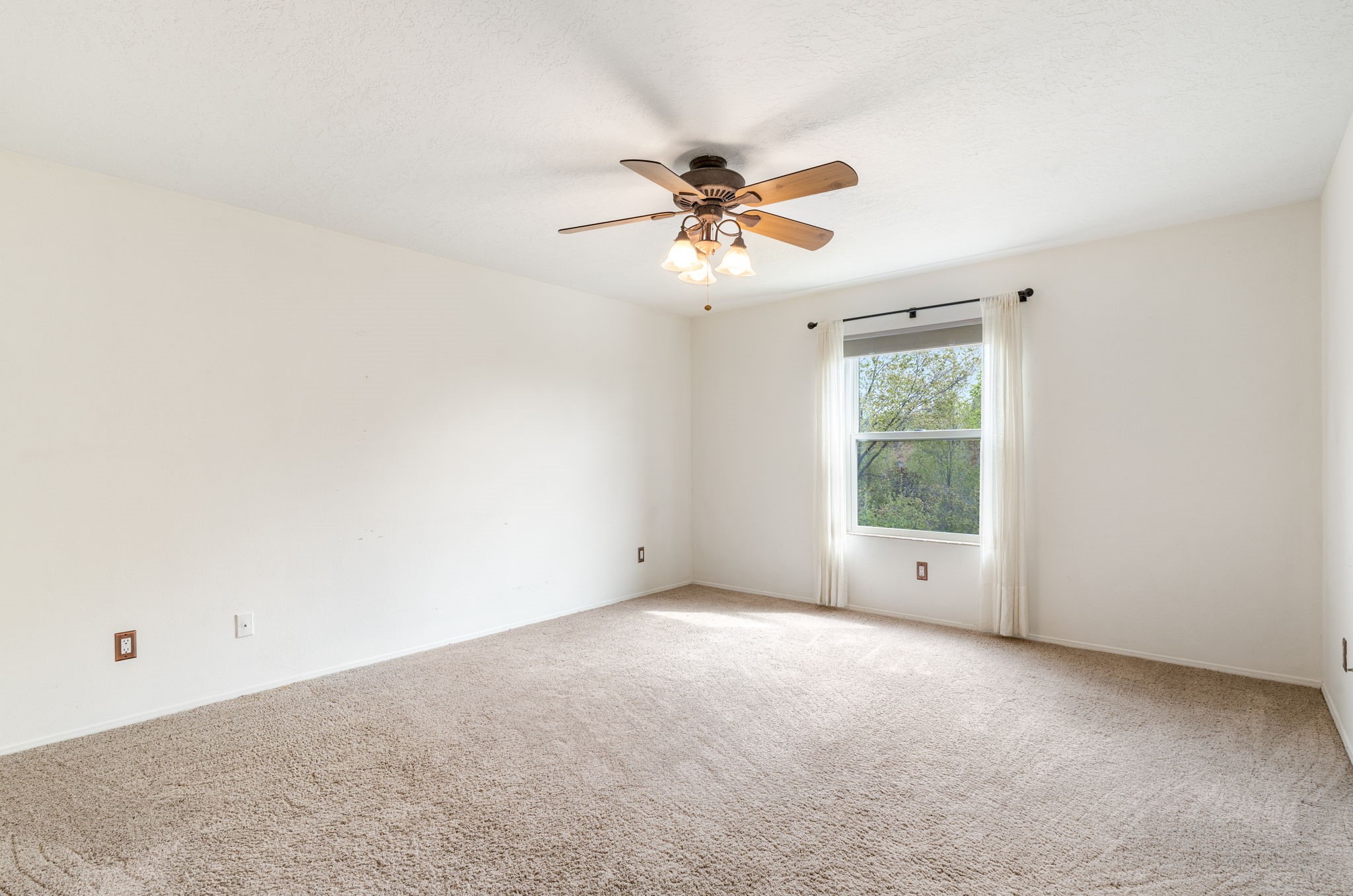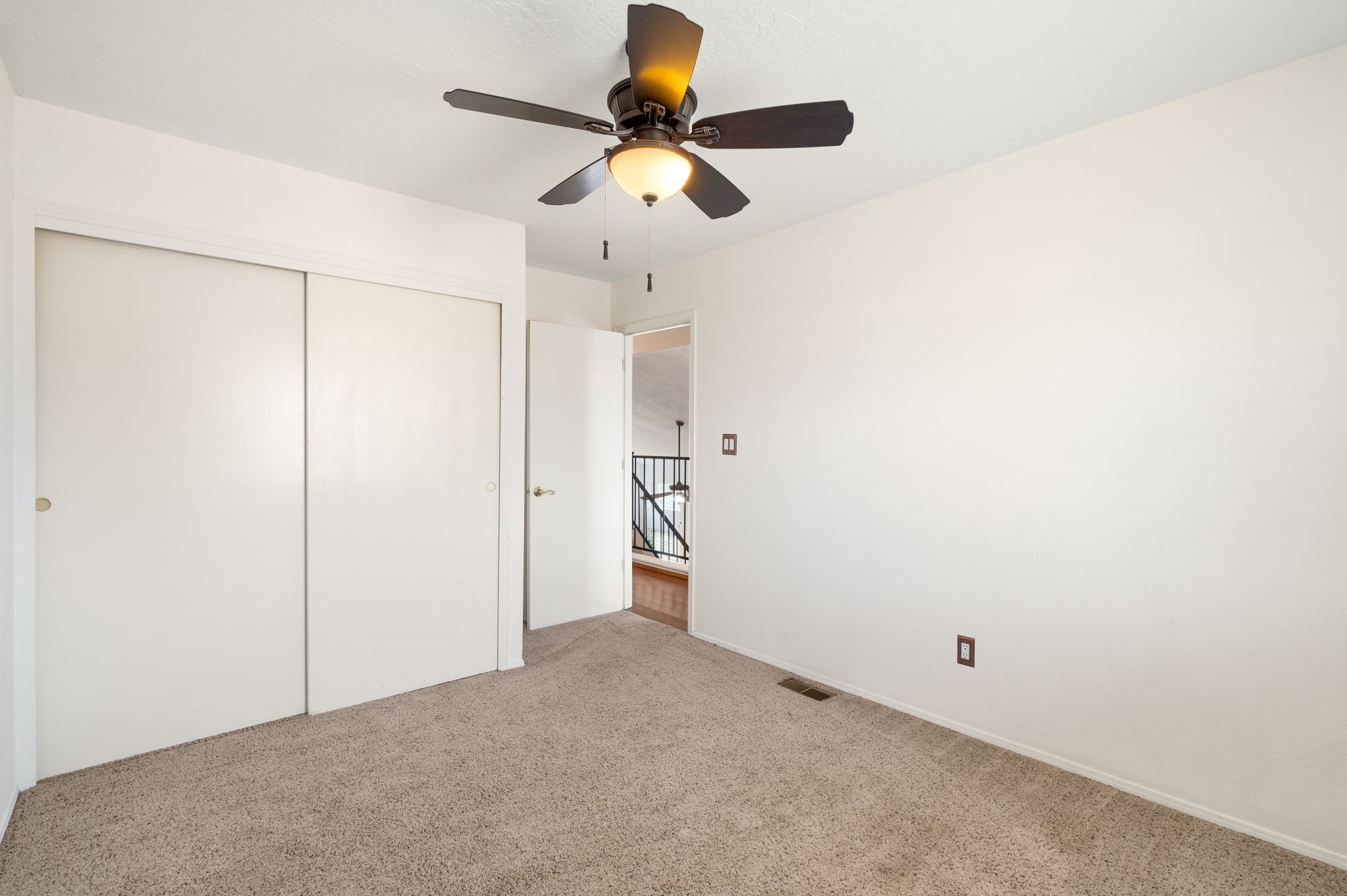Light-filled and inviting, this beautiful two-story home in the desirable Candlelight area of Santa Fe offers comfort, charm, and a peaceful natural setting. With three bedrooms upstairs, two and a half bathrooms, and a sunny open-concept first floor, this home truly stands out.The living room makes a striking first impression with its dramatic two-story ceiling and a warm wood-burning fireplace topped by a handsome wood mantel. From there, the space flows seamlessly into a lovely dining room featuring a wall of built-in bookshelves and a back wall of windows with a sliding door that opens to the charming covered portal and fenced backyard.Set against a tree-filled arroyo, the backyard offers exceptional peace and privacy. Relax under the portal and enjoy the sound of birds singing in the trees.The spacious kitchen is designed for both function and style, with room for a table and chairs for casual dining. Features include Saltillo tile floors, granite countertops, a farmhouse sink, newer stainless steel appliances, and a large pass-through window with a bar that opens to the dining room.Upstairs, the primary bath has been beautifully updated with a step-in shower featuring a pebble floor and glass doors. Additional highlights include engineered wood floors on the main level, two-year-old windows, a two-car garage, and a large storage shed.This is a warm, bright, and welcoming home in a lovely Santa Fe setting.