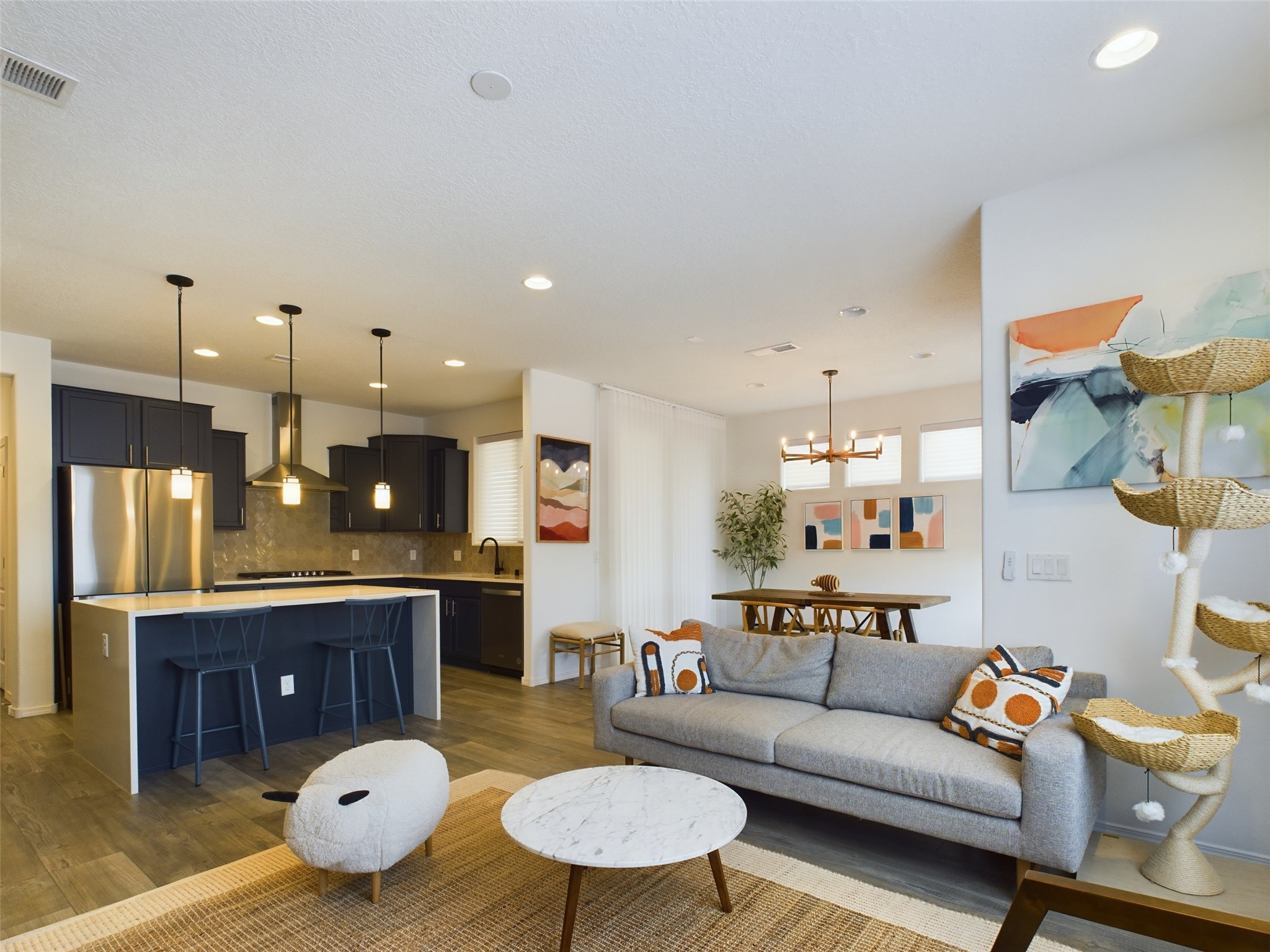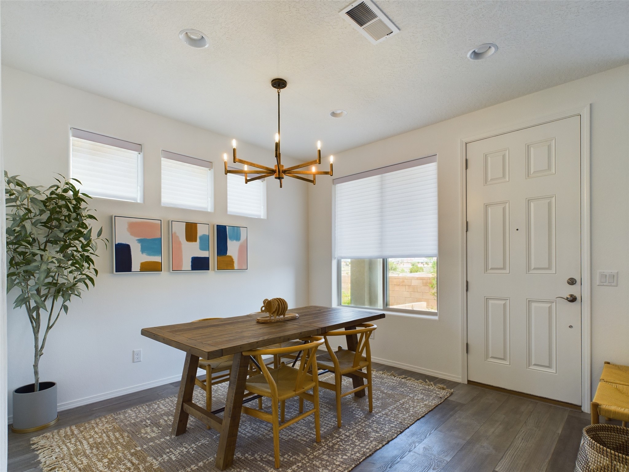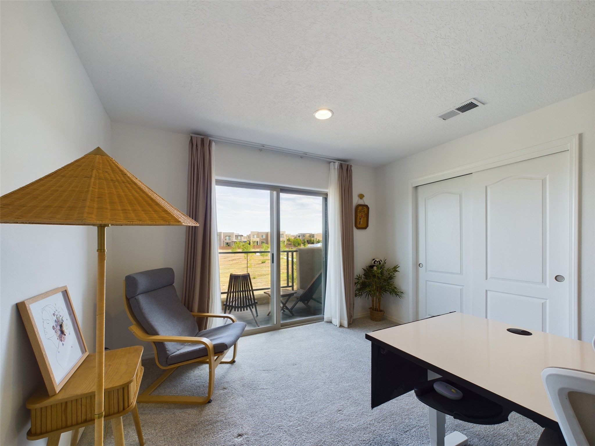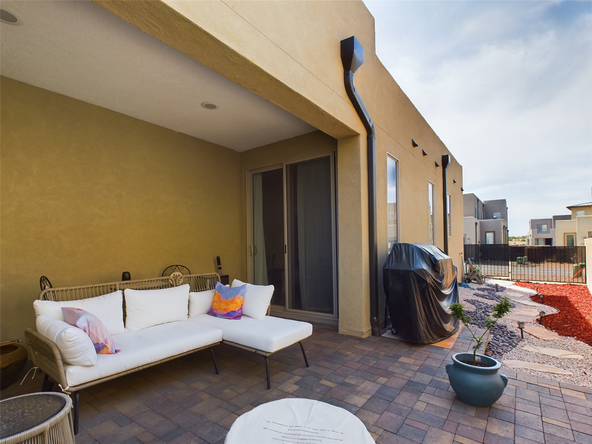 Discover comfort and style in this spacious two-story Pulte-built townhome featuring 4 bedrooms and 3.5 bathrooms, thoughtfully designed for modern living. The main-level primary suite offers privacy and convenience, complete with an en-suite bathroom and direct access to a charming courtyard just off the dining area.The open-concept layout seamlessly connects the living and dining spaces to a beautifully appointed kitchen--perfect for both everyday living and entertaining. A convenient half bath on the main level adds functionality for guests.Upstairs, you'll find additional bedrooms along with a versatile second living area, a private en-suite bedroom, and access to a balcony view deck--ideal for relaxing and enjoying Santa Fe's scenery.Additional highlights include an attached 2-car garage, high-efficiency forced air heating and air conditioning, and access to a well-maintained HOA community featuring a neighborhood park and several walking trails.This home offers the perfect blend of space, comfort, and convenience--don't miss it!