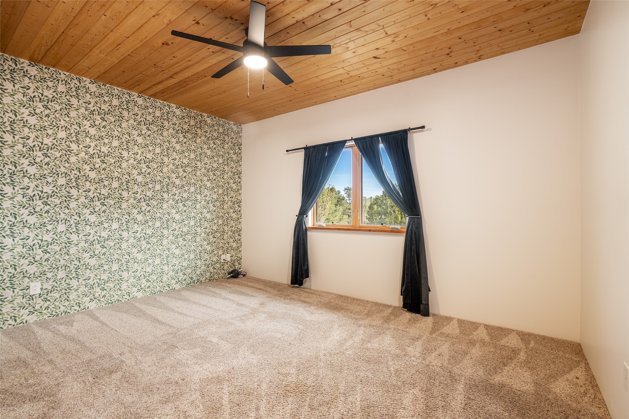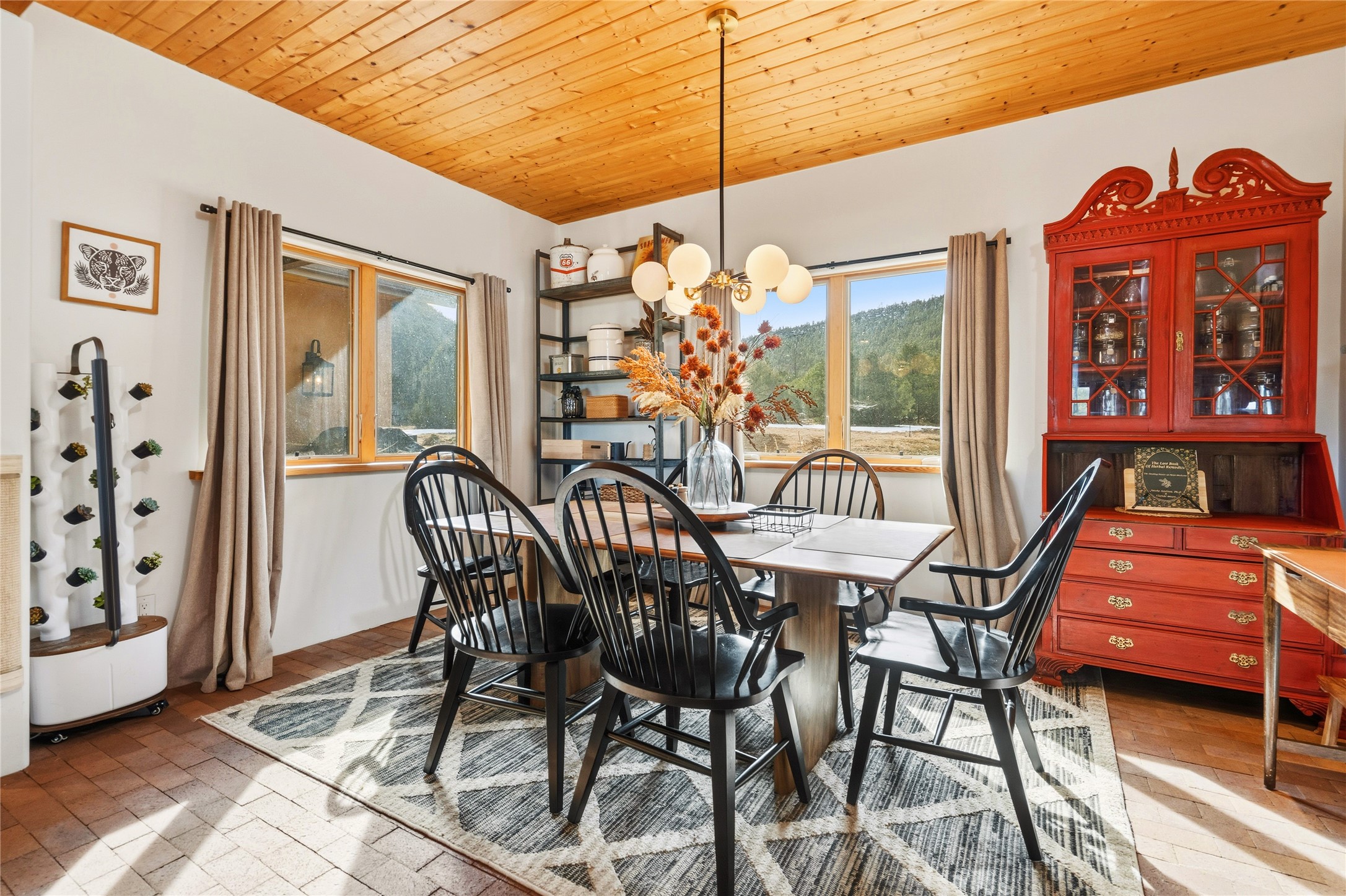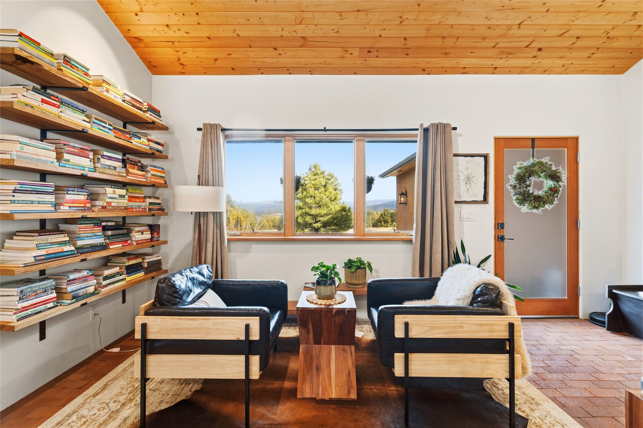 Freshly prepared for spring, this well-maintained property has been thoughtfully refreshed and is move-in ready. Recent updates include fresh interior paint, a newly installed septic system (March 2026) with a two-year warranty, deep-cleaned carpets, cleared personal property, and spruced raised garden beds. The sellers have recently moved out and are presenting a timely opportunity for the next owner. Located at the base of Rowe Mesa, this ranch-style home sits on approximately 3.7 acres of mostly level, usable land, offering expansive skies, mountain views, and a sense of rural privacy--all within an approximate 30-minute drive to Santa Fe. Built in 2021, the custom home features a modern ranch aesthetic with a pitched propanel roof, stucco exterior, and natural finishes throughout. The open-concept living and kitchen area includes island seating, a pantry, and access to the attached two-car garage. Interior details include brick flooring, wood cabinetry, subway tile accents, and wood-planked ceilings. The home offers three bedrooms and two bathrooms, providing flexible living options. Radiant in-floor heating and mini-split systems support year-round comfort. Exterior features include mature fruit trees and established raised garden beds. The property borders public lands associated with the Santa Fe National Forest, offering nearby access to outdoor recreation. This property presents a rare combination of newer construction, usable acreage, and a beautiful high-desert setting.