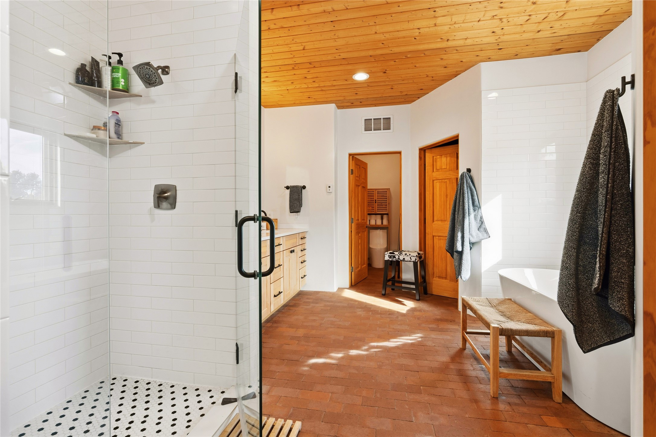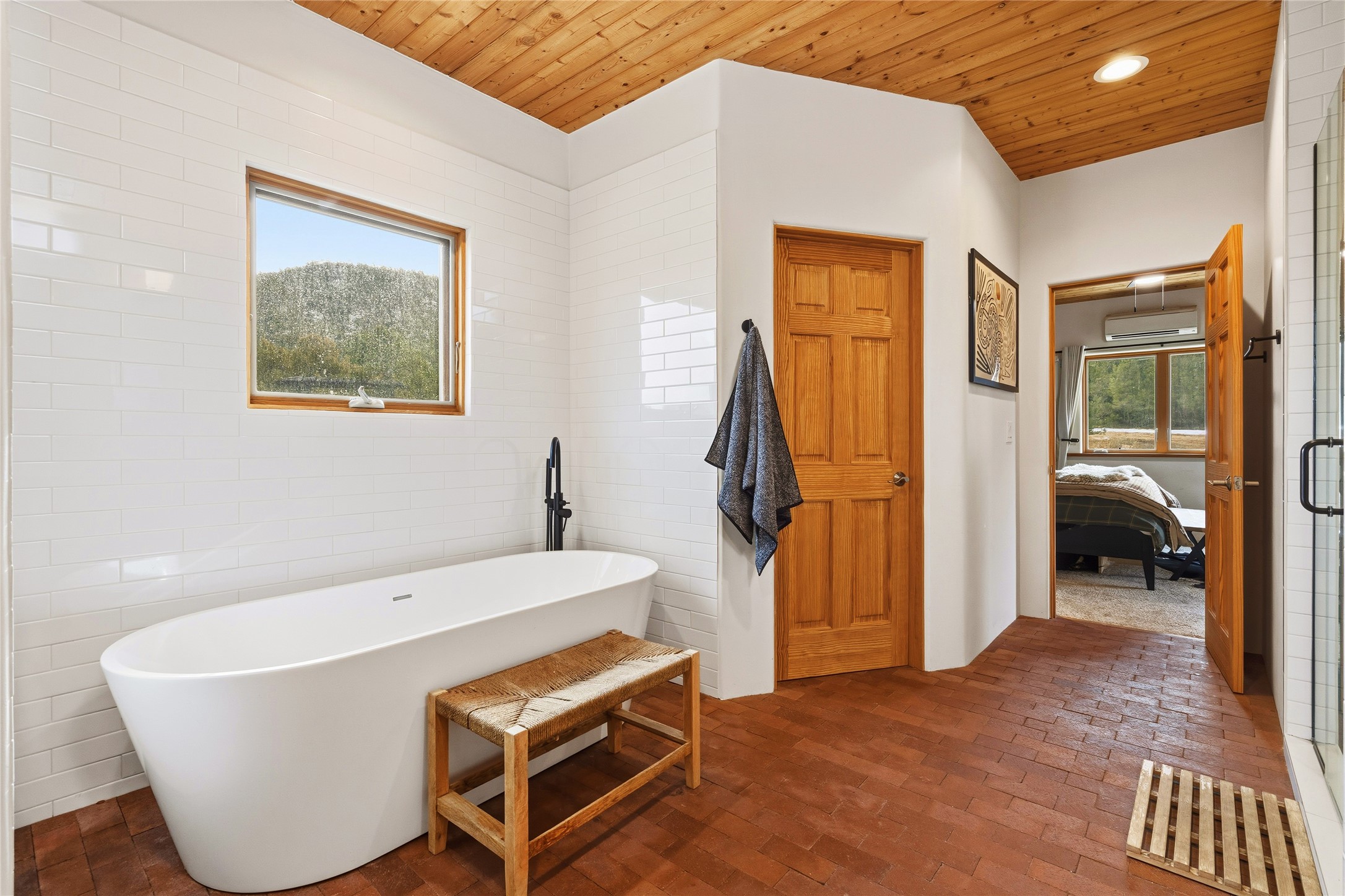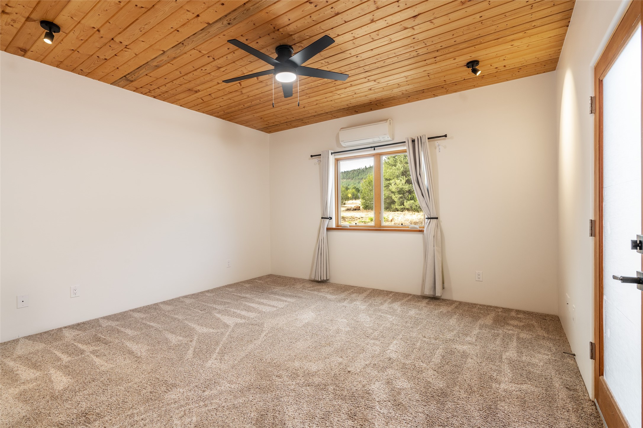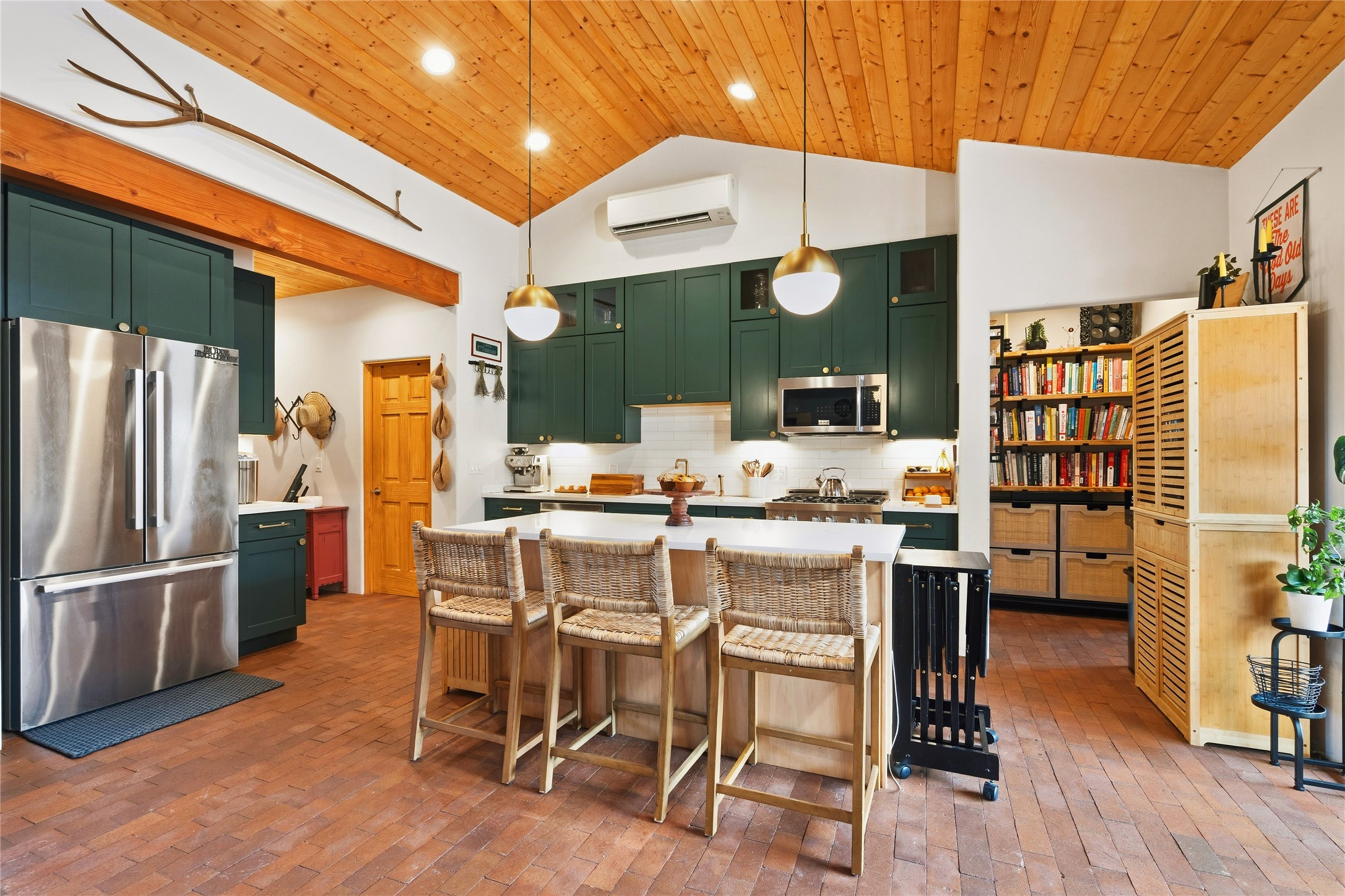Freshly prepared for spring, this well-maintained property has been thoughtfully refreshed and is move-in ready. Recent updates include fresh interior paint, a newly installed septic system (March 2026) with a two-year warranty, deep-cleaned carpets, cleared personal property, and spruced raised garden beds. The sellers have recently moved out and are presenting a timely opportunity for the next owner. Located at the base of Rowe Mesa, this ranch-style home sits on approximately 3.7 acres of mostly level, usable land, offering expansive skies, mountain views, and a sense of rural privacy--all within an approximate 30-minute drive to Santa Fe. Built in 2021, the custom home features a modern ranch aesthetic with a pitched propanel roof, stucco exterior, and natural finishes throughout. The open-concept living and kitchen area includes island seating, a pantry, and access to the attached two-car garage. Interior details include brick flooring, wood cabinetry, subway tile accents, and wood-planked ceilings. The home offers three bedrooms and two bathrooms, providing flexible living options. Radiant in-floor heating and mini-split systems support year-round comfort. Exterior features include mature fruit trees and established raised garden beds. The property borders public lands associated with the Santa Fe National Forest, offering nearby access to outdoor recreation. This property presents a rare combination of newer construction, usable acreage, and a beautiful high-desert setting.