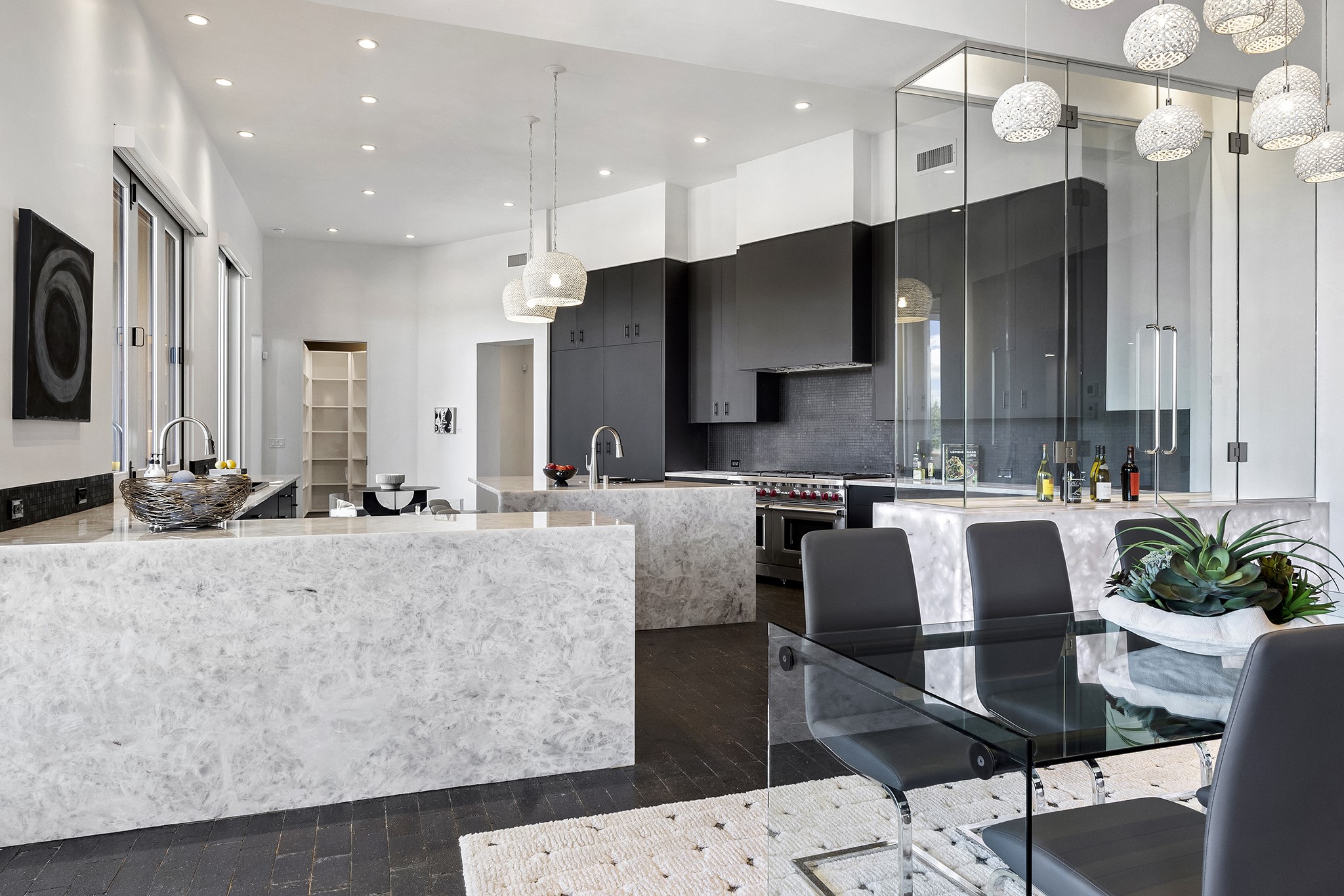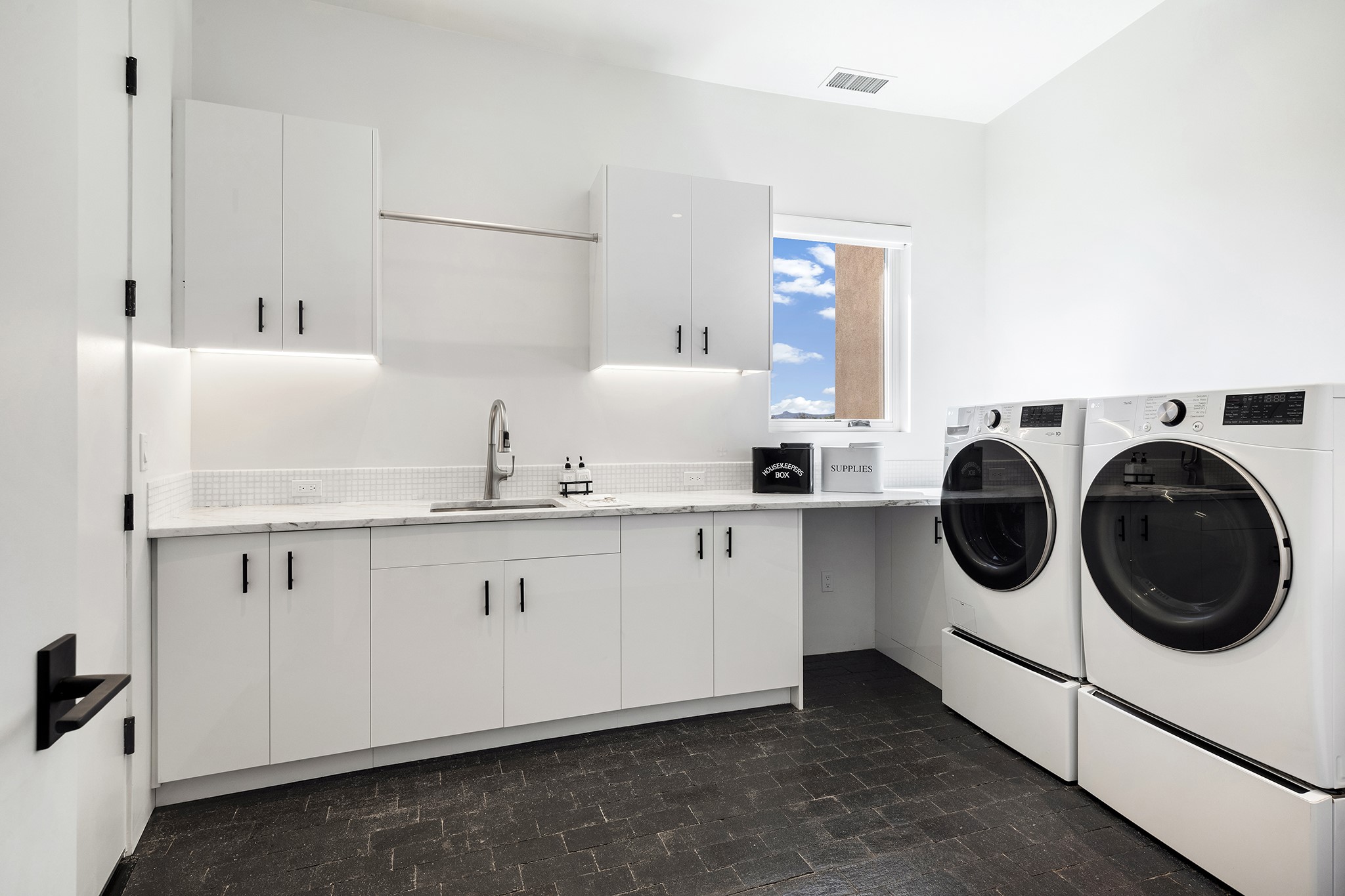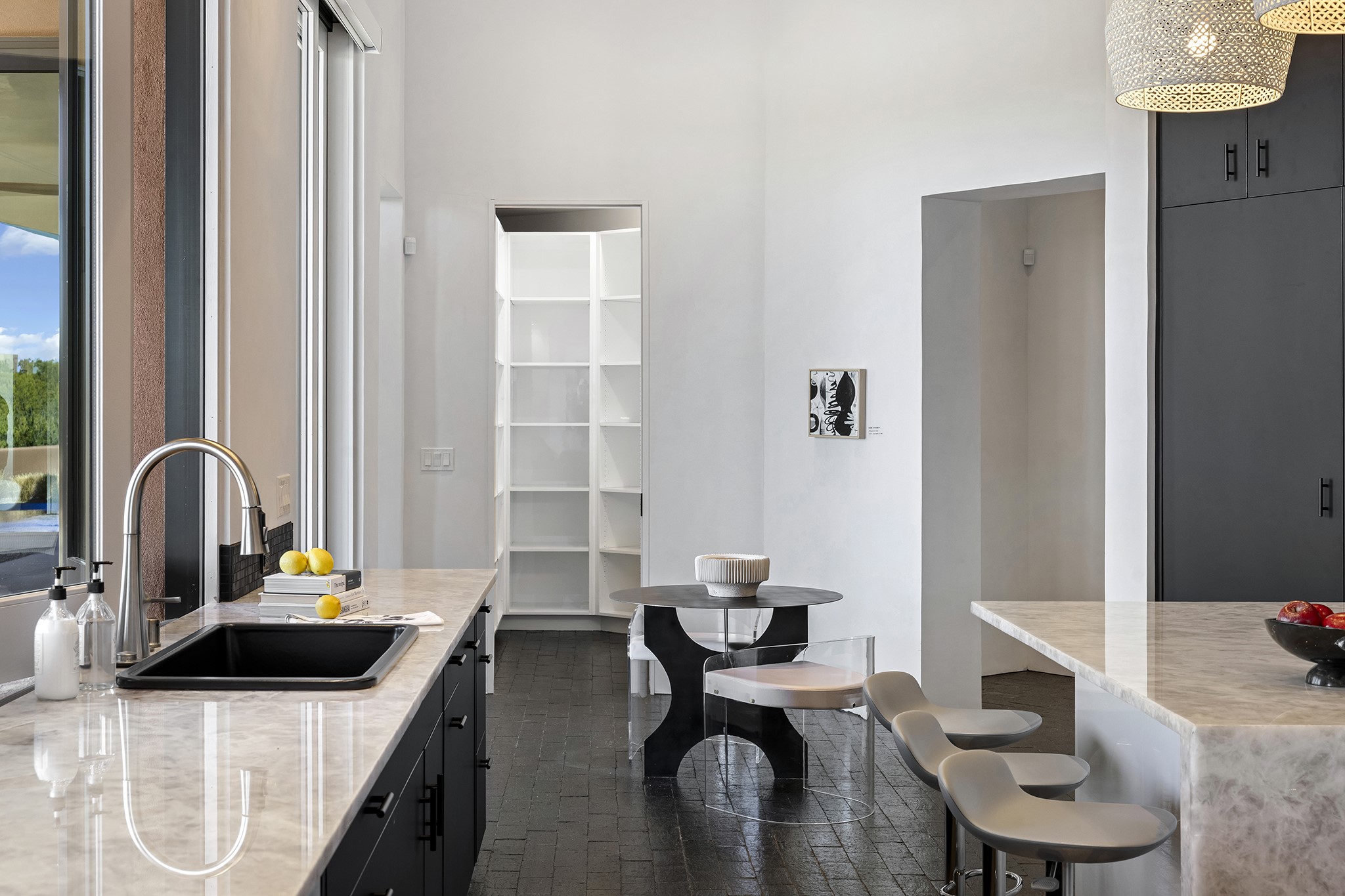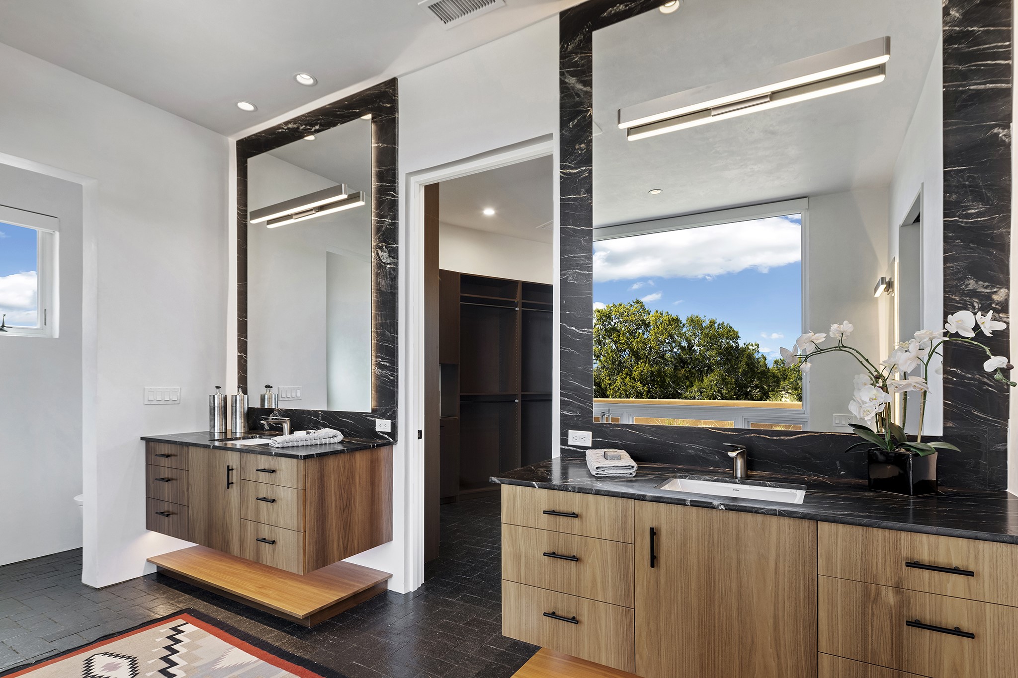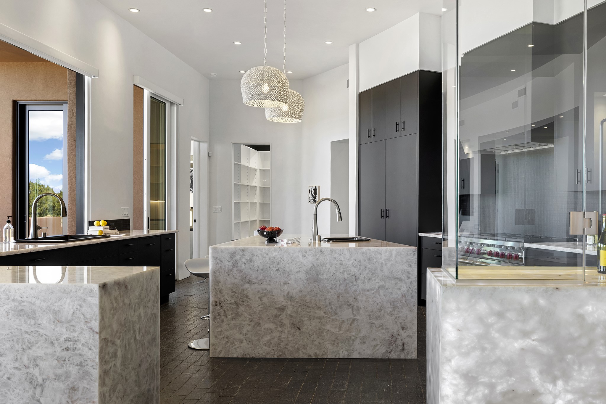 An experience with no parallel - relaxed but elegant living at its best. Unstoppable sunrise and sunset views stretch across the Sangre de Cristo and Jemez Mountains, uninterrupted and ever-changing, with no distractions to take away from privacy, the exclusivity, and the quality of this property. 17 Hacienda Vaquero is a Contemporary Pueblo by Native Son Builders, set within the Estancias of Las Campanas. More than 4,200 square feet of refined interior space pairs with over 1,600 square feet of outdoor living, where covered portals, a kiva fireplace, and an inground spa with waterfall--and infinity edge--create a seamless connection to the landscape. The great room centers on a custom gas fireplace and opens effortlessly through motorized sliding walls to brick floors that continue outdoors, blurring the line between inside and out. The kitchen is appointed with Wolf appliances, a Sub-Zero refrigerator and freezer, two Asko dishwashers, a walk-in pantry, and a refrigerated wine display. A mudroom and laundry area sit just off the three-car garage, while a porte-cochere offers covered arrival. A private attached casita includes a kitchenette, living area, and its own portal, ideal for guests or extended stays.Just minutes from downtown Santa Fe this home is set in the exclusive Estancias area of Las Campanas, a private club offering two Jack Nicklaus golf courses, a world-class equestrian center, fitness center, and spa. Optional membership provides access to dining, pools, racquet sports, and more, along with 24-hour security and on-site paramedics and EMTs.