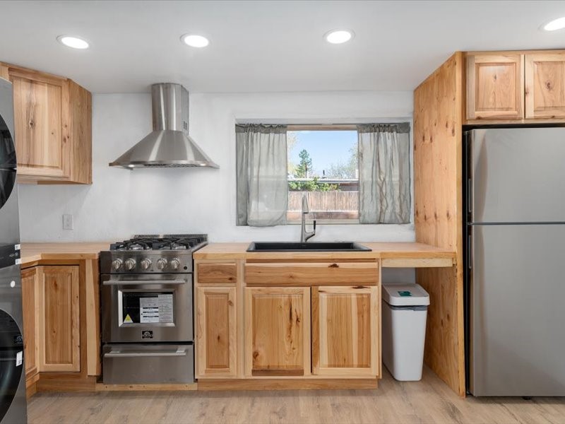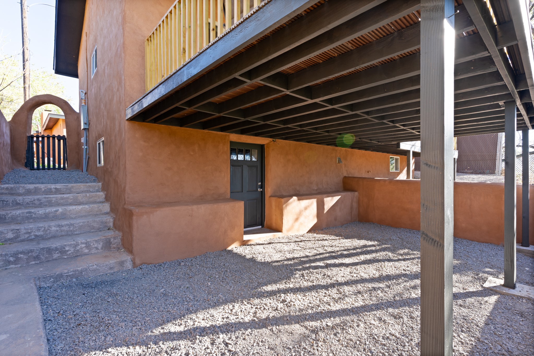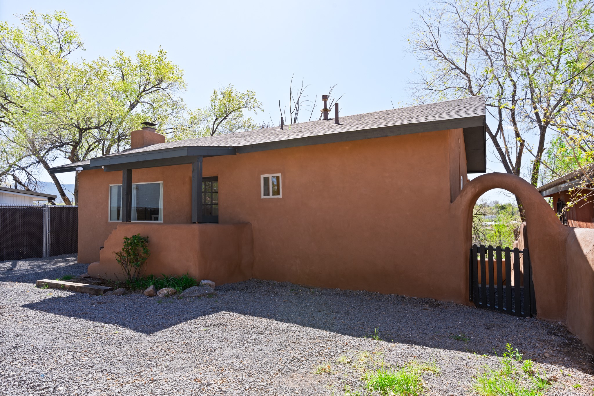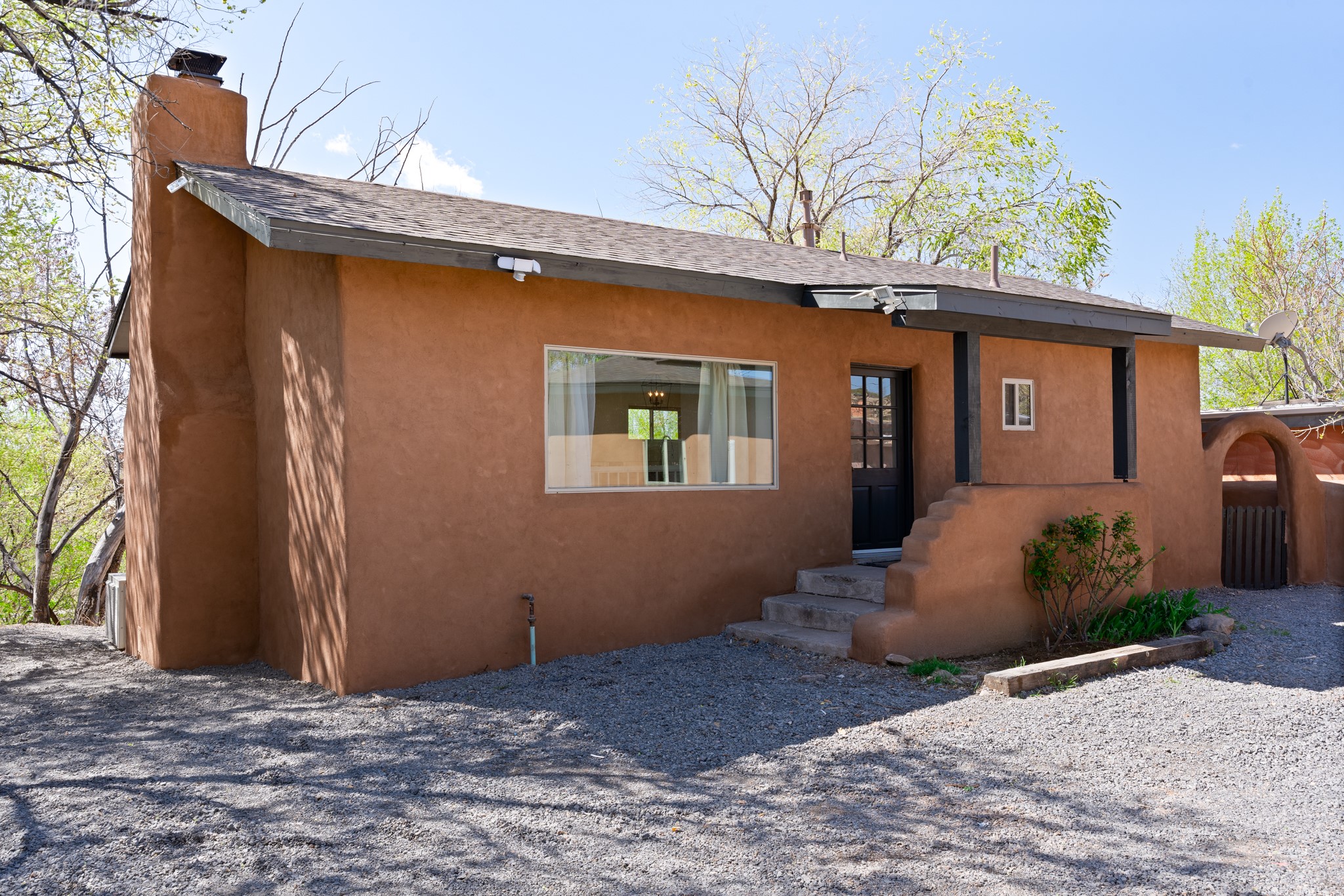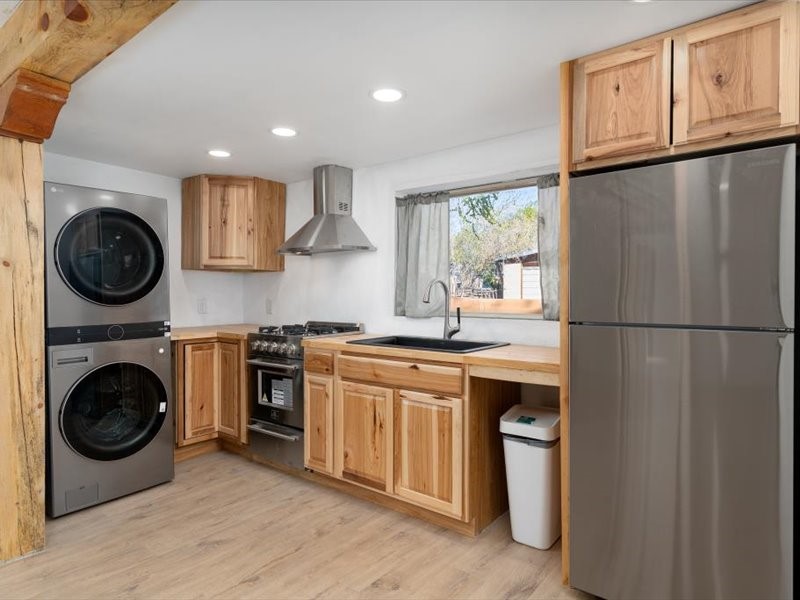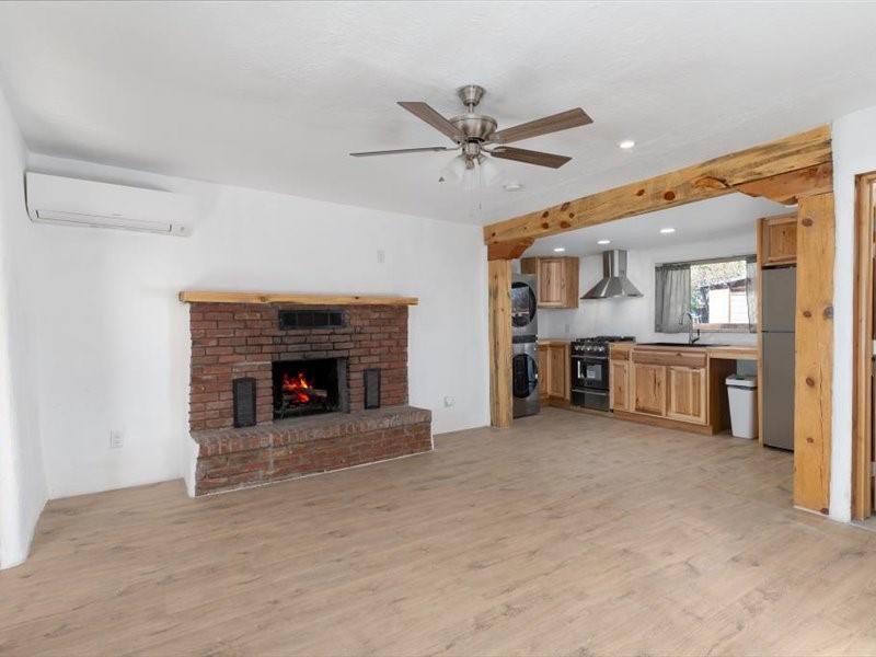 Beautifully updated Santa Fe home with a private one-bedroom casita backing to the scenic Santa Fe River. The main house offers 2 bedrooms and 2 baths including a primary suite on the main level, a cozy fireplace, and spacious upstairs and downstairs portals overlooking the river for a serene and private setting. A flexible space provides room for an office, study, or den. The casita features a full kitchen, washer and dryer, and its own fireplace, perfect for guests or rental potential. Both homes showcase modern updates while maintaining classic Santa Fe charm. Outdoor enthusiasts will enjoy the nearby trails such as the Santa Fe River Trail, Arroyo de los Chamisos Trail, and the Dale Ball Trails system, as well as the Frank Ortiz Dog Park. Just minutes from downtown Santa Fe, restaurants, and Solana Shopping Center, this property combines convenience, privacy, and the peaceful beauty of the river setting.