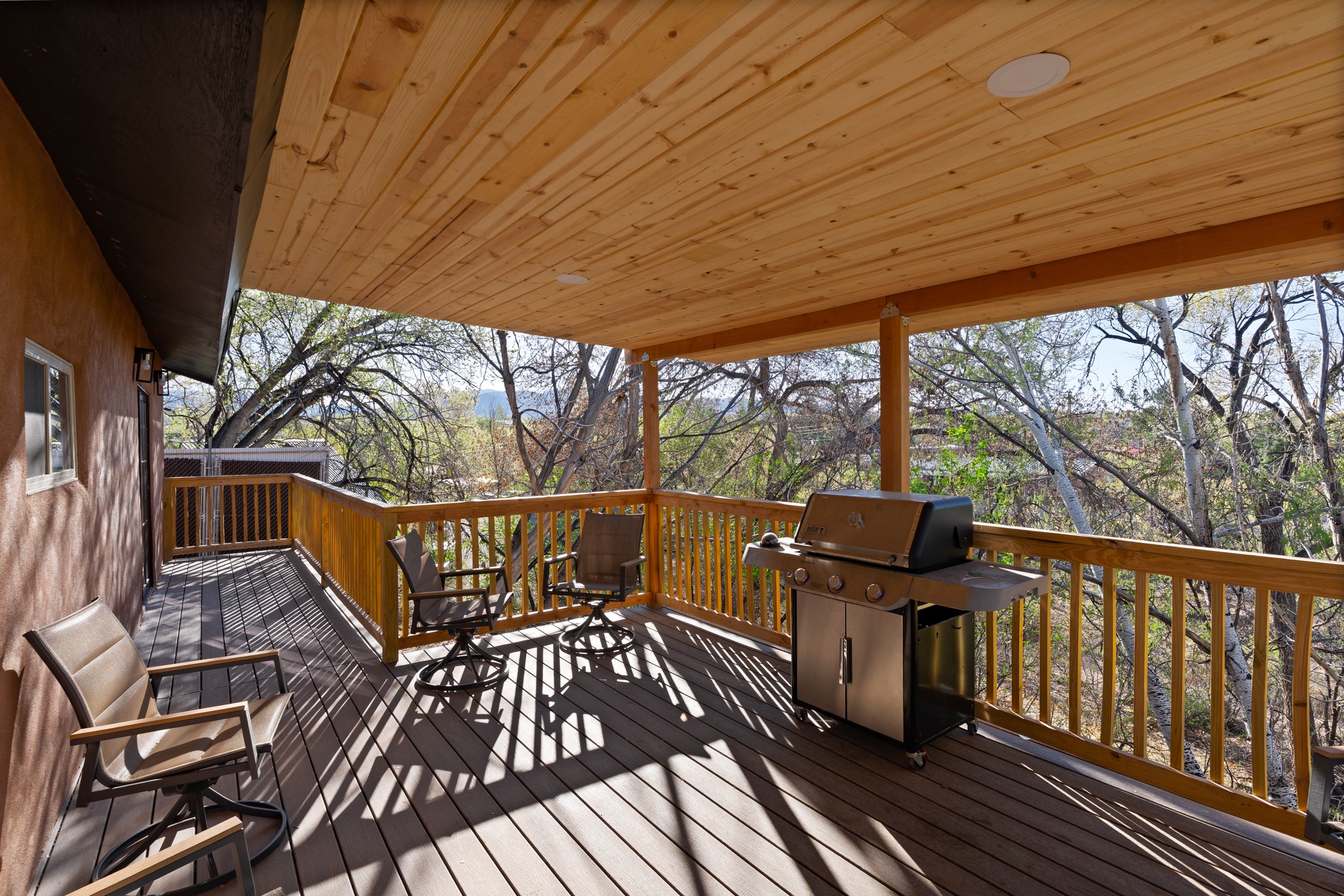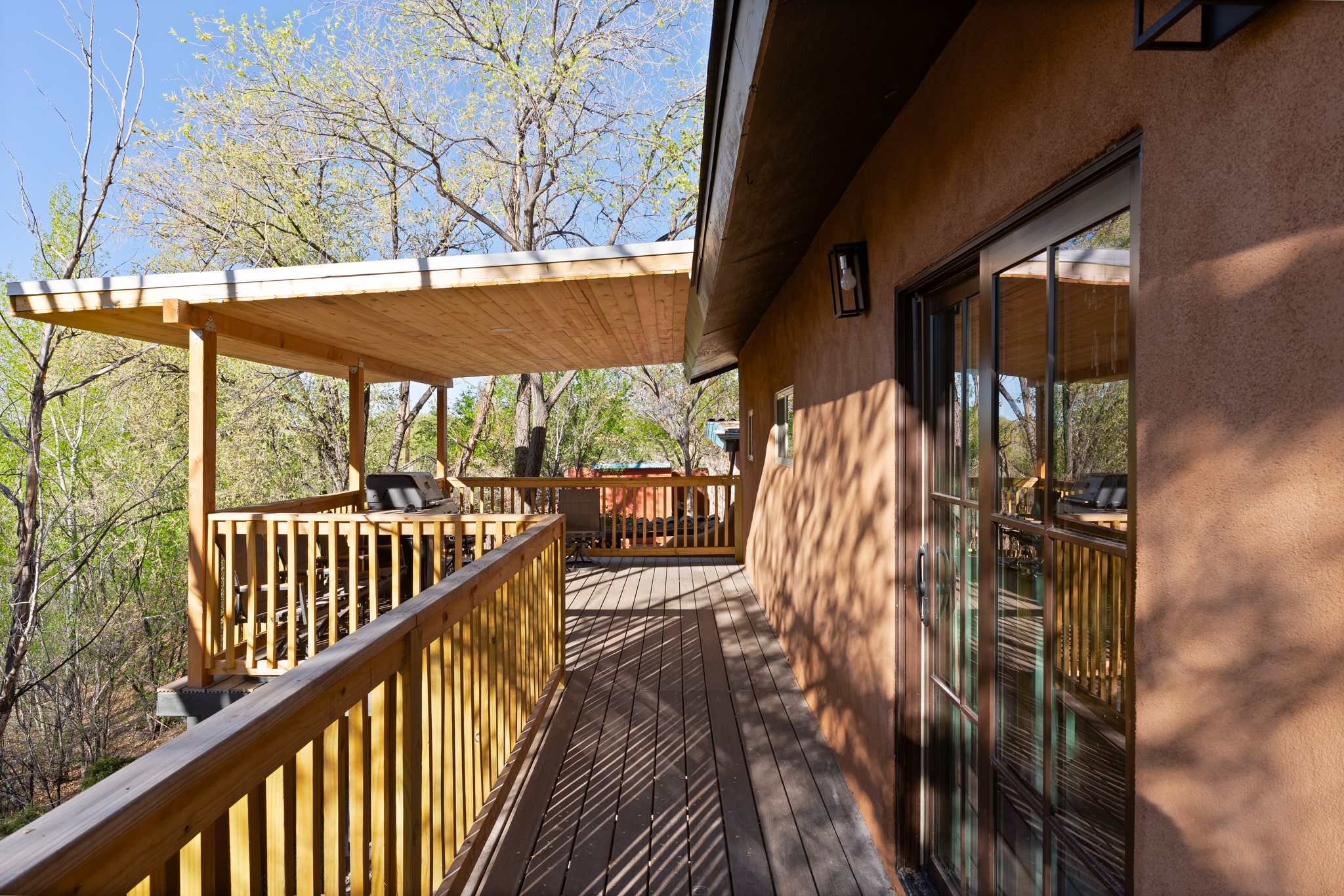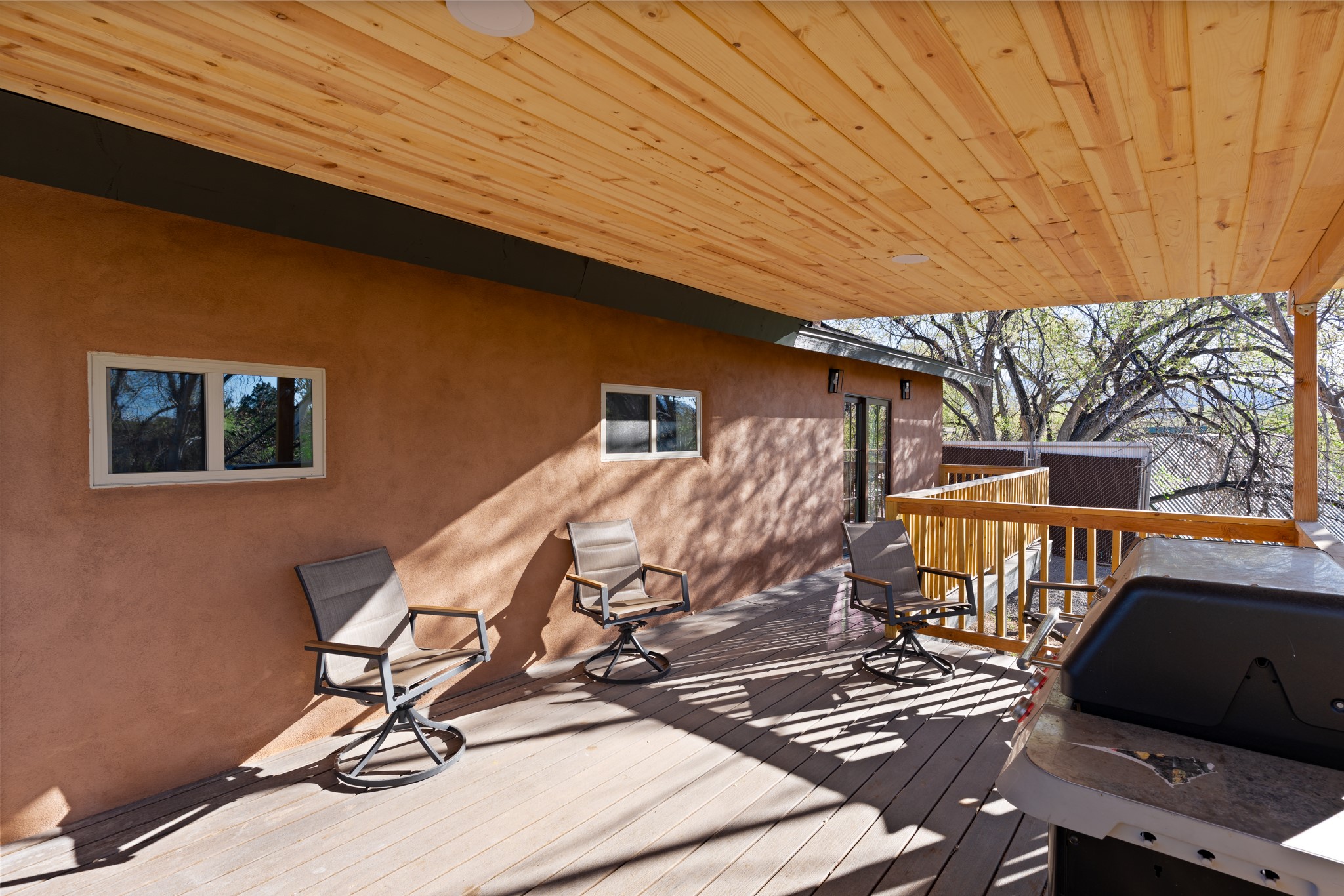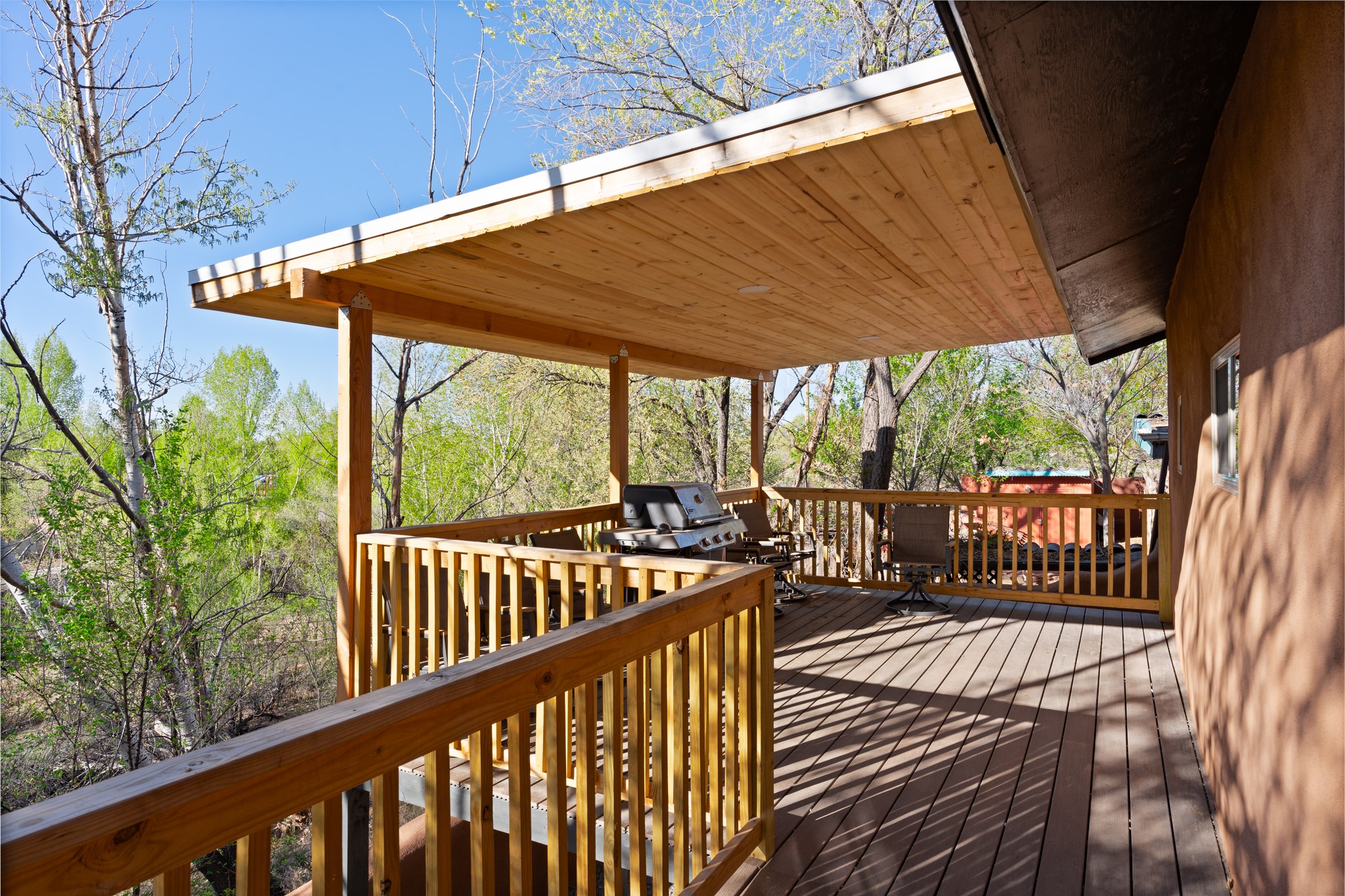 Beautifully updated Santa Fe home with a private one-bedroom casita backing to the scenic Santa Fe River. The main house offers 2 bedrooms and 2 baths including a primary suite on the main level, a cozy fireplace, and spacious upstairs and downstairs portals overlooking the river for a serene and private setting. A flexible space provides room for an office, study, or den. The casita features a full kitchen, washer and dryer, and its own fireplace, perfect for guests or rental potential. Both homes showcase modern updates while maintaining classic Santa Fe charm. Outdoor enthusiasts will enjoy the nearby trails such as the Santa Fe River Trail, Arroyo de los Chamisos Trail, and the Dale Ball Trails system, as well as the Frank Ortiz Dog Park. Just minutes from downtown Santa Fe, restaurants, and Solana Shopping Center, this property combines convenience, privacy, and the peaceful beauty of the river setting.