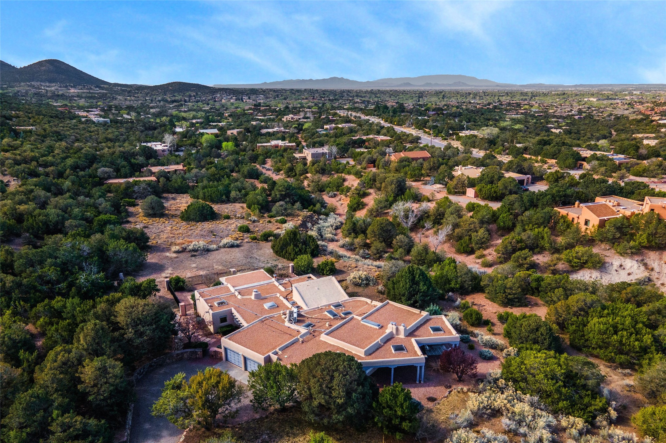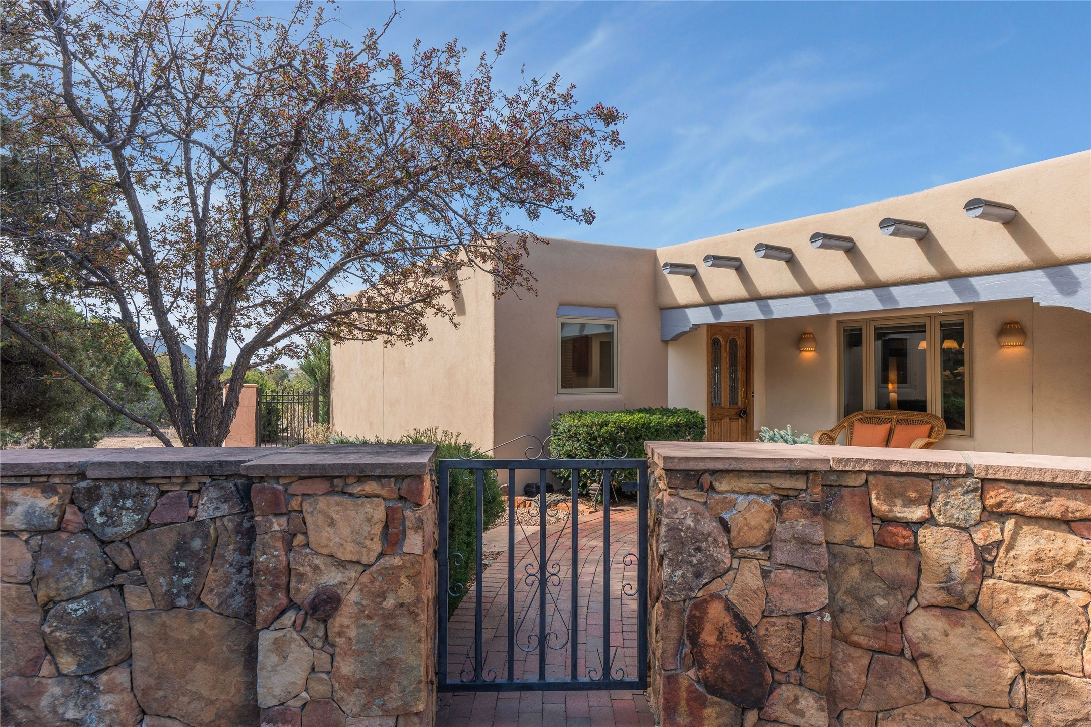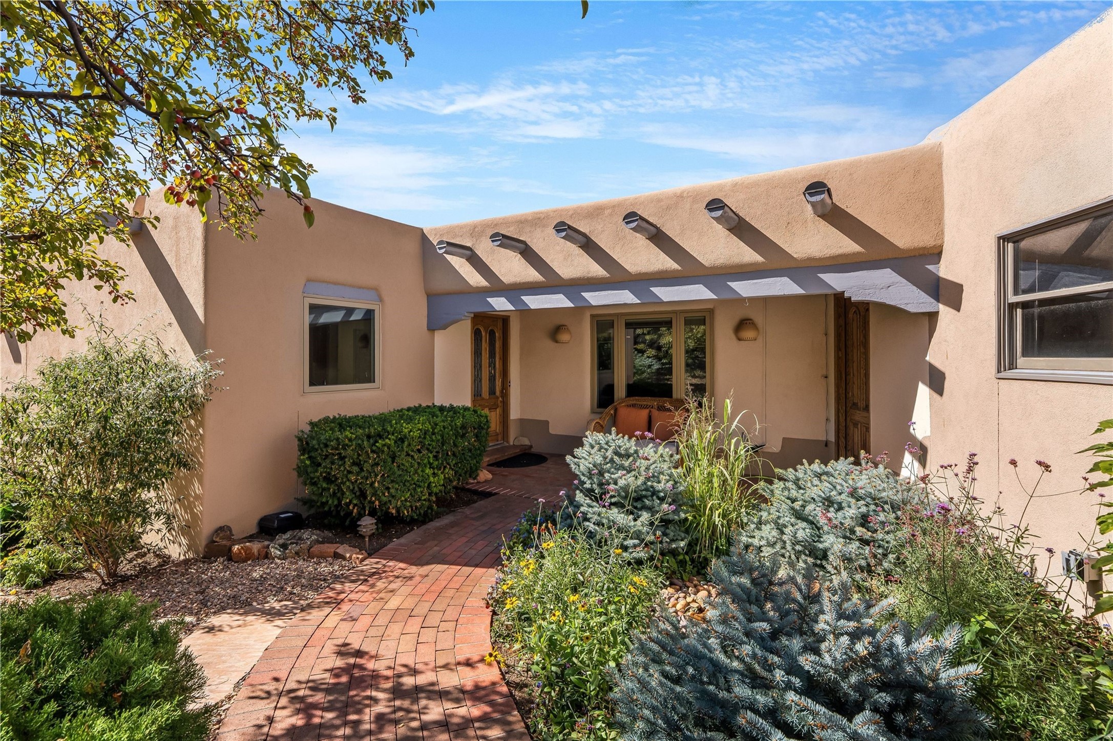 Hyde Park Road 4-bedroom, 2.5 bath Pueblo-style home on 1.08-acres with spectacular views of Sun and Moon Mountain. Iconic Santa Fe design with hand-troweled plaster walls, vigas and beams, nichos, tile and wood floors, and five kiva fireplaces. Flexible floor plan offers space for multi-generational living with separate wing with 2 bedrooms or 1 bedroom plus sitting area, bathroom and a second kitchen. Primary wing offers a spacious living room, dining room, kitchen and informal dining area, 2- bedrooms and ensuite bath. Expansive portals wrap around the home, providing multiple areas for al fresco dining and entertaining. Bonus feature is an above ground heated spa/hot tub for soaking under the magical New Mexican skies. 2-car attached garage. Superbly located close to the Santa Fe Plaza, Dale Ball Trails, Ten Thousand Waves and the Santa Fe Ski Basin.
