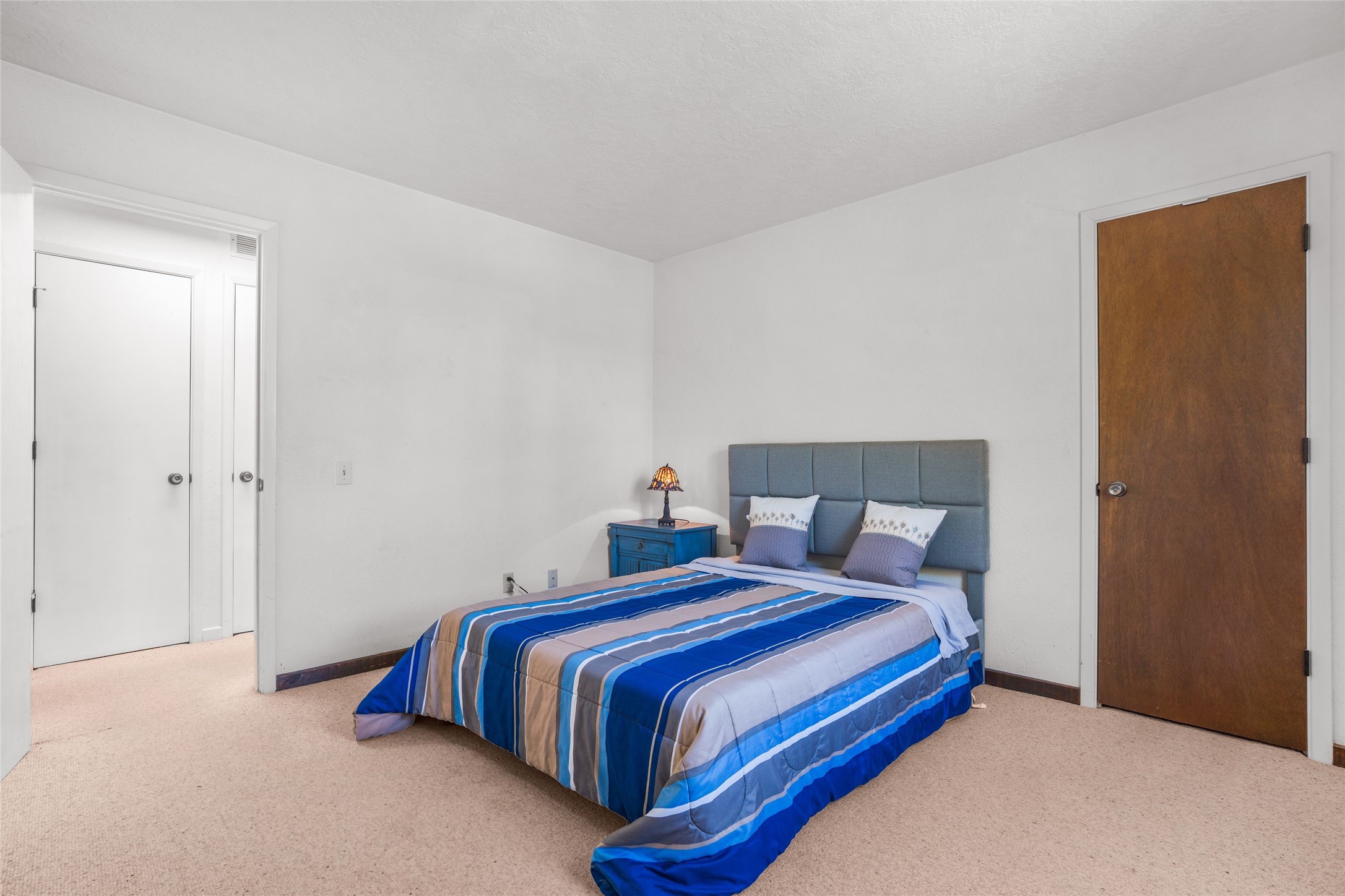 Desirable Northside single-level corner-unit condo with timeless Pueblo character, abundant natural light, and spacious living areas. Enter through a charming walled courtyard, where a blooming cherry blossom tree adds seasonal beauty to the approach. Inside, a dramatic skylit atrium forms the heart of the home, beautifully framed by a large architectural opening from the living room that creates a signature focal point. Exposed beams throughout, banco seating, sculptural stepped Pueblo-style forms, and a kiva wood-burning fireplace bring warmth and authentic Santa Fe character. The southeast-facing orientation welcomes the first light of sunrise onto the living room floor, while moonlight through the atrium adds a rare sense of calm and beauty at night. The thoughtfully separated bedroom layout offers comfort and flexibility, and the attached one-car garage provides additional storage. This property has been lovingly maintained and is priced accordingly for expected renovations. Ideally situated on Santa Fe's coveted Northside, the home enjoys a setting that offers both tranquility and convenient access to the Plaza, the Santa Fe Opera, and Ski Santa Fe, along with the quiet pleasure of frequent deer sightings that add to the natural beauty of the neighborhood.