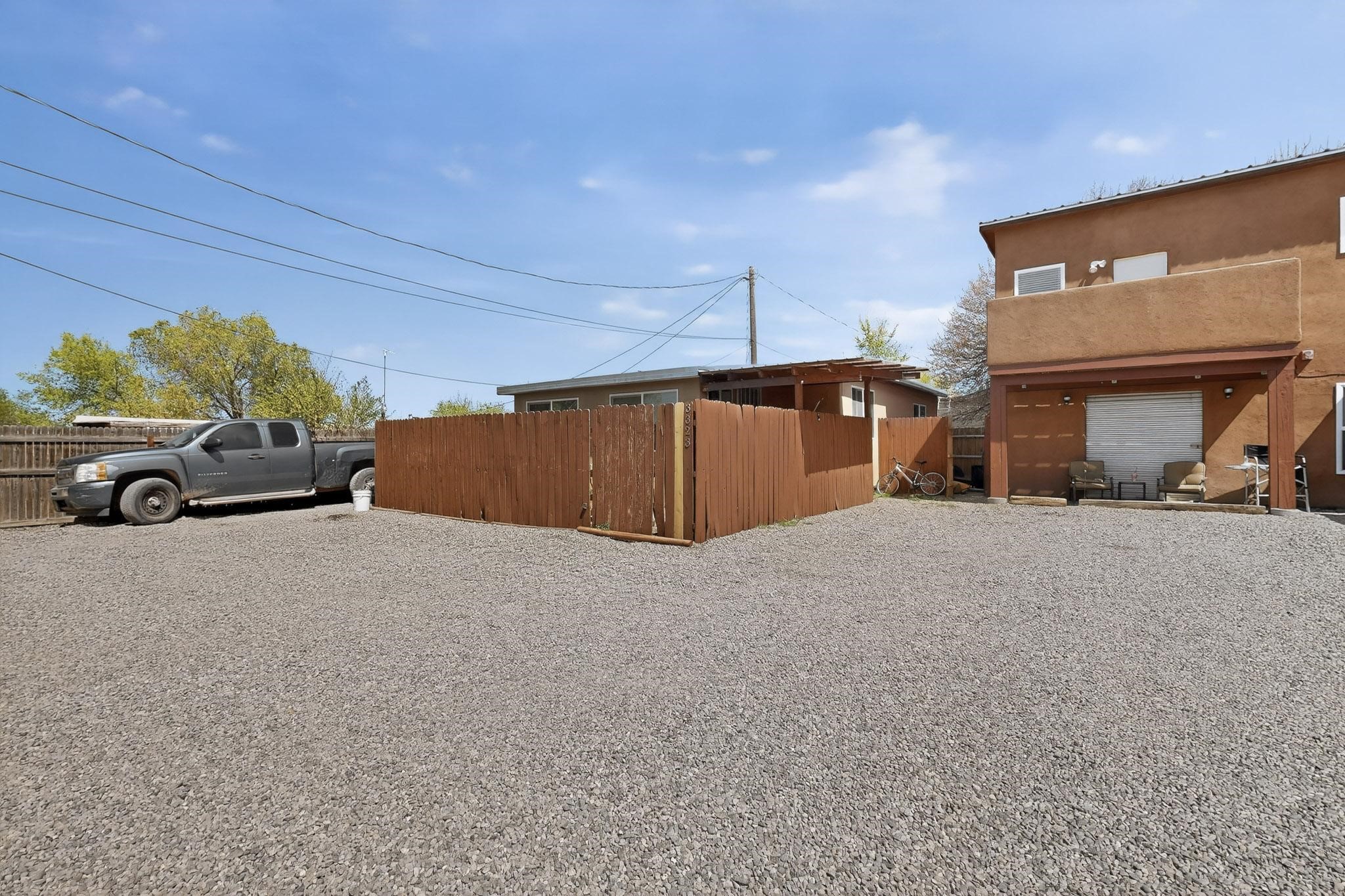 Exceptional investment and multi-generational living opportunity in the heart of Santa Fe! This versatile triplex features three distinct, updated units offering comfort, functionality, and modern appeal. The front home includes new flooring, updated countertops, windows, doors, water heater, breaker box, propanel roof, and washer/dryer. The casita shines with new flooring, cabinetry, windows, plumbing, and breaker panel--ideal for guests or rental income. The spacious two-story main home offers new flooring, updated windows and doors, remodeled baths, upgraded kitchen cabinetry, electric fireplace, and new breaker box. Perfect for income, extended living, or portfolio growth!
