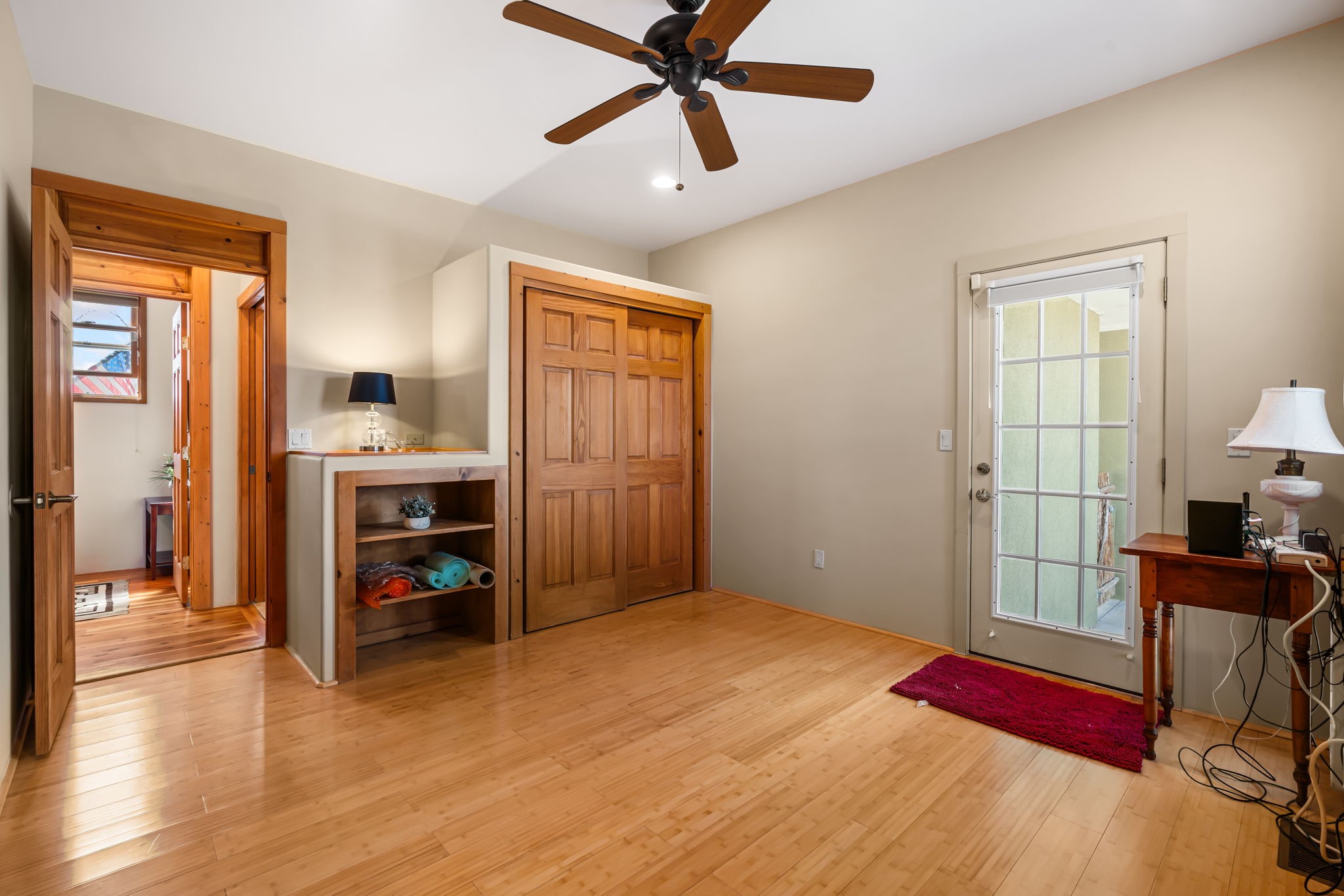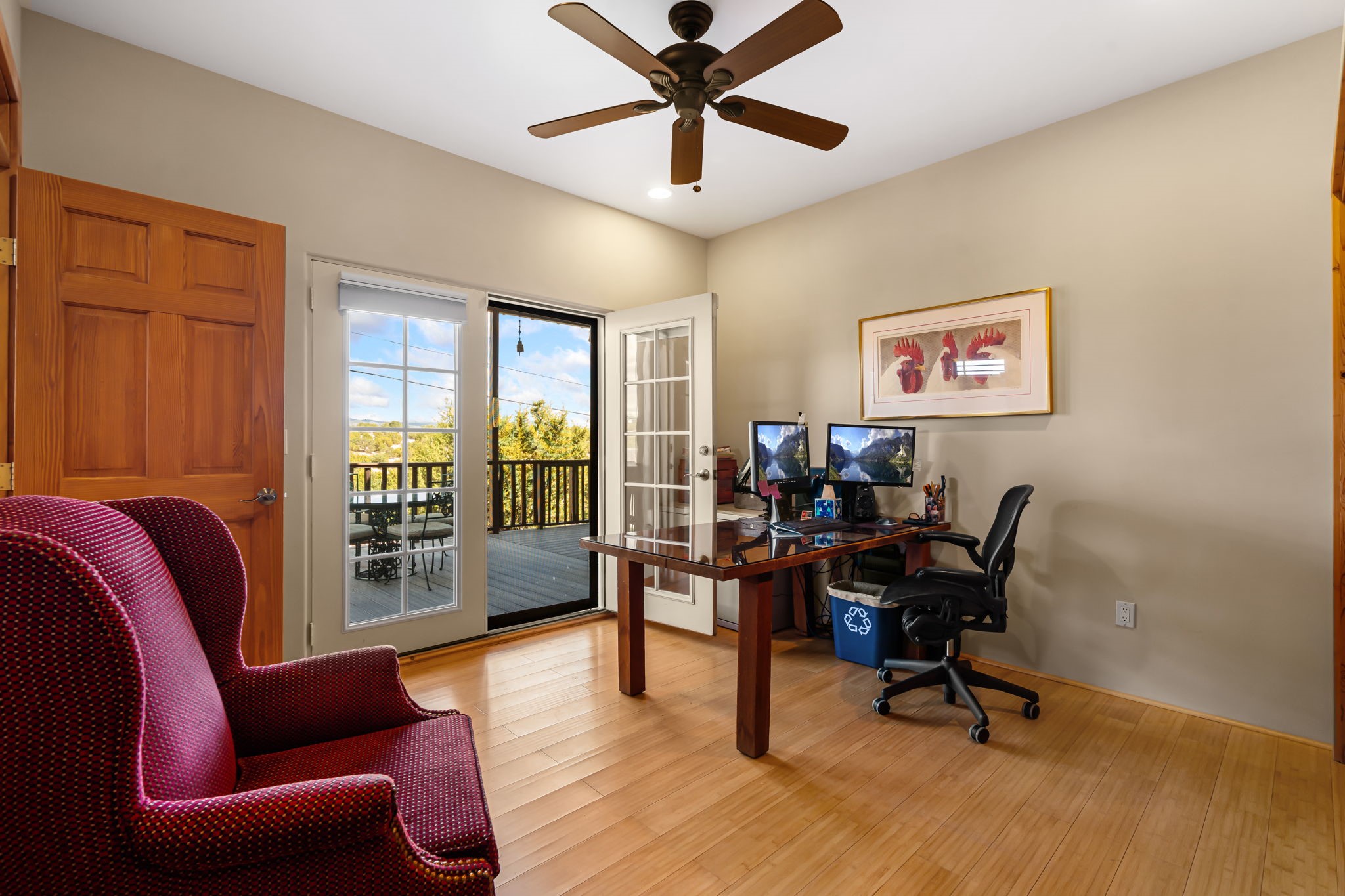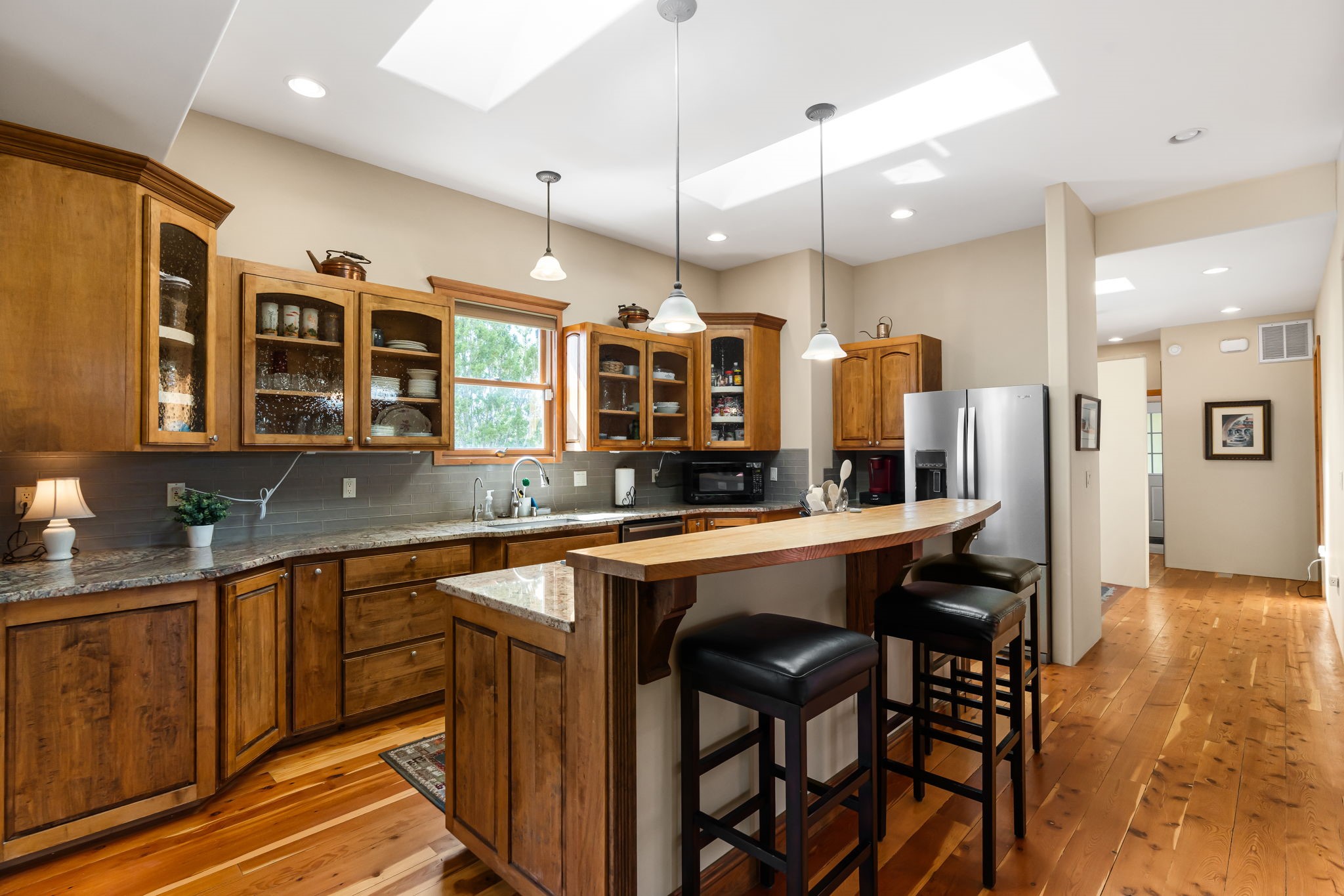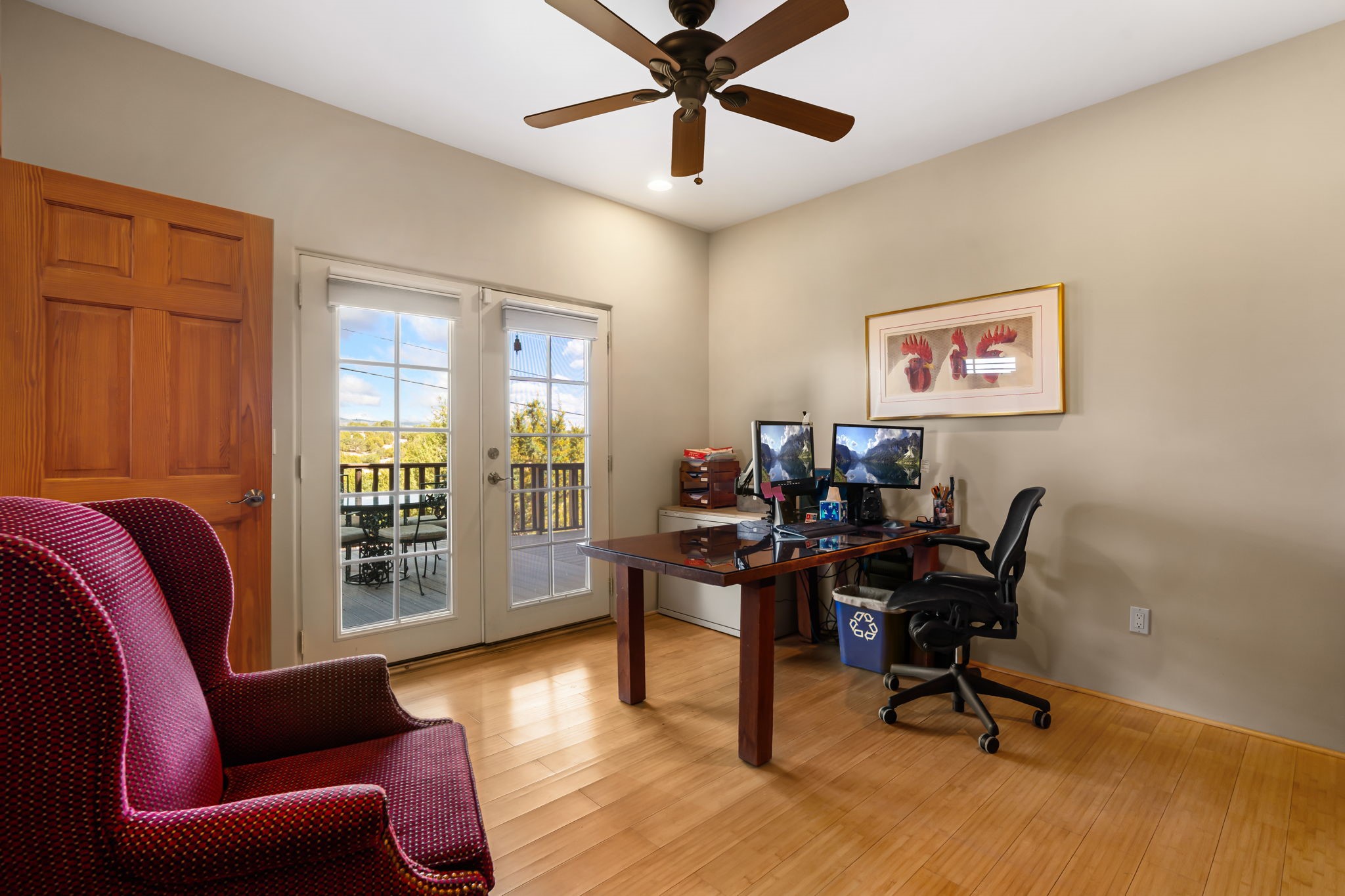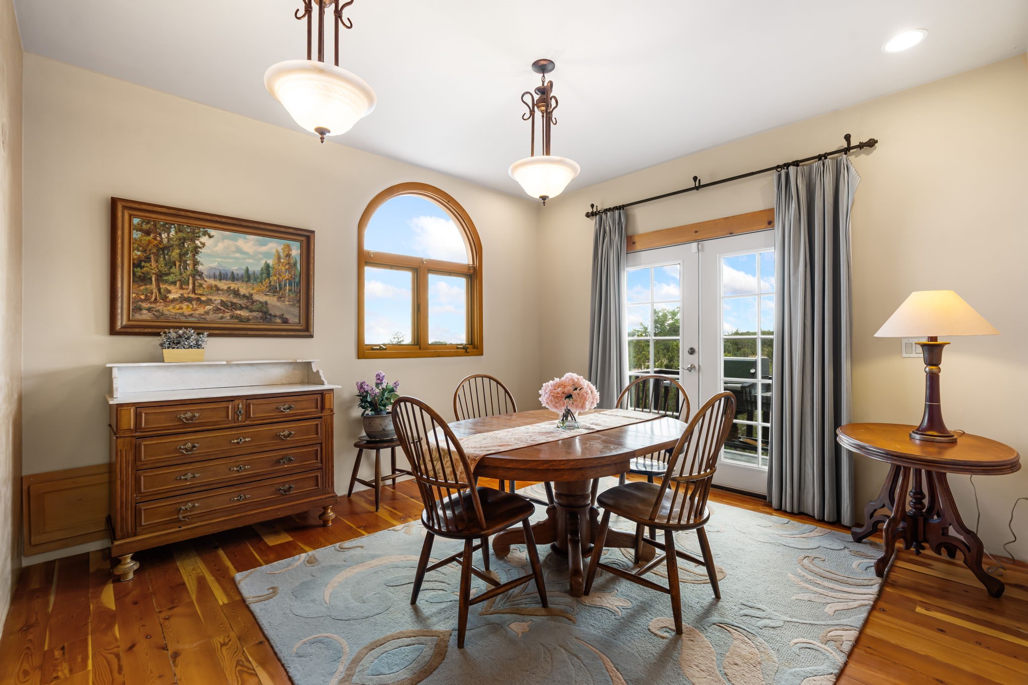 Tucked away on 2.5 tree-covered acres, this private country retreat offers stunning views of the Sangre de Cristo Mountains. Conveniently located south of W. Alameda and just east of San Ysidro Crossing, the property blends tranquility with accessibility.A detached studio--ideal as an office or guest house--features a bath, full kitchen, spacious living/sleeping area, walk-in closet, and an enclosed courtyard with pet access, all with beautiful eastern views. The oversized, finished two-car garage includes abundant windows, a loft, and direct entry.The main home is primarily single-level, offering an open-concept great room and kitchen with high viga ceilings, fireplace, built-in media center, and French doors leading to the east deck. The private primary suite includes a walk-in closet and a spa-like bath with jetted tub and separate shower. A flexible third bedroom with courtyard access is perfect for a home office. Additional highlights include a separate dining area with French doors to the west deck!Truly, MUST SEE!