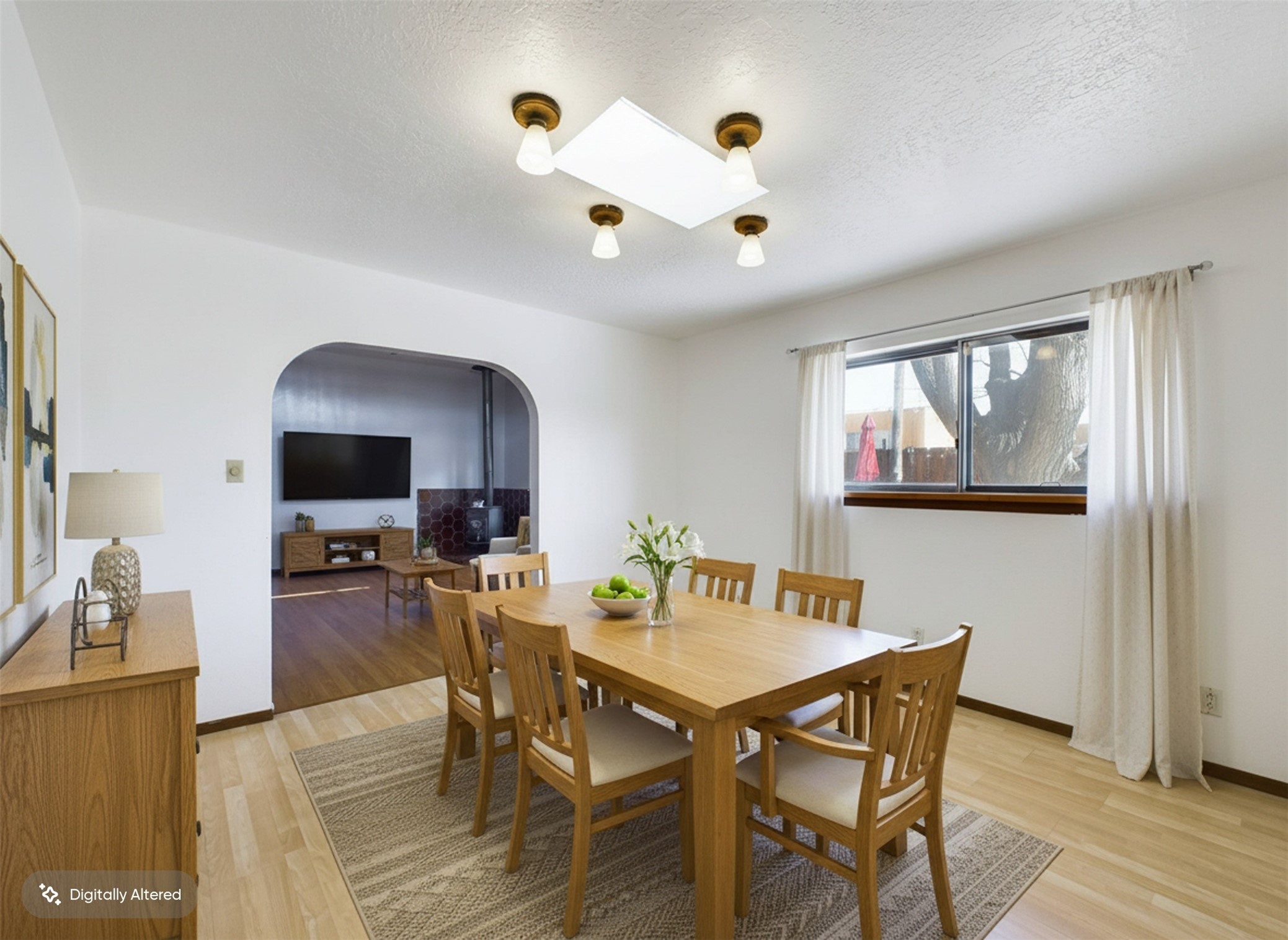 Charming 4-bedroom, 2-bath Santa Fe home with inviting curb appeal, highlighted by a mature shade tree and classic Southwestern character. Step inside to a bright, welcoming living space with abundant natural light, warm wood floors, and a cozy wood-burning stove--perfect for everyday comfort. Forced air heating and evaporative cooling ensure year-round ease, plus new carpet in the primary bedroom.A versatile converted garage adds valuable bonus space--ideal for a home office, playroom, hobby space, or second living area.Enjoy outdoor living in the recently landscaped backyard featuring a patio, private hot tub, and plenty of room to relax or gather. The expansive driveway and side yard offer ample off-street parking and added convenience.Centrally located near shopping, dining, and Santa Fe's vibrant cultural amenities, this home offers a wonderful blend of comfort, space, and location.Some photos may be virtually staged.