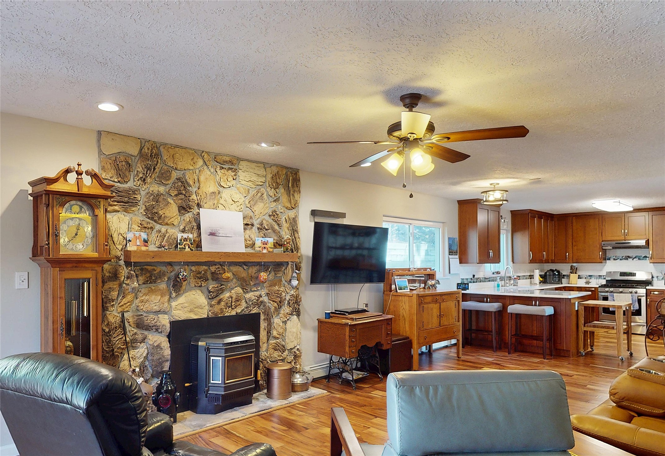 Located near the end of North Mesa, this beautifully maintained two-story home offers a thoughtful blend of comfort, efficiency, and flexible living space. With three bedrooms plus a versatile loft, the floor plan easily adapts to your needs, whether as a home office, reading retreat, workout area, or multi-use space. The light-filled main level features soaring south-facing windows that bring in warmth and natural light throughout the day, an ideal setup for both comfort and energy efficiency. Beautiful new wood flooring runs throughout the first floor, adding warmth and a clean, modern feel. The updated kitchen offers ample storage and opens seamlessly to the family room, where a cozy pellet stove creates the perfect gathering space during cooler months. Formal living and dining areas provide additional room for entertaining or everyday living. Upstairs, the inviting primary suite includes an updated bath with a beautifully finished shower. Two additional bedrooms, a full bath, and the spacious loft complete the upper level. Outside, the yard features easy-care landscaping, towering ponderosa pines, and raised garden beds. Enjoy outdoor living on the patio or relax in the charming gazebo. The two-car garage offers abundant overhead storage. This home also features newer carpet and paint, along with updated bathrooms. Engineered acacia wood flooring was added in 2023, and the kitchen was updated with new counters and cabinets the same year. Windows were replaced in 2018. Conveniently located near the middle school, dog park, horse stables, playground, and tennis courts. With easy access to trails and all that North Mesa offers, this home is ready for you to move in and enjoy.