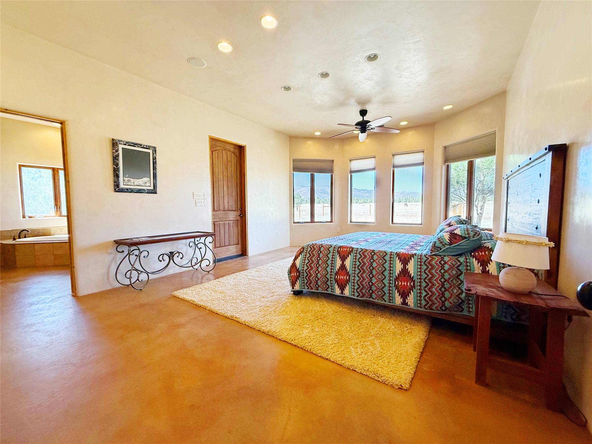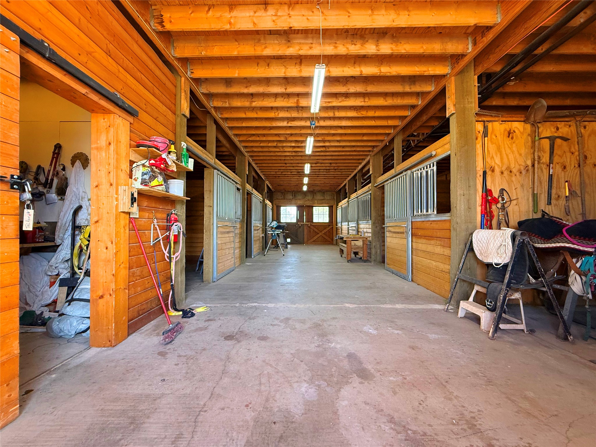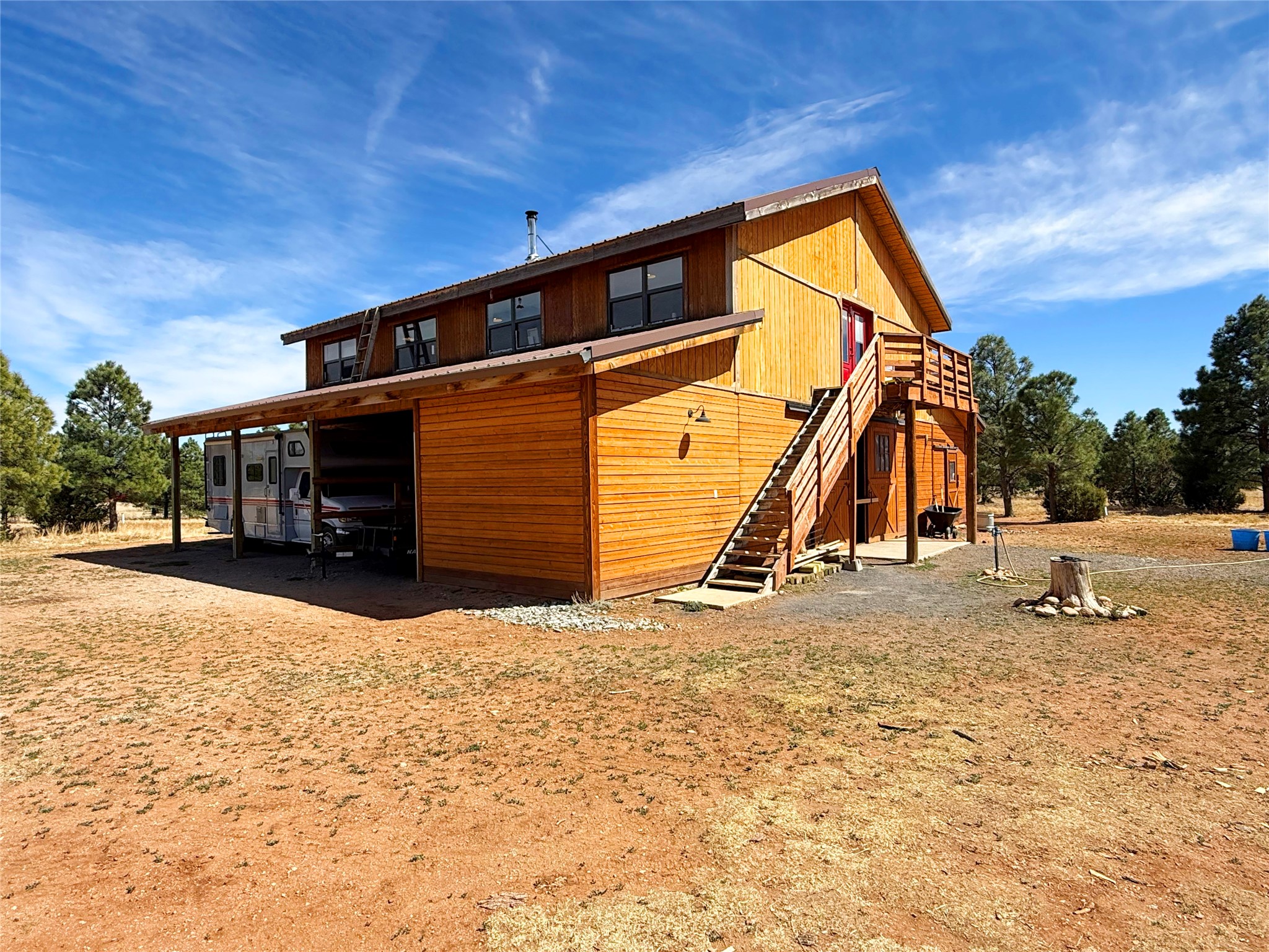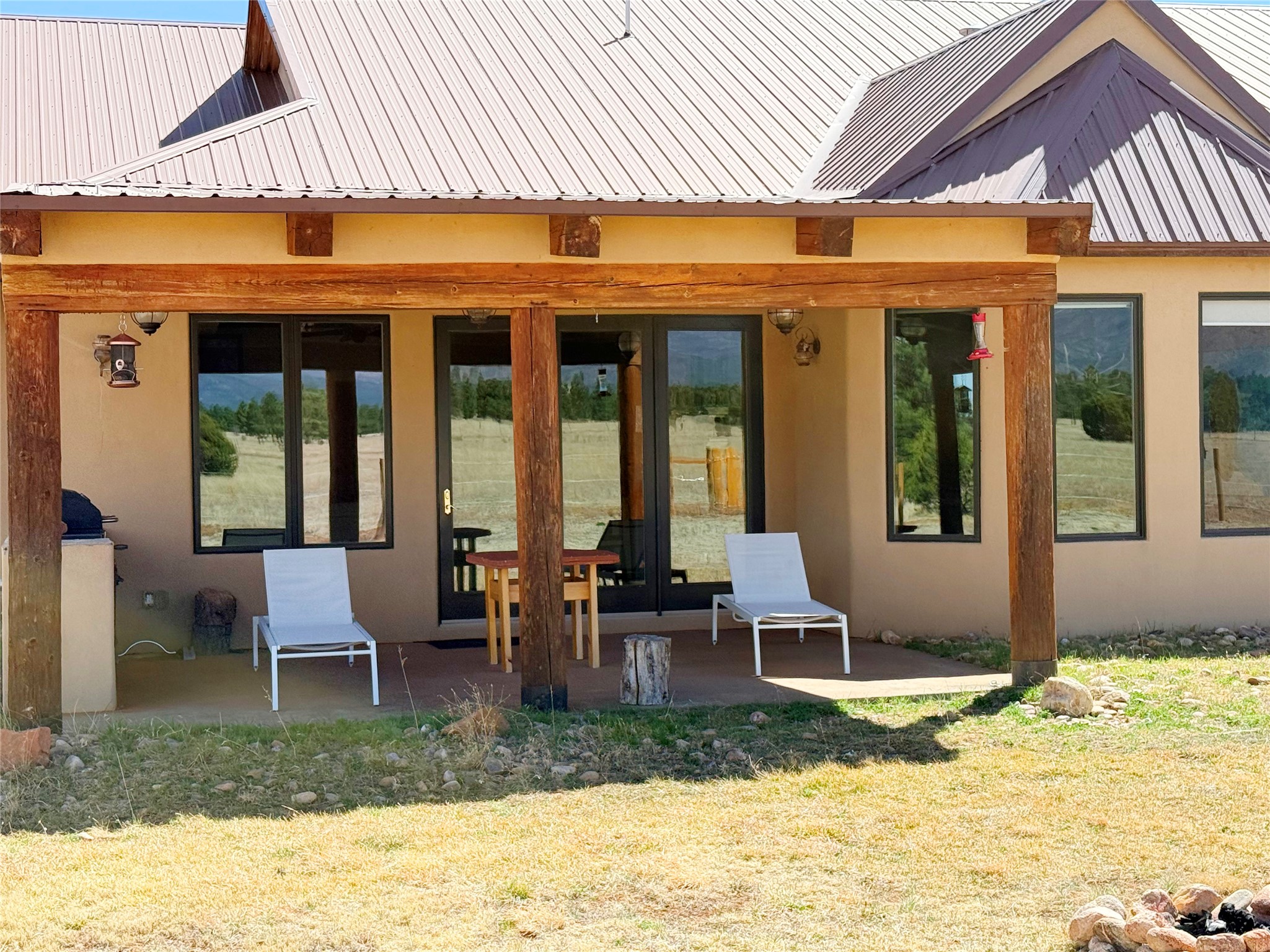 Tara Ranch is a substantially built Northern New Mexico ranch property offering privacy, scale, and exceptional equestrian improvements on 20 fully fenced, mostly flat acres. From the gated entrance, a beautiful quarter-mile private driveway leads to the 3,400+square-foot main home and the impressive barn. Built in 2006, the one-level home features 12-foot ceilings, diamond-finish walls, arches, and large beams throughout, creating a spacious feel with oversized rooms and generous living areas. The open main living, dining, and kitchen spaces take in magnificent views and connect easily to a covered portal for outdoor dining, grilling, and enjoying the landscape. The chef's kitchen is well equipped with two ovens, a large gas cooktop with griddle, two sinks, wild stone granite counters, stainless steel appliances, large pantry, and abundant cabinetry. The layout is practical and comfortable, with the primary suite, office or media room, and one guest bedroom on the west wing, while two additional bedrooms and a Jack-and-Jill bath are on the east wing. The heated 3+ car garage, radiant floor heat, fenced backyard, updated boiler in 2024, hot water heater in 2022, private well, and water softener add everyday function and value. Completed in 2025, the state-of-the-art 6-stall Barn Pros equestrian facility includes rubber flooring, tack room, workshop, hay storage, wash area, fenced 45x60 corral, RV covered parking, and a 1,600-square-foot apartment above. Surrounded on three sides by a 2,500-acre private ranch, with sweeping Hermit's Peak views and easy access to riding trails, Tara Ranch is well situated for access to Santa Fe and Las Vegas NM.