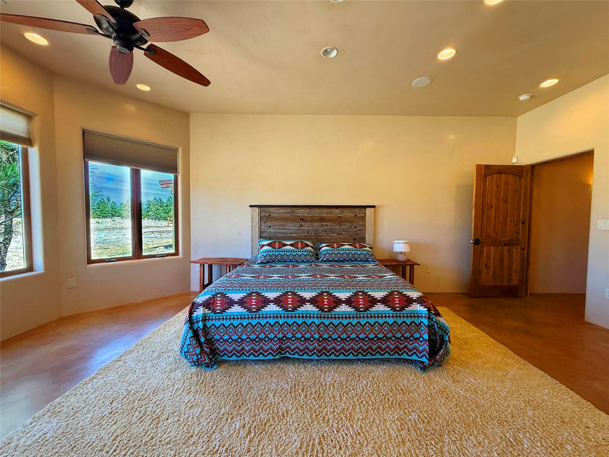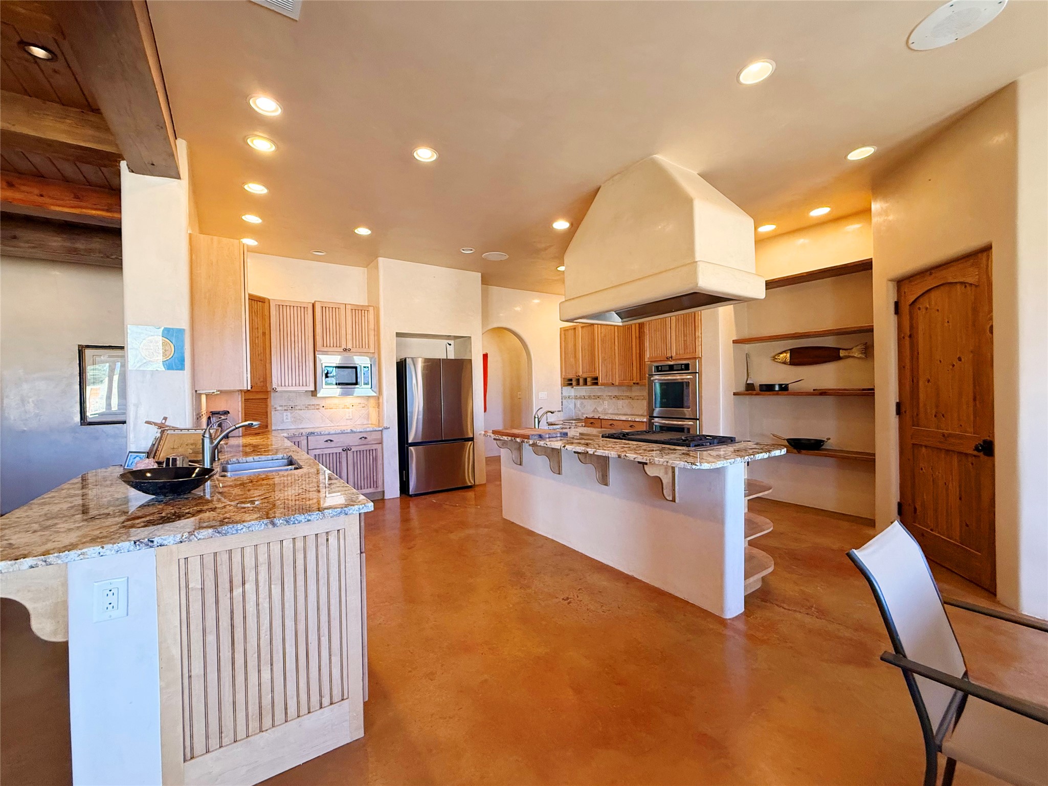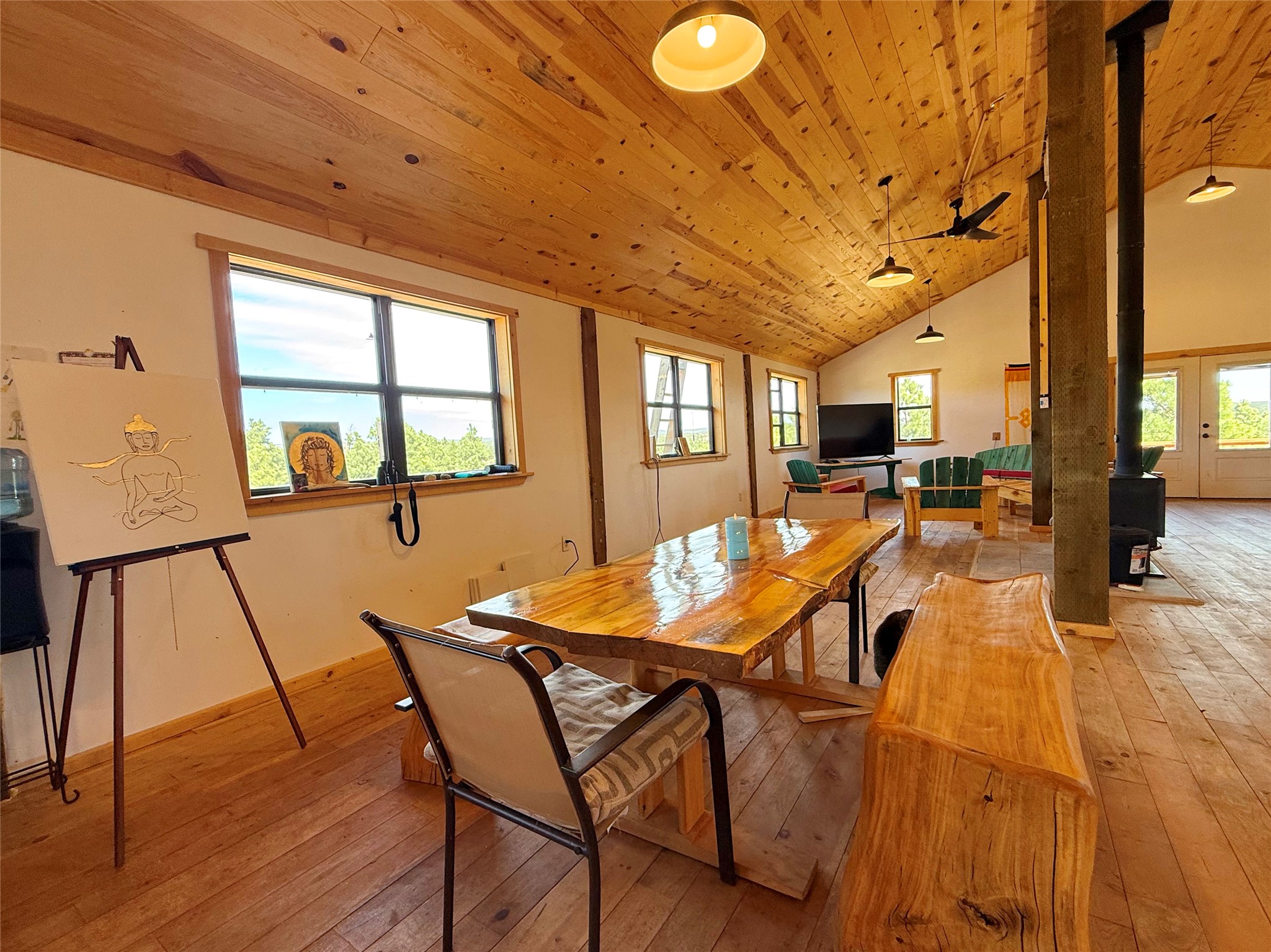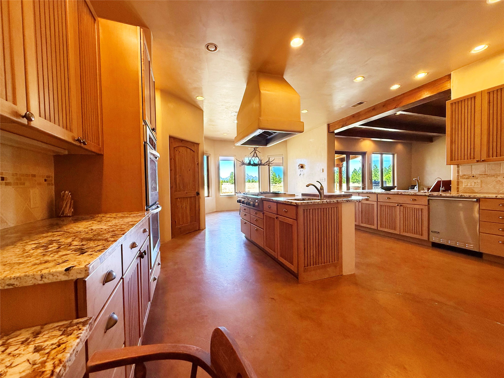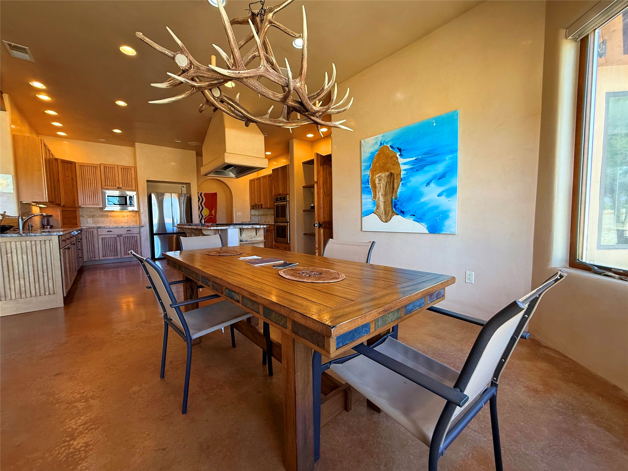 Tara Ranch is a substantially built Northern New Mexico ranch property offering privacy, scale, and exceptional equestrian improvements on 20 fully fenced, mostly flat acres. From the gated entrance, a beautiful quarter-mile private driveway leads to the 3,400+square-foot main home and the impressive barn. Built in 2006, the one-level home features 12-foot ceilings, diamond-finish walls, arches, and large beams throughout, creating a spacious feel with oversized rooms and generous living areas. The open main living, dining, and kitchen spaces take in magnificent views and connect easily to a covered portal for outdoor dining, grilling, and enjoying the landscape. The chef's kitchen is well equipped with two ovens, a large gas cooktop with griddle, two sinks, wild stone granite counters, stainless steel appliances, large pantry, and abundant cabinetry. The layout is practical and comfortable, with the primary suite, office or media room, and one guest bedroom on the west wing, while two additional bedrooms and a Jack-and-Jill bath are on the east wing. The heated 3+ car garage, radiant floor heat, fenced backyard, updated boiler in 2024, hot water heater in 2022, private well, and water softener add everyday function and value. Completed in 2025, the state-of-the-art 6-stall Barn Pros equestrian facility includes rubber flooring, tack room, workshop, hay storage, wash area, fenced 45x60 corral, RV covered parking, and a 1,600-square-foot apartment above. Surrounded on three sides by a 2,500-acre private ranch, with sweeping Hermit's Peak views and easy access to riding trails, Tara Ranch is well situated for access to Santa Fe and Las Vegas NM.