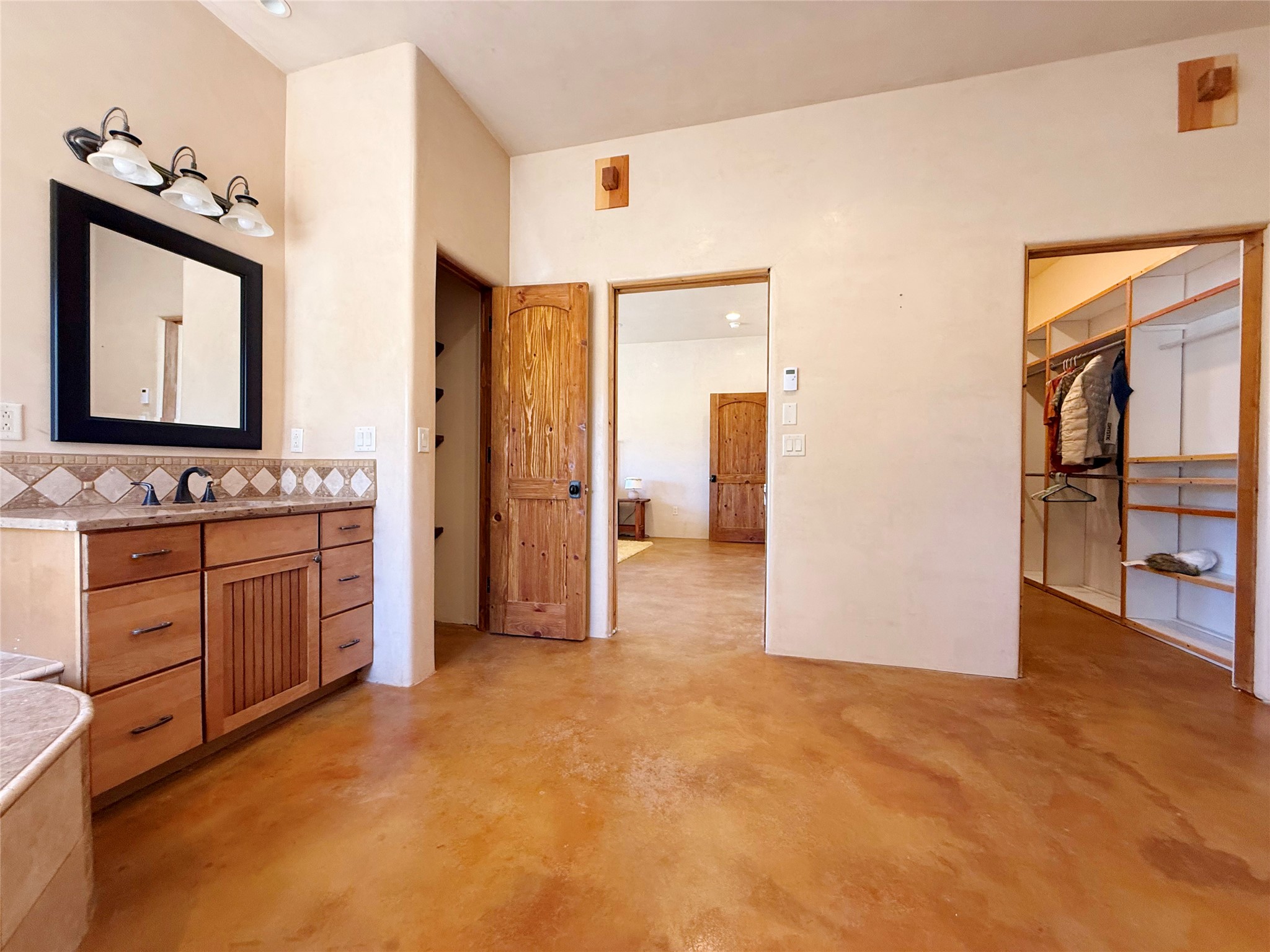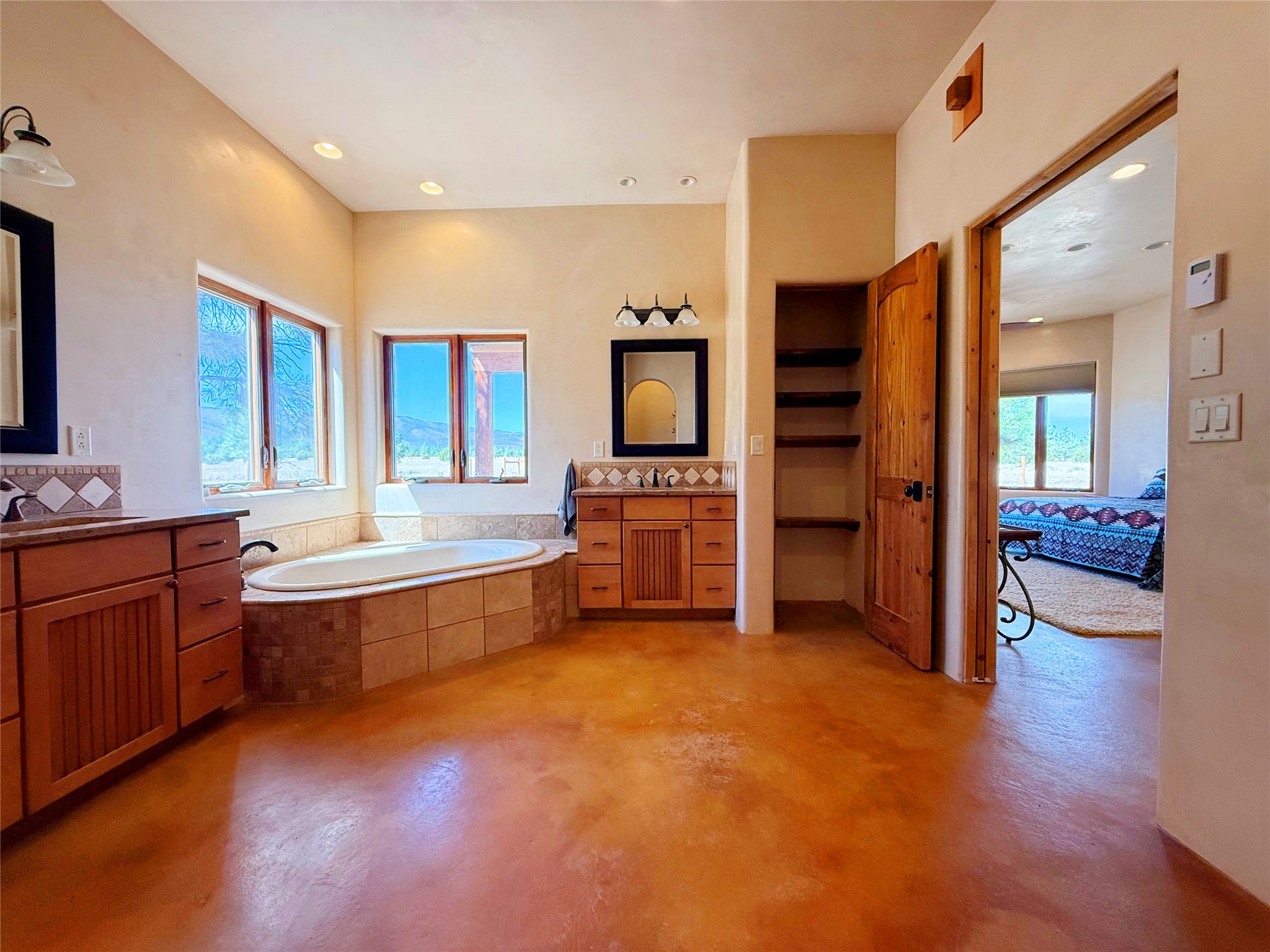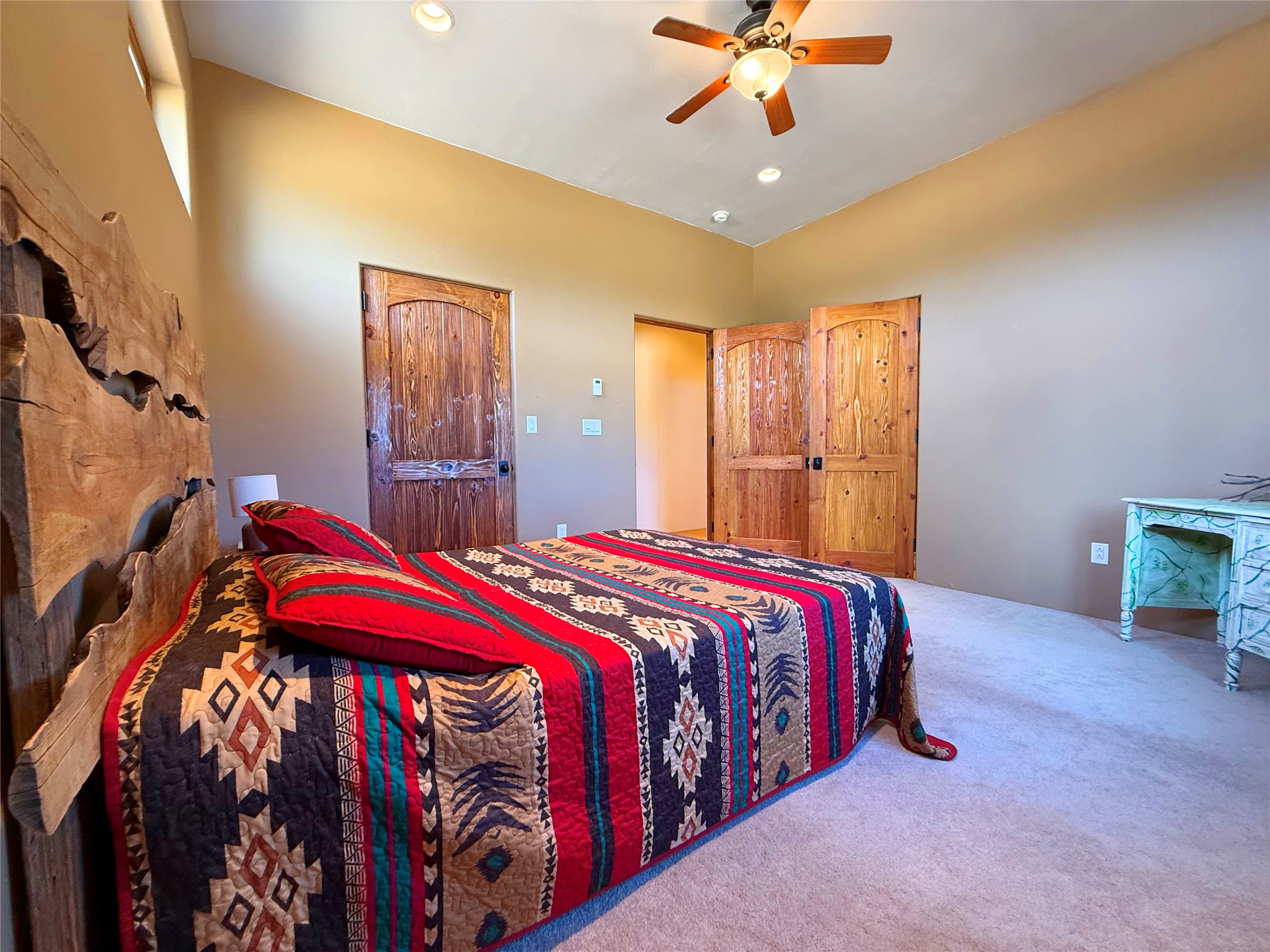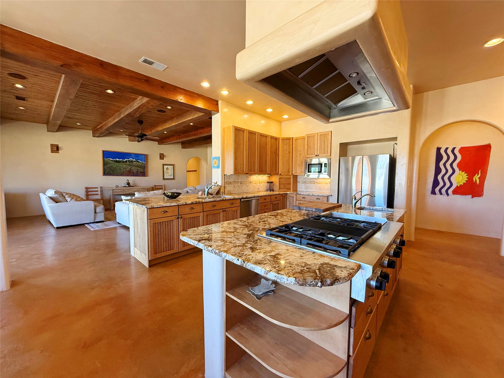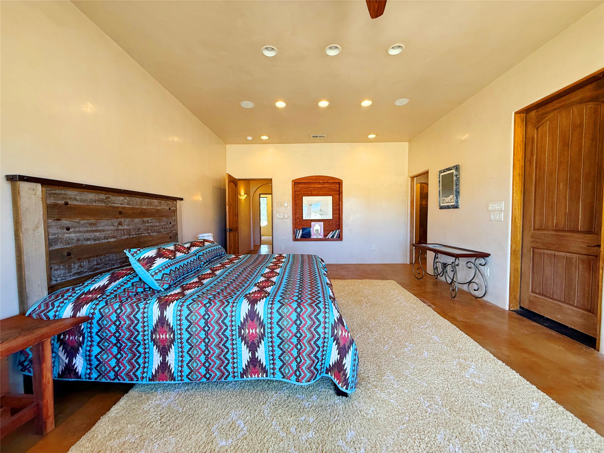 Tara Ranch is a substantially built Northern New Mexico ranch property offering privacy, scale, and exceptional equestrian improvements on 20 fully fenced, mostly flat acres. From the gated entrance, a beautiful quarter-mile private driveway leads to the 3,400+square-foot main home and the impressive barn. Built in 2006, the one-level home features 12-foot ceilings, diamond-finish walls, arches, and large beams throughout, creating a spacious feel with oversized rooms and generous living areas. The open main living, dining, and kitchen spaces take in magnificent views and connect easily to a covered portal for outdoor dining, grilling, and enjoying the landscape. The chef's kitchen is well equipped with two ovens, a large gas cooktop with griddle, two sinks, wild stone granite counters, stainless steel appliances, large pantry, and abundant cabinetry. The layout is practical and comfortable, with the primary suite, office or media room, and one guest bedroom on the west wing, while two additional bedrooms and a Jack-and-Jill bath are on the east wing. The heated 3+ car garage, radiant floor heat, fenced backyard, updated boiler in 2024, hot water heater in 2022, private well, and water softener add everyday function and value. Completed in 2025, the state-of-the-art 6-stall Barn Pros equestrian facility includes rubber flooring, tack room, workshop, hay storage, wash area, fenced 45x60 corral, RV covered parking, and a 1,600-square-foot apartment above. Surrounded on three sides by a 2,500-acre private ranch, with sweeping Hermit's Peak views and easy access to riding trails, Tara Ranch is well situated for access to Santa Fe and Las Vegas NM.