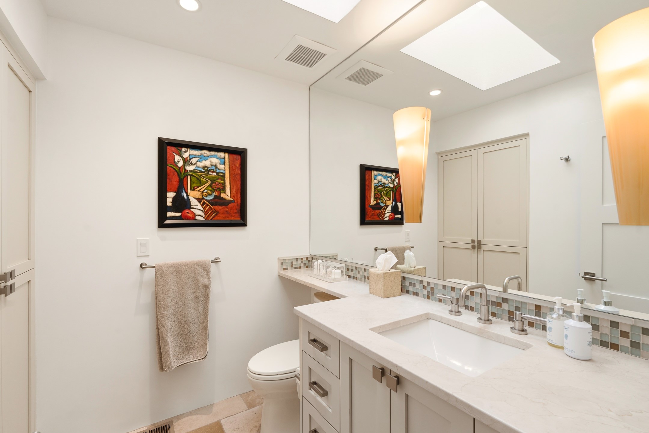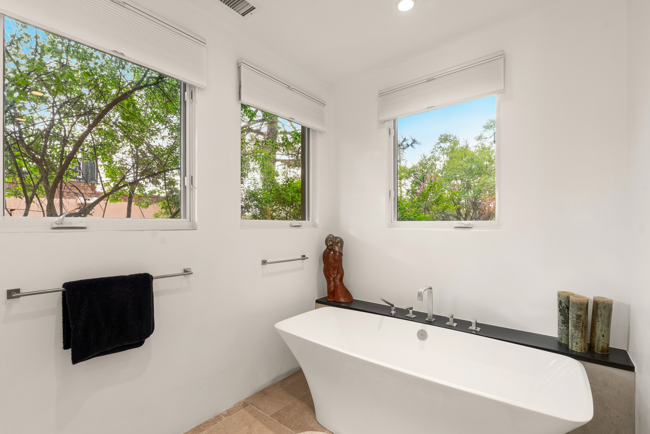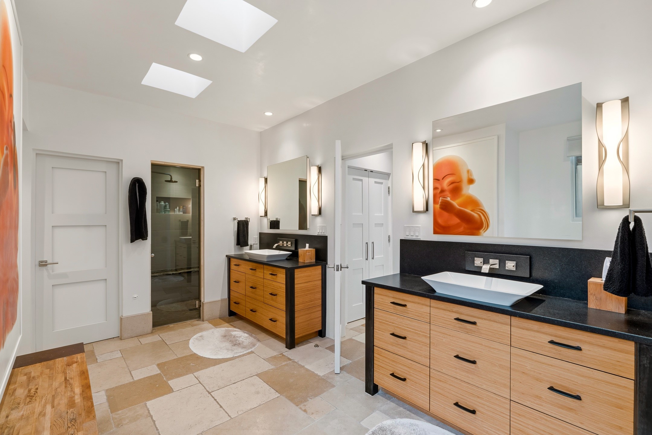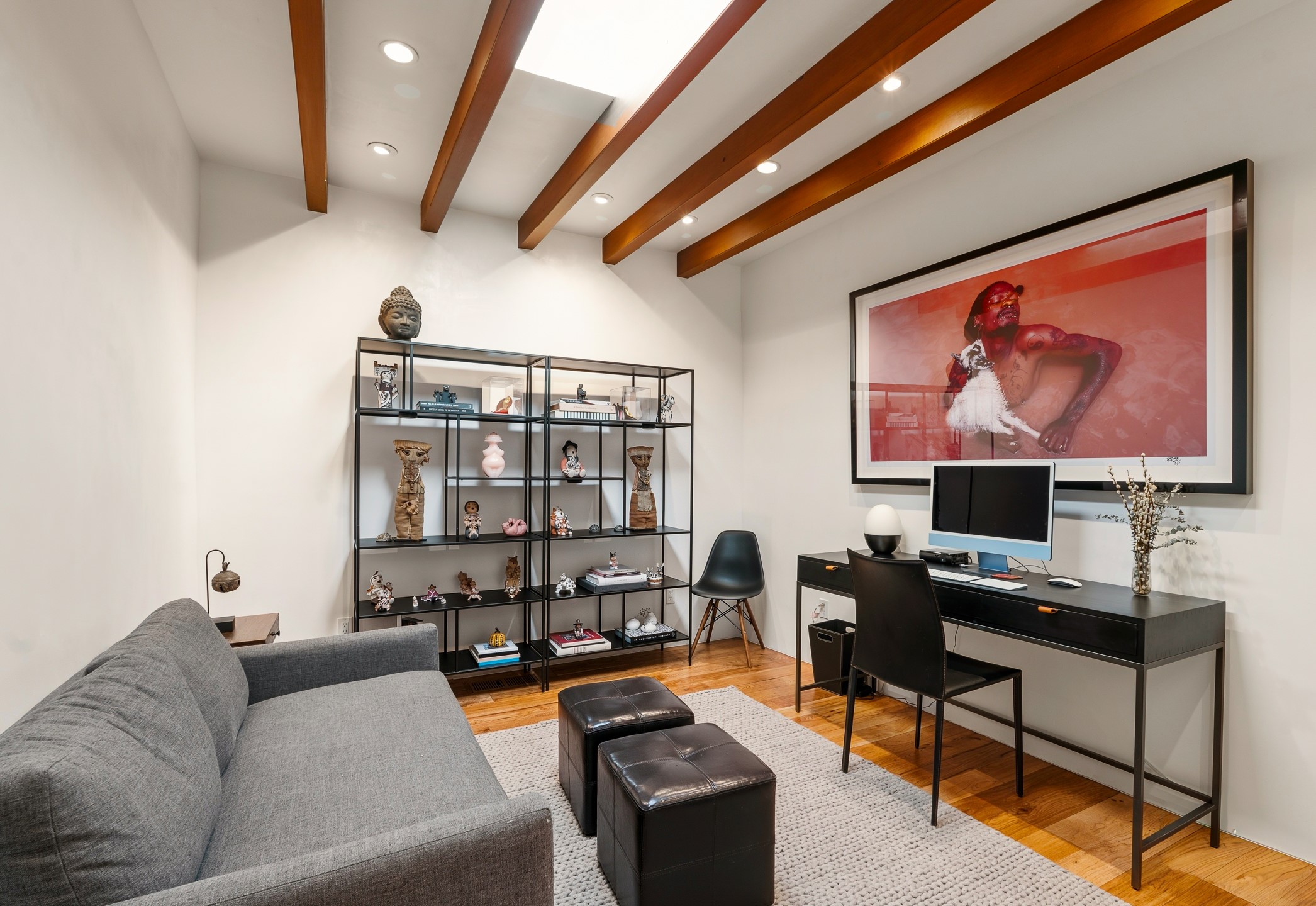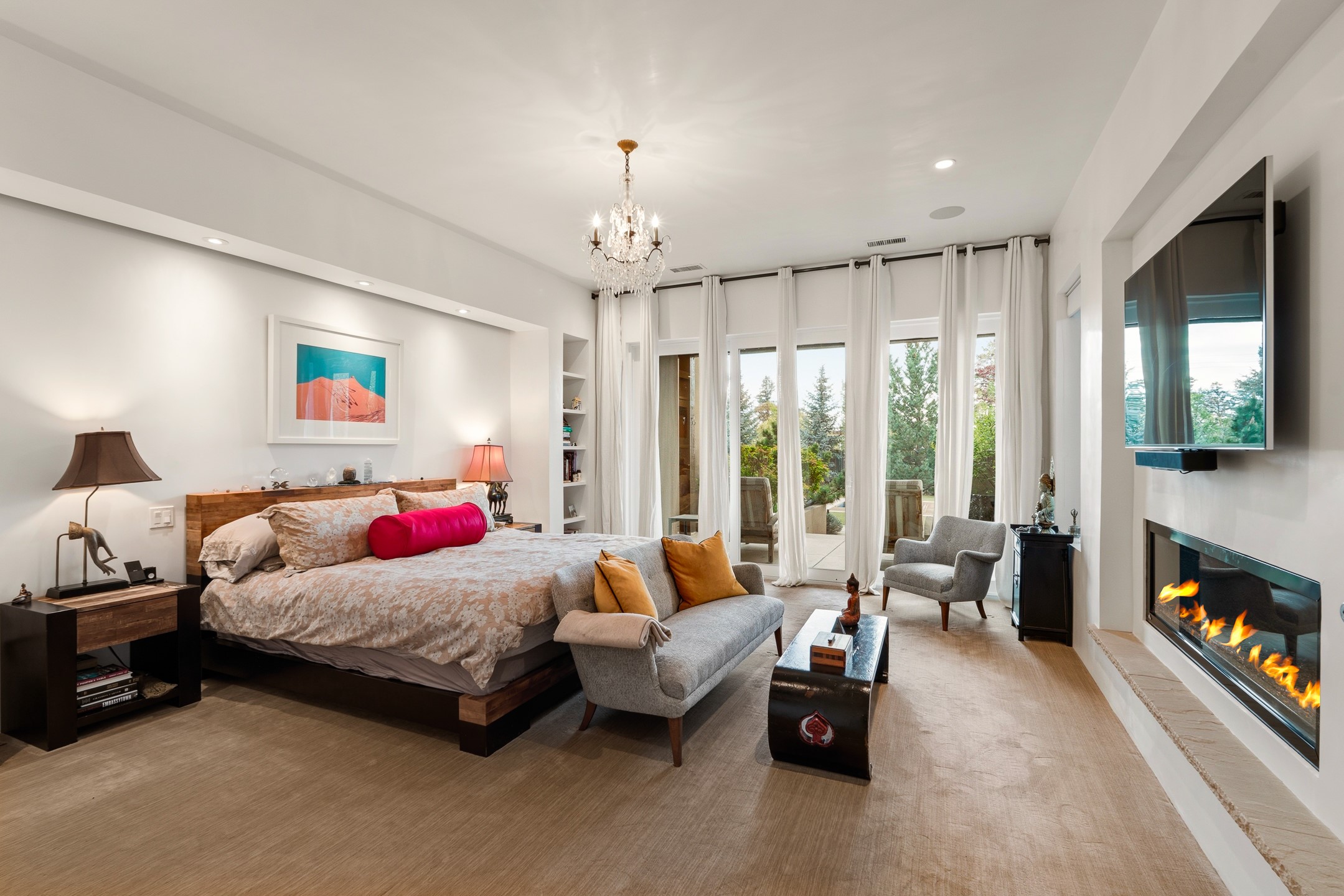 A rare offering that captures the essence of a refined Santa Fe retreat, this sophisticated compound delivers privacy, design excellence, and seamless access to the city's most celebrated destinations. Downtown, Canyon Road, and Museum Hill are moments away. Beyond its walled and gated entry, the property unfolds as a lifestyle experience. Lush landscaping and cultivated gardens create calm and seclusion, while multiple outdoor living areas invite relaxation and entertaining. A heated pool and spa anchor grounds, complemented by a stylish cabana evoking a resort. The residence is a study in modern elegance. Expansive twelve-foot ceilings, and a fluid layout create a natural connection between interior spaces and the surrounding environment. Walls of glass draw in soft light and frame sunset skies, while refined finishes lend enduring sophistication throughout. At the heart of the home, a striking chef's kitchen is designed for both performance and presence, equally suited to intimate evenings or larger gatherings, and enhanced by a climate-controlled wine room. The primary suite offers a tranquil escape with a sitting area and coffee bar, dual walk-in closets, and a spa-caliber bath with steam shower and soaking tub. A secluded outdoor portal extends the sense of retreat. Separate guest accommodations ensure comfort and privacy, including two en-suite bedrooms and a flexible additional space for a media room, office, or bunk room. Features include sleek cabinetry, integrated audio and technology, whole-home water purification, diamond plaster finishes, and limestone detailing. Resort-level amenities include an infrared sauna, an outdoor kitchen with Wolf grill and pizza oven, and a fitness area by the pool. Impeccably maintained and offered turnkey, the property spans more than 4,300 square feet of interior living space and over 2,000 square feet of covered outdoor areas. It is an exceptional expression of style, comfort, and location in the heart of Santa Fe.