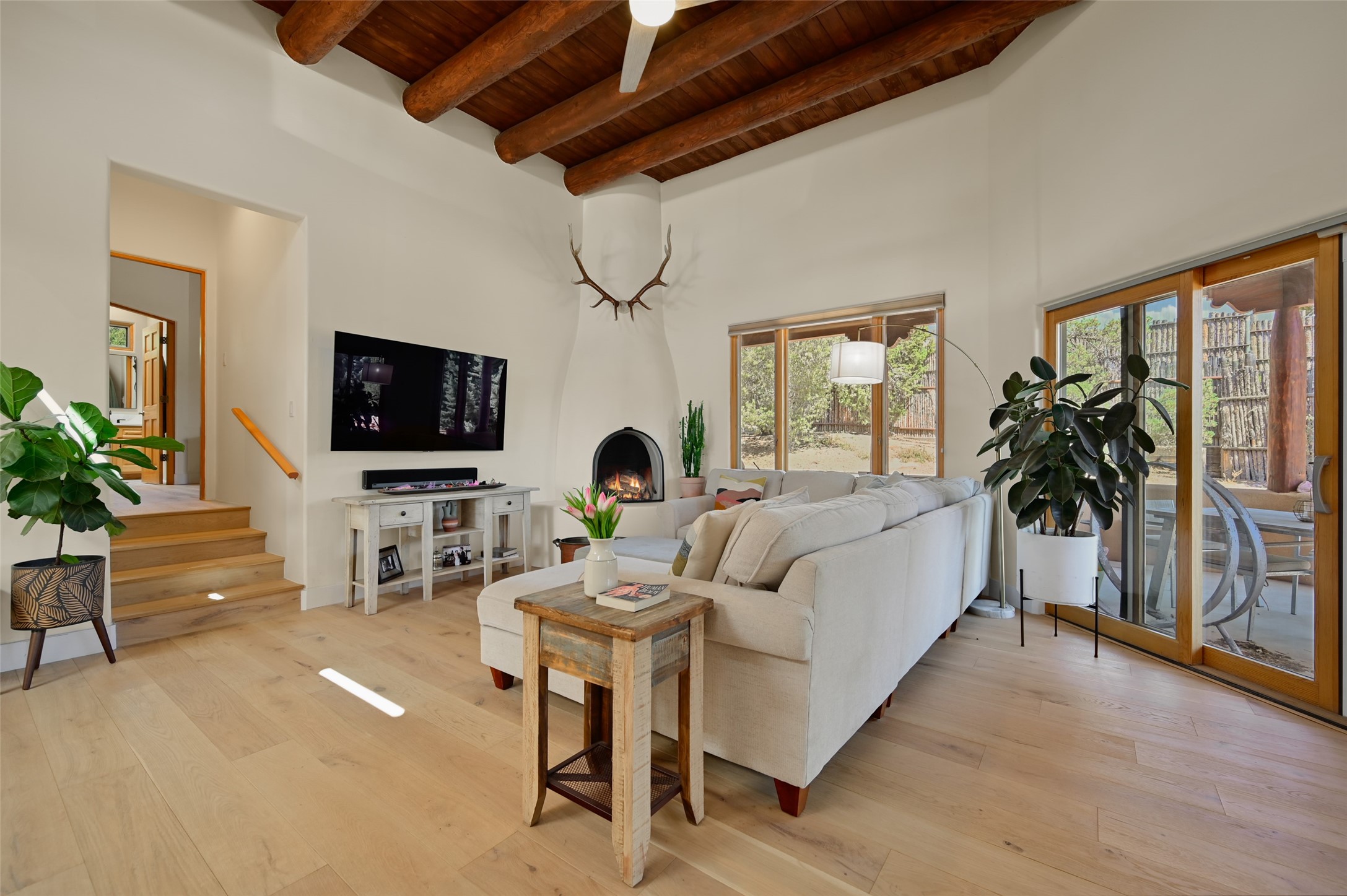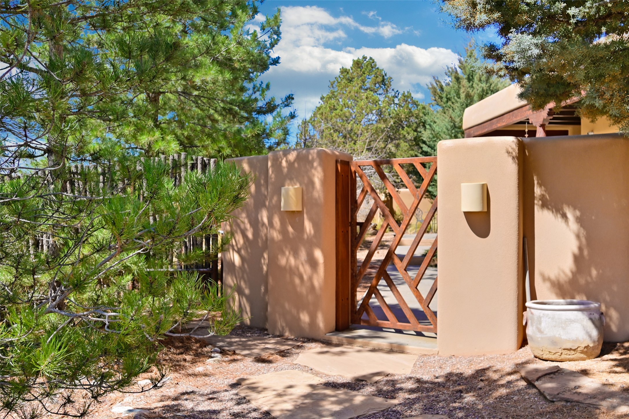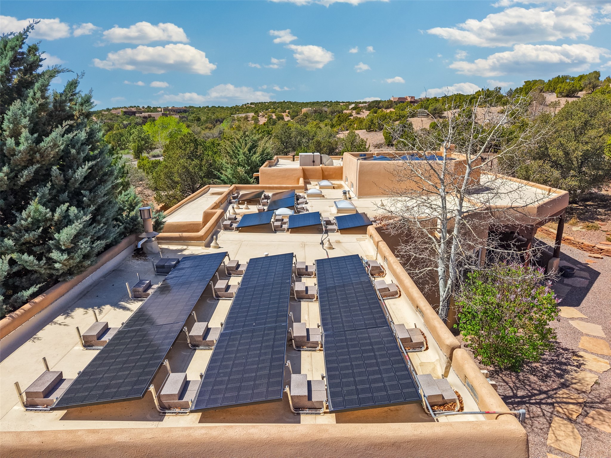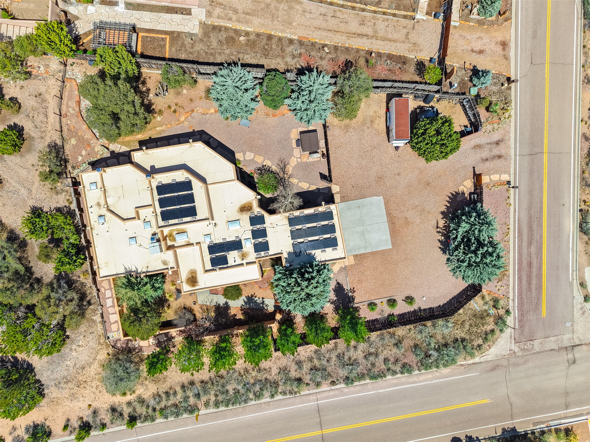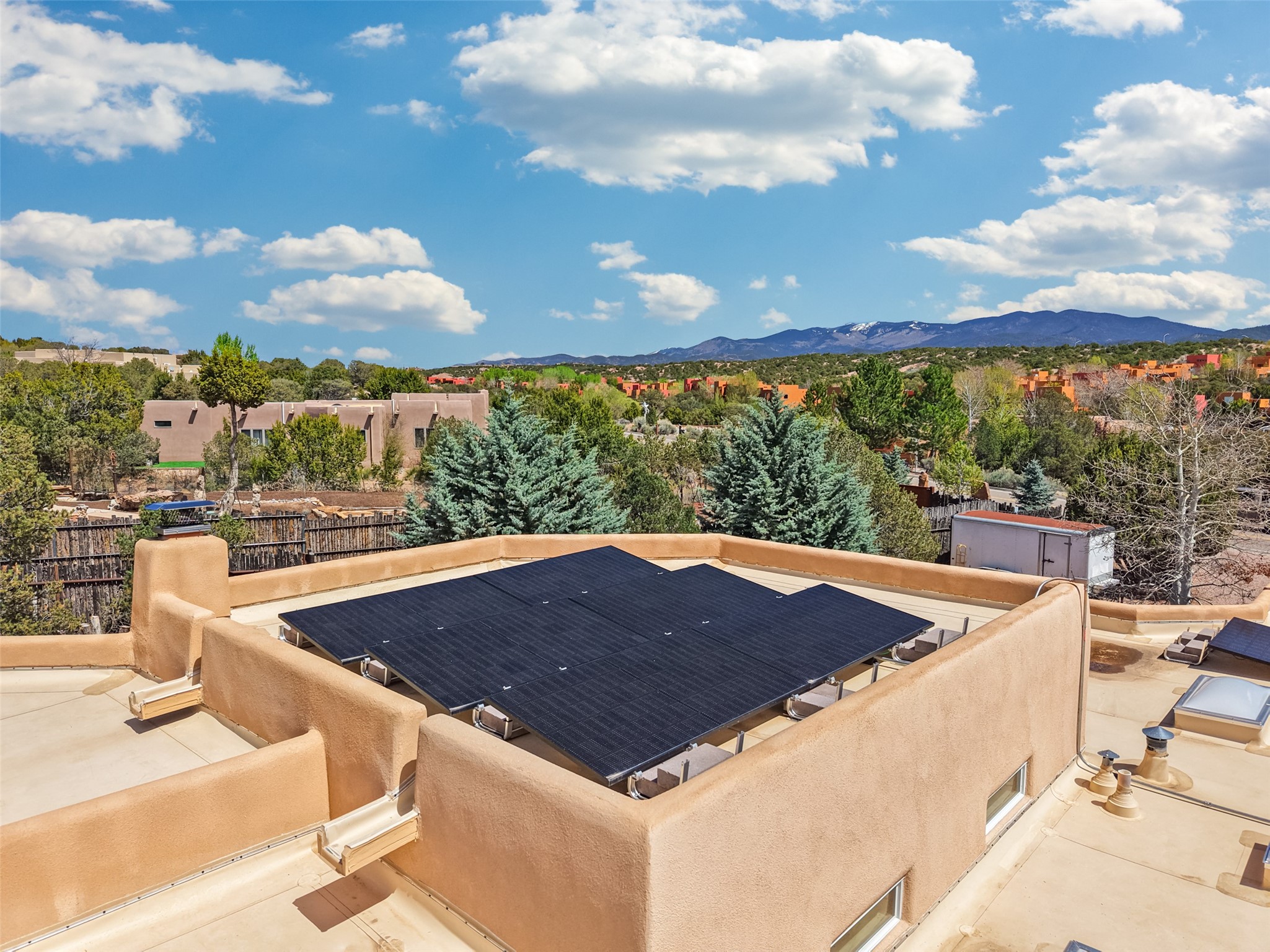 Situated on an oversized in-town lot with ample space to add an ADU, this tastefully renovated home offers the perfect blend of comfort, privacy, and the Santa Fe lifestyle. A gated entry welcomes you into a beautifully fenced property featuring low-maintenance xeriscaping and an abundance of mature trees, creating a serene and private setting. Ideally located on the desirable north side, you're just minutes from De Vargas Center and the historic downtown Plaza, with convenient access to Los Alamos. Enjoy nearby hiking and biking trails, as well as the popular Frank Ortiz and Ridgetop Dog Parks, all just moments from your doorstep. This unique property features stunning mountain views of the Sangre de Cristo Mountains and has been meticulously maintained and thoughtfully upgraded by its current owners--making it truly turnkey. Recent improvements include beautifully remodeled bathrooms, an updated kitchen, wall-to-wall engineered oak flooring, and a Navien tankless water heater with recirculation. A new TPO membrane roof with added insulation was installed in 2023 for enhanced energy efficiency. The home also boasts a fully owned 7.6 kW photovoltaic solar system that covers the property's electrical needs--with surplus capacity to charge your EV using the already installed charger in the spacious two-car garage. 839 Camino Francisca is a rare opportunity to enjoy modern upgrades, sustainability, privacy, and the very best of Santa Fe living.