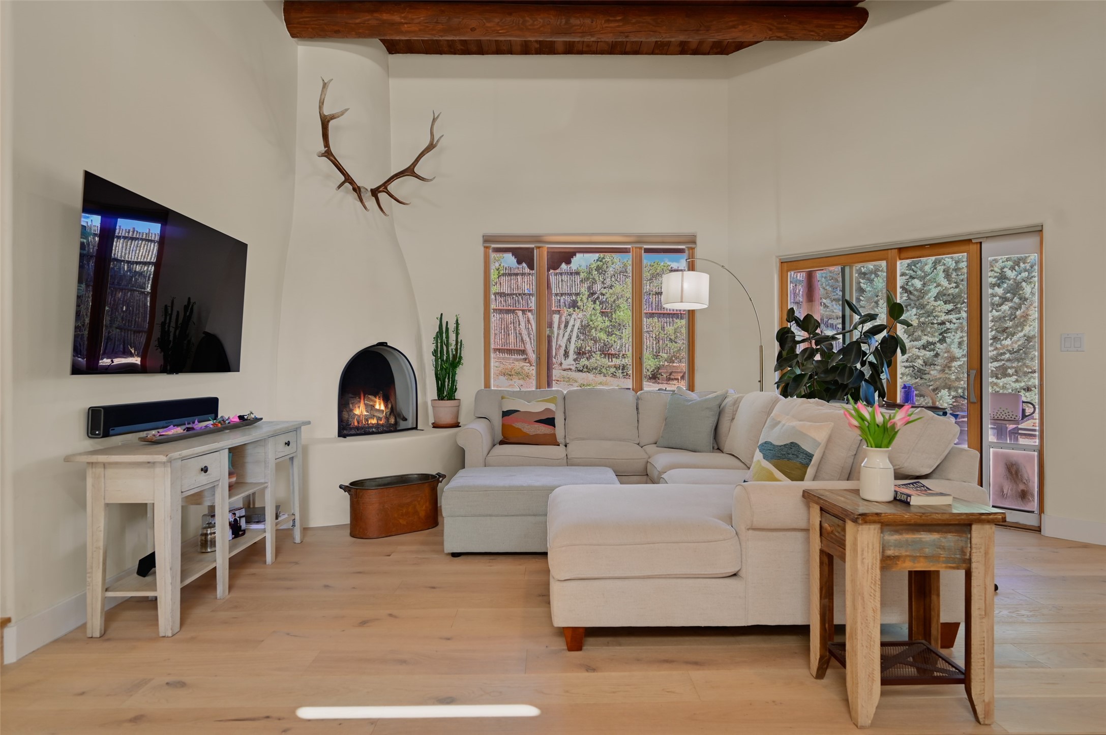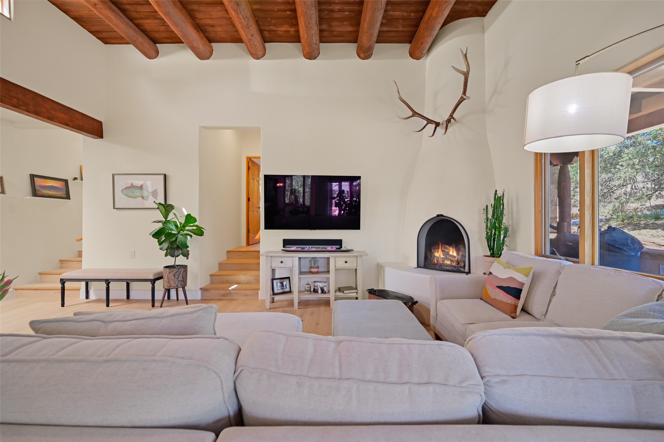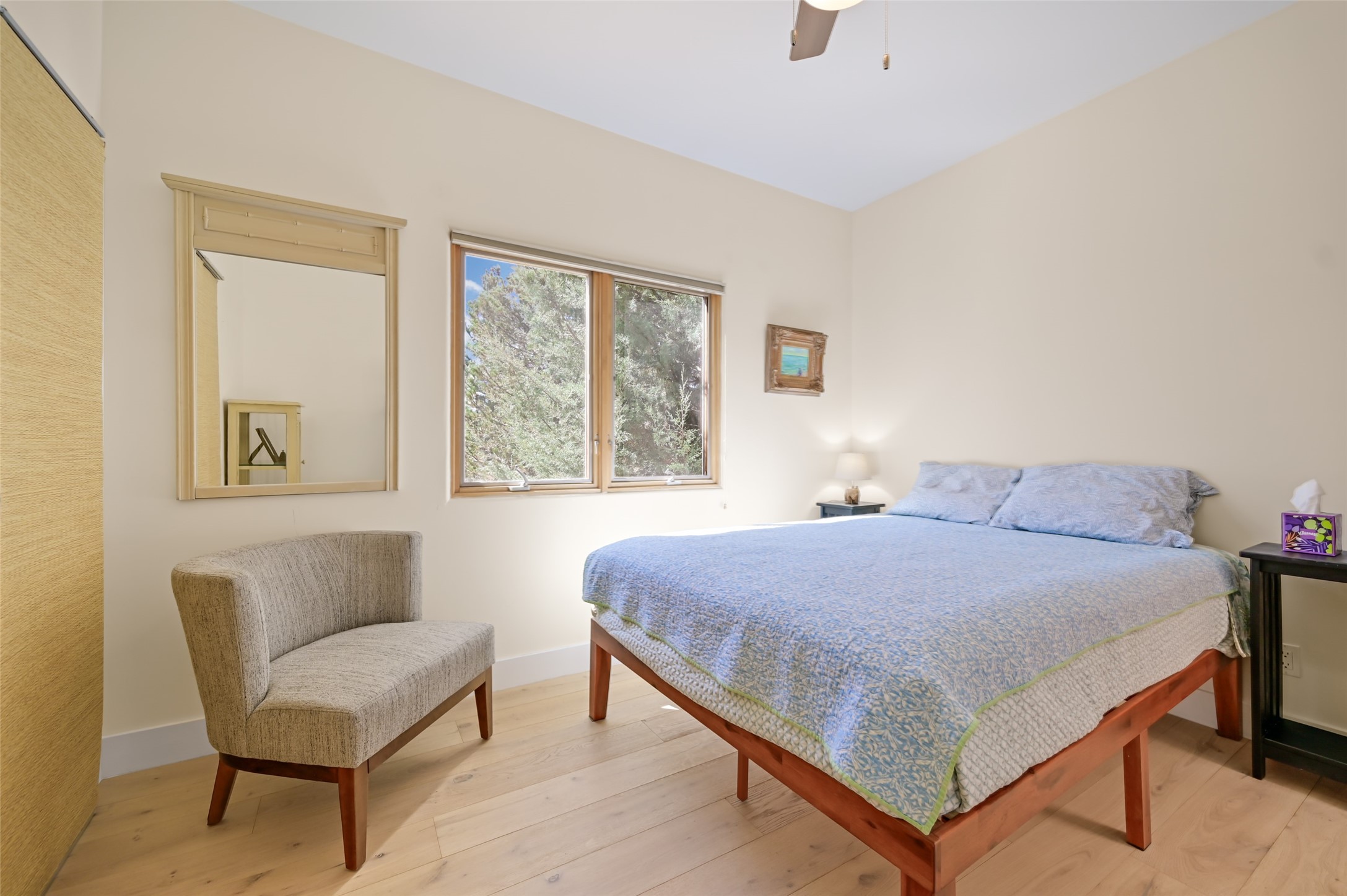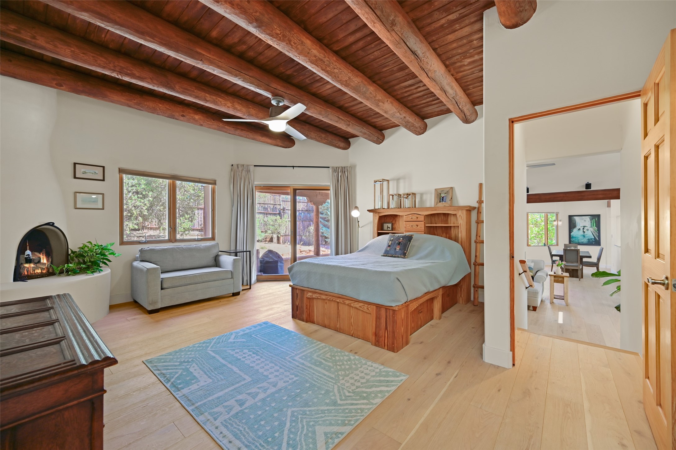 Situated on an oversized in-town lot with ample space to add an ADU, this tastefully renovated home offers the perfect blend of comfort, privacy, and the Santa Fe lifestyle. A gated entry welcomes you into a beautifully fenced property featuring low-maintenance xeriscaping and an abundance of mature trees, creating a serene and private setting. Ideally located on the desirable north side, you're just minutes from De Vargas Center and the historic downtown Plaza, with convenient access to Los Alamos. Enjoy nearby hiking and biking trails, as well as the popular Frank Ortiz and Ridgetop Dog Parks, all just moments from your doorstep. This unique property features stunning mountain views of the Sangre de Cristo Mountains and has been meticulously maintained and thoughtfully upgraded by its current owners--making it truly turnkey. Recent improvements include beautifully remodeled bathrooms, an updated kitchen, wall-to-wall engineered oak flooring, and a Navien tankless water heater with recirculation. A new TPO membrane roof with added insulation was installed in 2023 for enhanced energy efficiency. The home also boasts a fully owned 7.6 kW photovoltaic solar system that covers the property's electrical needs--with surplus capacity to charge your EV using the already installed charger in the spacious two-car garage. 839 Camino Francisca is a rare opportunity to enjoy modern upgrades, sustainability, privacy, and the very best of Santa Fe living.