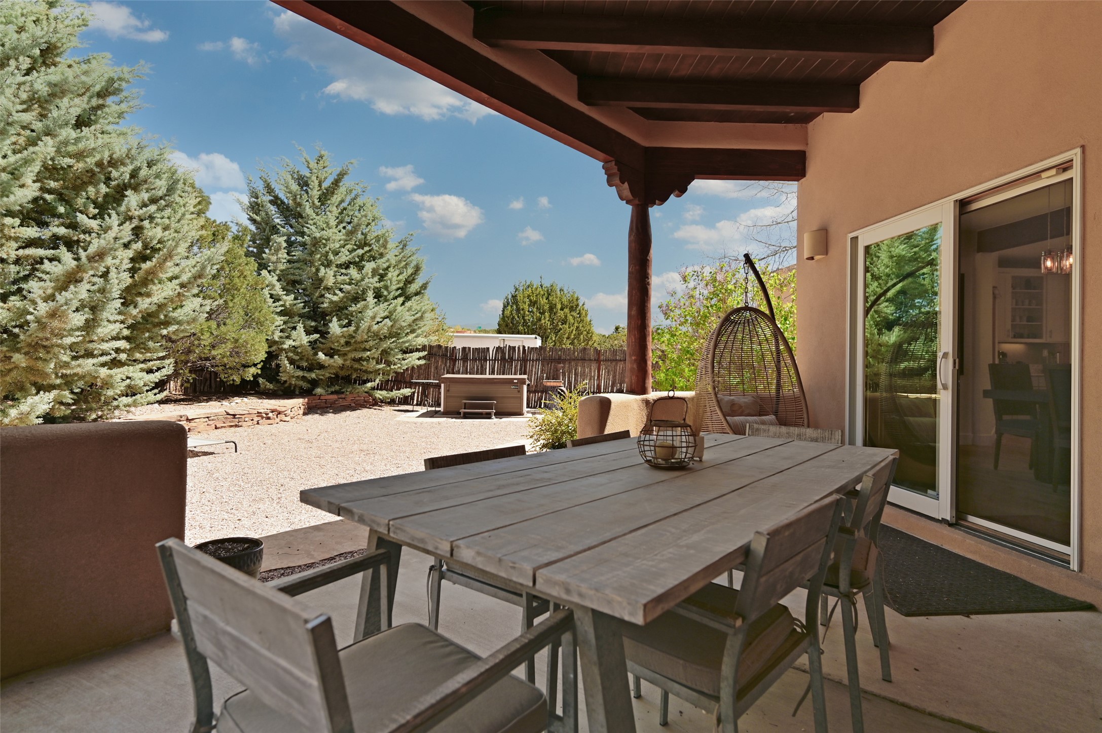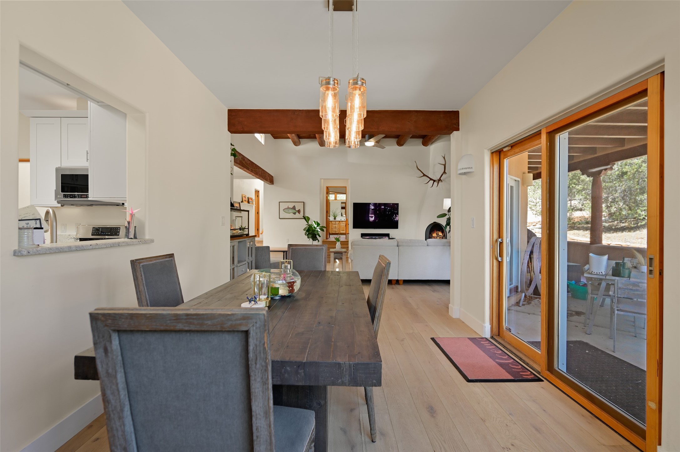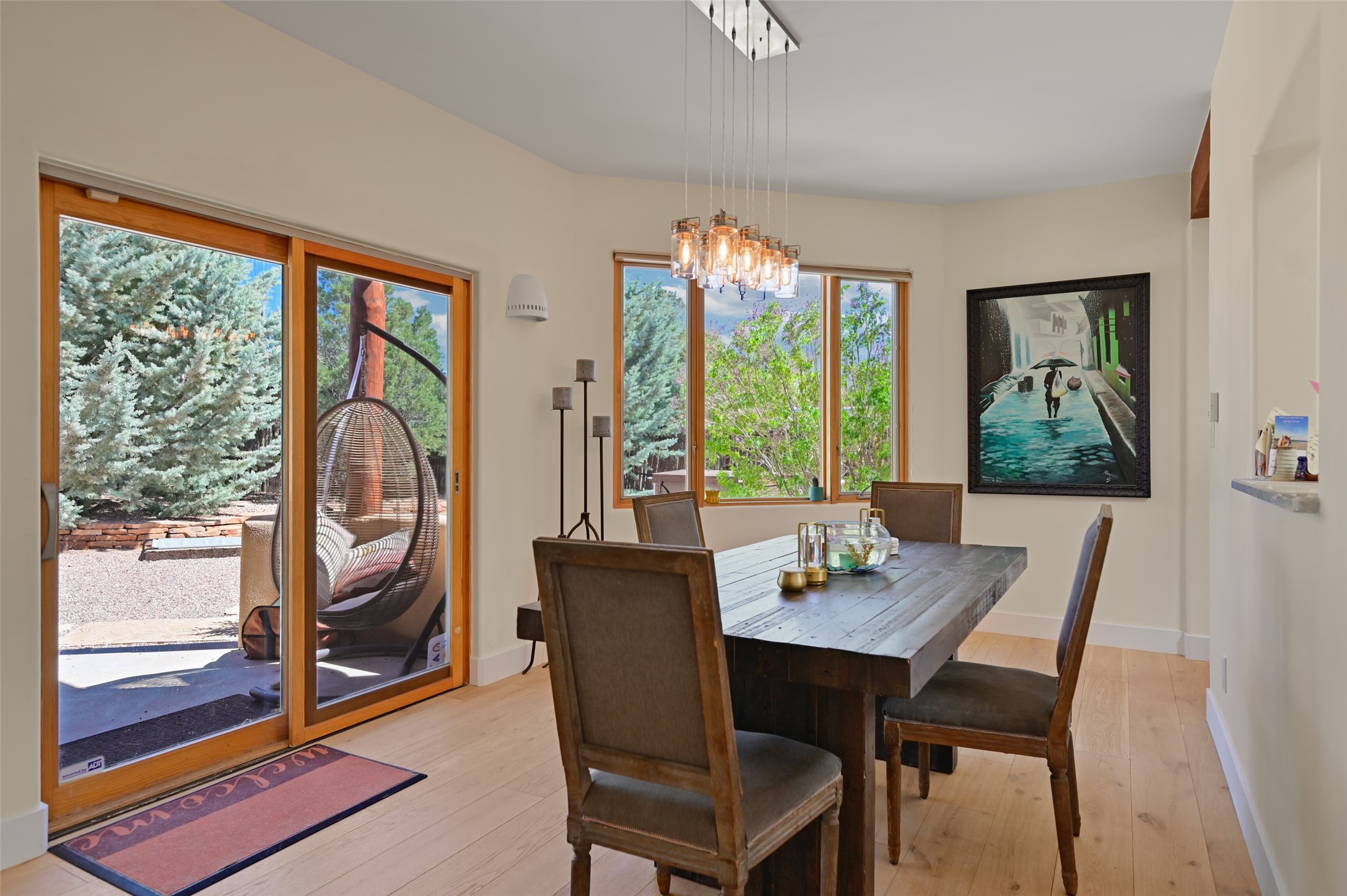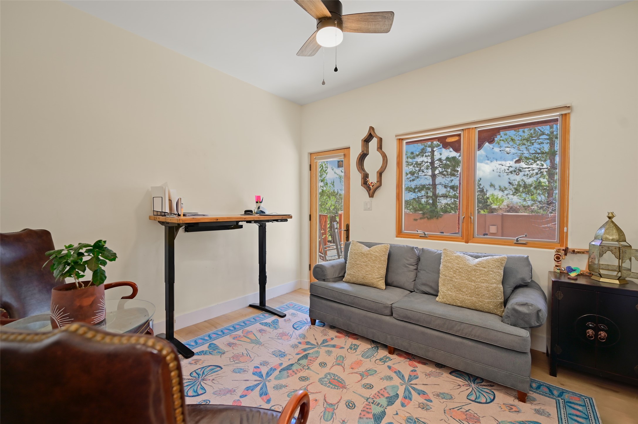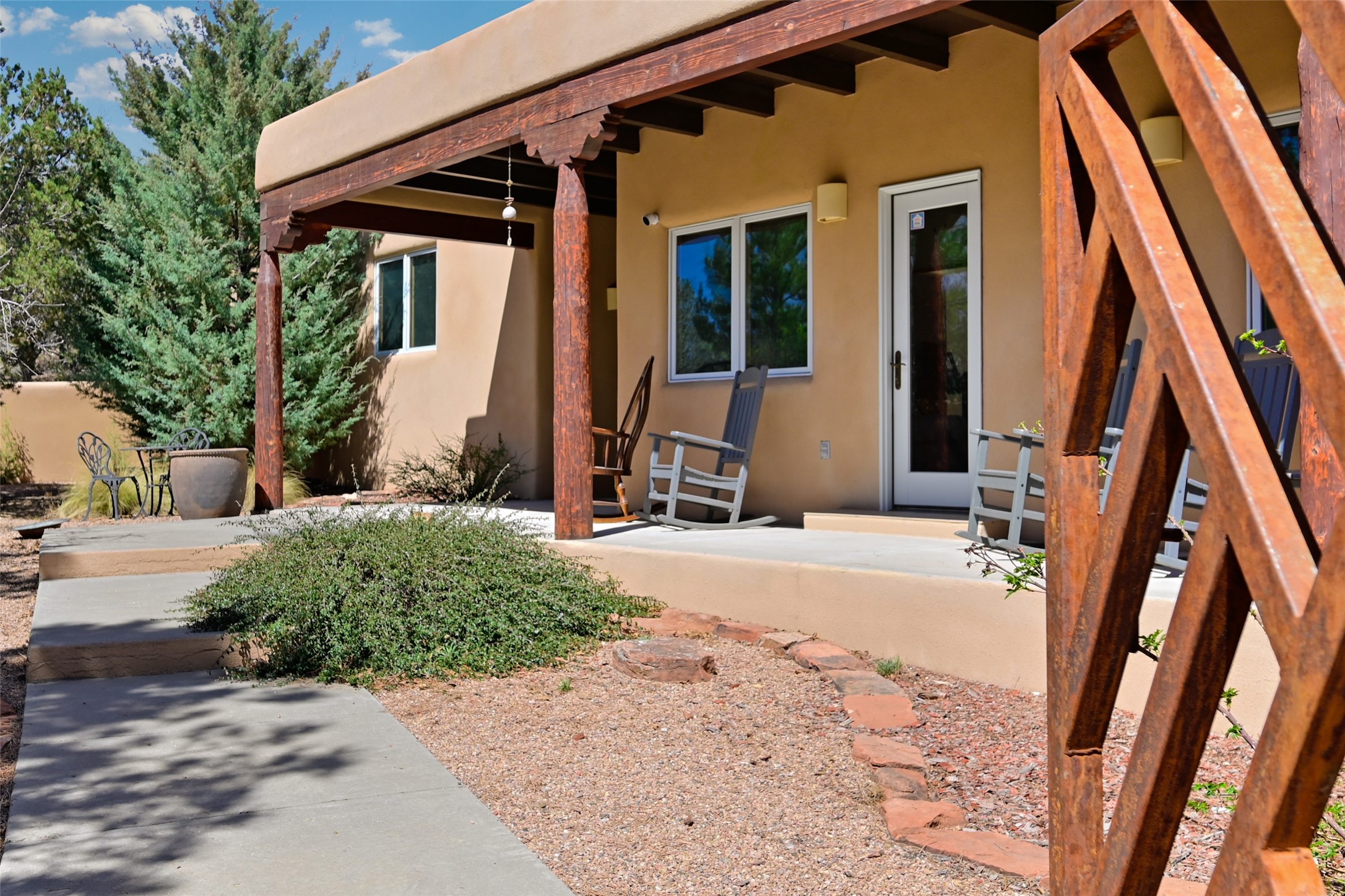 Situated on an oversized in-town lot with ample space to add an ADU, this tastefully renovated home offers the perfect blend of comfort, privacy, and the Santa Fe lifestyle. A gated entry welcomes you into a beautifully fenced property featuring low-maintenance xeriscaping and an abundance of mature trees, creating a serene and private setting. Ideally located on the desirable north side, you're just minutes from De Vargas Center and the historic downtown Plaza, with convenient access to Los Alamos. Enjoy nearby hiking and biking trails, as well as the popular Frank Ortiz and Ridgetop Dog Parks, all just moments from your doorstep. This unique property features stunning mountain views of the Sangre de Cristo Mountains and has been meticulously maintained and thoughtfully upgraded by its current owners--making it truly turnkey. Recent improvements include beautifully remodeled bathrooms, an updated kitchen, wall-to-wall engineered oak flooring, and a Navien tankless water heater with recirculation. A new TPO membrane roof with added insulation was installed in 2023 for enhanced energy efficiency. The home also boasts a fully owned 7.6 kW photovoltaic solar system that covers the property's electrical needs--with surplus capacity to charge your EV using the already installed charger in the spacious two-car garage. 839 Camino Francisca is a rare opportunity to enjoy modern upgrades, sustainability, privacy, and the very best of Santa Fe living.