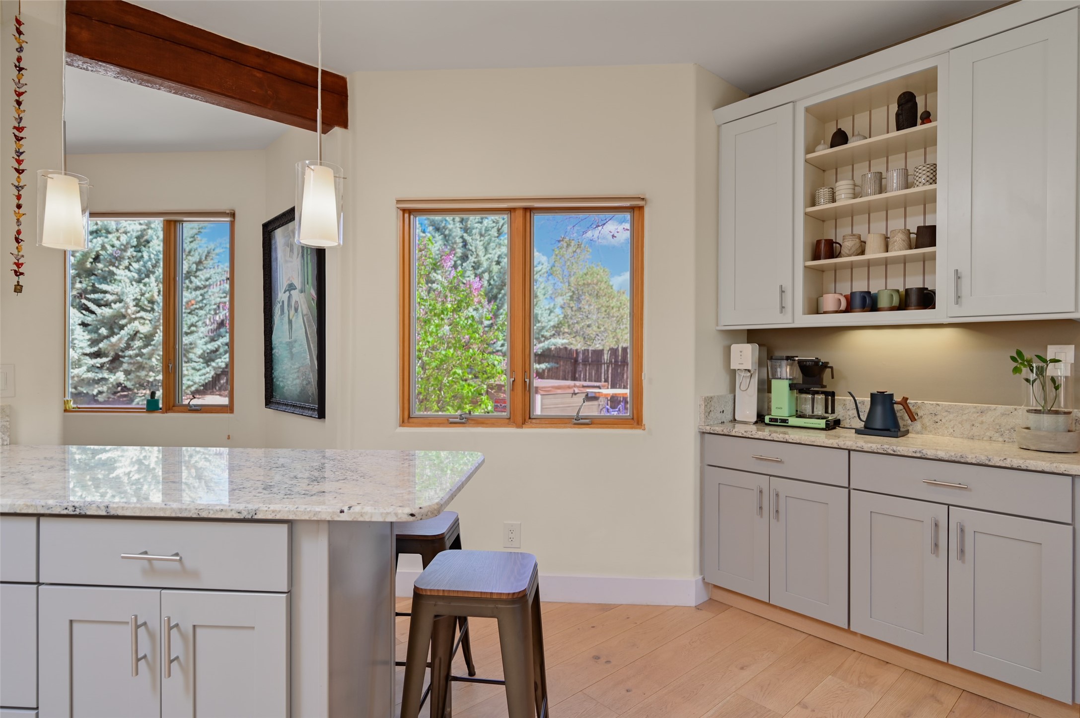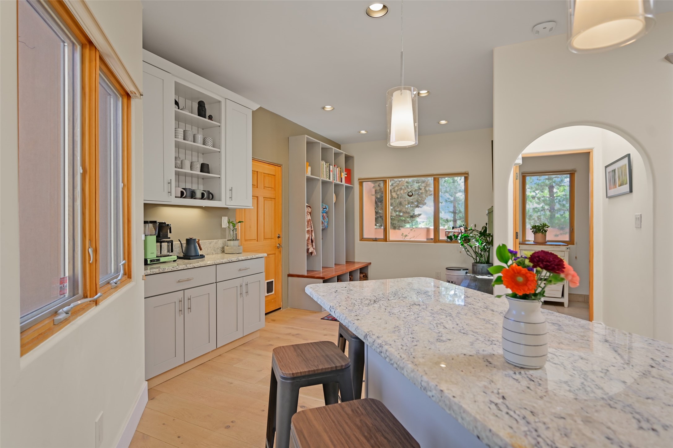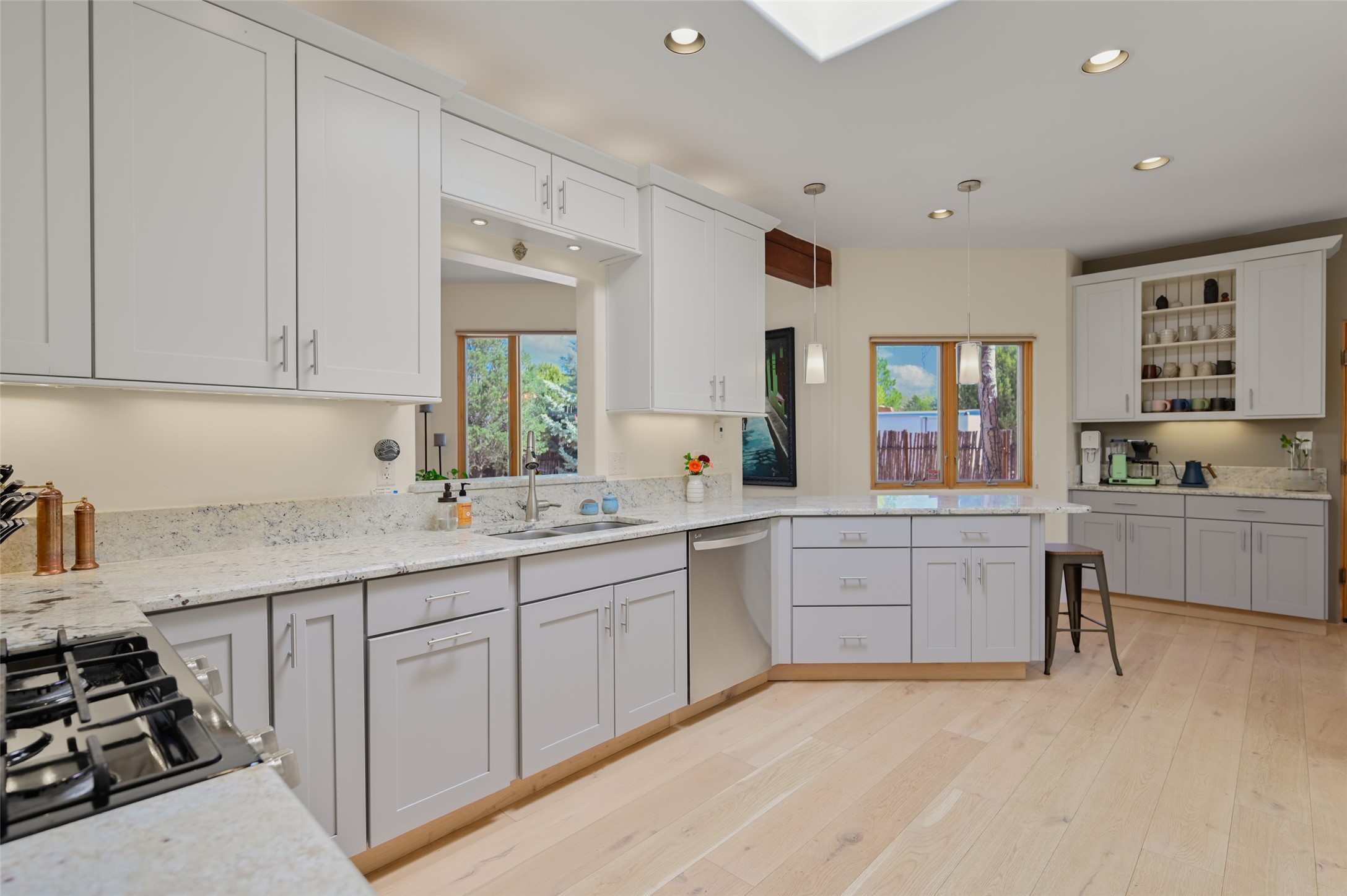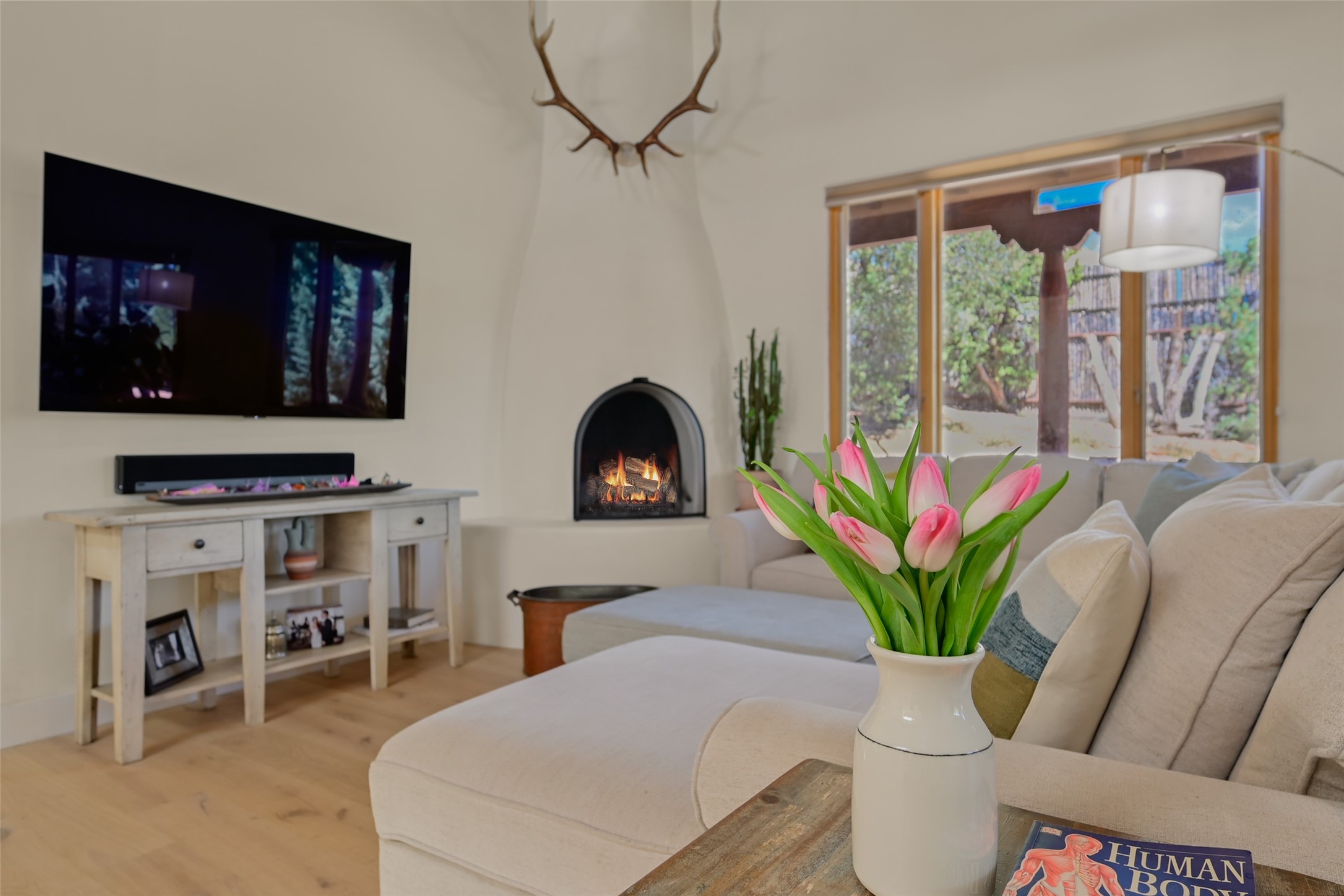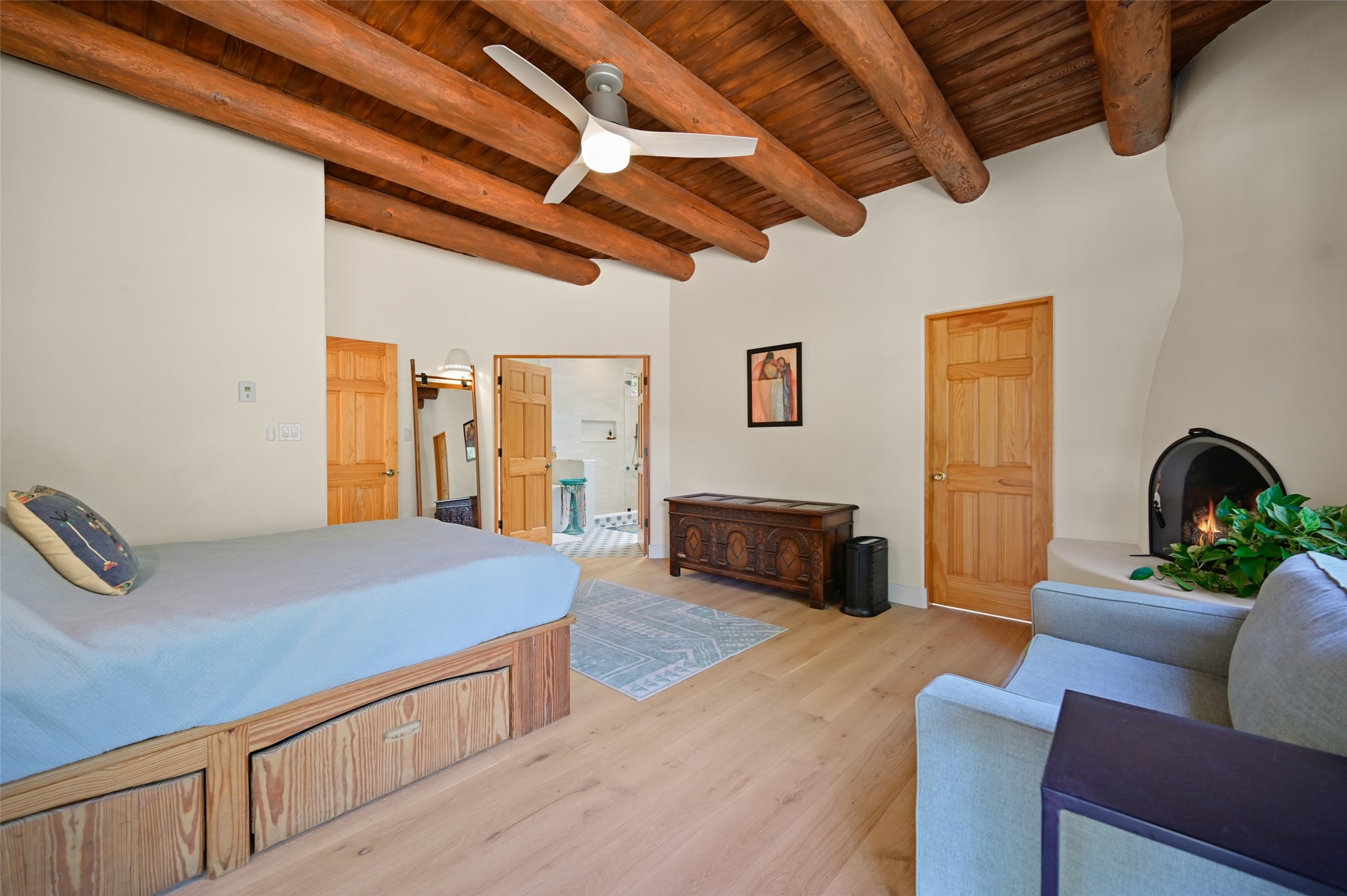 Situated on an oversized in-town lot with ample space to add an ADU, this tastefully renovated home offers the perfect blend of comfort, privacy, and the Santa Fe lifestyle. A gated entry welcomes you into a beautifully fenced property featuring low-maintenance xeriscaping and an abundance of mature trees, creating a serene and private setting. Ideally located on the desirable north side, you're just minutes from De Vargas Center and the historic downtown Plaza, with convenient access to Los Alamos. Enjoy nearby hiking and biking trails, as well as the popular Frank Ortiz and Ridgetop Dog Parks, all just moments from your doorstep. This unique property features stunning mountain views of the Sangre de Cristo Mountains and has been meticulously maintained and thoughtfully upgraded by its current owners--making it truly turnkey. Recent improvements include beautifully remodeled bathrooms, an updated kitchen, wall-to-wall engineered oak flooring, and a Navien tankless water heater with recirculation. A new TPO membrane roof with added insulation was installed in 2023 for enhanced energy efficiency. The home also boasts a fully owned 7.6 kW photovoltaic solar system that covers the property's electrical needs--with surplus capacity to charge your EV using the already installed charger in the spacious two-car garage. 839 Camino Francisca is a rare opportunity to enjoy modern upgrades, sustainability, privacy, and the very best of Santa Fe living.