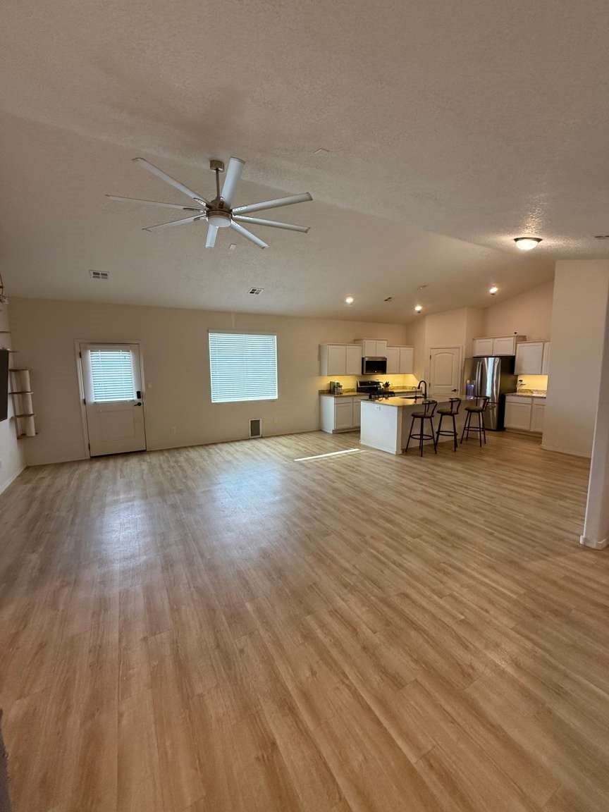 Sandia Estates Airpark (1N1).30 min East of ABQ. On .86 AC lot with space for hangar. Beautiful Open Floor Plan, Cathedral Ceilings 3 bedrooms and 2 Bath, Granite Countertops throughout. Master has bath has Double Sinks, Separate Shower, Soaking Tub, Walk in Closet. Kitchen Features Upgraded Stainless Appliances, 5 stage RO water filter, Breakfast Bar. A Spacious Great Room/Dining Room. 2 car garage, Water filter & Softener. Upgraded Spray Foam Insulation. Laminate Floors Throughout. Back patio, Fenced Back Yard with Dog Run, RV pad with Full Hookups. 8 x 12 Metal Shed.
