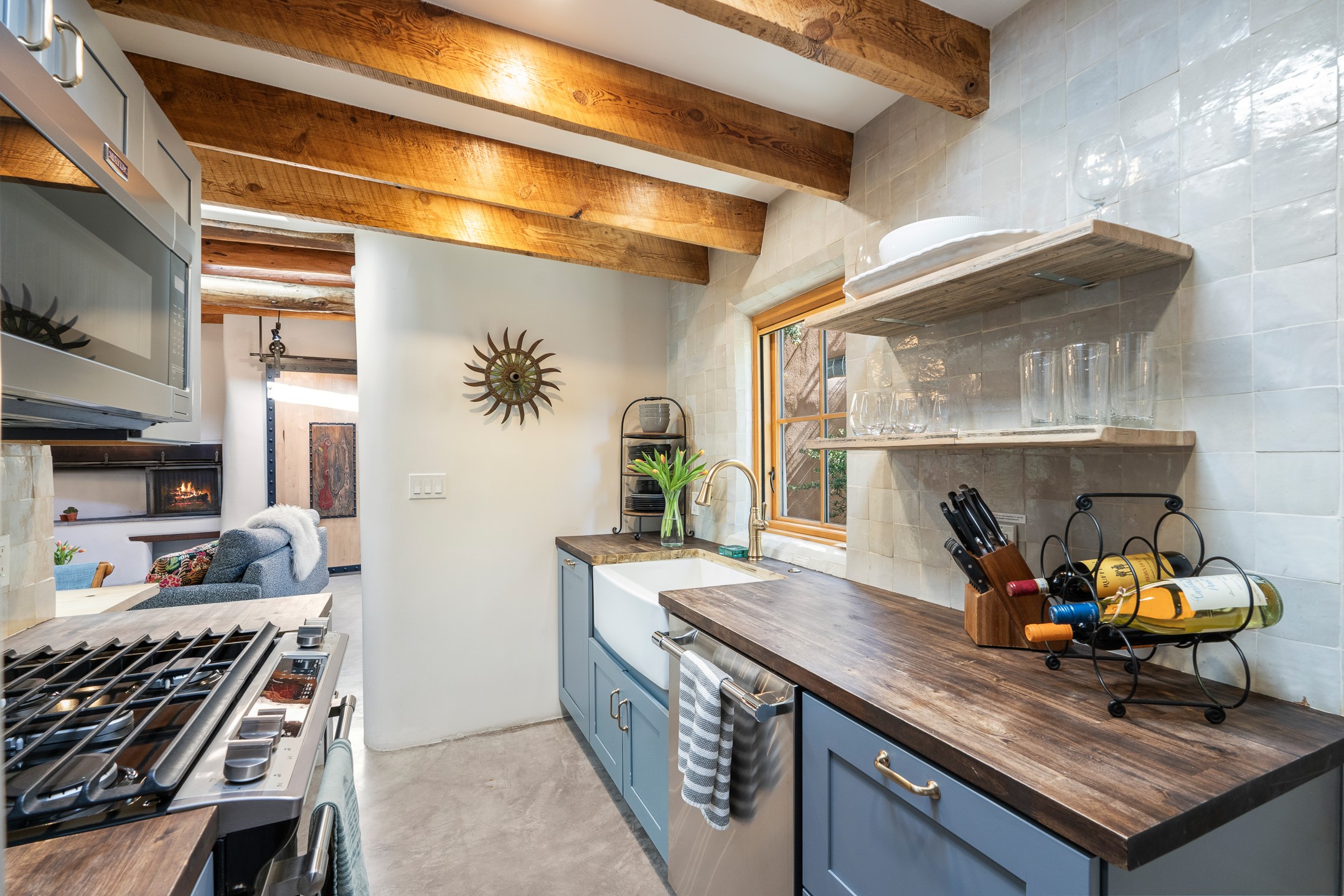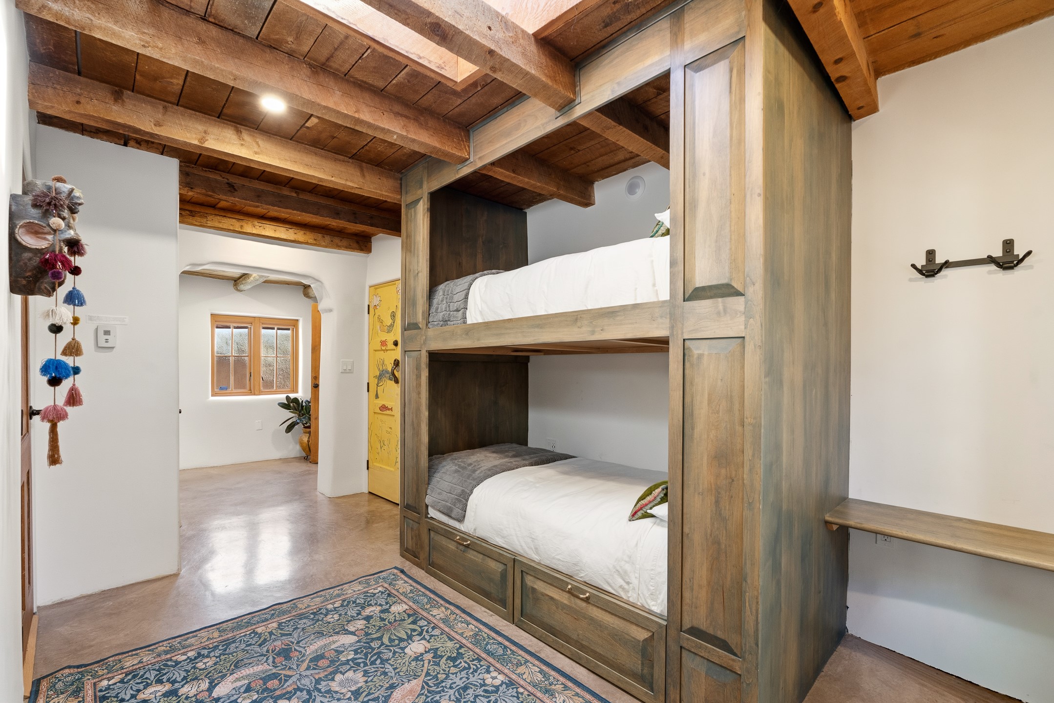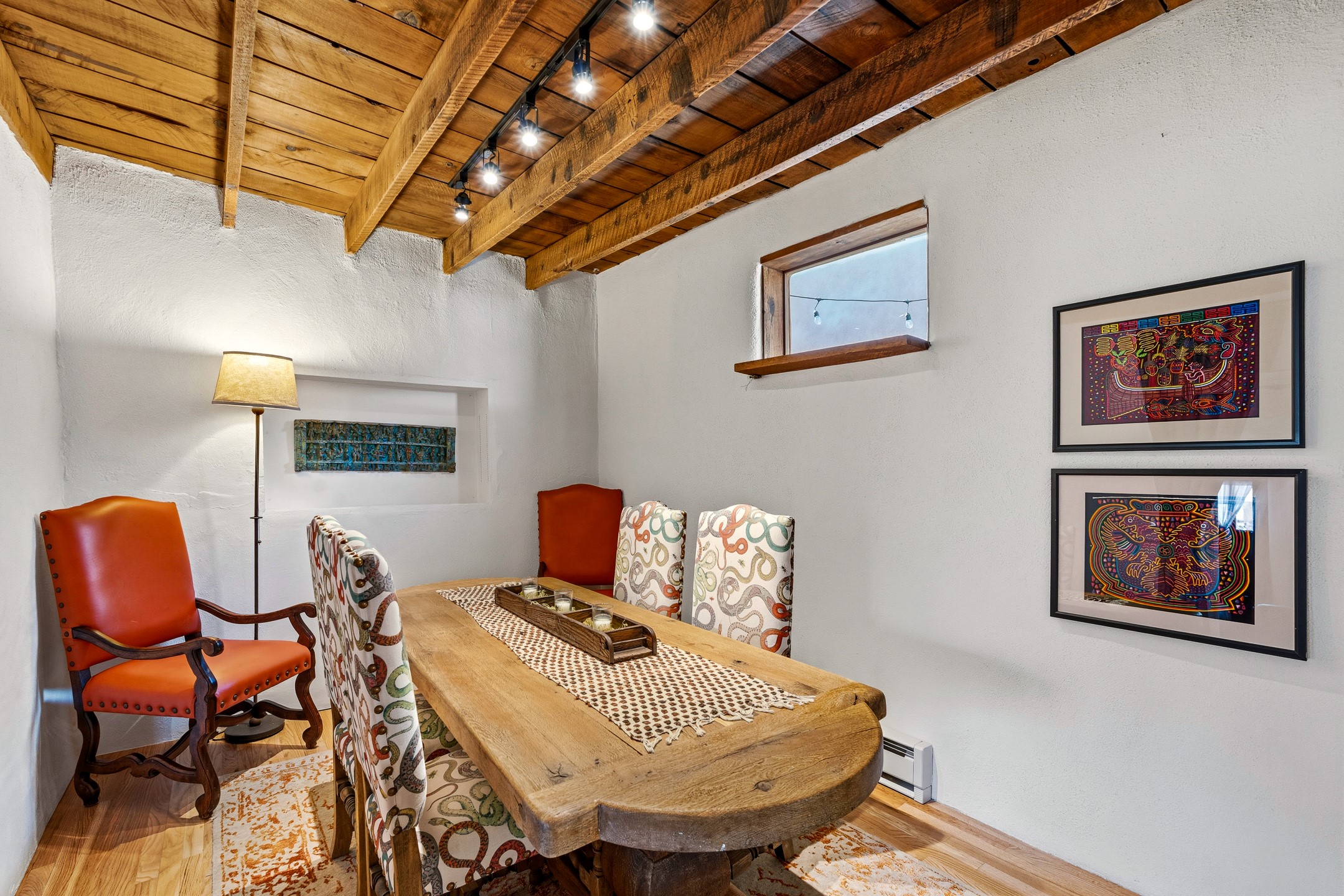 Set along iconic Canyon Road, this exceptional compound includes two beautifully restored residences--Casa Leza Anna and Casa Katalina--each thoughtfully renovated in 2023 to blend Santa Fe's historic charm with a refined, modern aesthetic.Casa Leza Anna, the front residence, is a 1,375 sq. ft. adobe home originally built in 1870. This 2-bedroom, 1-bath home has been meticulously reimagined, preserving its authentic character while introducing contemporary finishes. A private rear courtyard with a flagstone patio offers a quiet, intimate outdoor retreat. Tucked behind, Casa Katalina is a fully renovated 1,567 sq. ft. 2-bedroom, 2-bath guest house with an additional bunk room, providing flexible accommodations. The living room is anchored by a striking shepherd's fireplace, creating warmth and character. Two private outdoor areas, including one with a hot tub, enhance the experience. Currently enjoyed as a pied--terre and a successful vacation rental, the property offers exceptional flexibility. Live in one residence and rent the other, or maximize income potential. Casas Dos Primas is a rare opportunity to own a piece of Canyon Road history, where timeless adobe architecture and modern livability come together in one of Santa Fe's most coveted locations.