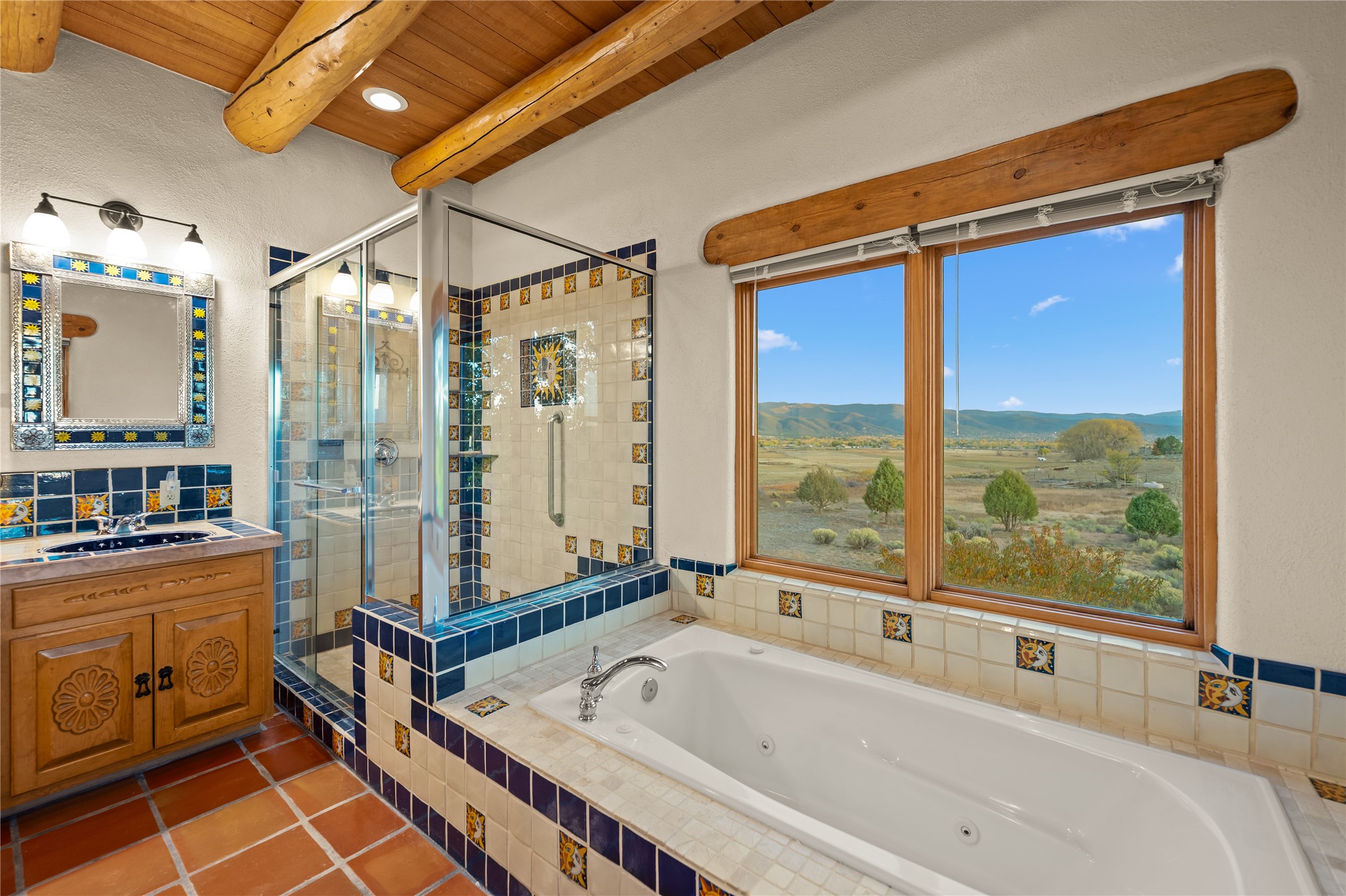 A timeless New Mexico hacienda set on 13.86 acres, including 10.9 acres of irrigated pasture, this exceptional Taos property blends refined living, extraordinary craftsmanship, and breathtaking views of Taos Mountain and Wheeler Peak. Ideally located directly across from the Millicent Rogers Museum and just minutes from town and the Taos Ski Valley, the home offers a rare combination of privacy, heritage, and convenience.At its heart is a welcoming entry courtyard with a Spanish fountain, perennial gardens, a custom pizza oven, and outdoor dining space designed for memorable gatherings beneath the Taos sky. Inside, luxuriously scaled living spaces flow effortlessly for both entertaining and everyday comfort, while custom tilework throughout the kitchen, stairway, arched doorways, and baths brings warmth and authentic New Mexico character to every room.The kitchen opens gracefully to expansive living and dining areas, all positioned to capture sweeping mountain views. Each of the four bedrooms enjoys its own outdoor access, creating a seamless connection to the surrounding landscape. The spacious primary suite is filled with natural light and offers a peaceful retreat with a spa-like bath.Beyond the home, the property's agricultural and water assets are truly remarkable, including 30 acre-feet of surface water rights through the Acequia Madre del Prado and a private well with 3 acre-feet of water rights. An adobe-walled backyard with a tranquil water feature creates a serene setting for quiet mornings and sunset evenings. A heated outdoor studio provides flexible space for art, fitness, or hobbies, while the four-car garage and oversized attached garage with 220V service offer excellent utility for collectors, craftsmen, or hobbyists.A rare Taos offering that captures the beauty, substance, and timeless spirit of Northern New Mexico.