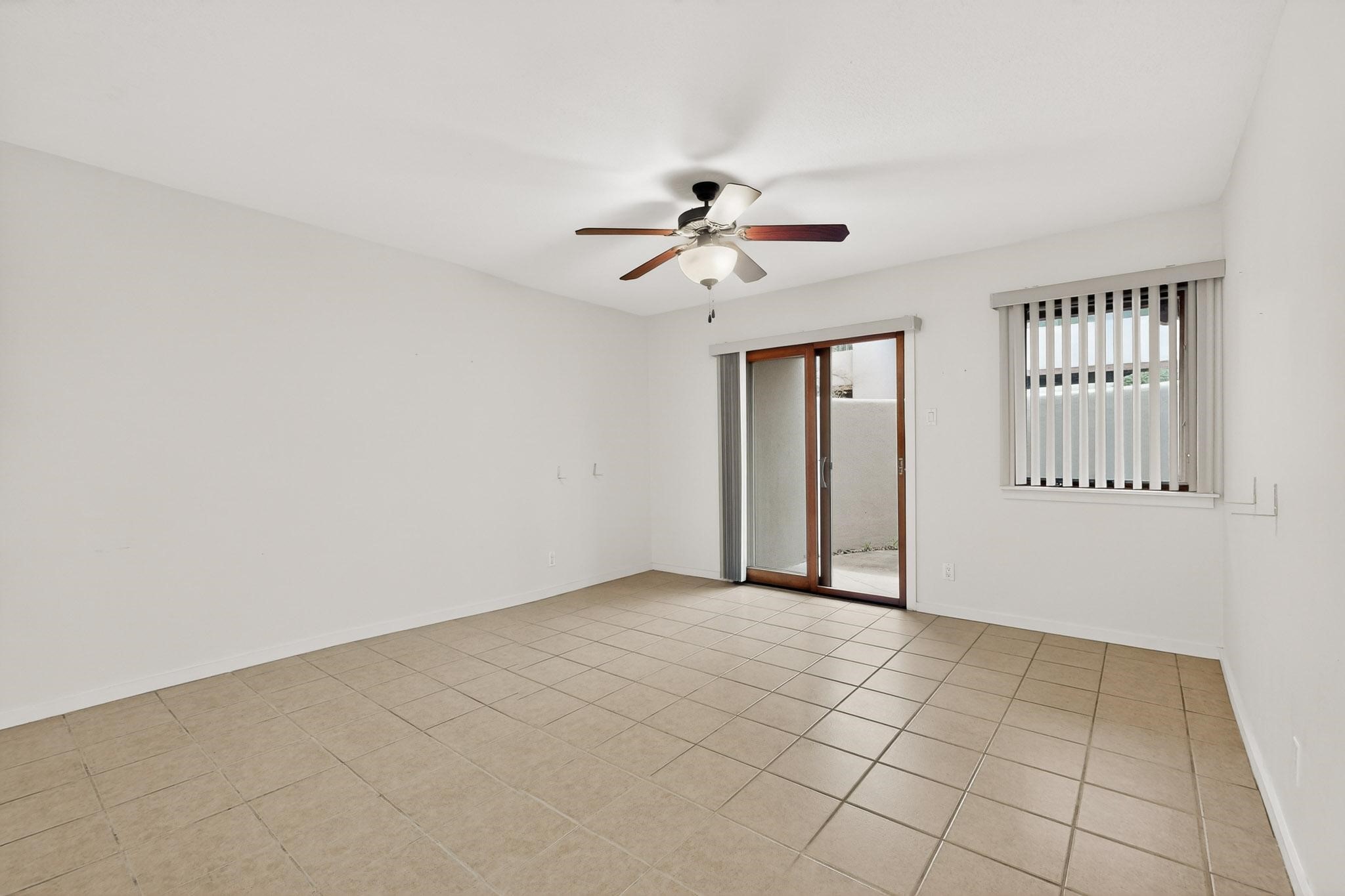 This ground-level 3-bedroom, 2-bathroom condo offers comfortable, move-in ready living in one of central Santa Fe's most amenity-rich communities - San Mateo de Santa Fe. The well-appointed interior features tile flooring throughout, stainless steel appliances, central HVAC, and an in-unit washer and dryer. Step outside to a private patio with gated access to the community's landscaped common areas - conveniently located near the pool, clubhouse, and fitness facility. One assigned parking space is included, with optional covered parking available. The gated community spans 11 acres and offers residents a fitness center, seasonal pool, covered picnic areas with BBQ grills, a clubhouse, and two small dog parks - all just minutes from central Santa Fe dining and shopping options. This location is convenient for commuters with easy access to Los Alamos and I-25.