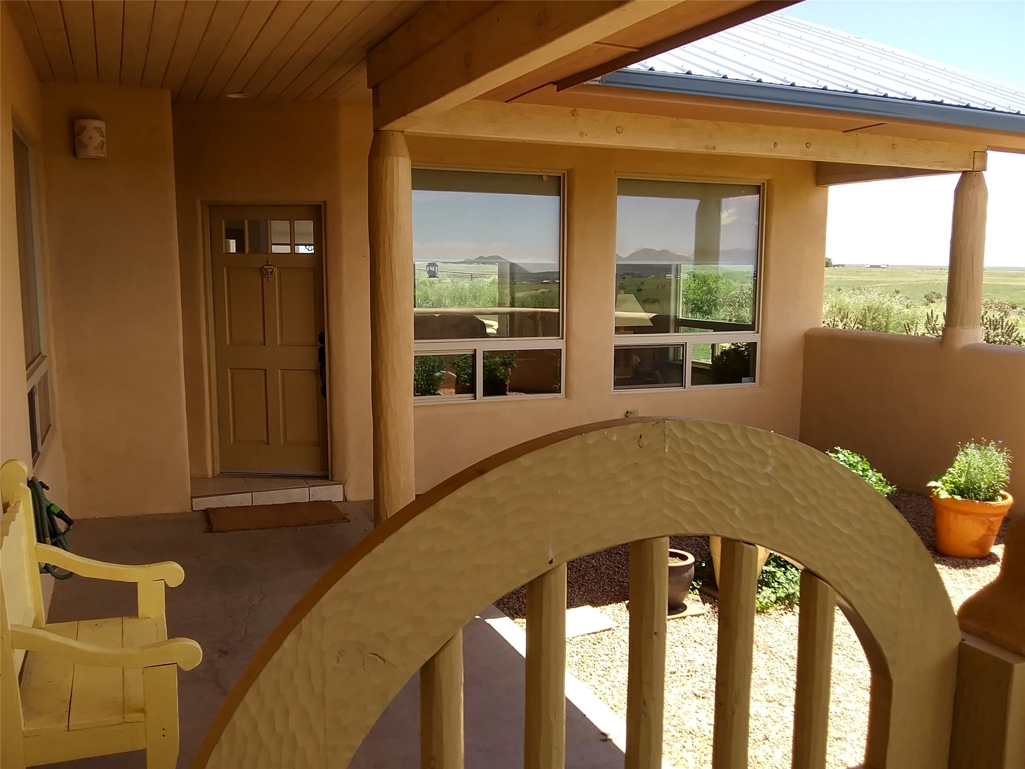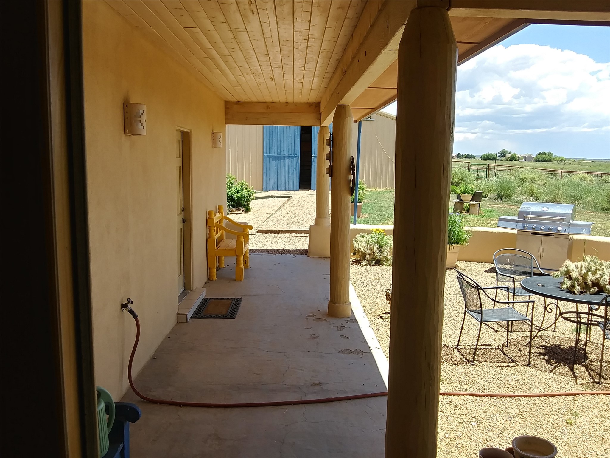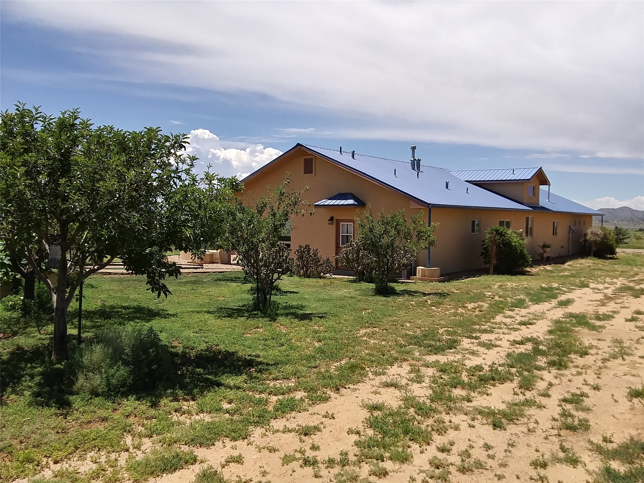 Set on over 15.8 acres in Rancho San Marcos, this Northern New Mexican-style home offers wide-open space, big views, and true equestrian functionality approximately 30 minutes from the Santa Fe Plaza. The 3-bedroom, 2-bath layout includes a flexible bonus room ideal for an office, studio, or additional living space, with an open-concept kitchen, dining, and living area designed to take in the surrounding high desert landscape. Large windows frame mountain and sunset views, while the covered patio provides a quiet place to enjoy the natural setting and expansive skies. The primary suite features a walk-in closet and a spacious bath with a soaking tub. For horse enthusiasts, the property is well-equipped with a 3-stall steel barn, tack and hay storage, workshop space, and a large corral. Direct access to community riding trails, along with a 50-acre horse park, round pen, and arena, adds to the appeal. Additional features include a 2-car garage with overhead storage, private well, septic, and a durable metal roof. Located within a gated community known for its privacy and scenic surroundings. Property is being offered in as-is condition and presents an opportunity for a buyer to update and personalize while capturing the value of the land, setting, and equestrian infrastructure. Property is sold in "As-Is" condition.
