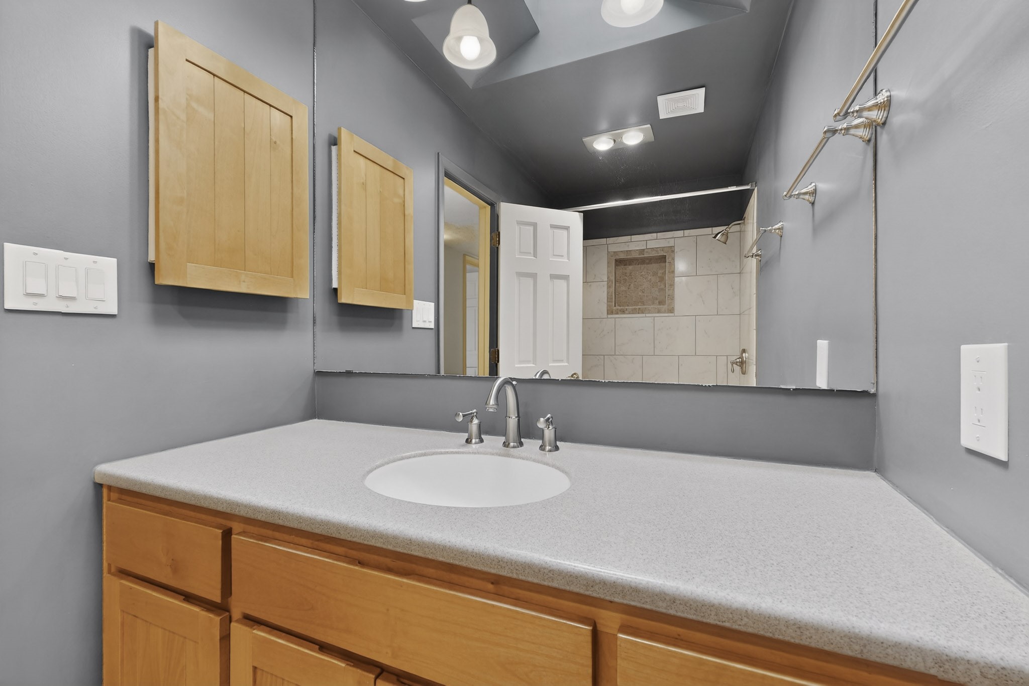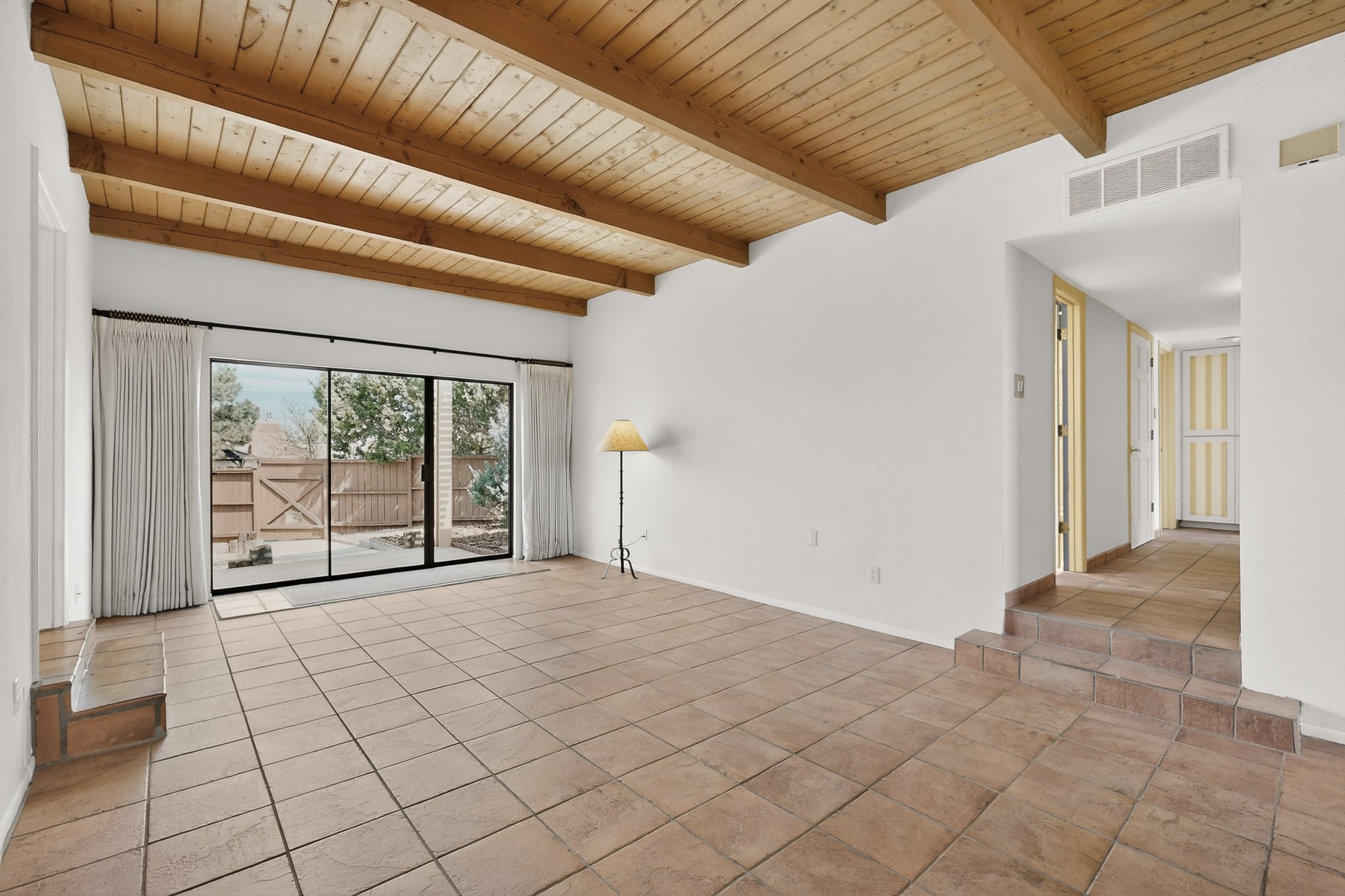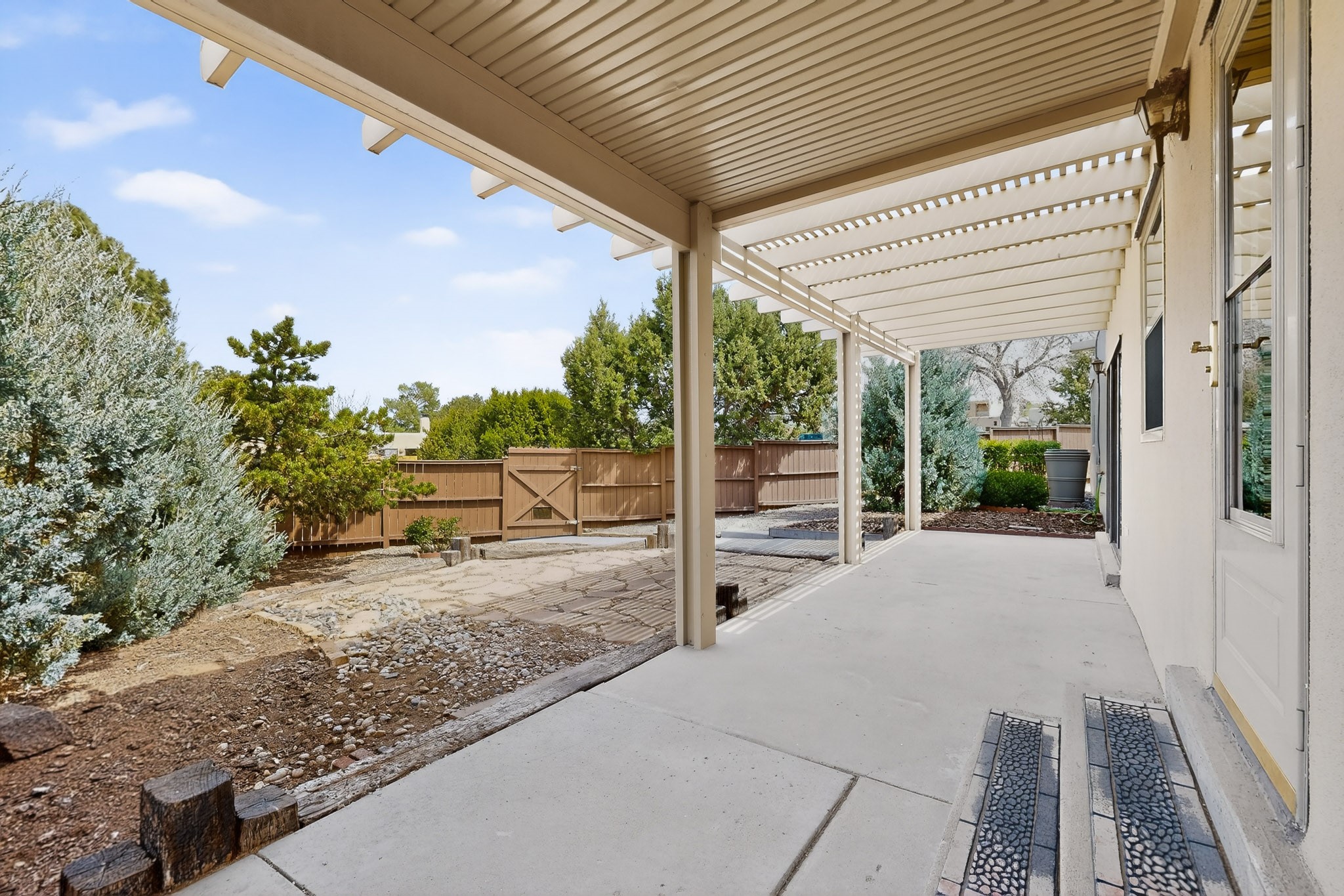 You will say "this is what I have been looking for"! Park Plazas is a very desirable subdivision, noted for the exceptional mature & varied trees. Great location for getting anywhere quickly, truly the center of the city, yet quiet & secluded. 9 miles of easy walking trails, always with mountain views. Neighbors will greet you - this is a friendly place! Choices for activities: community garden, pickle ball & tennis courts, large fenced dog play area. Park Plazas has a well-organized HOA, with approximately 440 homes, some two story, or adjoined town houses. With this property you are fortunate to find a single-family house: you are especially lucky because the corner lot location creates a sense of privacy with a large fence surrounding the property. The property has been so well-maintained, every major system in the house has been replaced in the past six years, new heating fall of 2025, plus additions with A/C, mini-split, solar (owned). Fence re-built in early 2026. All the "big tickets" items are done and the house eagerly awaits the new owner. The house offers open light-filled spaces. With almost 2000 sq ft you will find a bedroom wing with 3BR & 2BA, main bedroom is en-suite. The large living room, complete with wood-burning fireplace, opens to both shady & sunny backyard. You will be pleased to find a sun-filled dining room and also an eat-in kitchen. Bonus room, located off the kitchen, would be ideal for many uses - home office, media room, quiet reading room - with direct access to the portal and treed backyard. A two-car garage also makes the house ideal. Yard is completely fenced, offering privacy anda great play space for a happy dog! A gate in the backyard fence invites you to the walking trails. Photos will show you the living room has two steps, which have never bothered the senior citizen who is giving up this special house after many happy years in Santa Fe. Some computer generated photos appear as furnished. No short term rentals allowed.