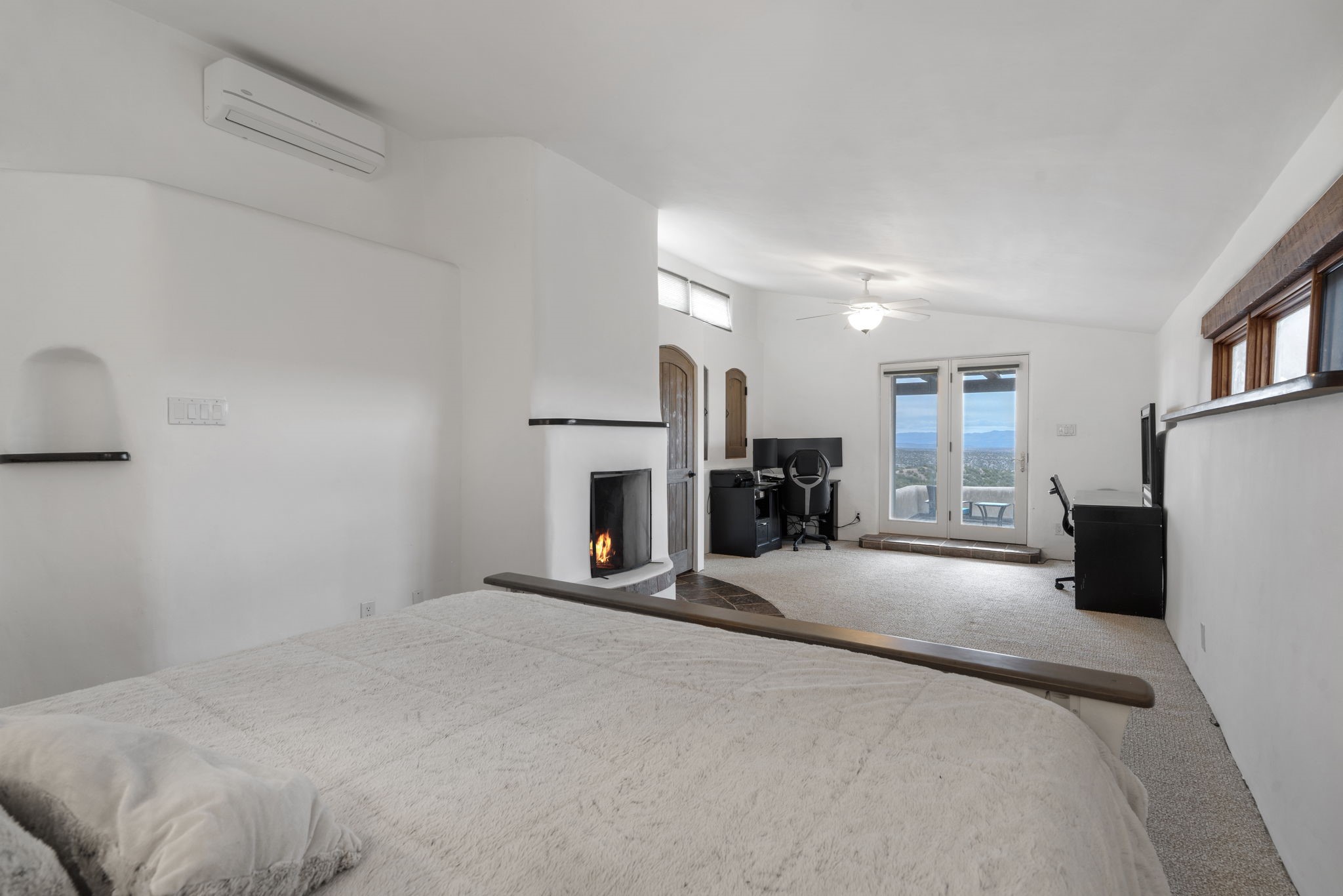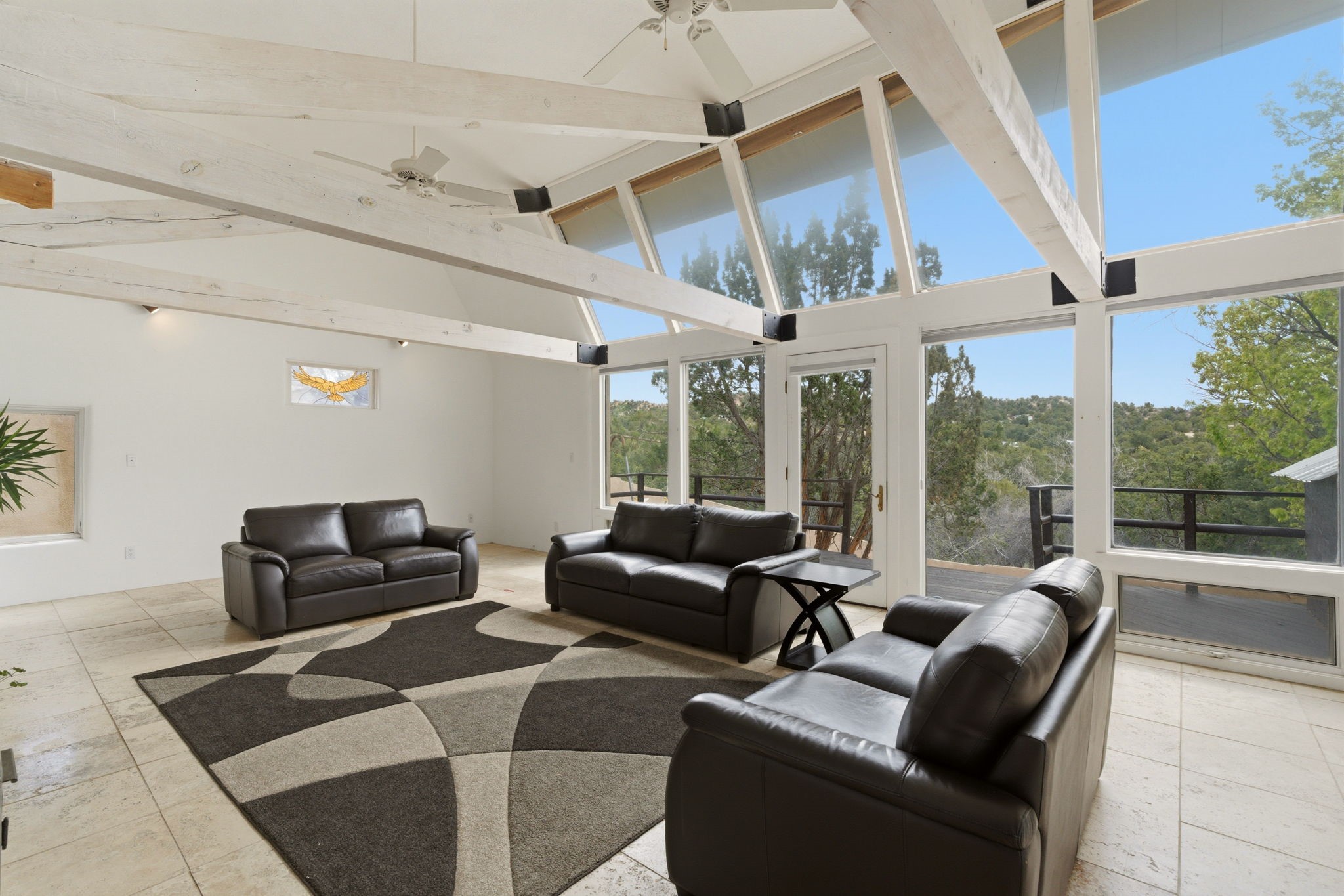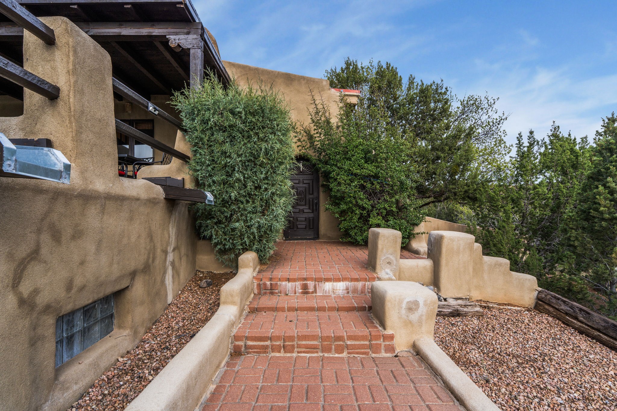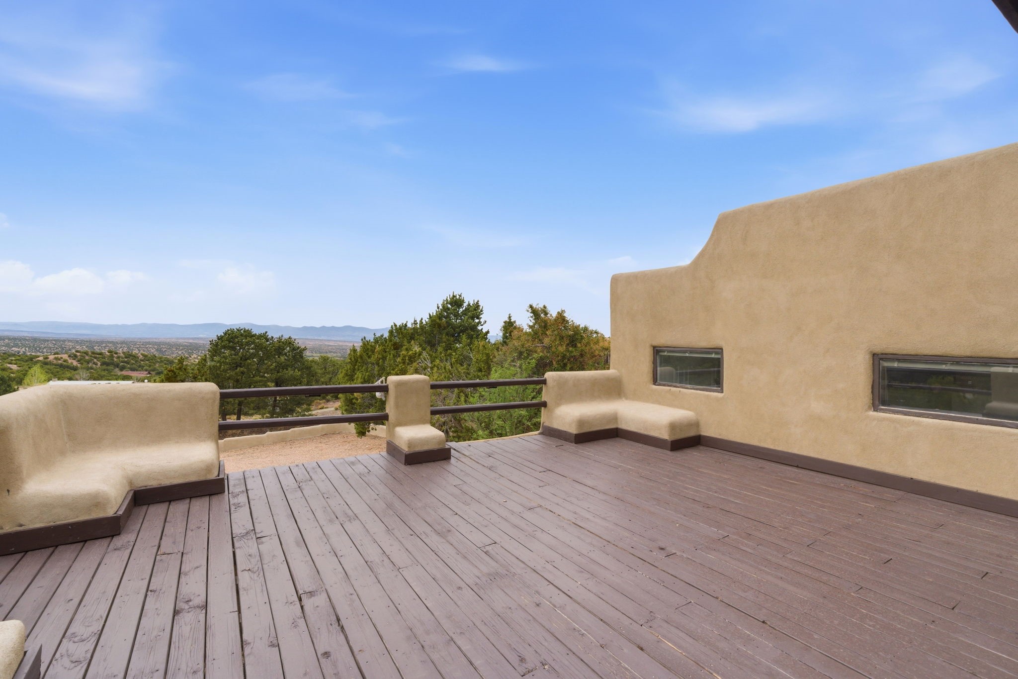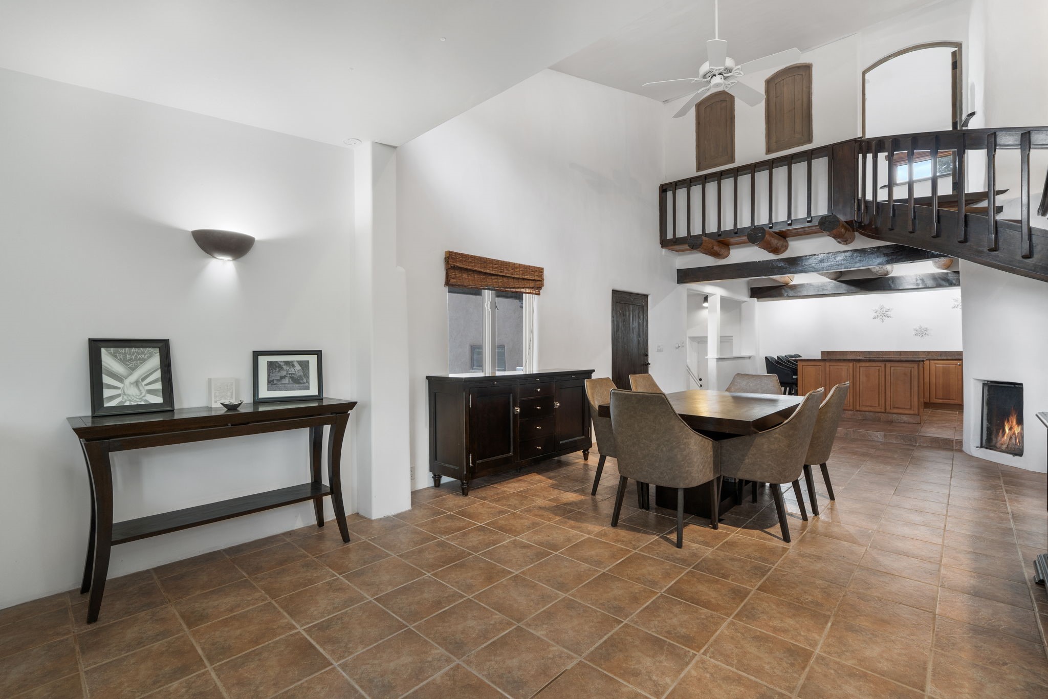 Discover the sanctuary of this picturesque home located in the hills of Tesuque. Offering breathtaking views of the Sangre de Cristo and Jemez mountain ranges, along with the lush Pojoaque Valley. This passive solar estate features, high ceilings and large windows that flood the interior with natural light, while the 3 kiva fireplaces enhance the tranquil ambiance. Set on 2.5 acres, the property includes 3 bedrooms, 3 bathrooms and 2, two-car garages, offering ample space for four vehicles and additional storage. Only 17 minutes to the plaza and 34 minutes to Los Alamos. This home is centrally located for convenience.