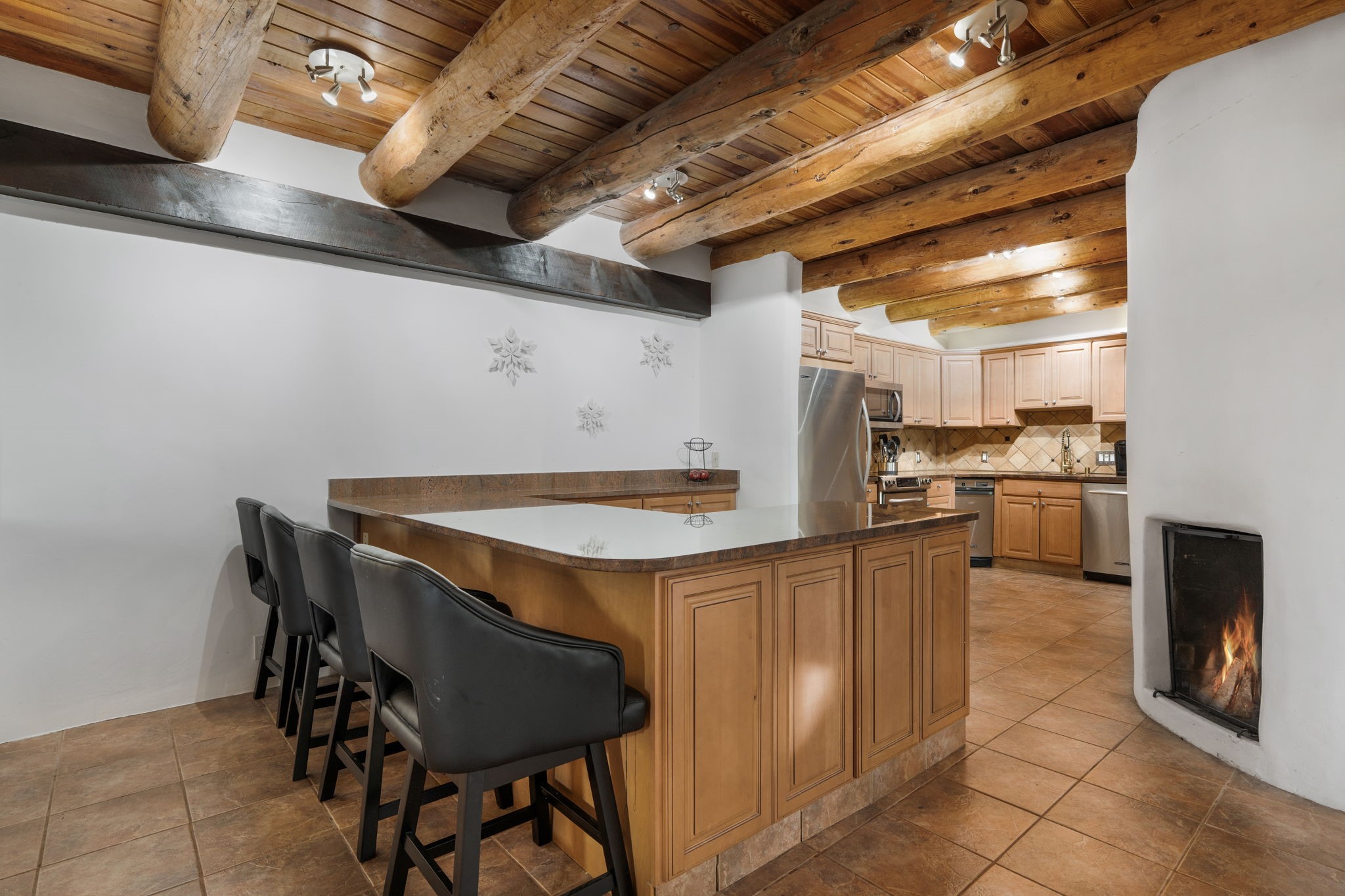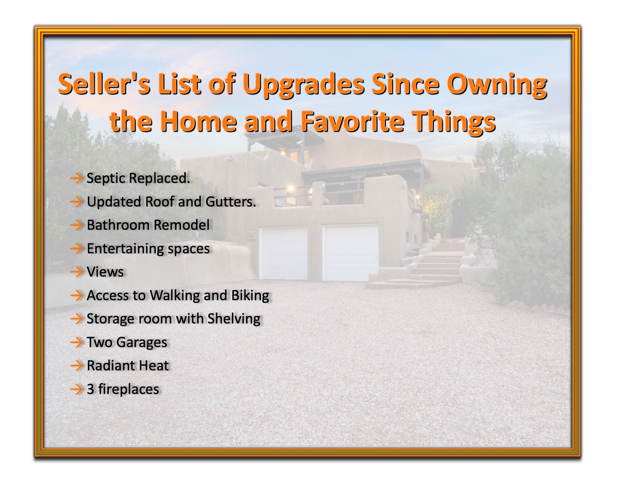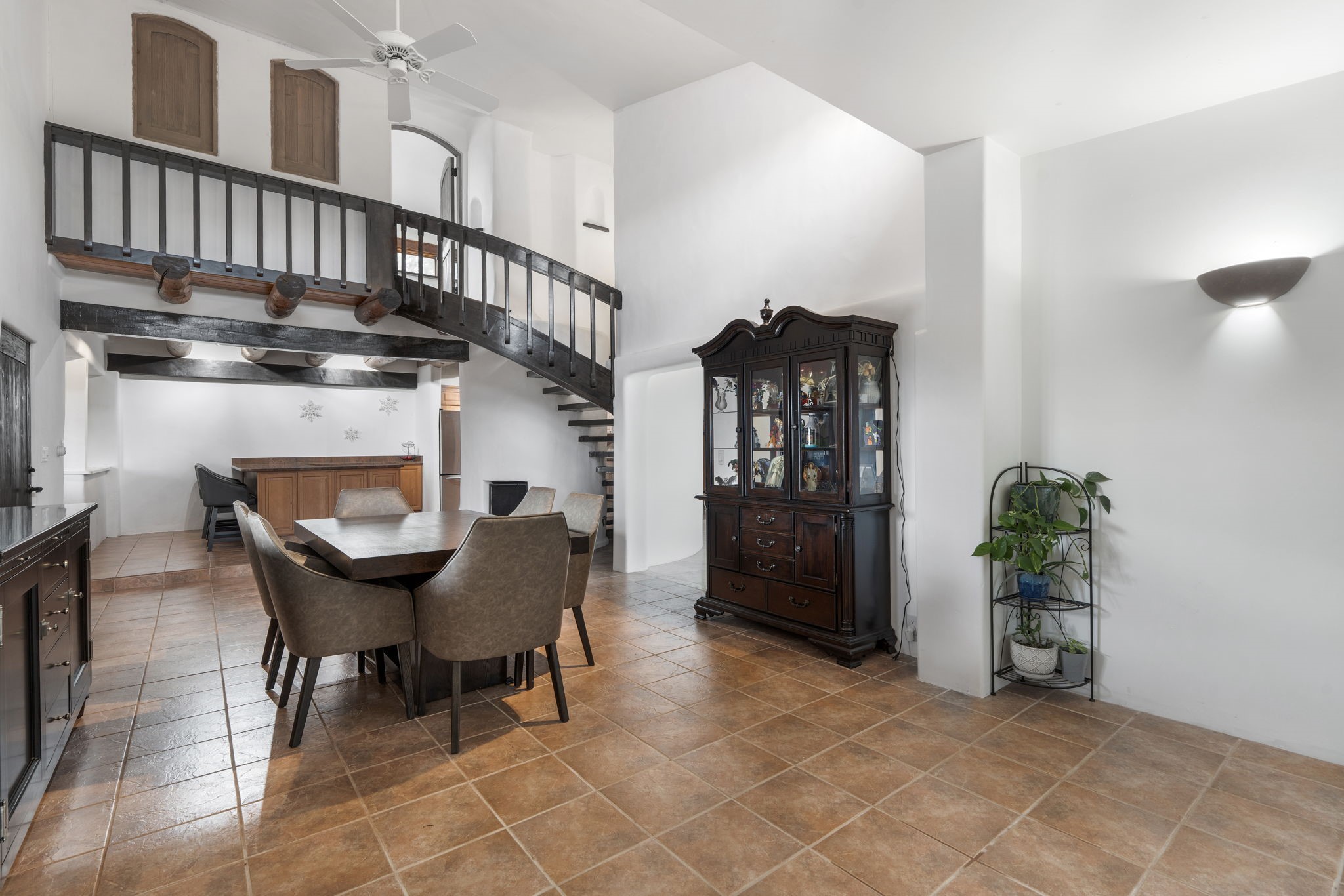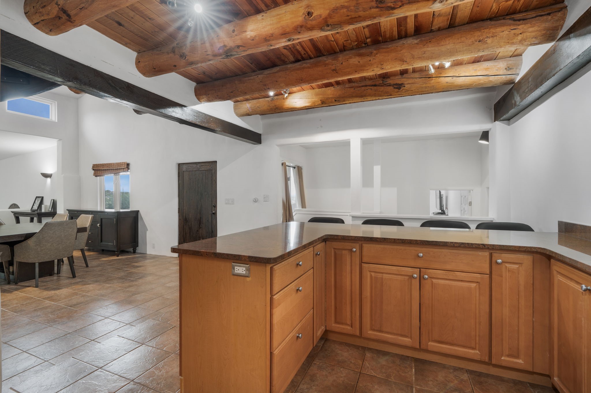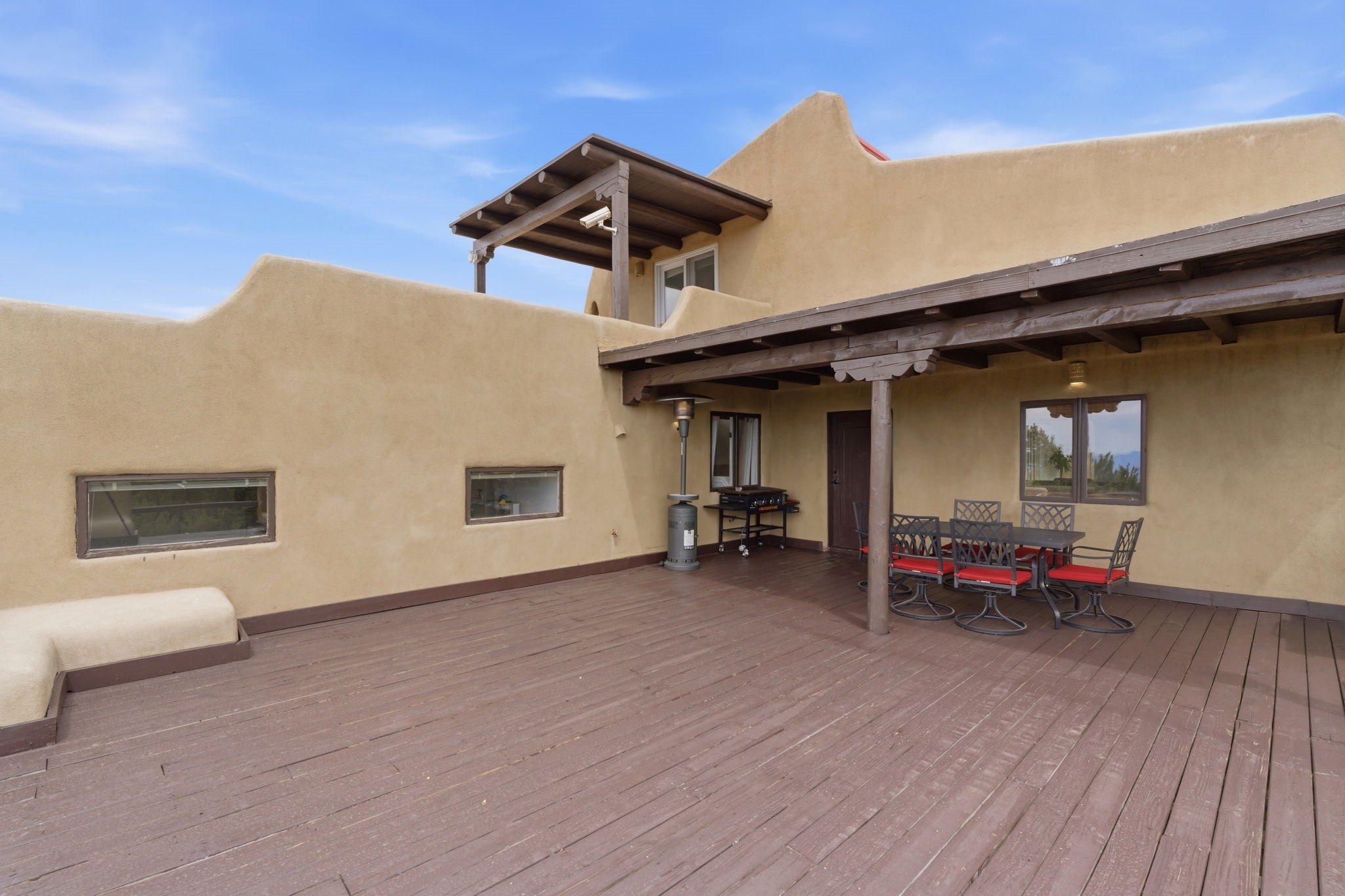 Discover the sanctuary of this picturesque home located in the hills of Tesuque. Offering breathtaking views of the Sangre de Cristo and Jemez mountain ranges, along with the lush Pojoaque Valley. This passive solar estate features, high ceilings and large windows that flood the interior with natural light, while the 3 kiva fireplaces enhance the tranquil ambiance. Set on 2.5 acres, the property includes 3 bedrooms, 3 bathrooms and 2, two-car garages, offering ample space for four vehicles and additional storage. Only 17 minutes to the plaza and 34 minutes to Los Alamos. This home is centrally located for convenience.
