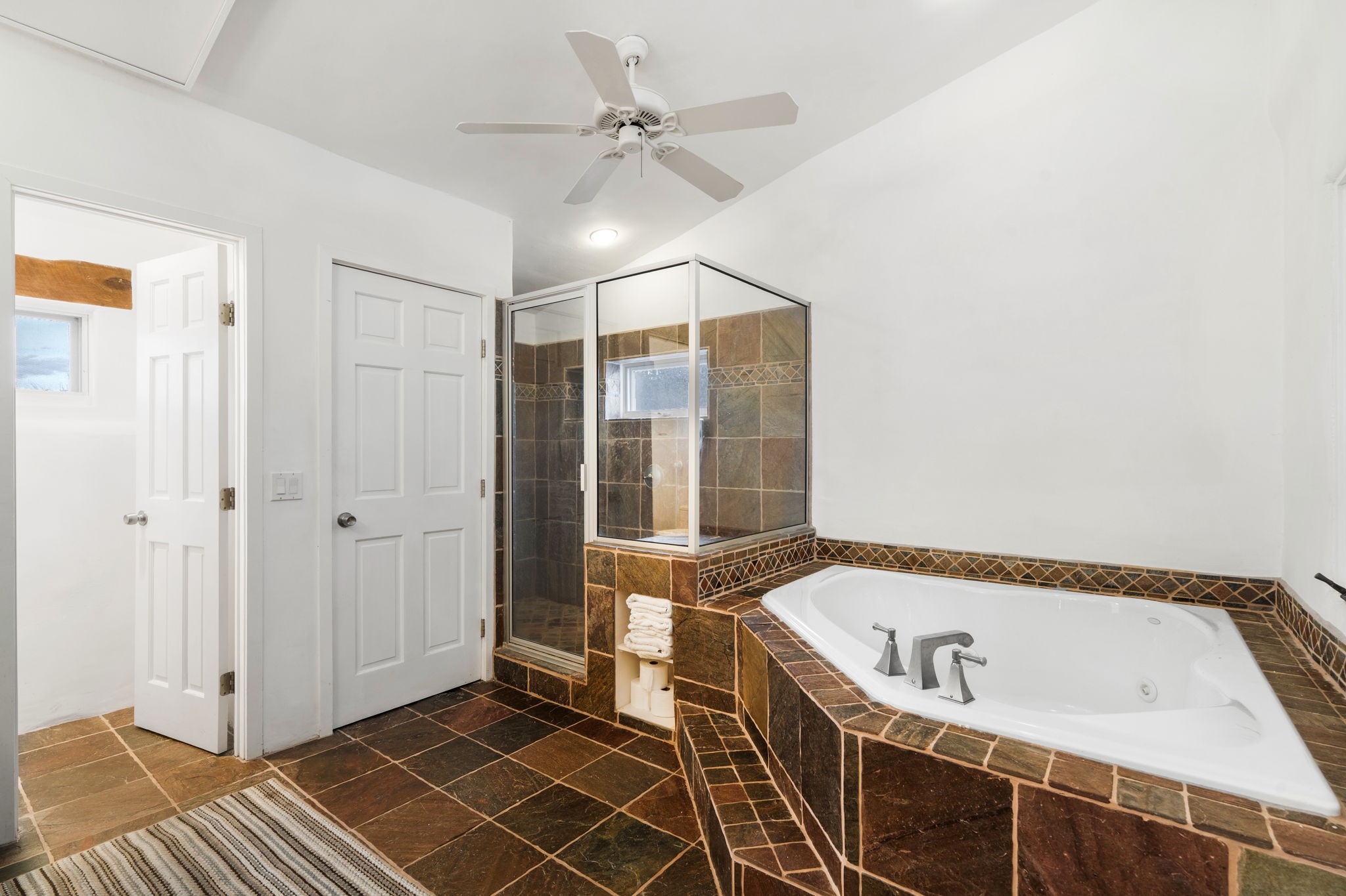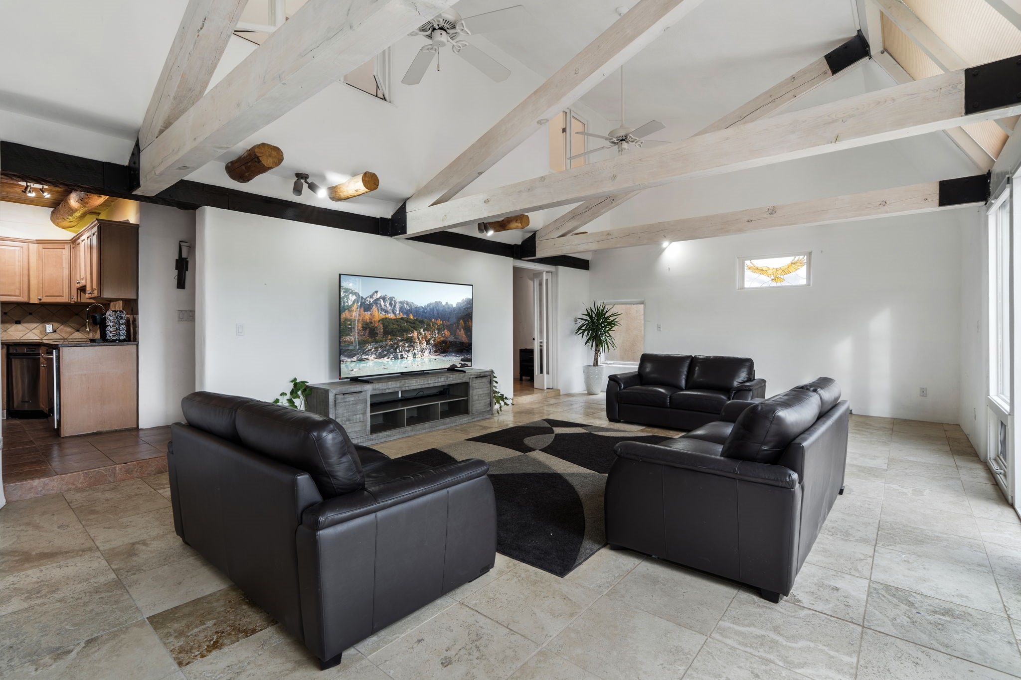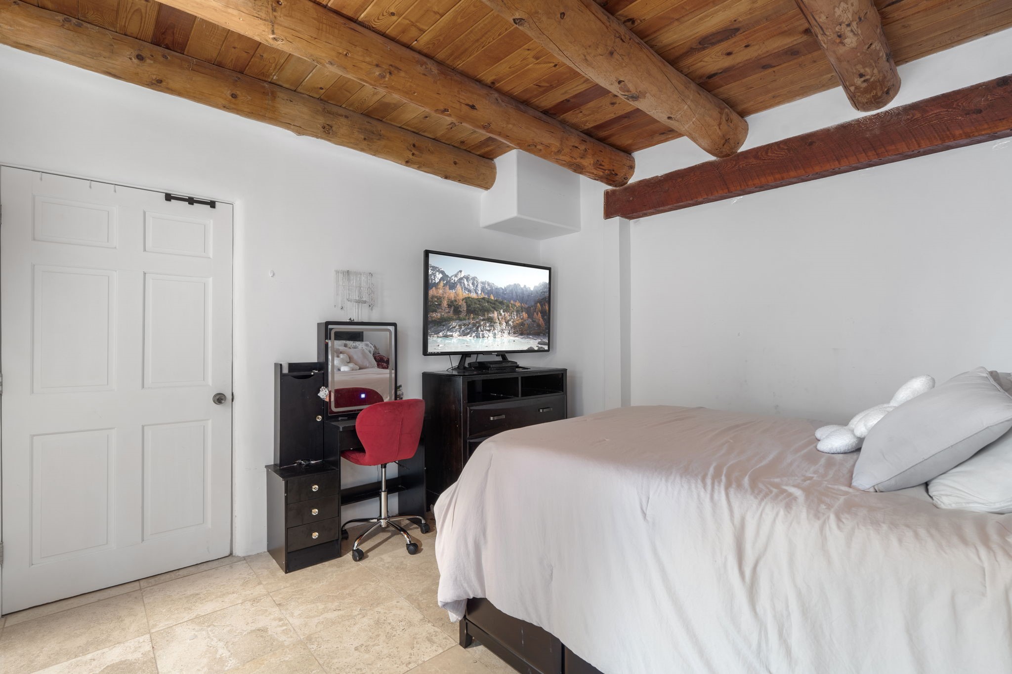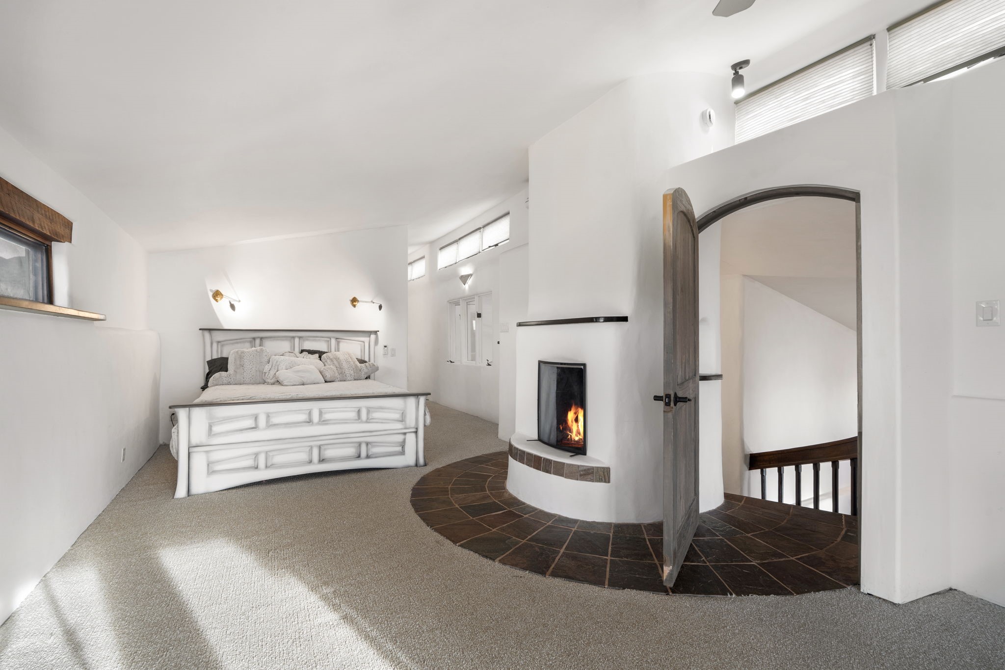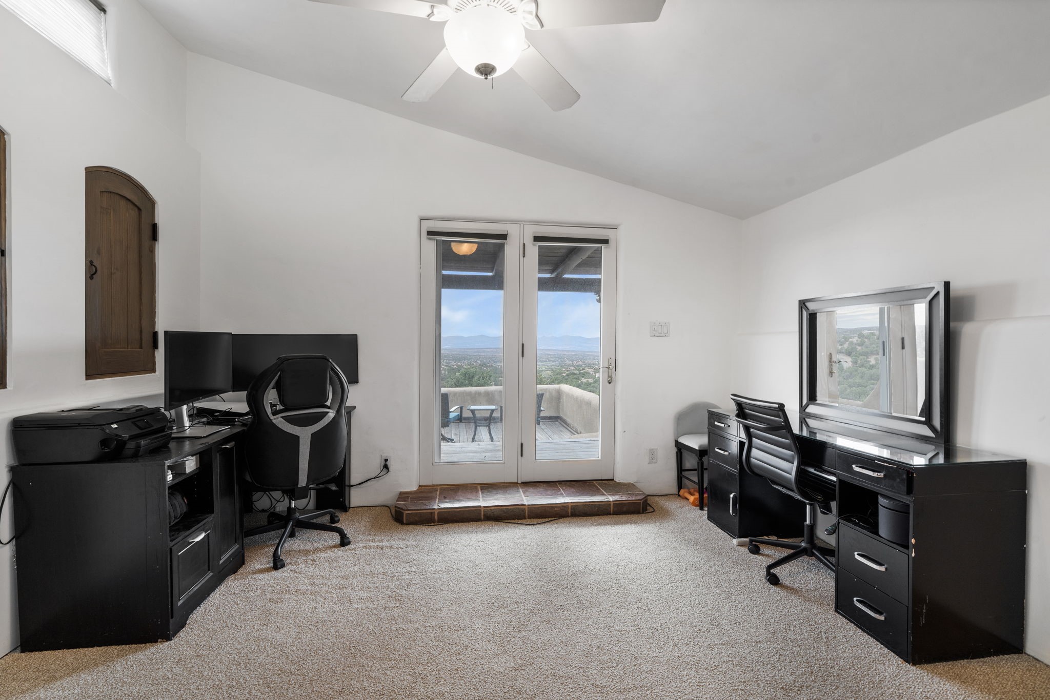 Discover the sanctuary of this picturesque home located in the hills of Tesuque. Offering breathtaking views of the Sangre de Cristo and Jemez mountain ranges, along with the lush Pojoaque Valley. This passive solar estate features, high ceilings and large windows that flood the interior with natural light, while the 3 kiva fireplaces enhance the tranquil ambiance. Set on 2.5 acres, the property includes 3 bedrooms, 3 bathrooms and 2, two-car garages, offering ample space for four vehicles and additional storage. Only 17 minutes to the plaza and 34 minutes to Los Alamos. This home is centrally located for convenience.