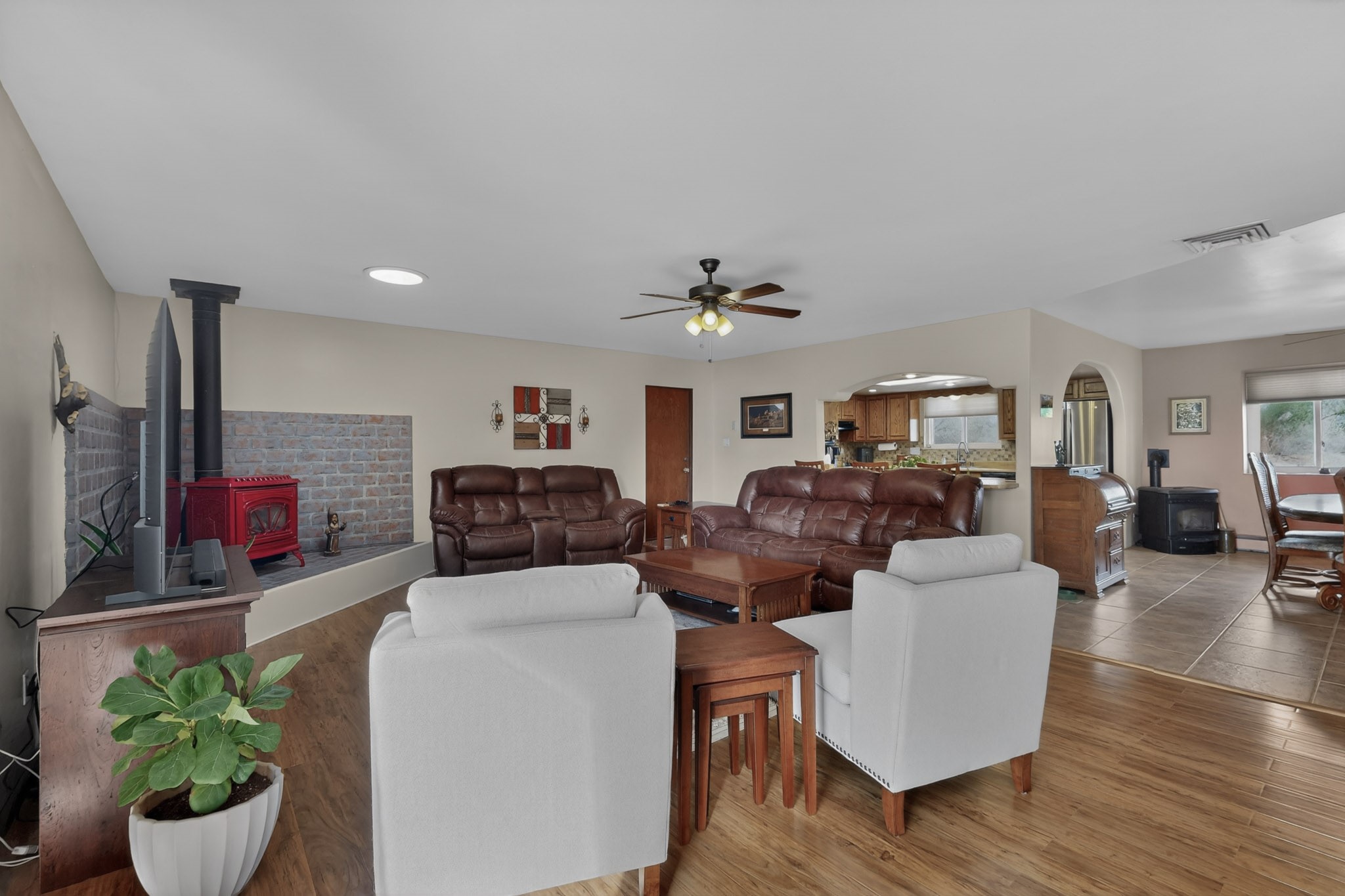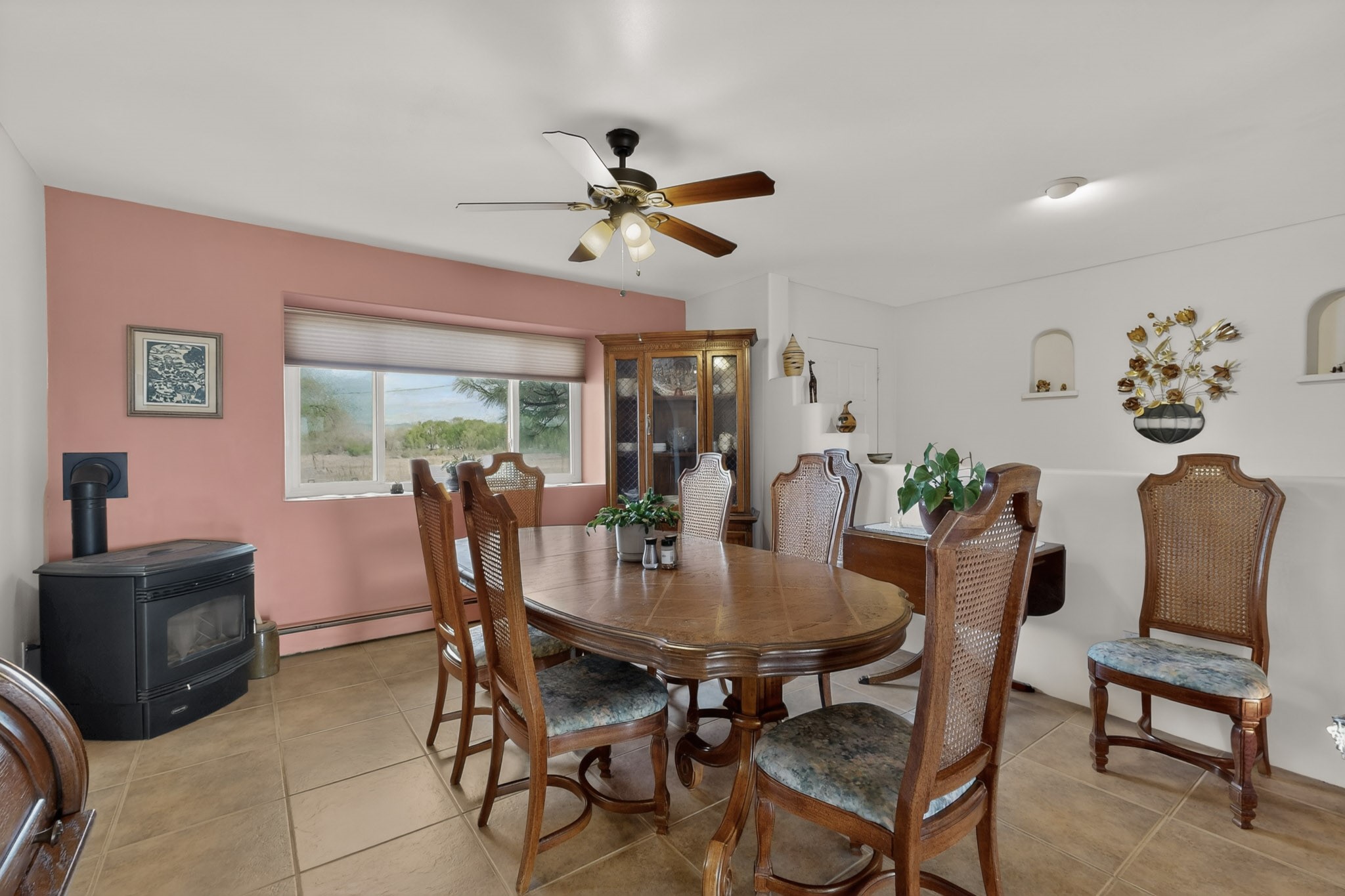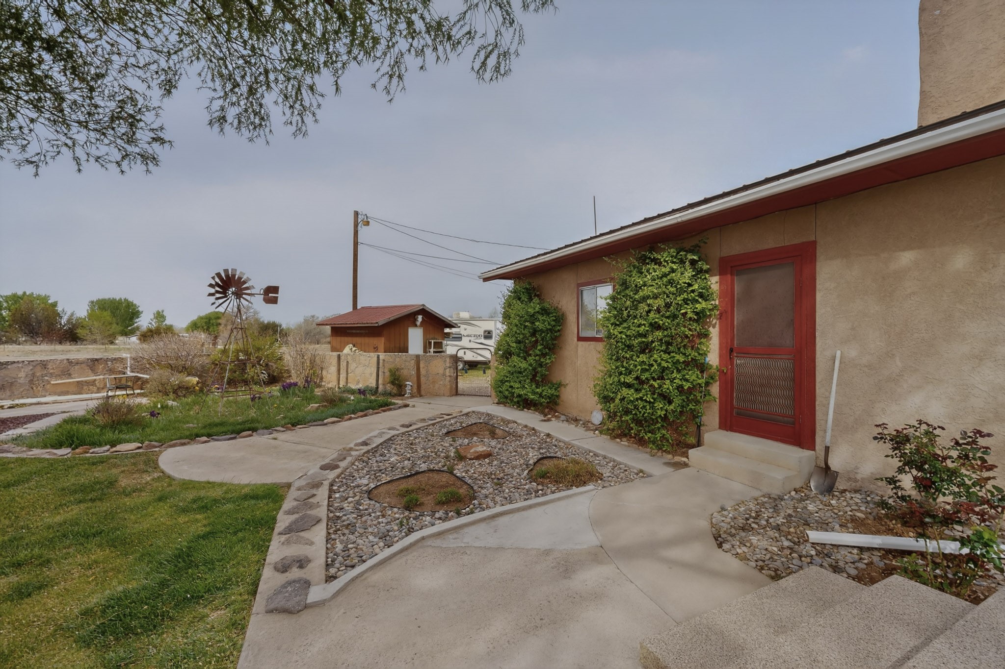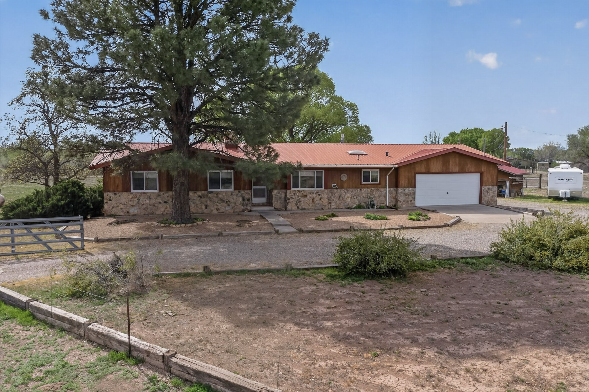 Don't miss this incredible opportunity to own a spacious move in ready home, featuring pre-1907 water rights, conveyed with the property! (.96 acre w/2.868 diversion) Situated on 2 parcels for a total of 2.3 acres, this charming residence offers updated gorgeous wood laminate flooring in the main living areas and beautifully updated baths. The resurfaced kitchen cabinets add a fresh touch, while the fully landscaped back courtyard provides an inviting space to relax or entertain. Enjoy large bedrooms and a generous backyard patio with durable epoxy coating, perfect for outdoor gatherings. The oversized 2-car garage offers ample storage. Beautiful views, and walking distance to the Bosque! This property blends comfort, functionality, and timeless value - Just 15 quick minutes to the interstate! Great location if working in Santa Fe OR ABQ!