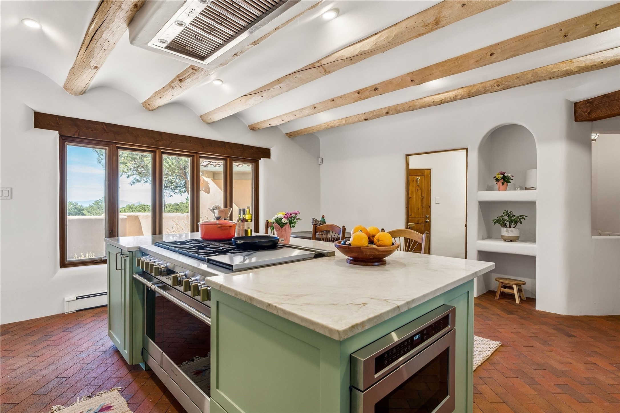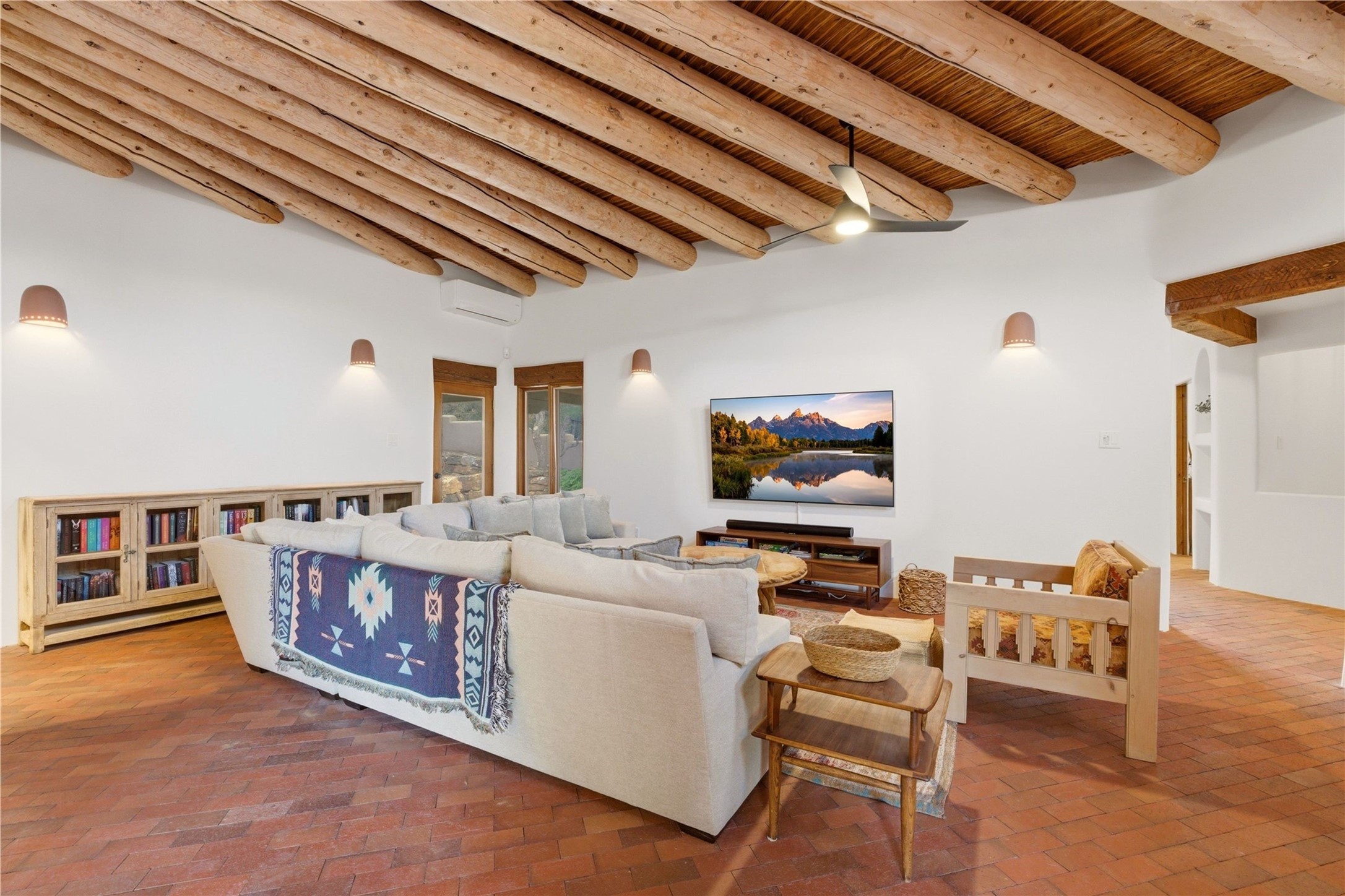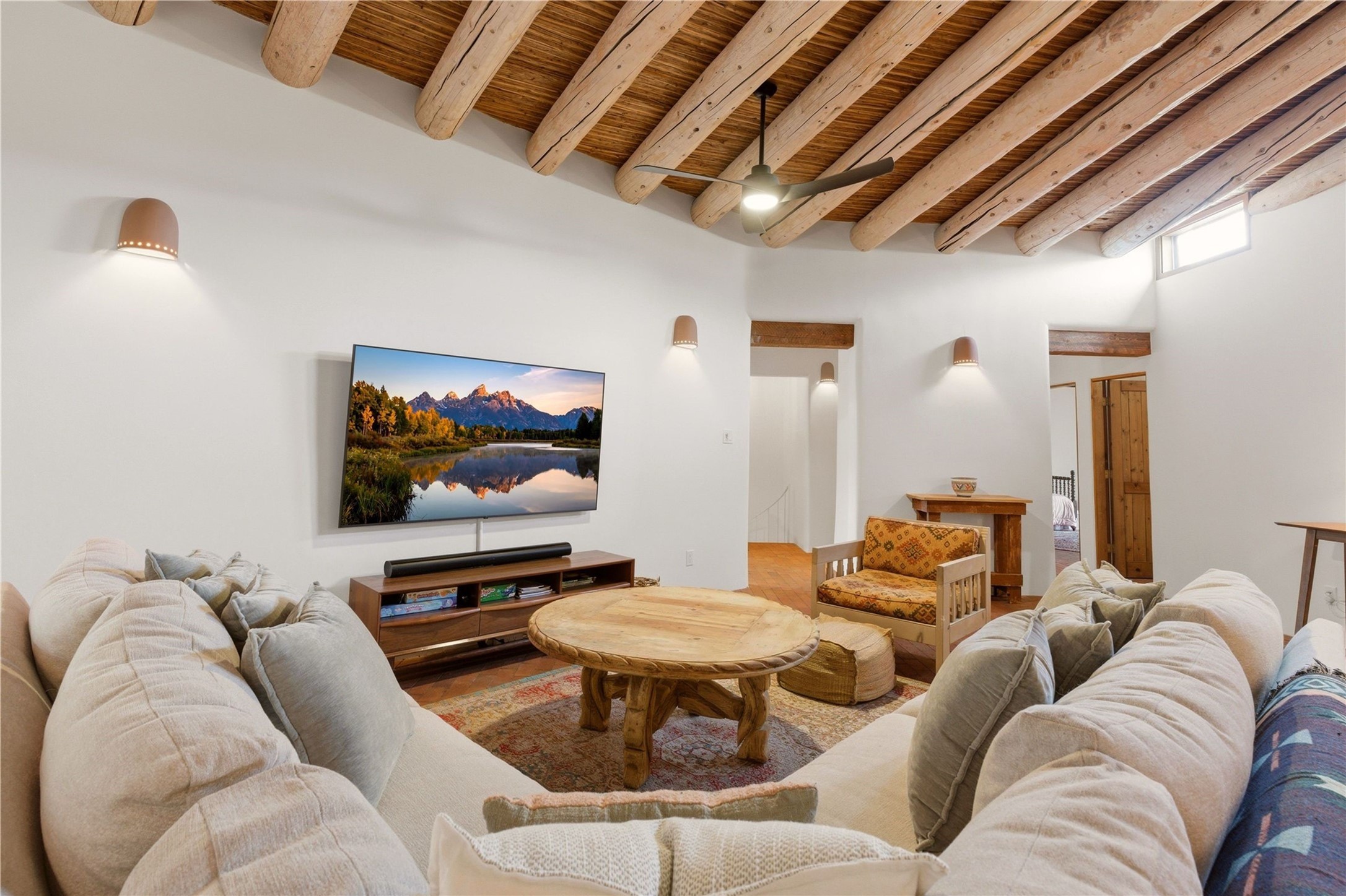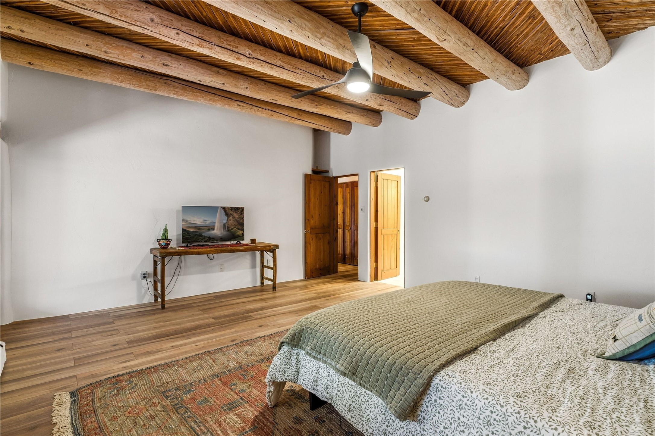 Updated Bishops Lodge Road 3-bedroom 2.5-bath home situated off the road on 1.18 wooded acres with mountain views and only 10 minutes from the vibrant Santa Fe Plaza. Recent improvements include new kitchen cabinets and appliances, new master and secondary bathrooms, new floors throughout the house, new mini splits, new front fence and driveway gates and more. Home includes 2 living areas, one with fireplace. Delightful contemporary sage kitchen is appointed with large center island, elegant nicho, light wood beams, farmhouse sink and new, high-end stainless-steel appliances. Separation of primary bedroom from two guest bedrooms for maximum privacy. In addition, there is a versatile, 1,038 sq. ft. lower-level floor which provides flex space for a recreational room plus home office and studio. 2-car attached garage. Enjoy living in a coveted Santa Fe location that is private yet at the same time close to all the cultural, culinary and recreational amenities of the area.