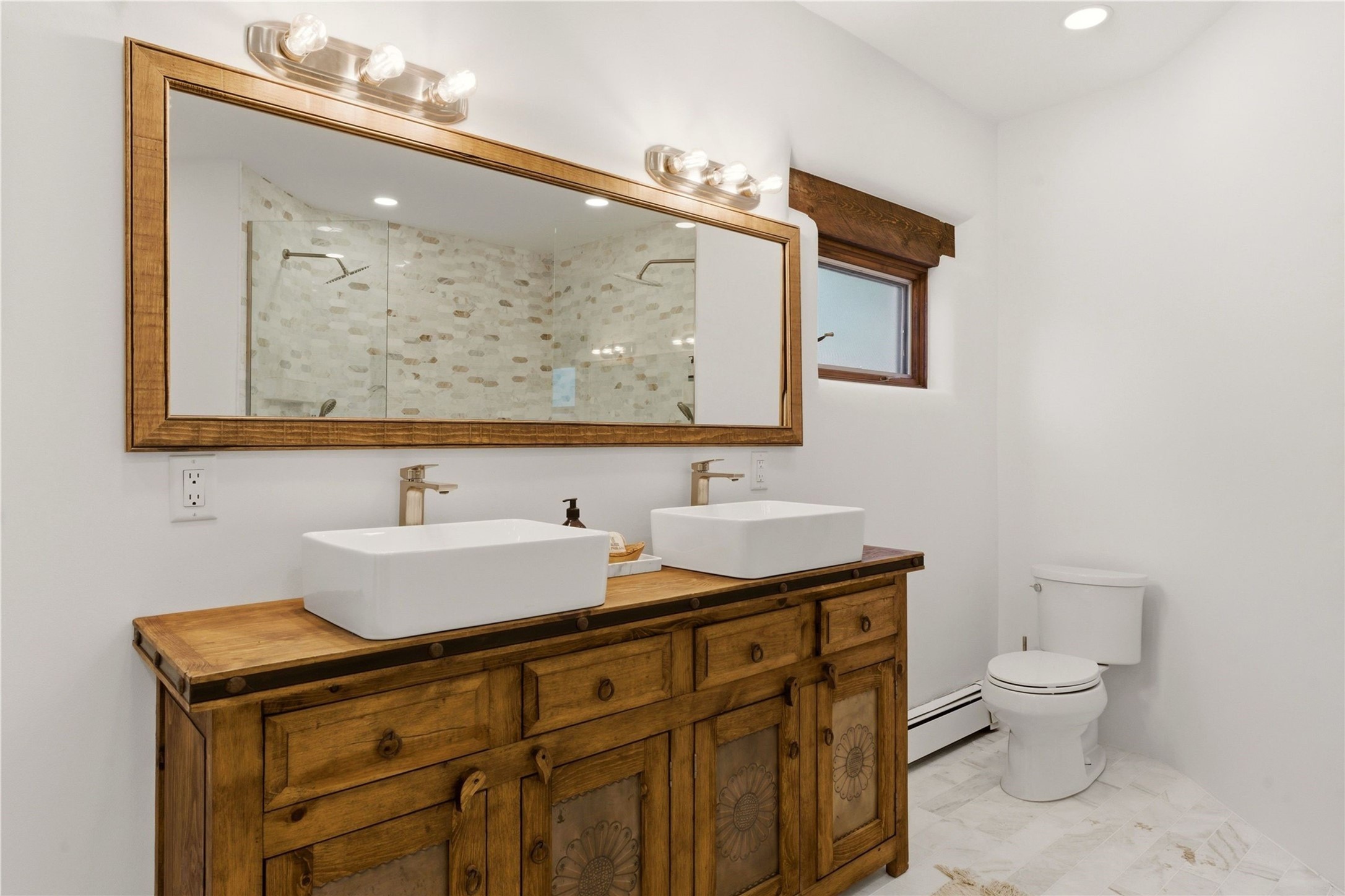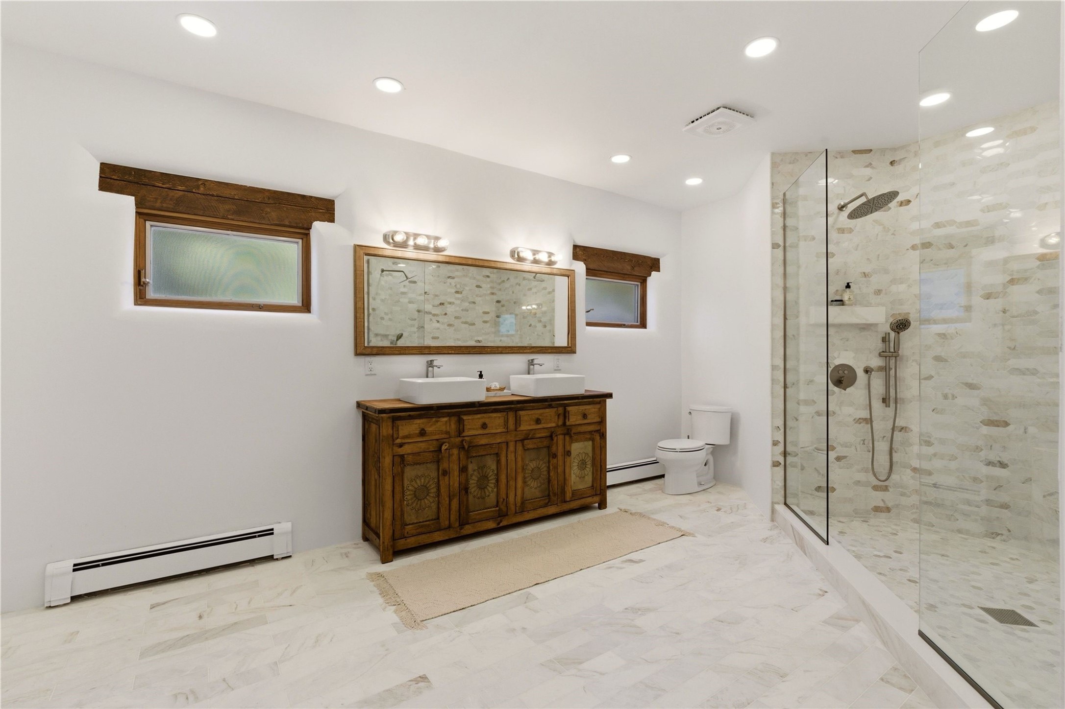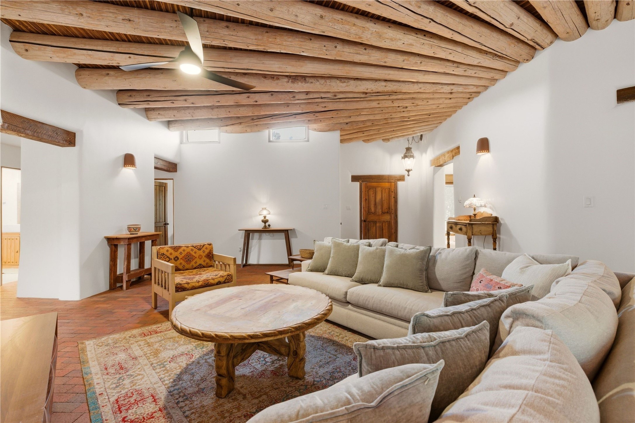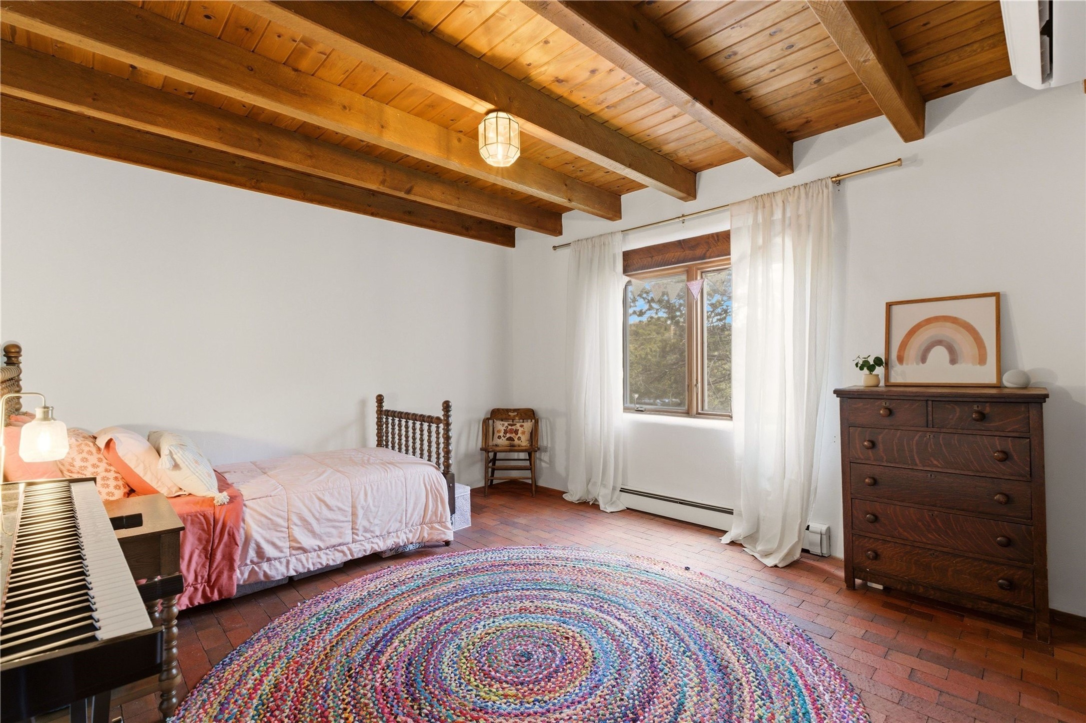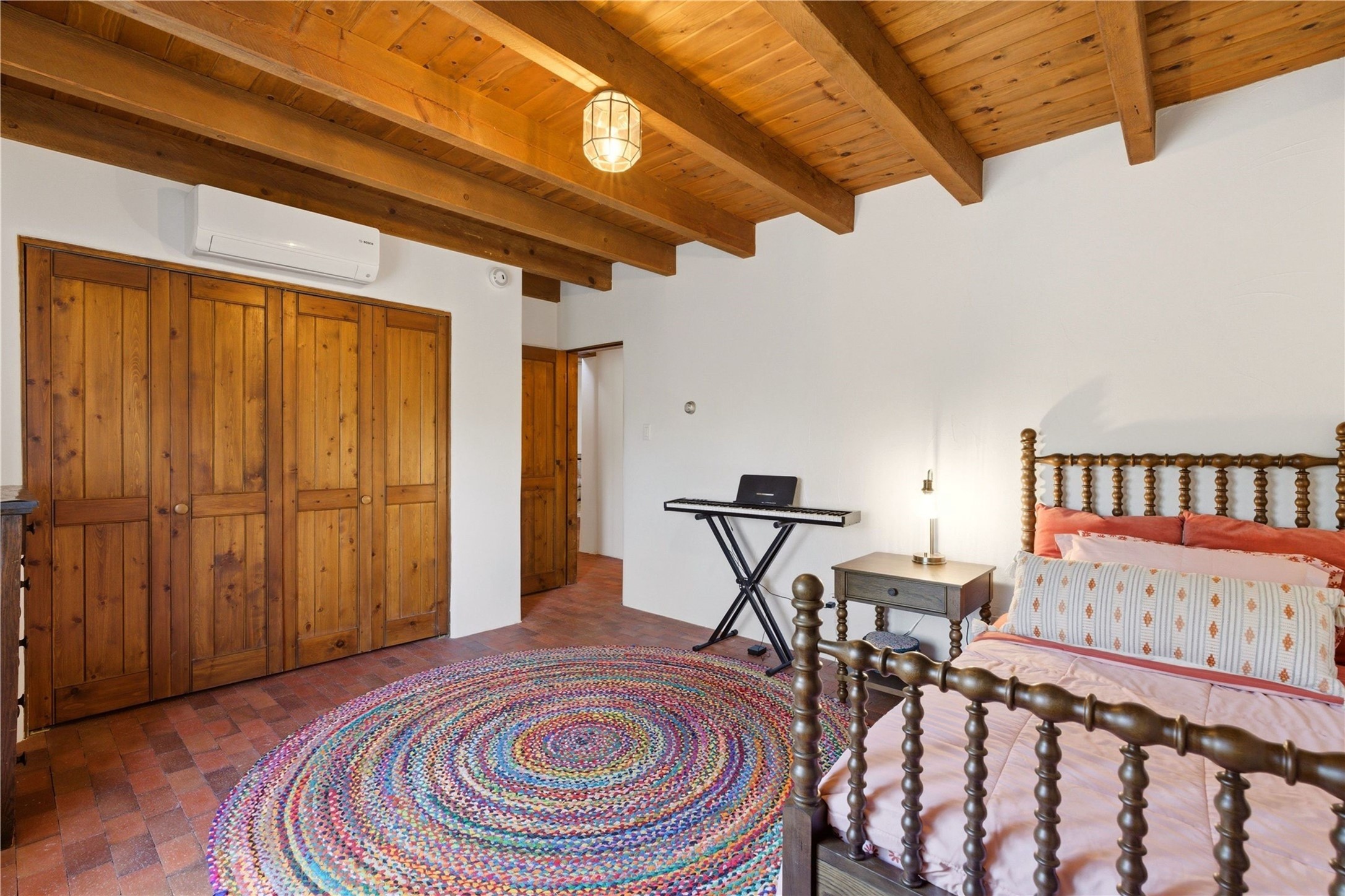 Updated Bishops Lodge Road 3-bedroom 2.5-bath home situated off the road on 1.18 wooded acres with mountain views and only 10 minutes from the vibrant Santa Fe Plaza. Recent improvements include new kitchen cabinets and appliances, new master and secondary bathrooms, new floors throughout the house, new mini splits, new front fence and driveway gates and more. Home includes 2 living areas, one with fireplace. Delightful contemporary sage kitchen is appointed with large center island, elegant nicho, light wood beams, farmhouse sink and new, high-end stainless-steel appliances. Separation of primary bedroom from two guest bedrooms for maximum privacy. In addition, there is a versatile, 1,038 sq. ft. lower-level floor which provides flex space for a recreational room plus home office and studio. 2-car attached garage. Enjoy living in a coveted Santa Fe location that is private yet at the same time close to all the cultural, culinary and recreational amenities of the area.
