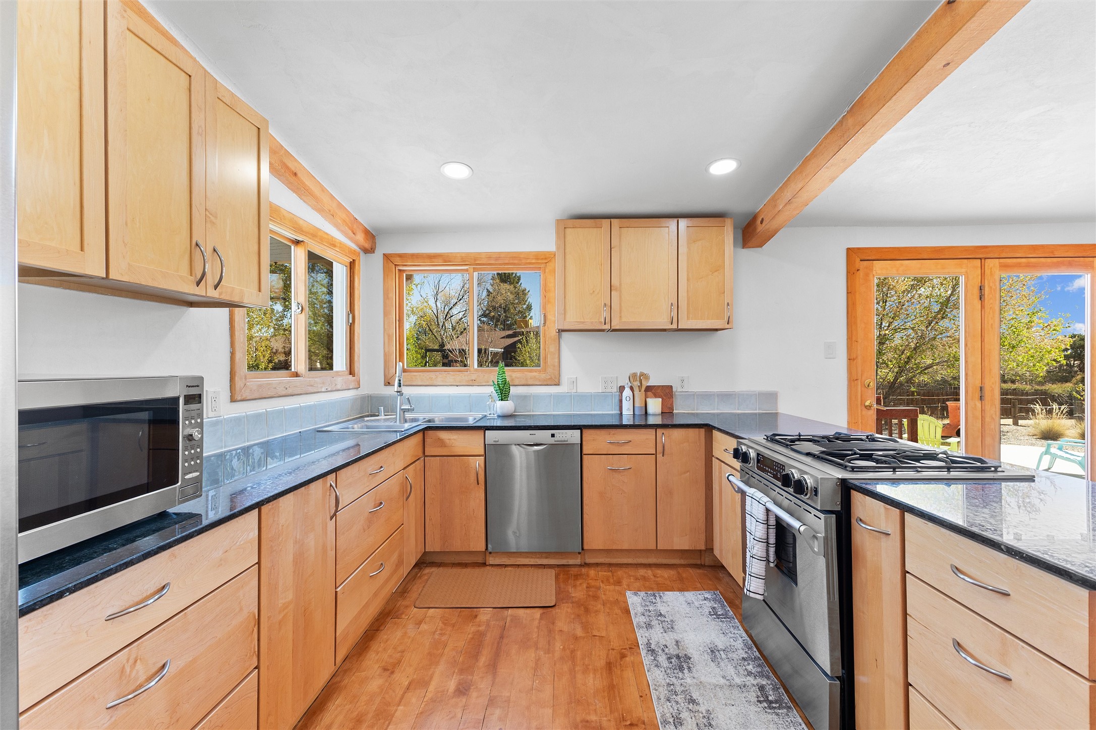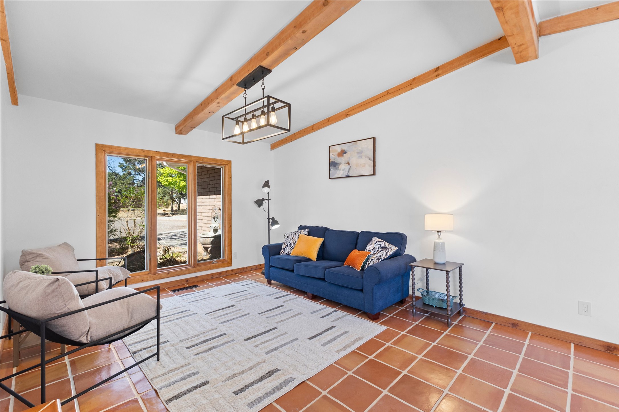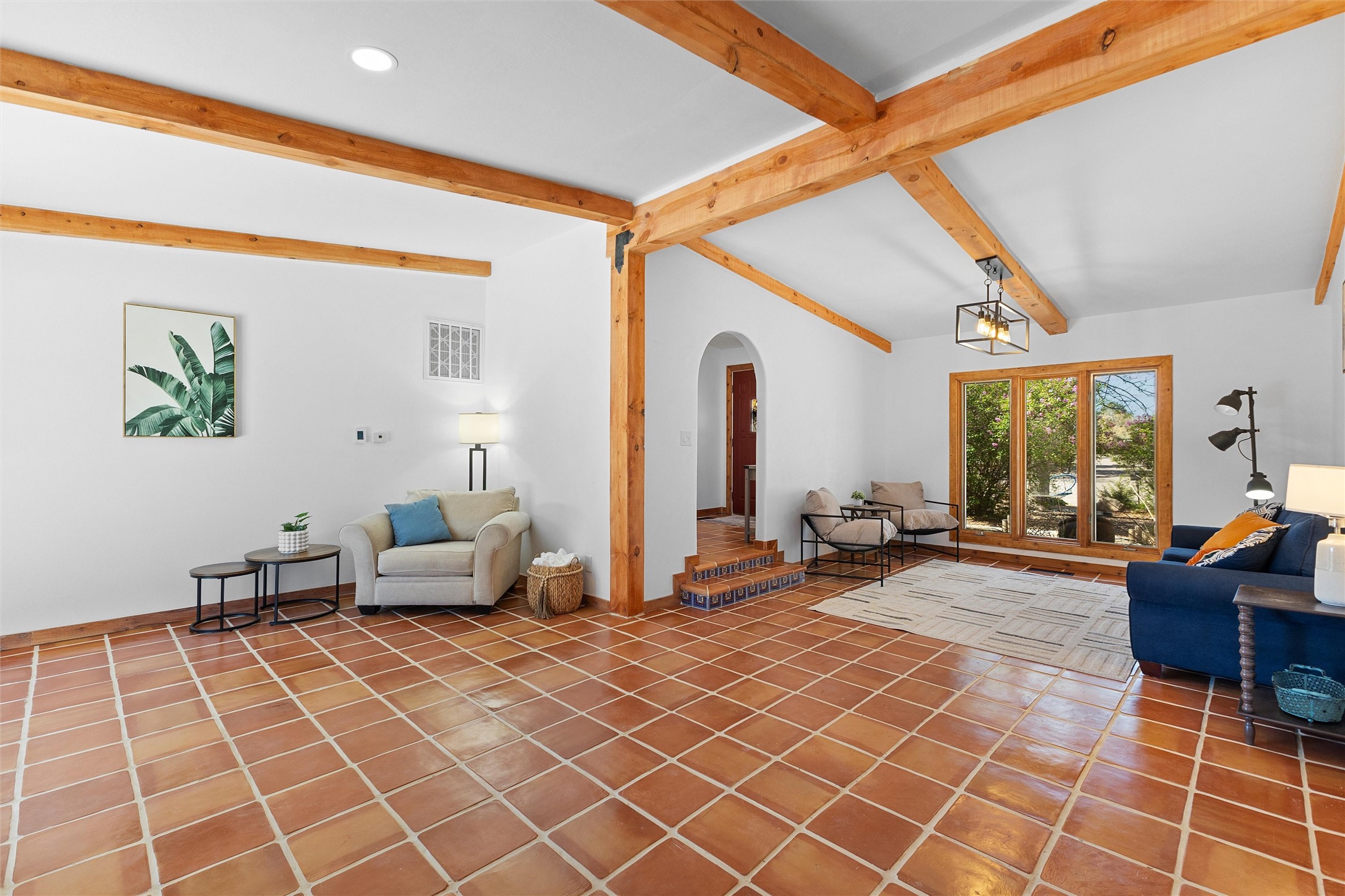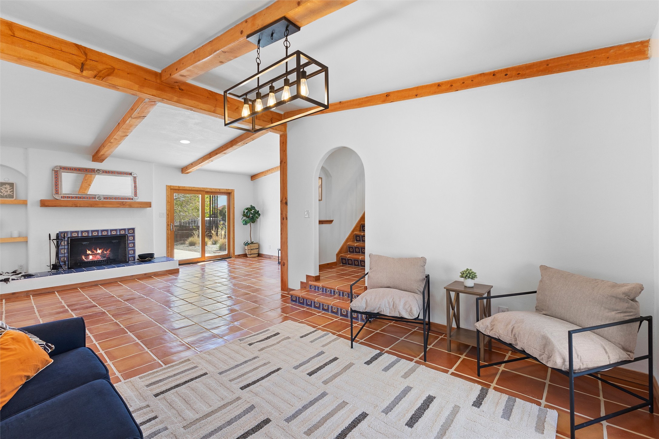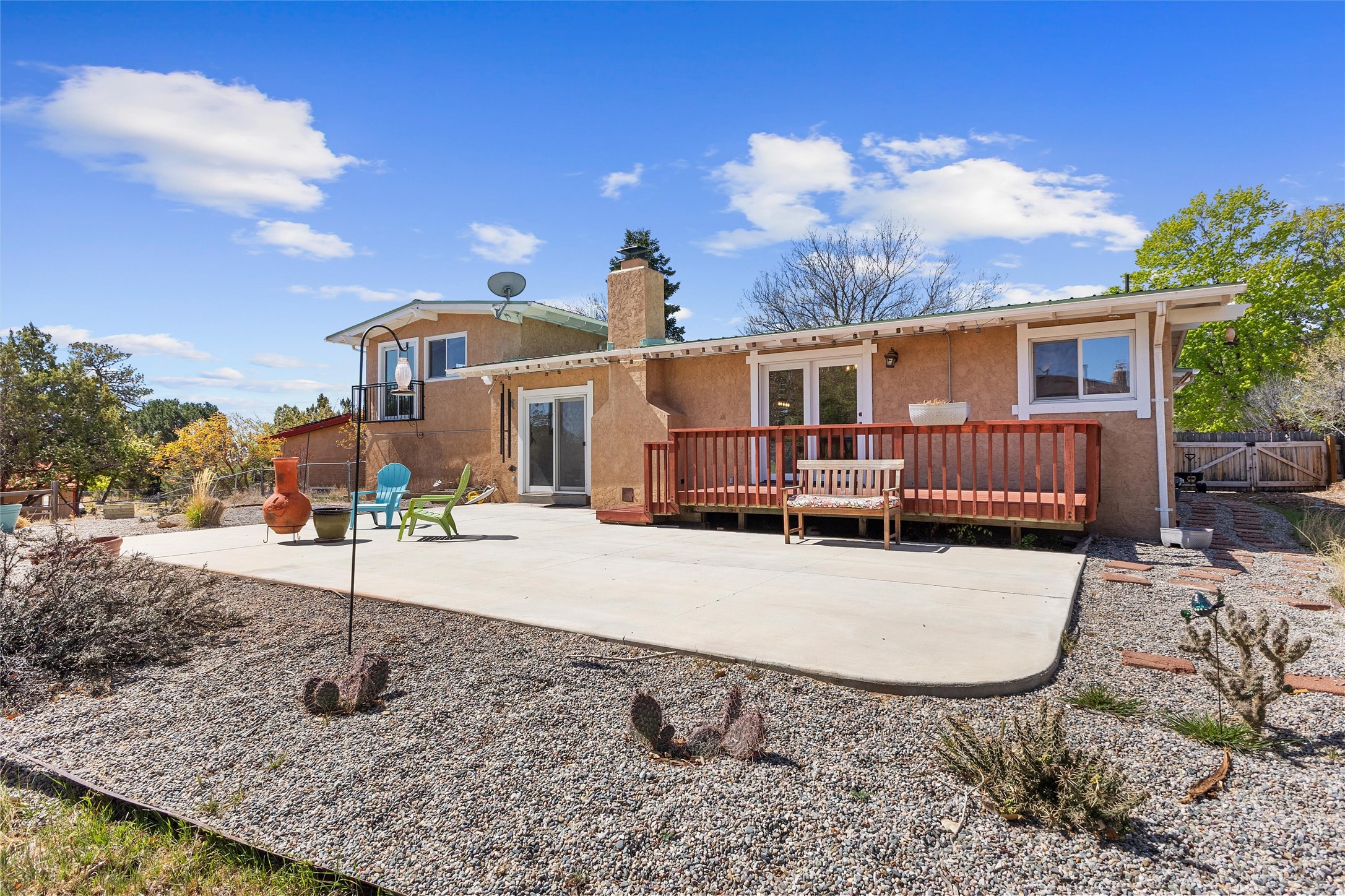 Tucked into a quiet cul-de-sac on desirable Barranca Mesa, 10 Tesuque offers over 3,000 square feet on a spacious .37-acre lot. Extensively remodeled in 2026 with nearly $225,000 worth of updates, this warm and welcoming 3-bedroom, 2-bathroom home blends Southwest character with thoughtful modern updates, including plaster walls, Saltillo tile floors, wood beams, in-floor radiant heat, updated lighting, a new tankless water heater, new furnace, and AC.The private primary suite has been transformed into a true sanctuary, featuring a kiva fireplace, abundant natural light, a Juliet balcony, walk-in closet, custom tile work, and a standalone clawfoot tub. Downstairs, you'll find two additional bedrooms with closet systems, a full bathroom, and a basement space perfect for a theater room, playroom, or extra storage.The living room fireplace features a plaster surround, custom tile, and a substantial mantel perfect for holiday decorating. Nichos, built-in shelving, and inviting architectural details add charm throughout. The open-concept kitchen is highly functional and offers generous cabinet space.Outside, the large lot provides room to roam, entertain, garden, and store your RV or toys with ease thanks to the wide double gate. With so much to offer, and move in ready ease, schedule your showing today, this one won't last long!